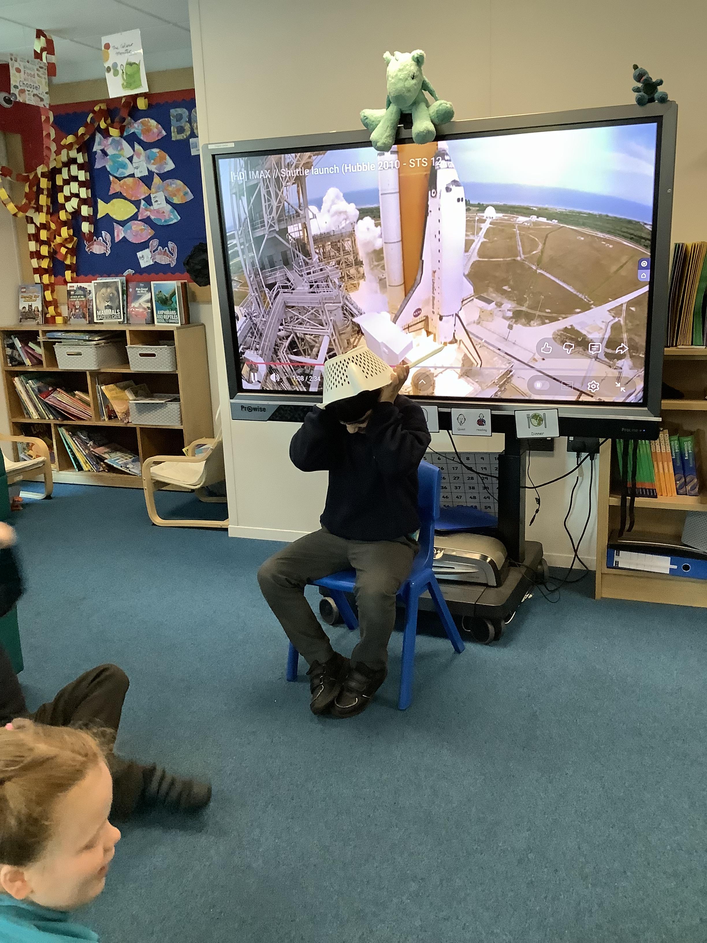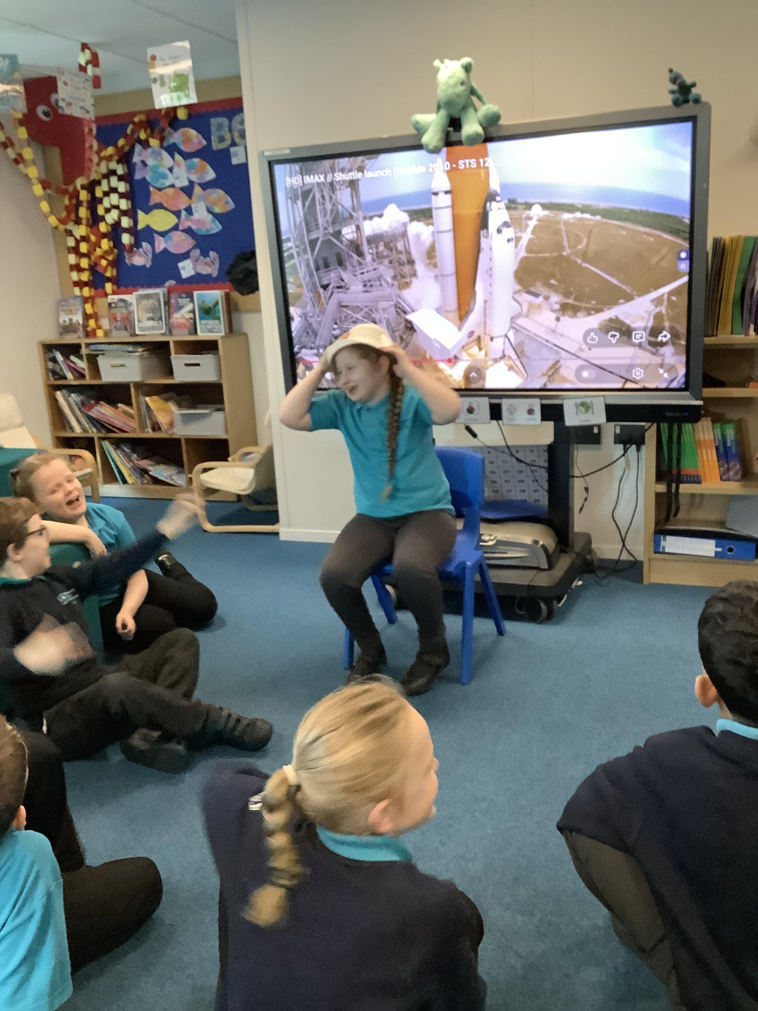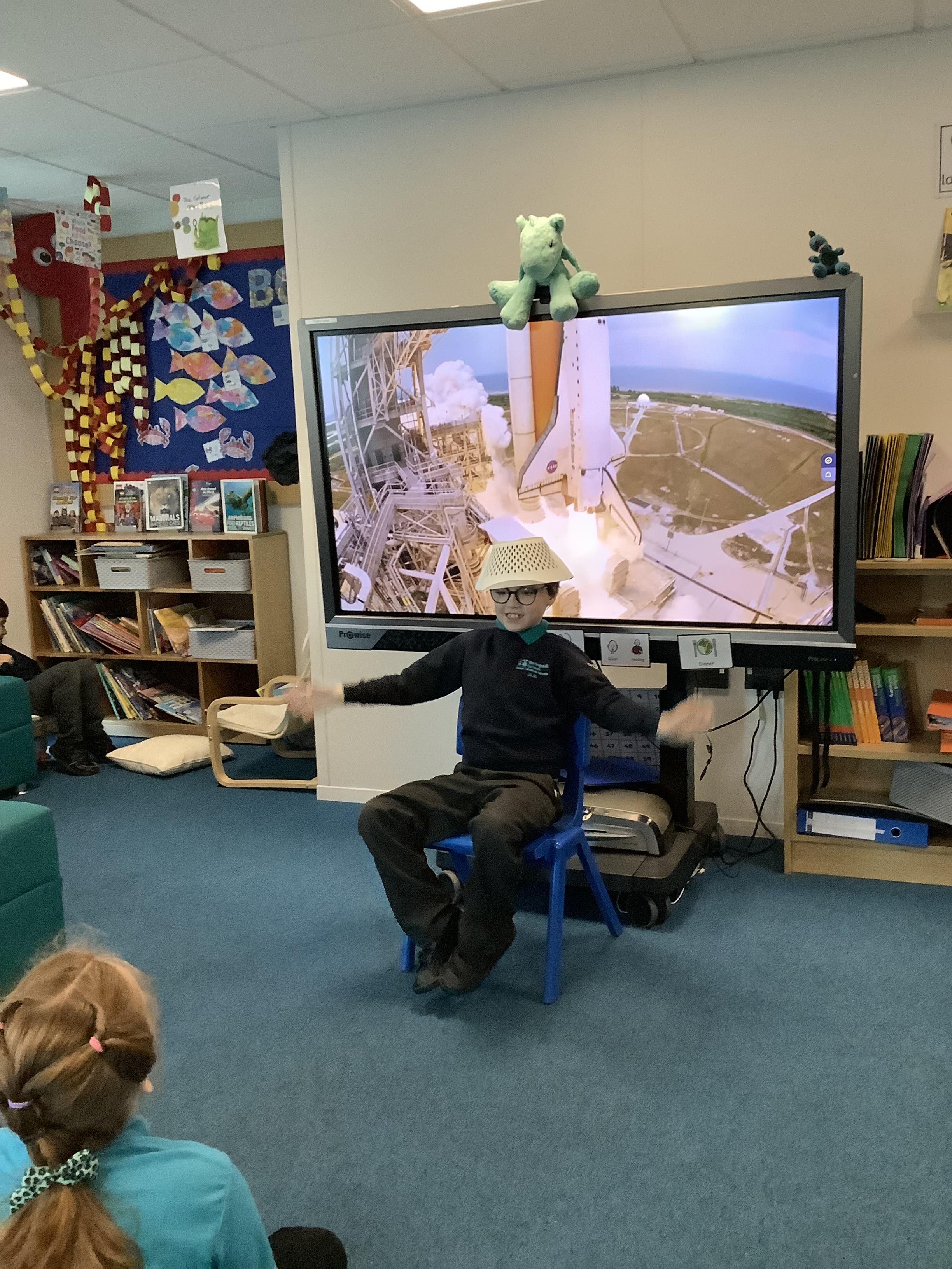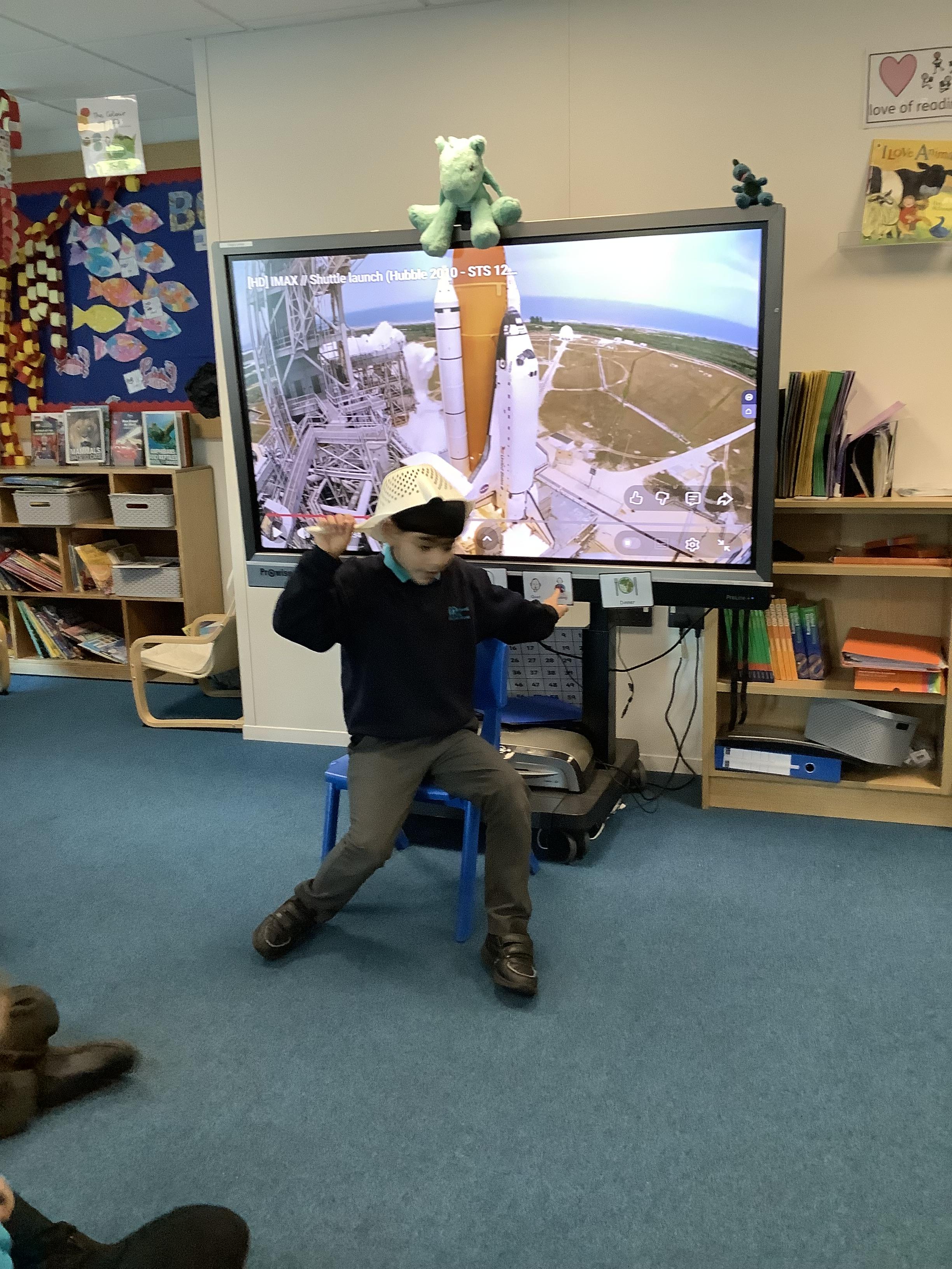 W/B 12.01.26 - In our Literacy lesson we have created role play scenarios of us going to the moon in a rocket, just like Baby Bear from our class book - Whatever Next. We created a space ship for Baby Bear and watched him ZOOM to the moon.