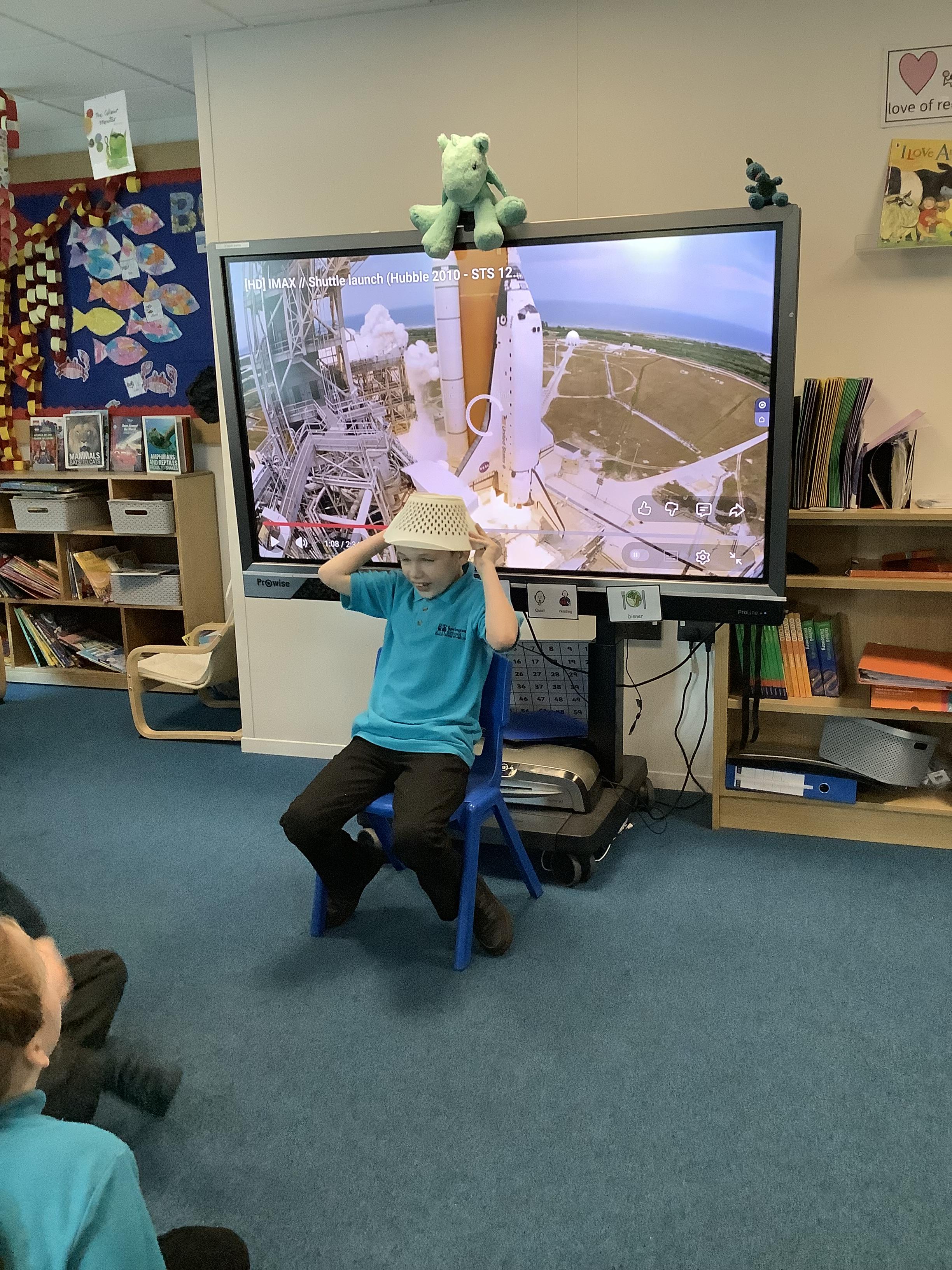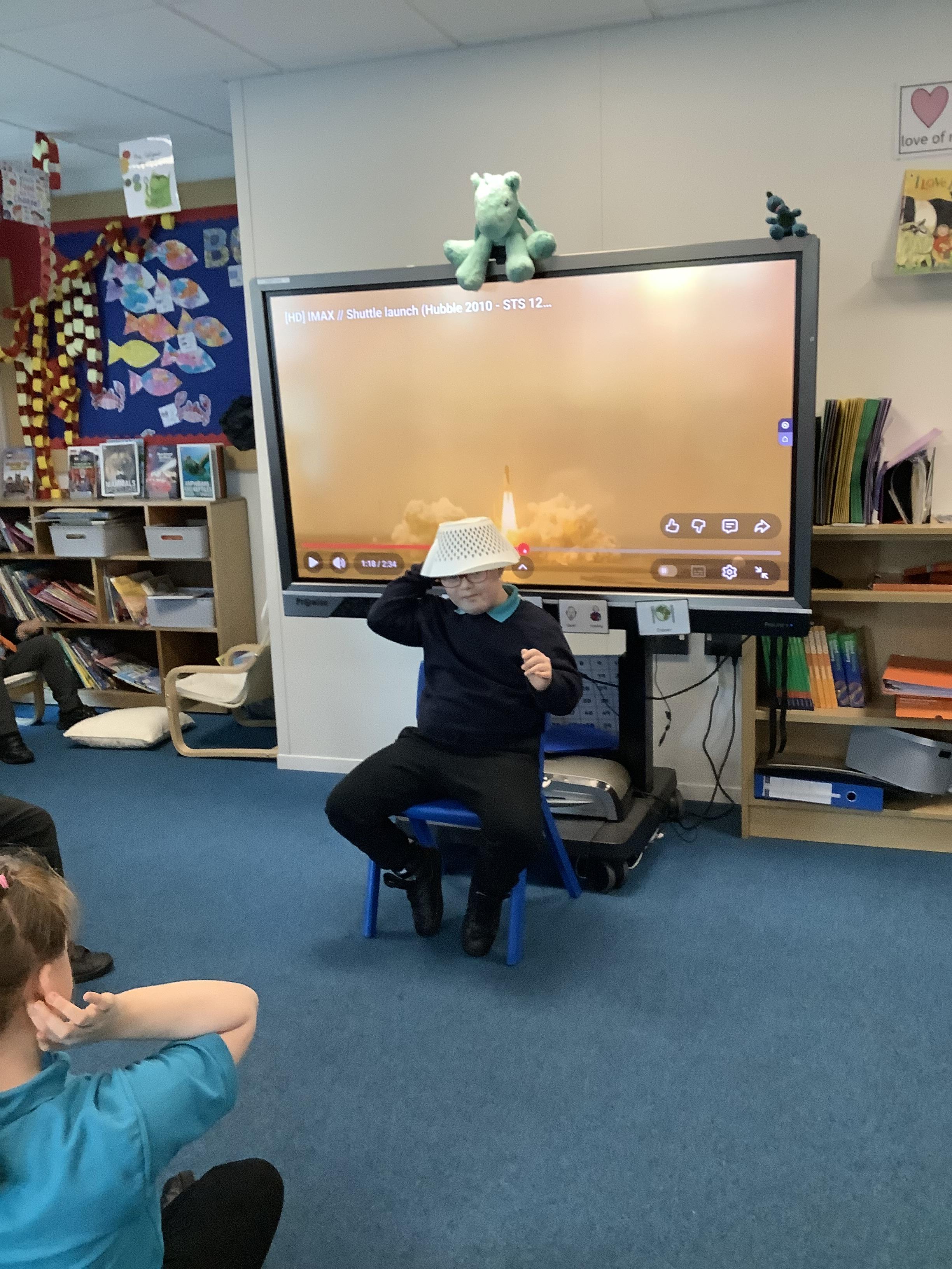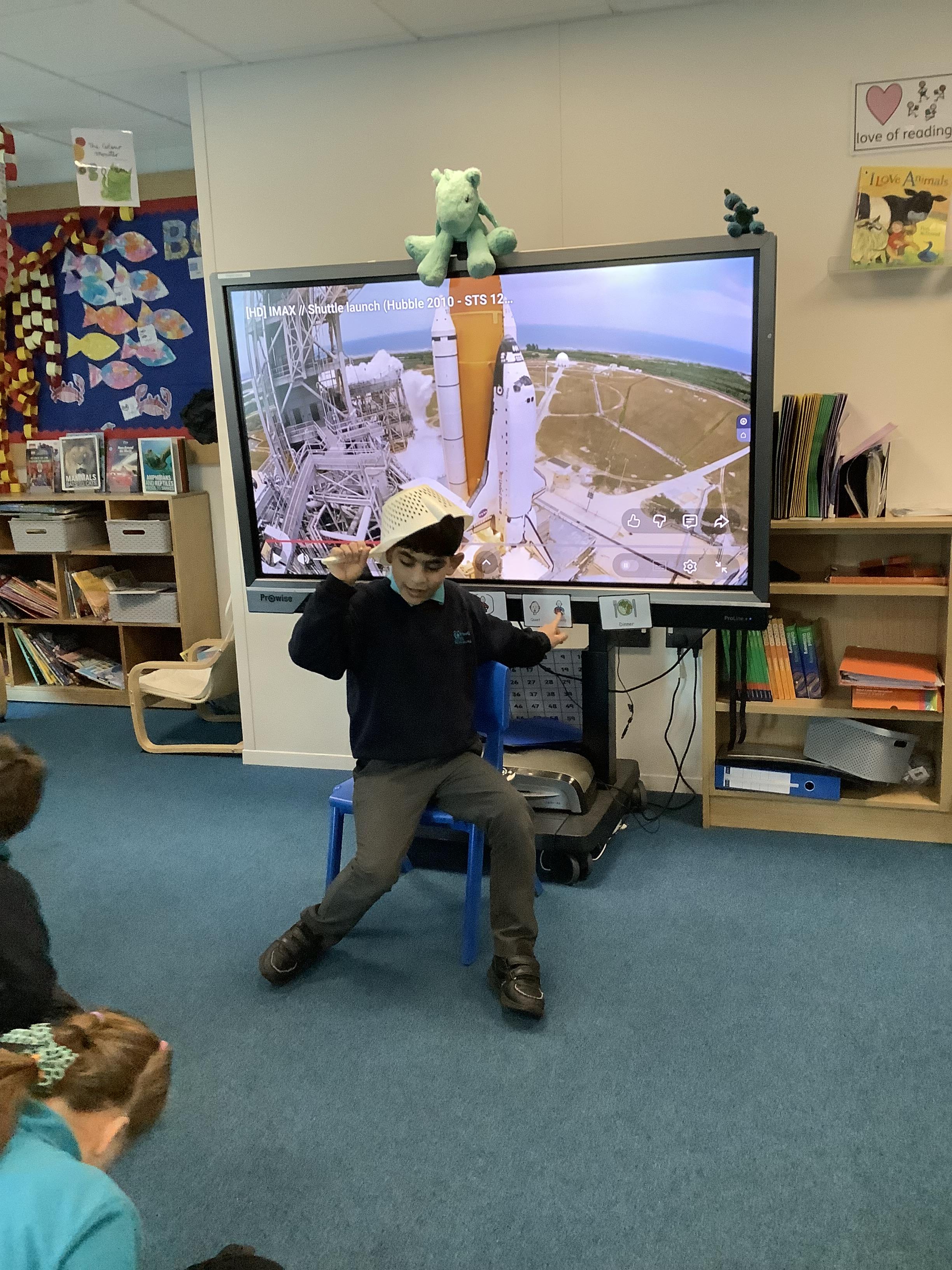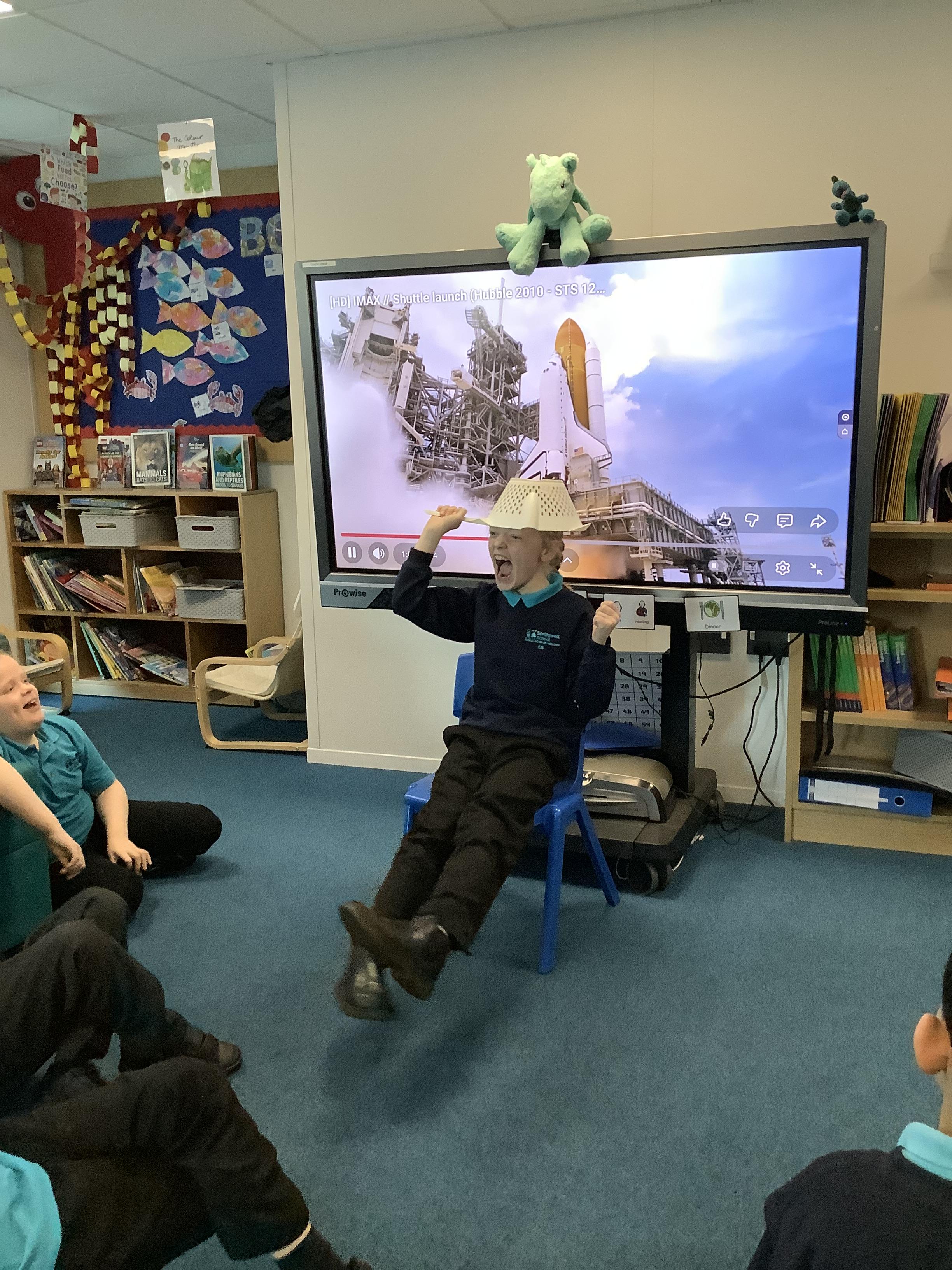 W/B 12.01.26 - In our Literacy lesson we have created role play scenarios of us going to the moon in a rocket, just like Baby Bear from our class book - Whatever Next. We created a space ship for Baby Bear and watched him ZOOM to the moon.