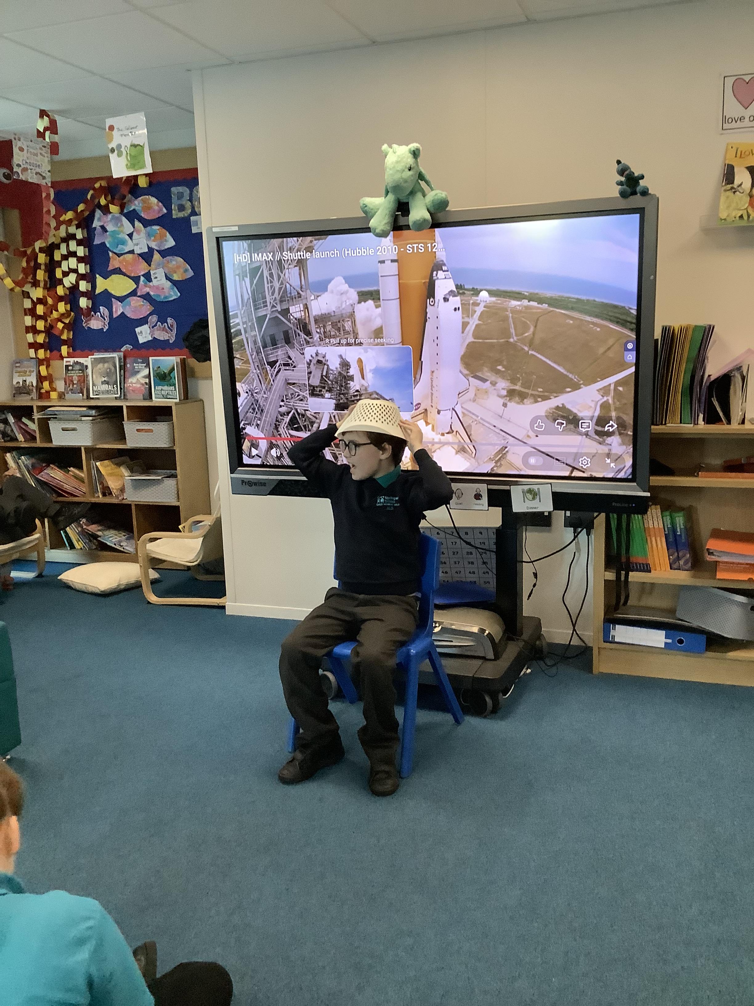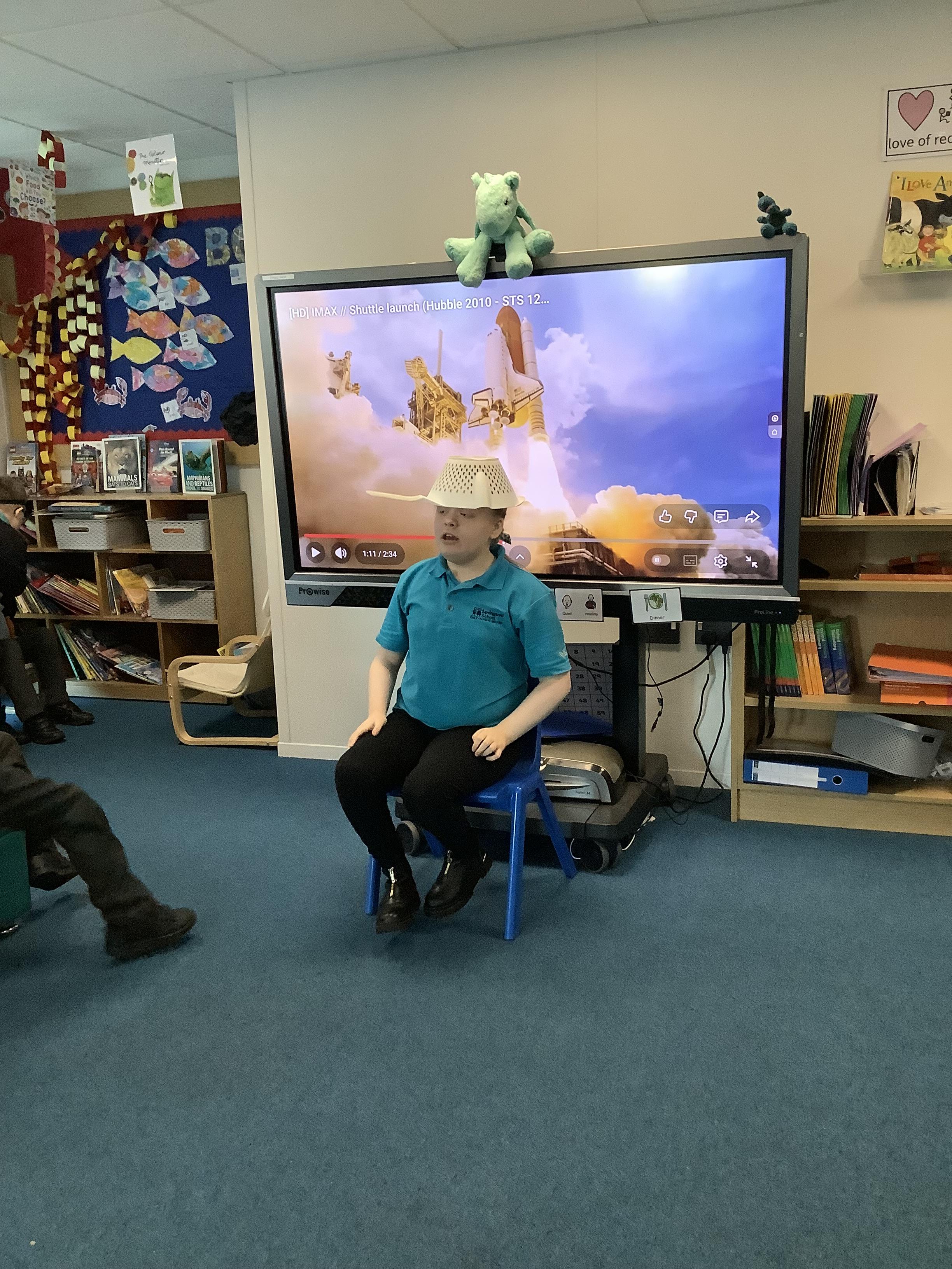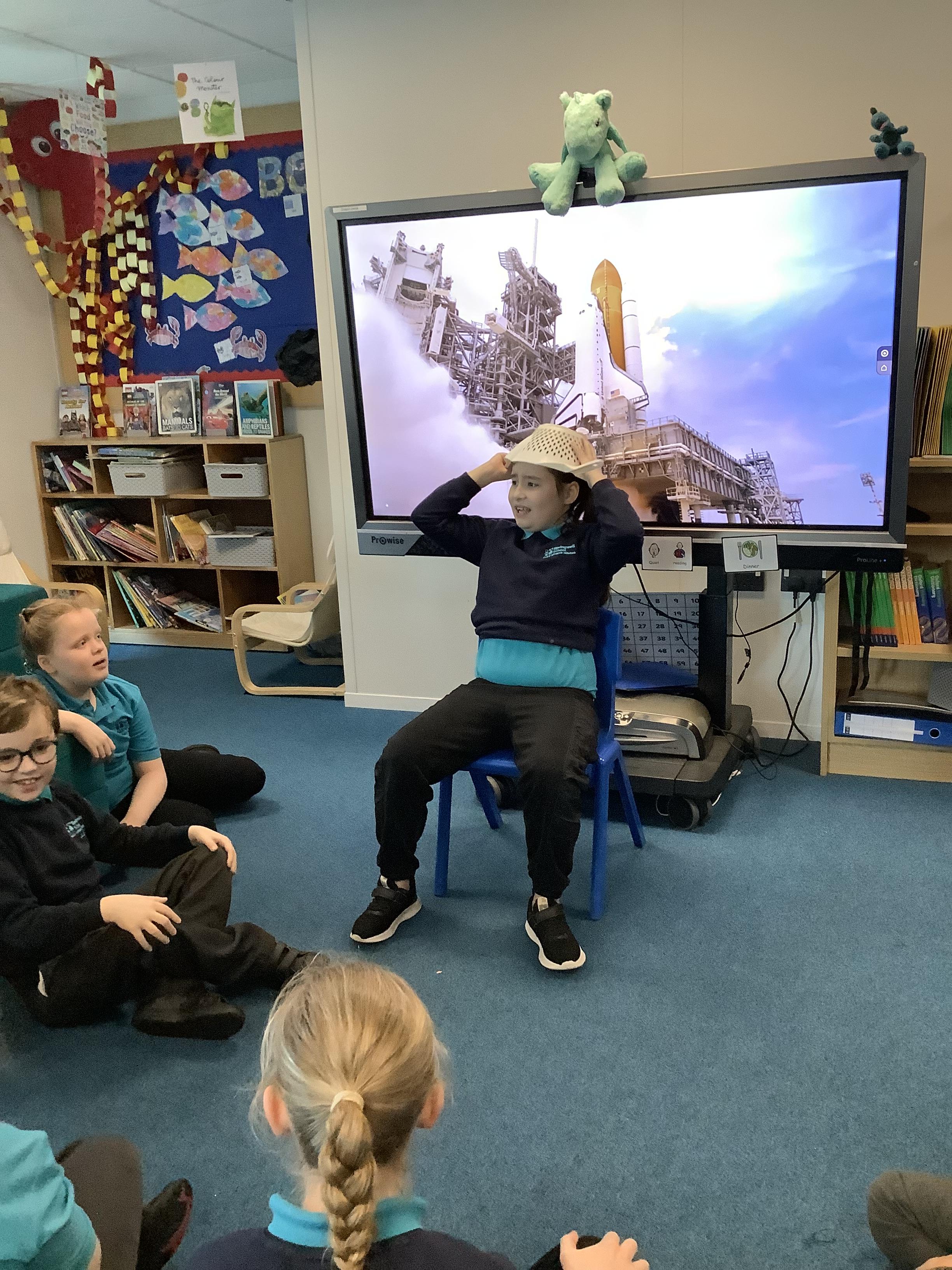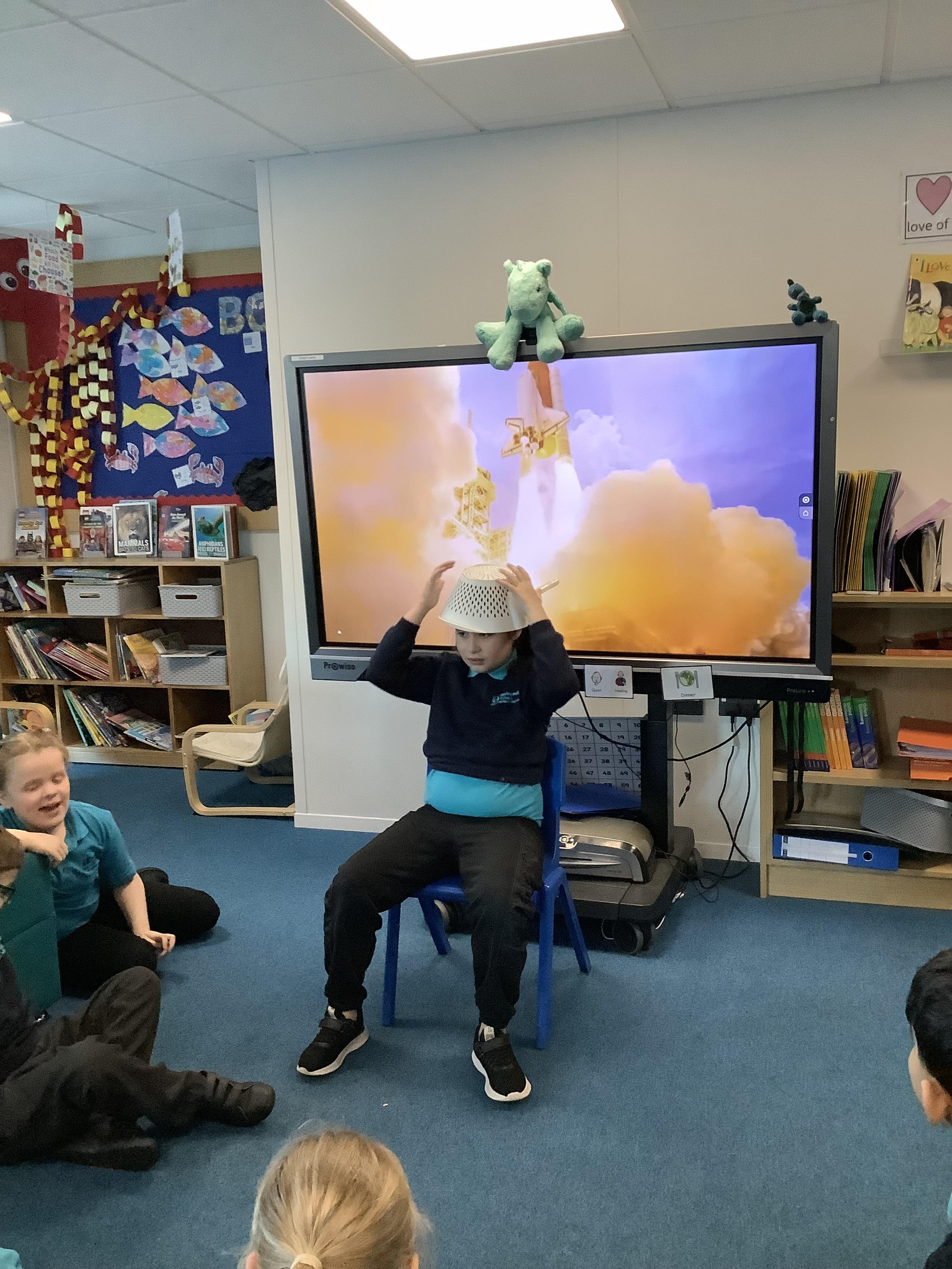 W/B 12.01.26 - In our Literacy lesson we have created role play scenarios of us going to the moon in a rocket, just like Baby Bear from our class book - Whatever Next. We created a space ship for Baby Bear and watched him ZOOM to the moon.
