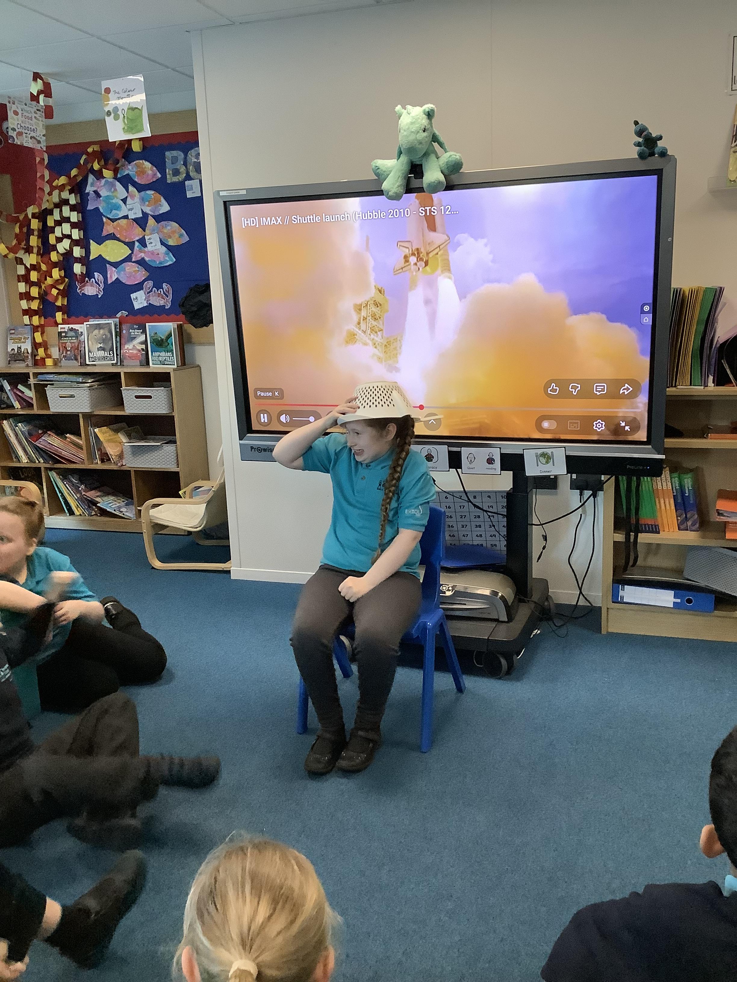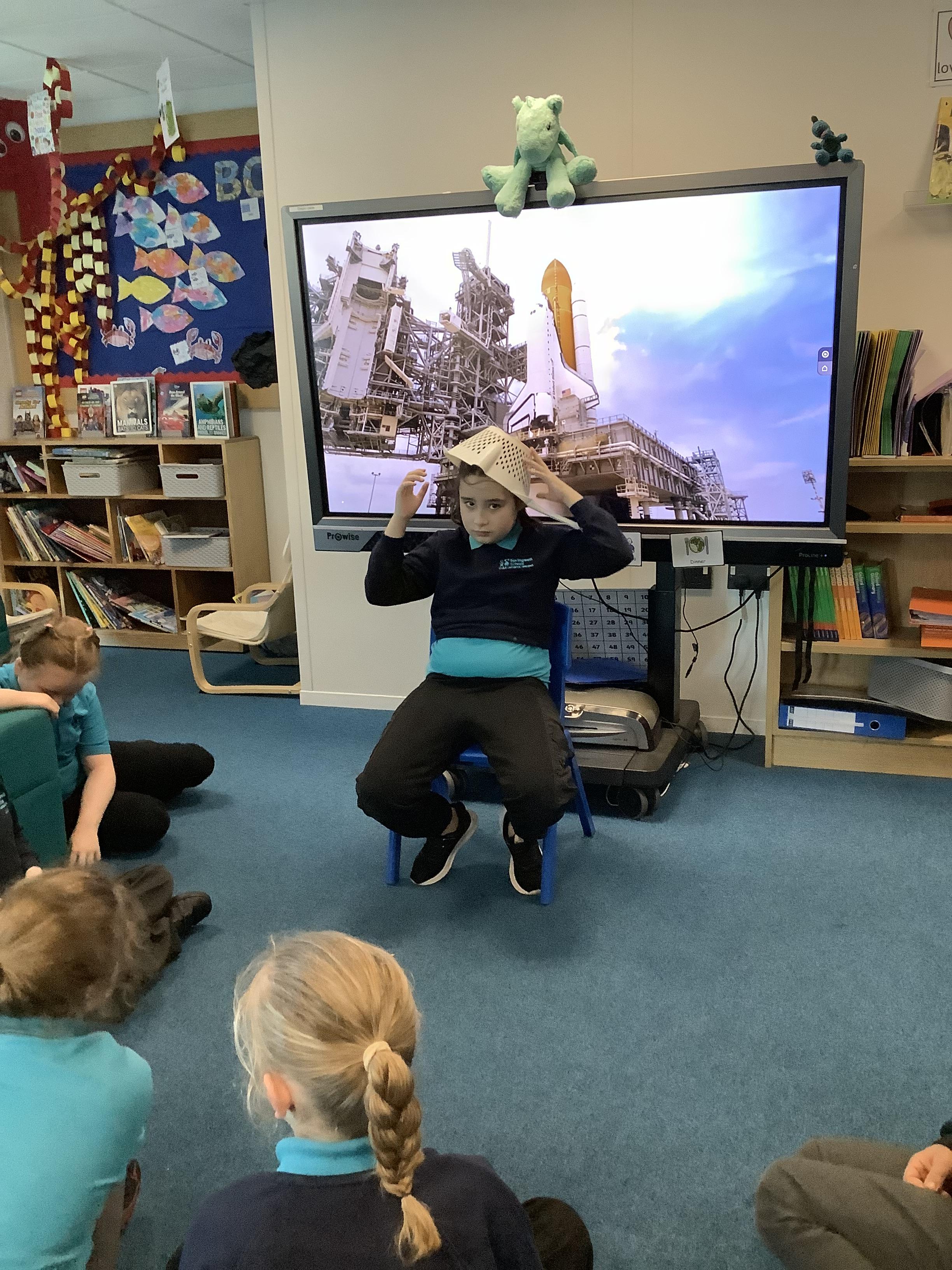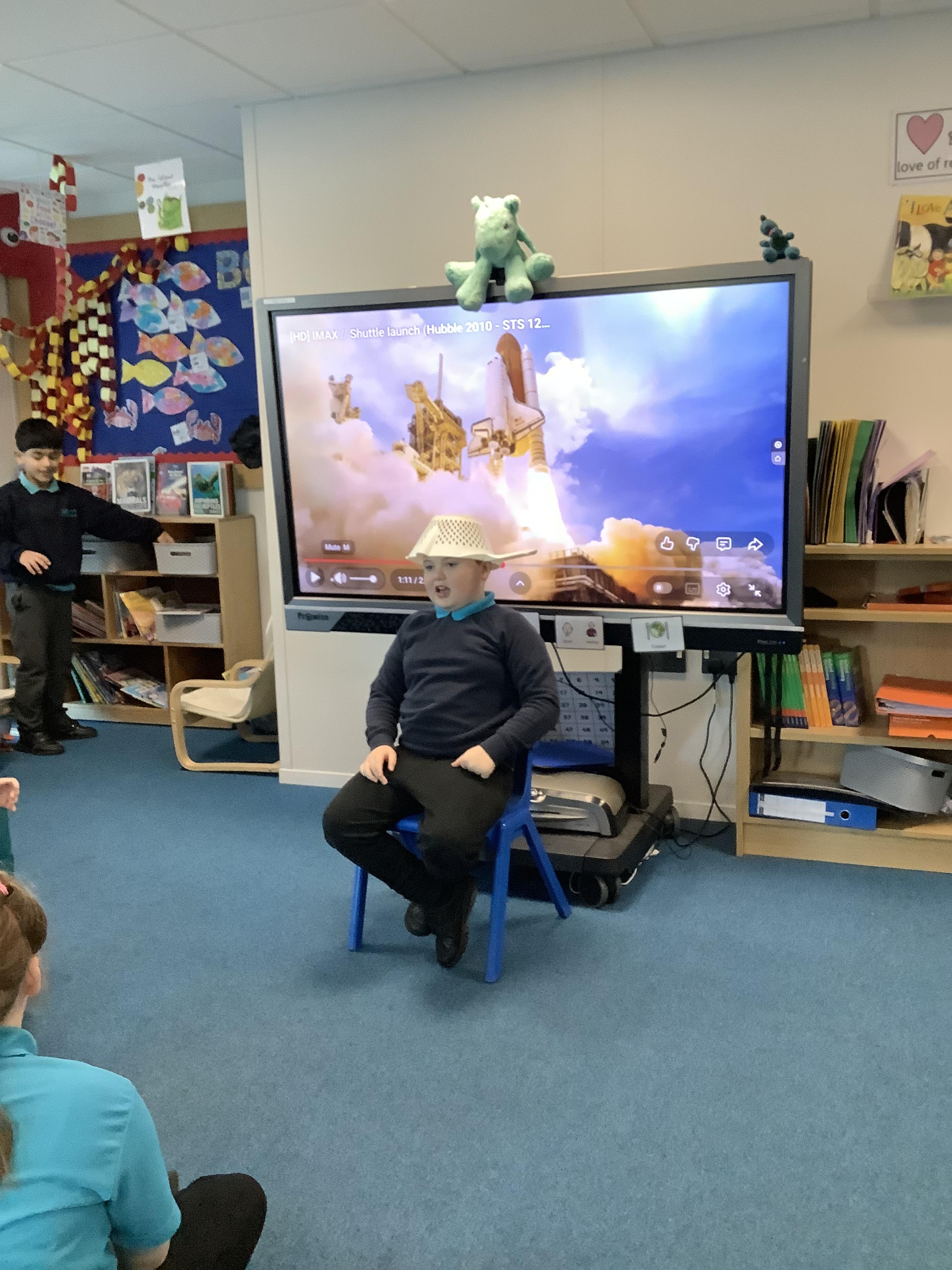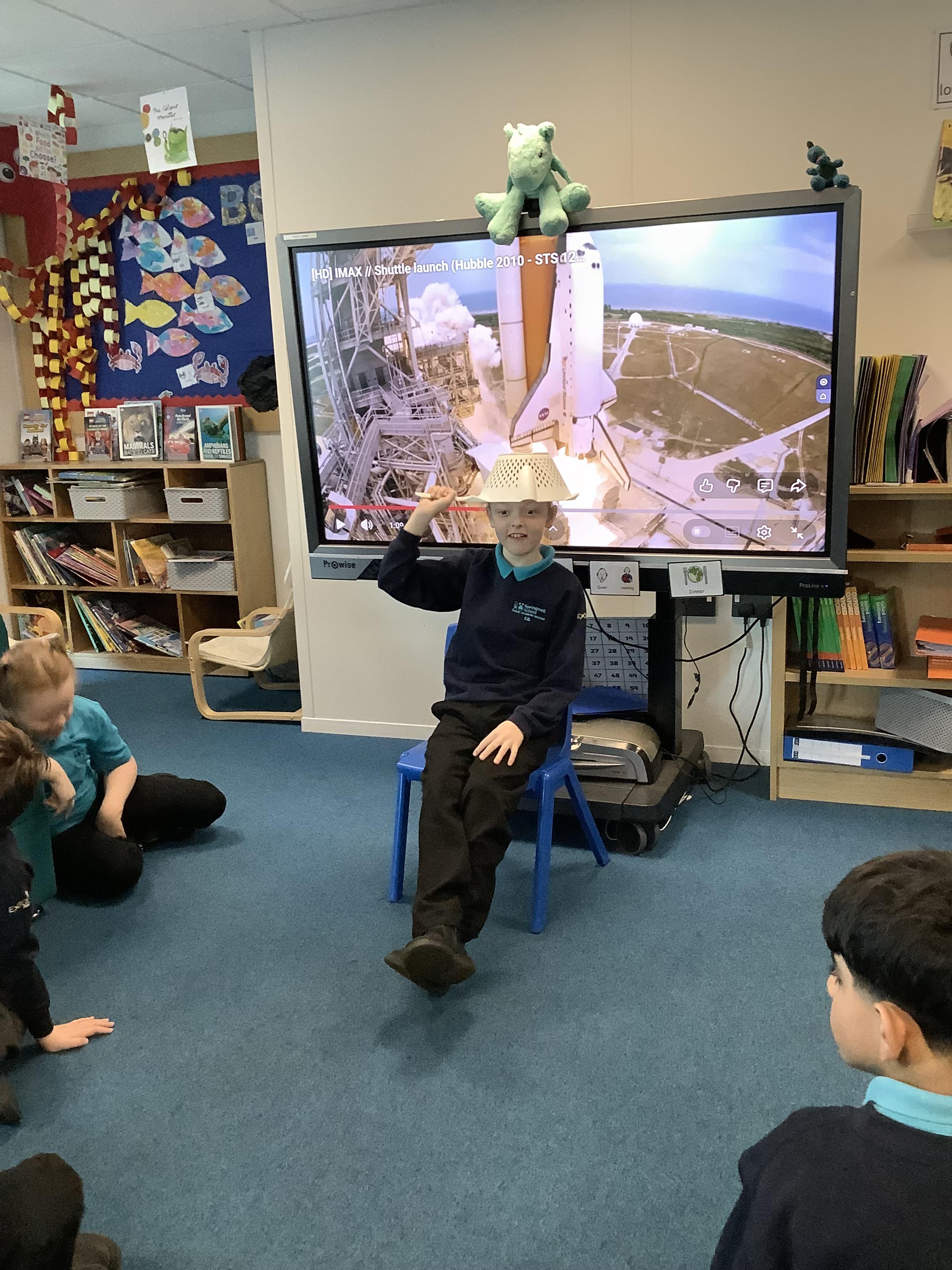 W/B 12.01.26 - In our Literacy lesson we have created role play scenarios of us going to the moon in a rocket, just like Baby Bear from our class book - Whatever Next. We created a space ship for Baby Bear and watched him ZOOM to the moon.