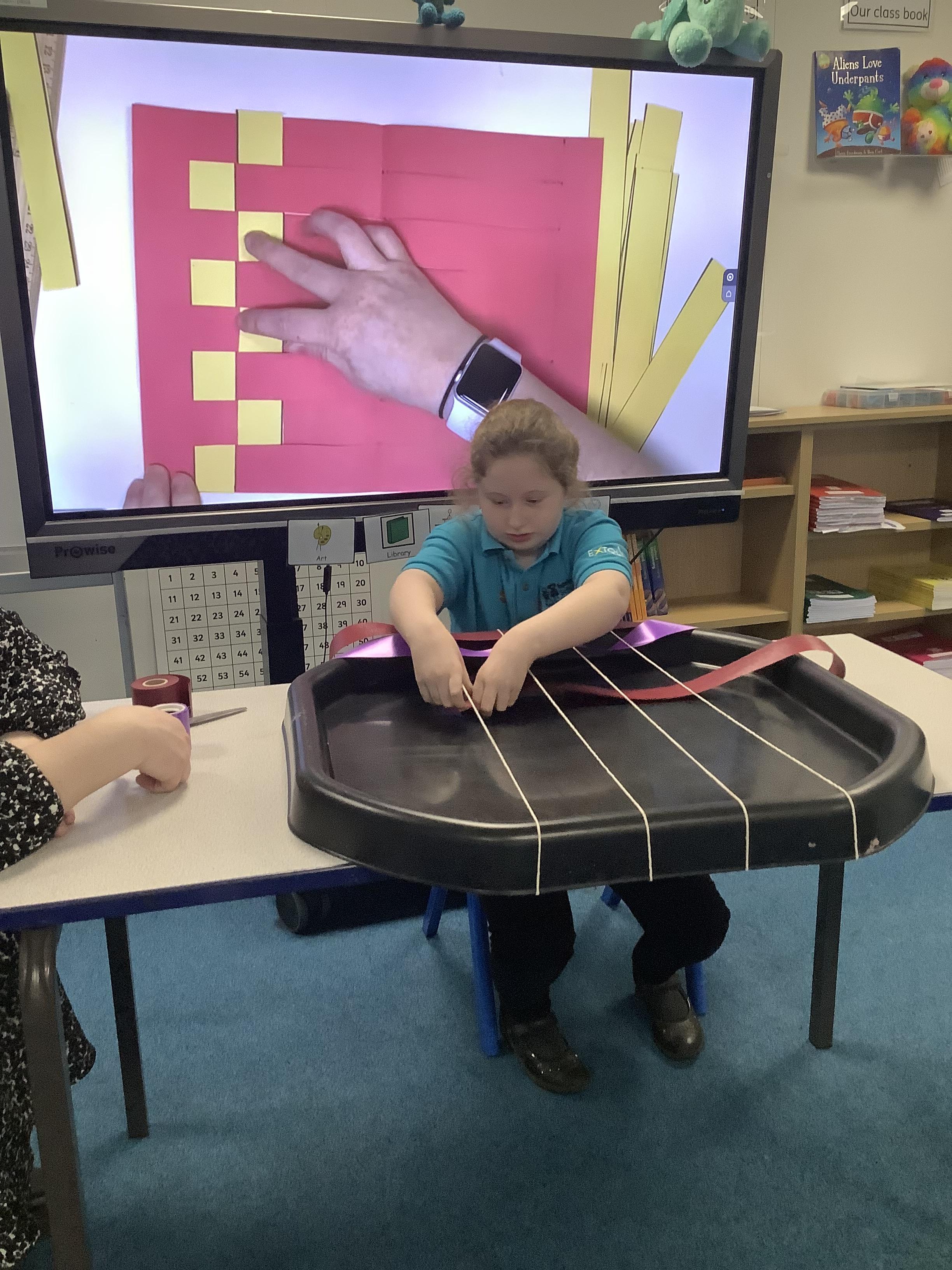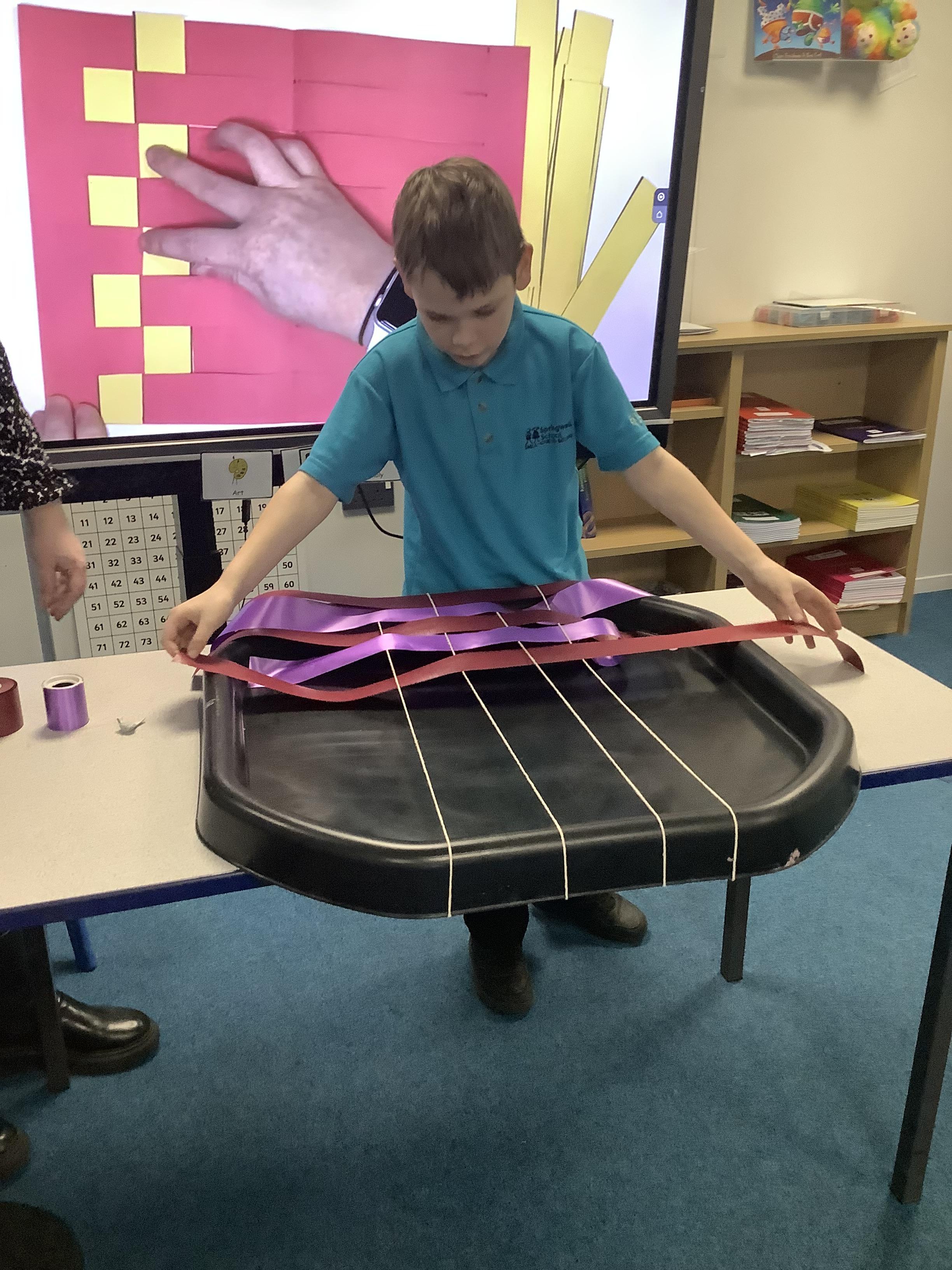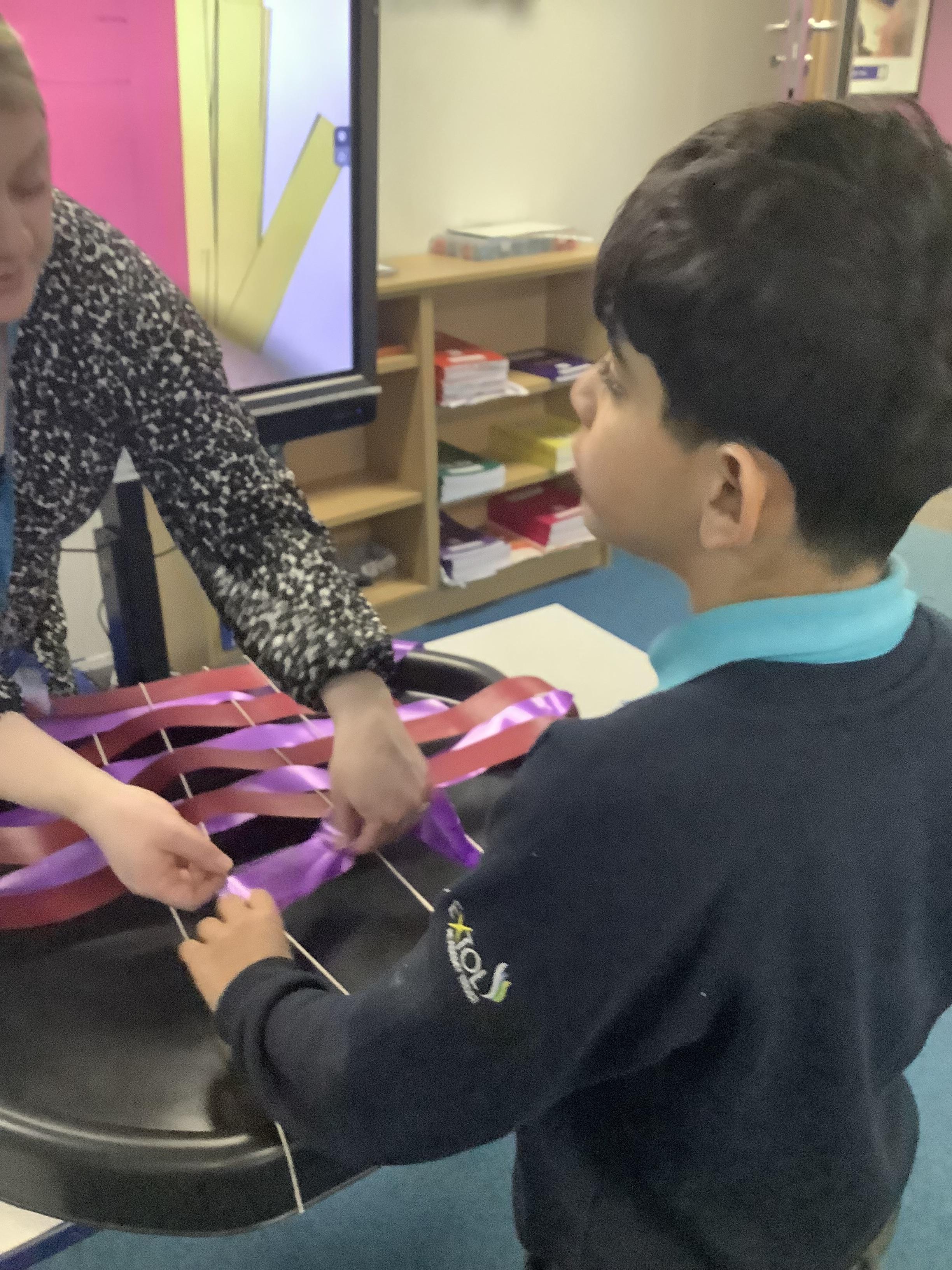 W.B 19.01.26 - In our Art lesson this week we have been learning about a new technique - weaving! We used ribbons to go 'under' and 'over'.