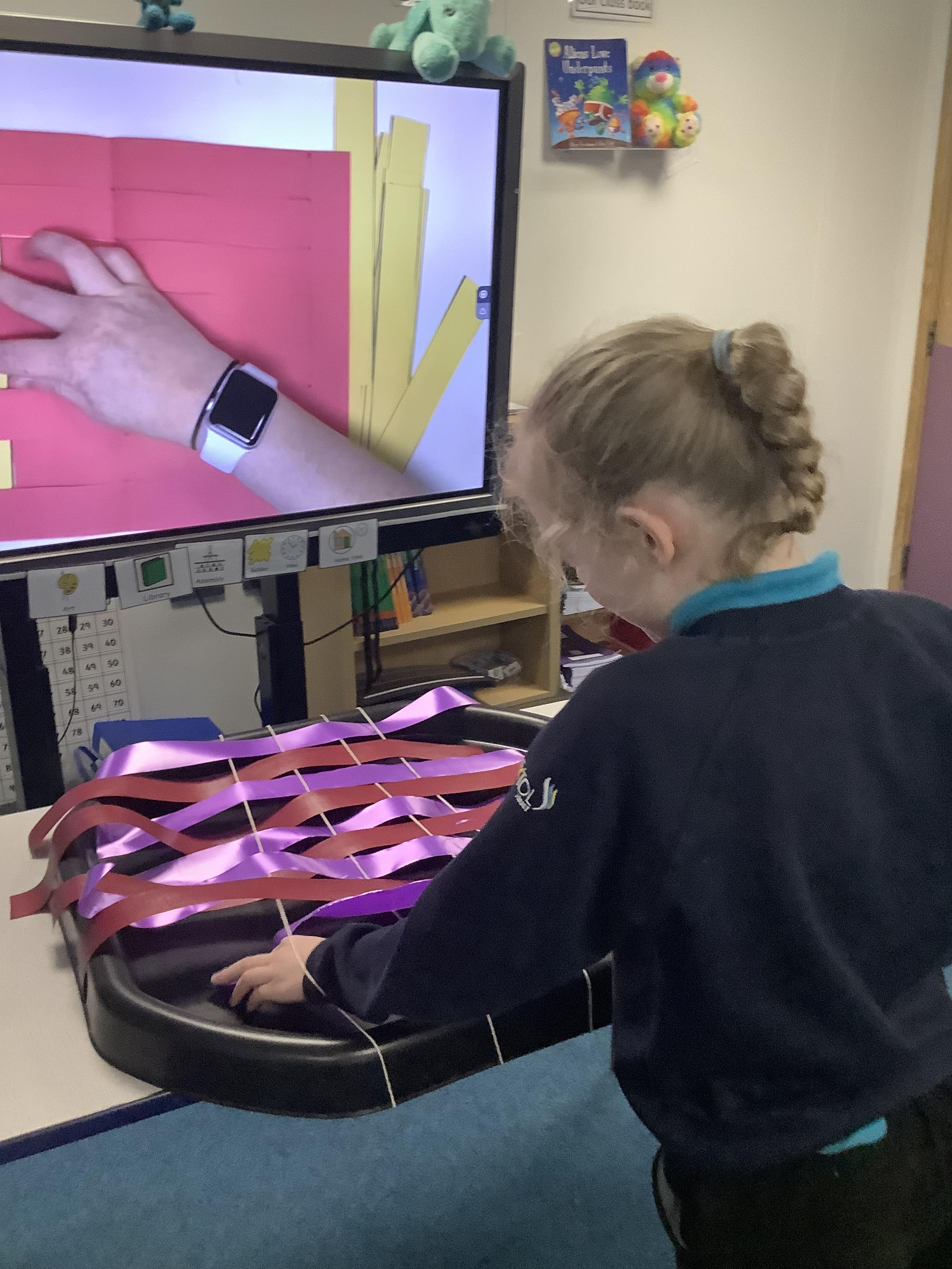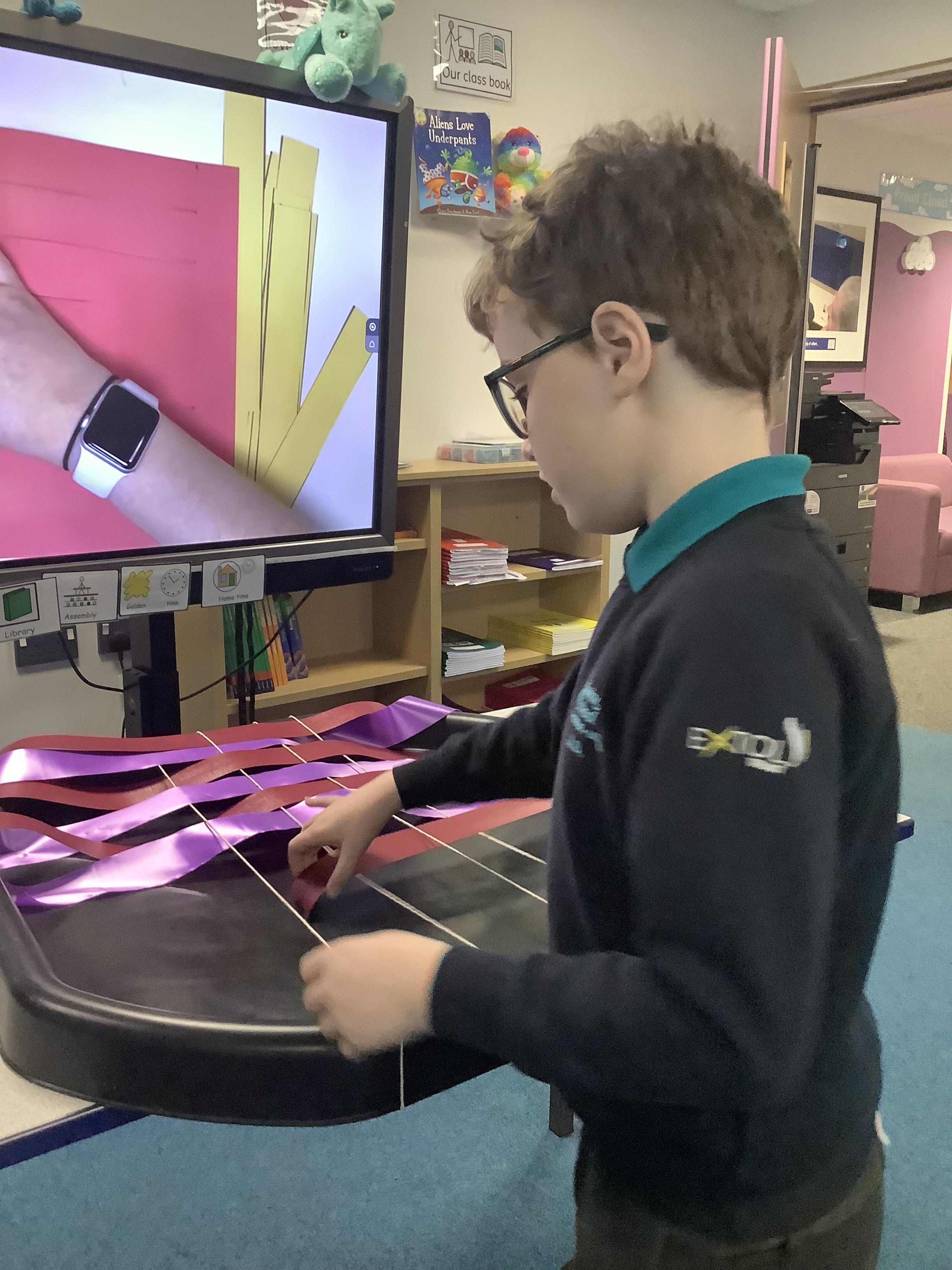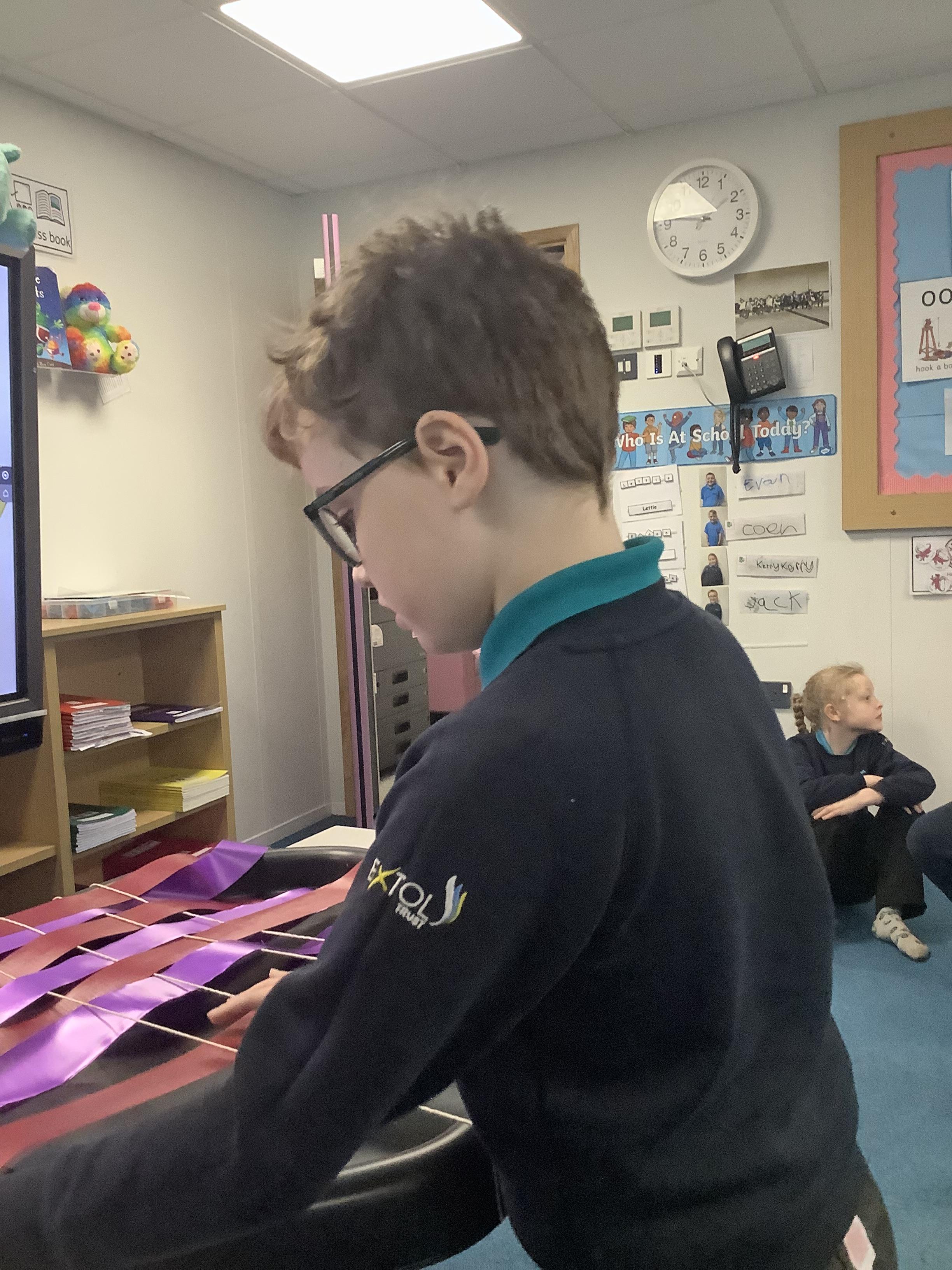 W.B 19.01.26 - In our Art lesson this week we have been learning about a new technique - weaving! We used ribbons to go 'under' and 'over'.