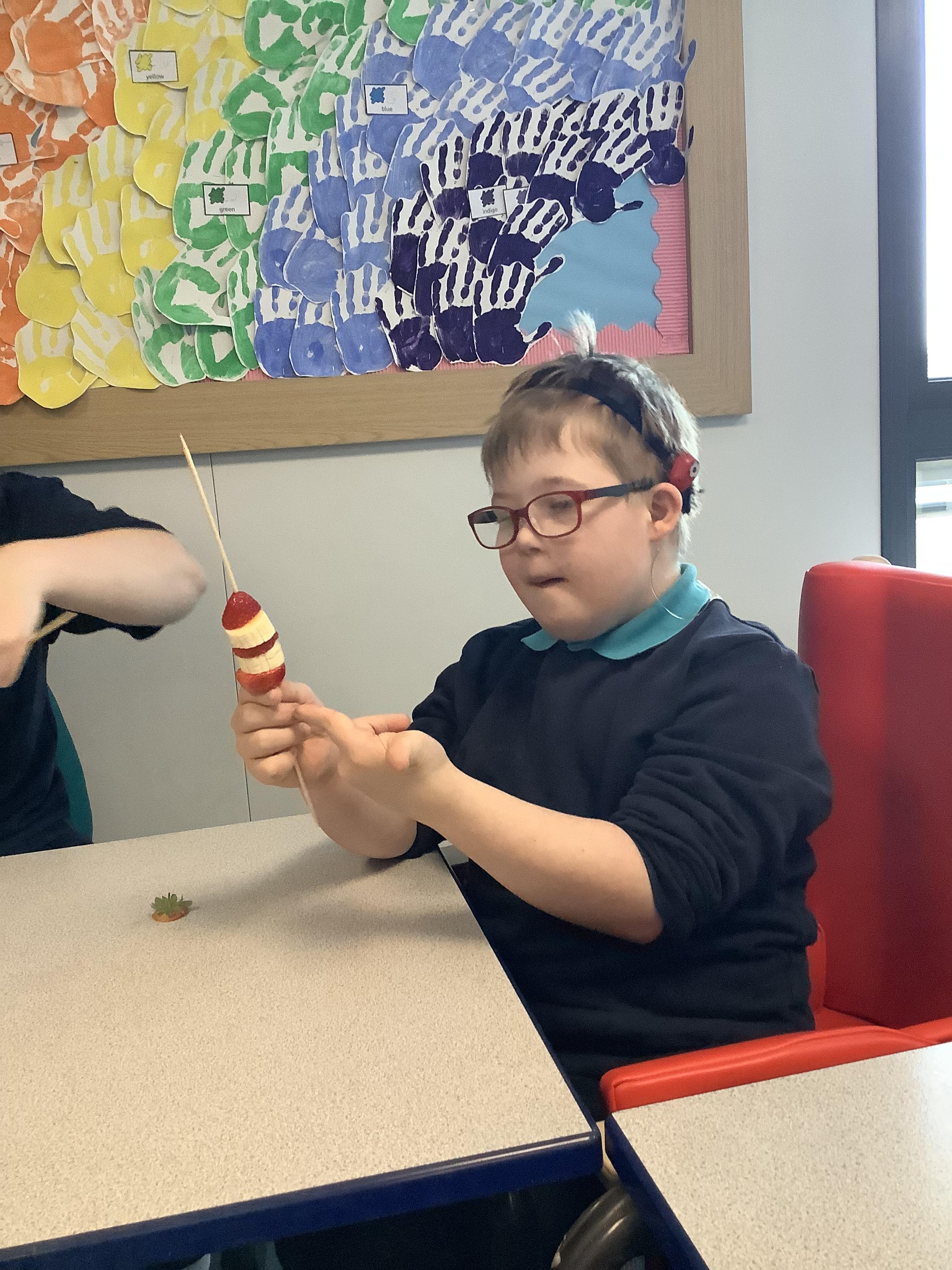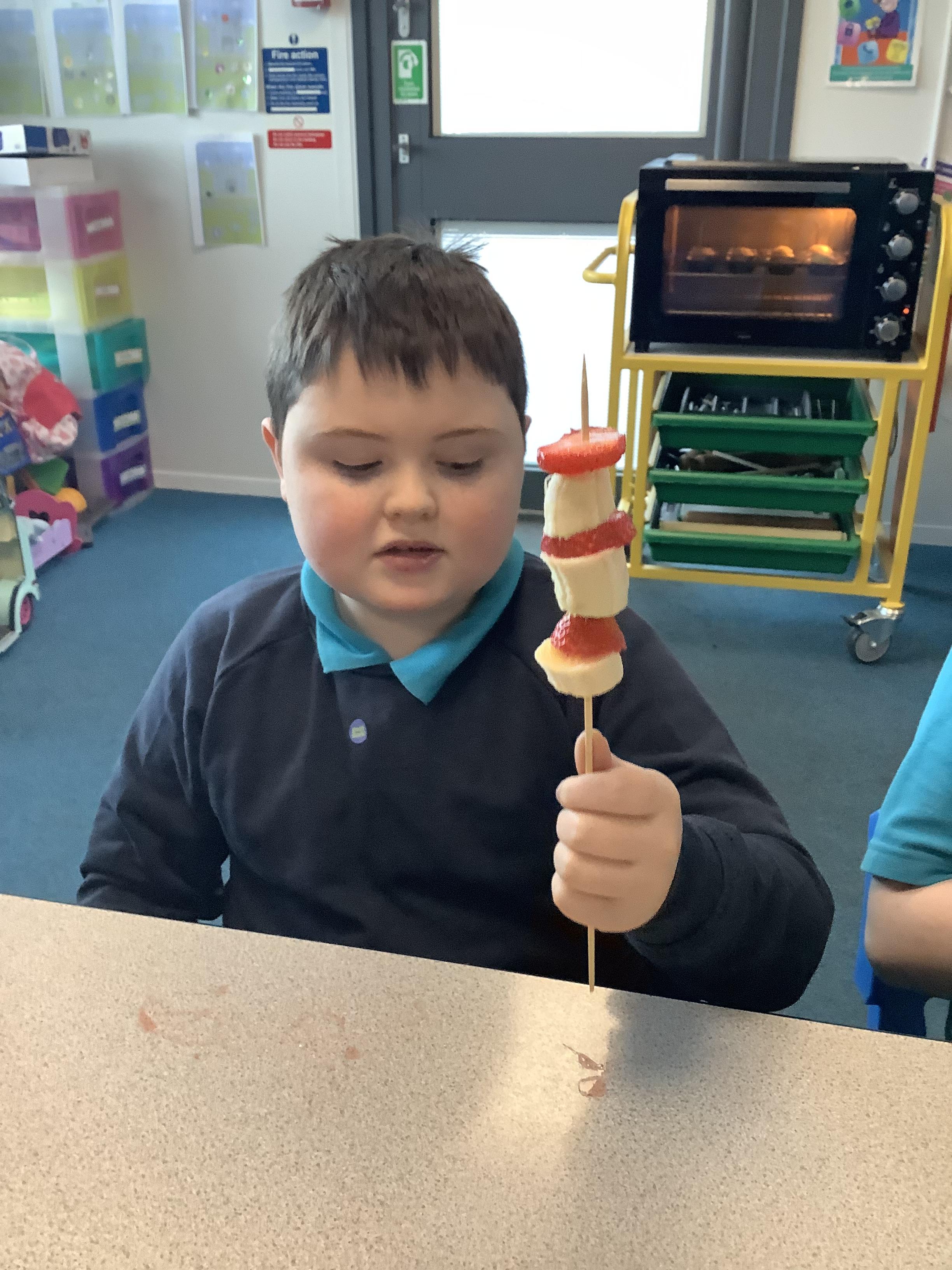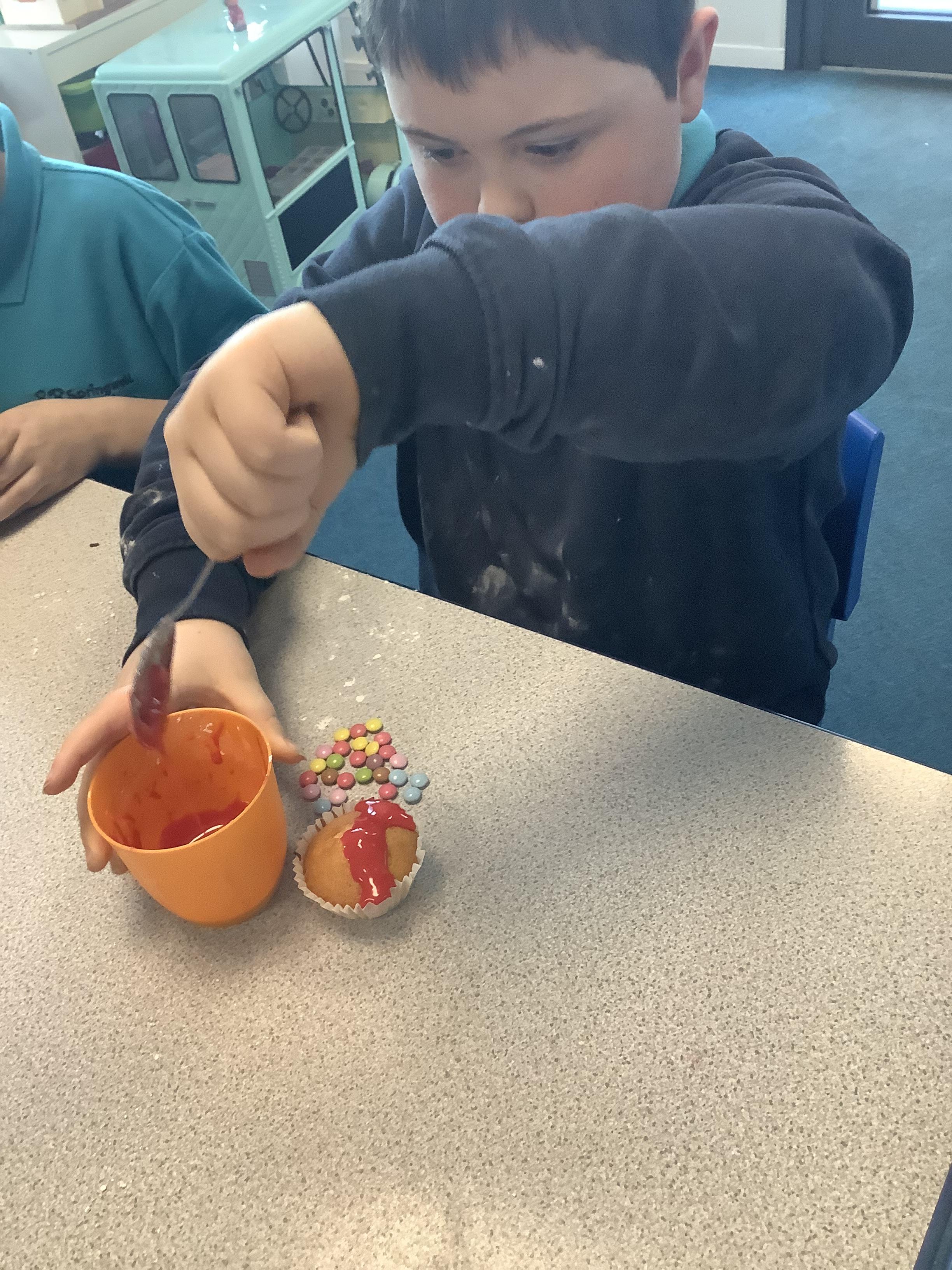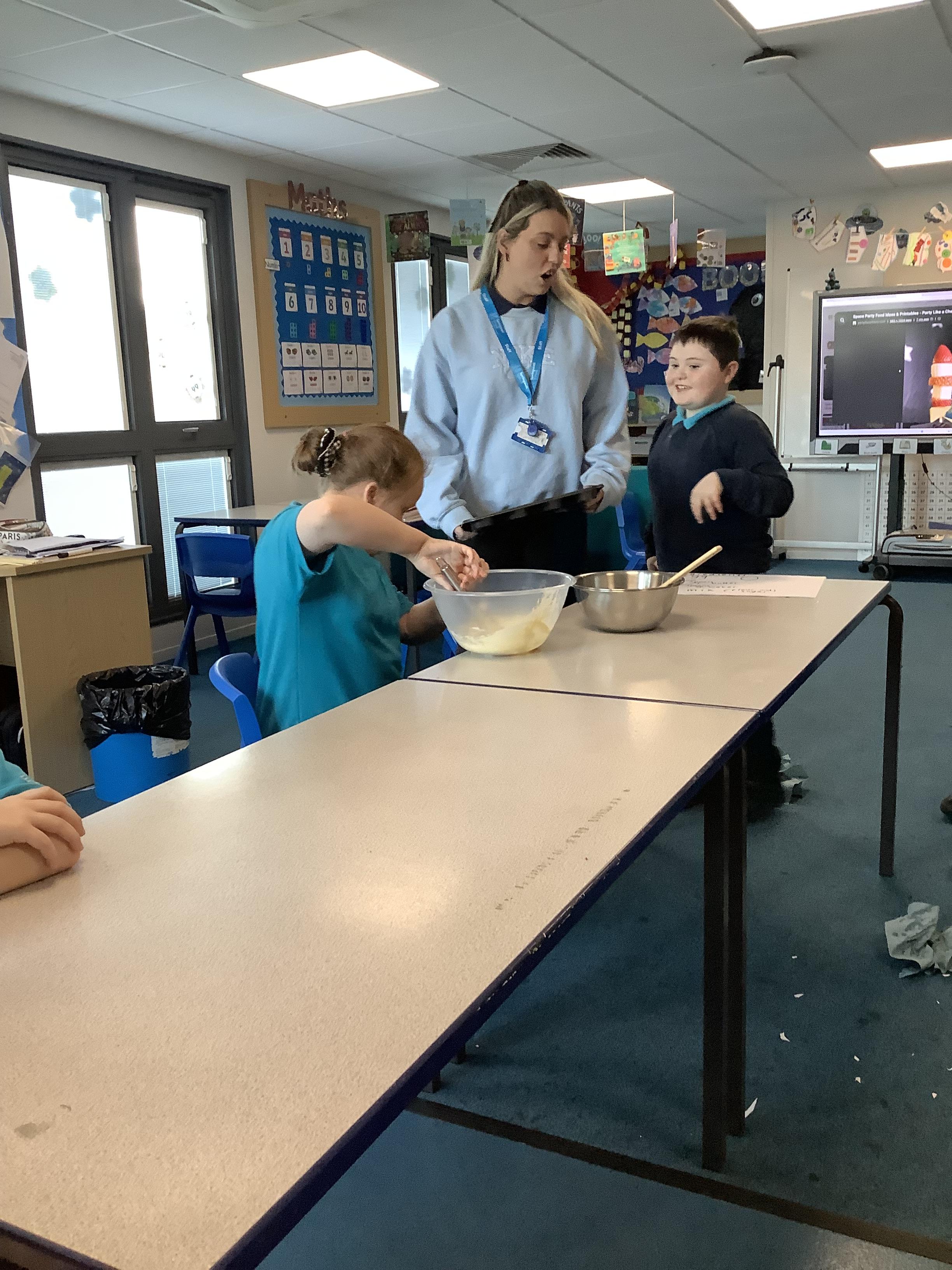 W.B. 26.01.26 - Cookery - We have been making cakes and decorated them with a stars and different coloured icing to create a solar system of cupcakes. We also made healthier snacks - Rocket themed fruit kebabs - which we enjoyed while we waited for the cakes to bake! They were so yummy....