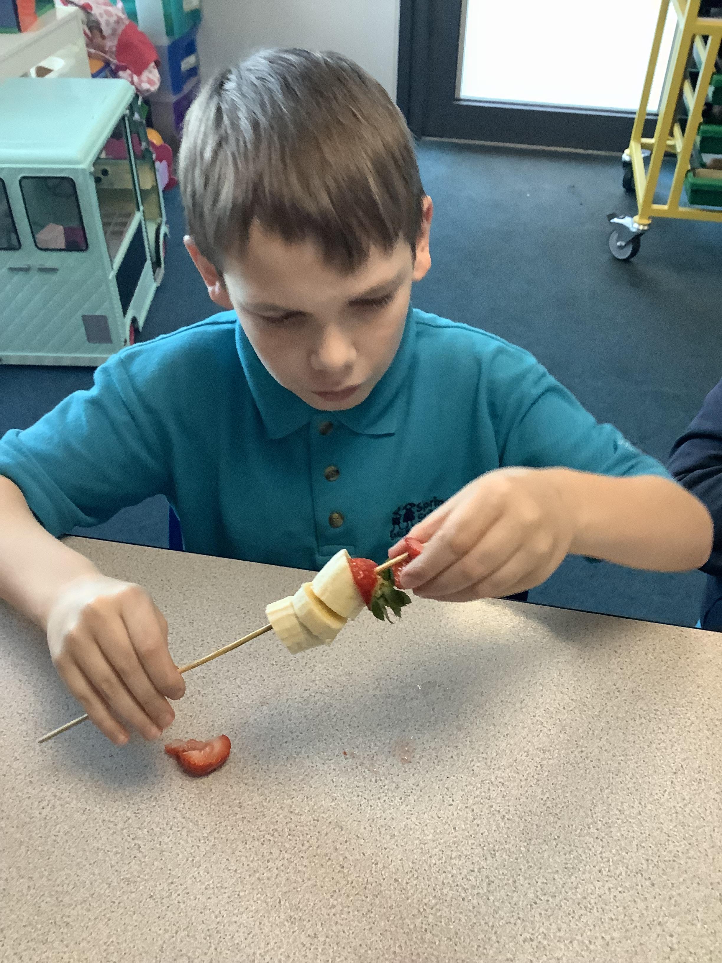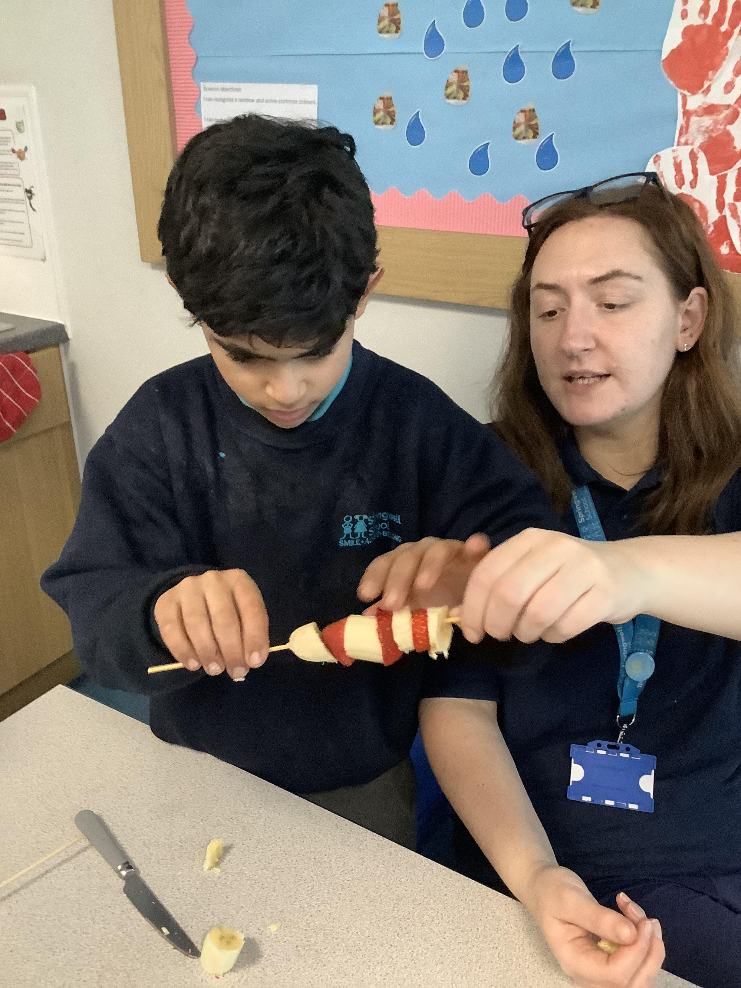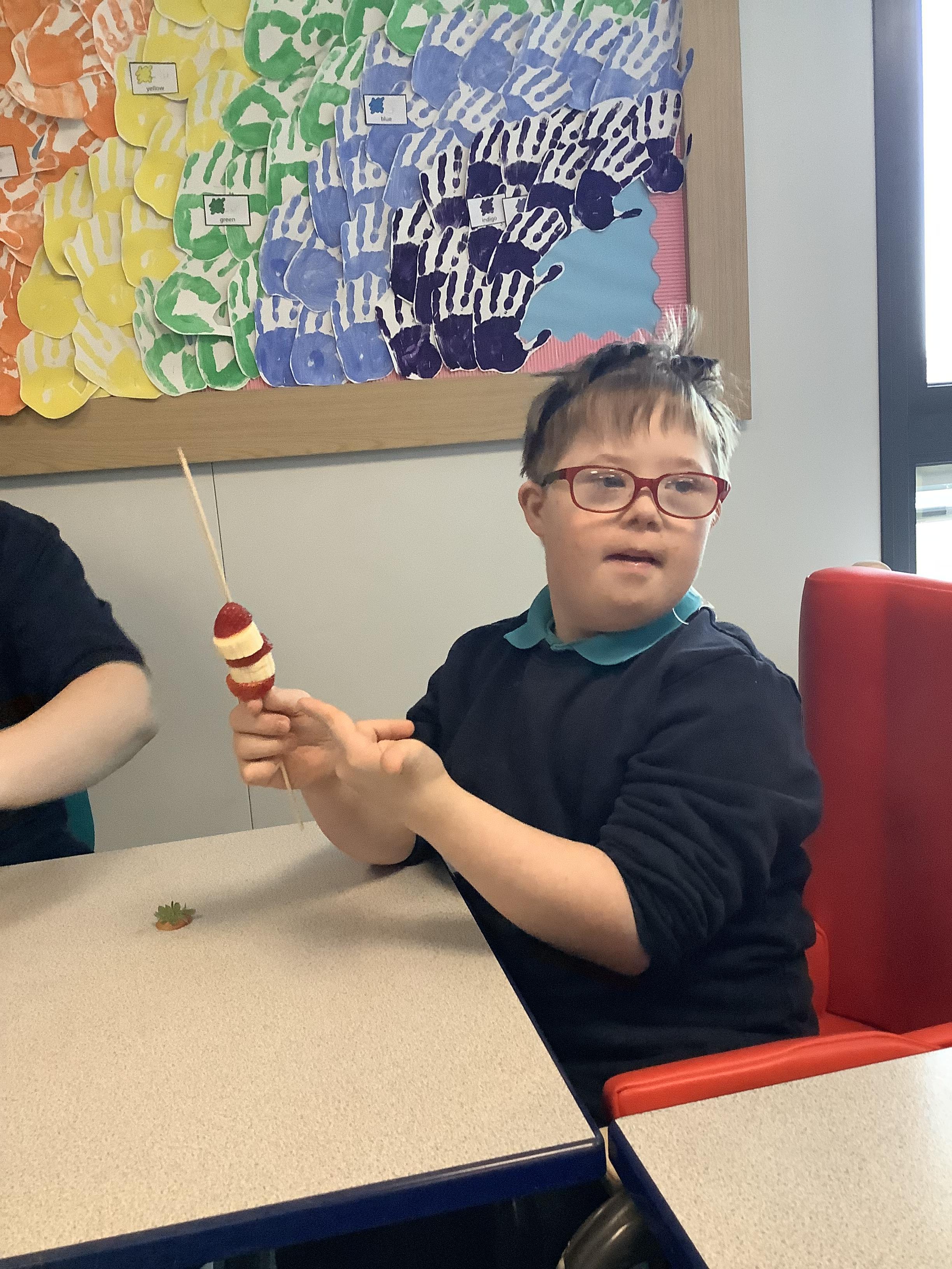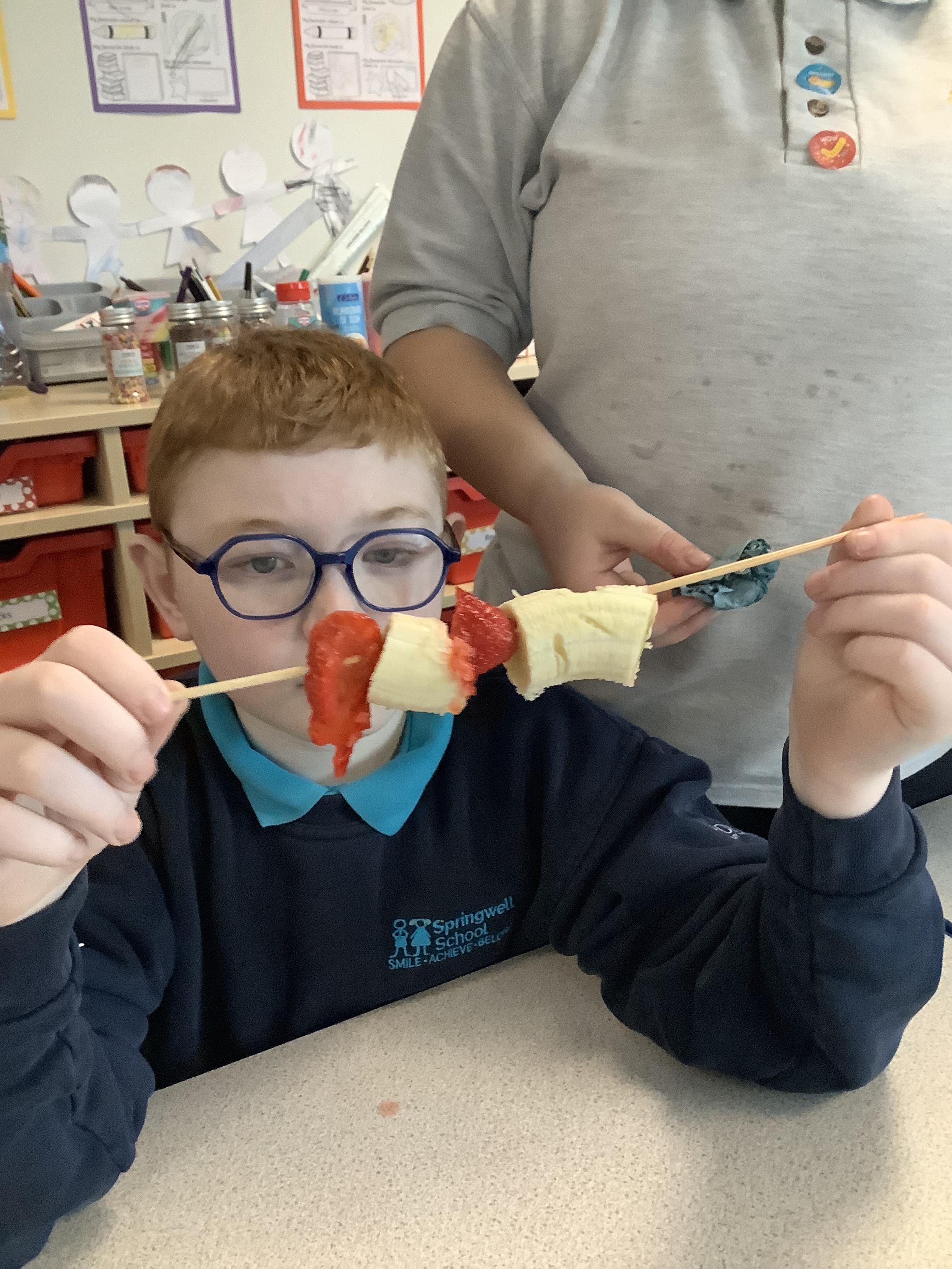 W.B. 26.01.26 - Cookery - We have been making cakes and decorated them with a stars and different coloured icing to create a solar system of cupcakes. We also made healthier snacks - Rocket themed fruit kebabs - which we enjoyed while we waited for the cakes to bake! They were so yummy....