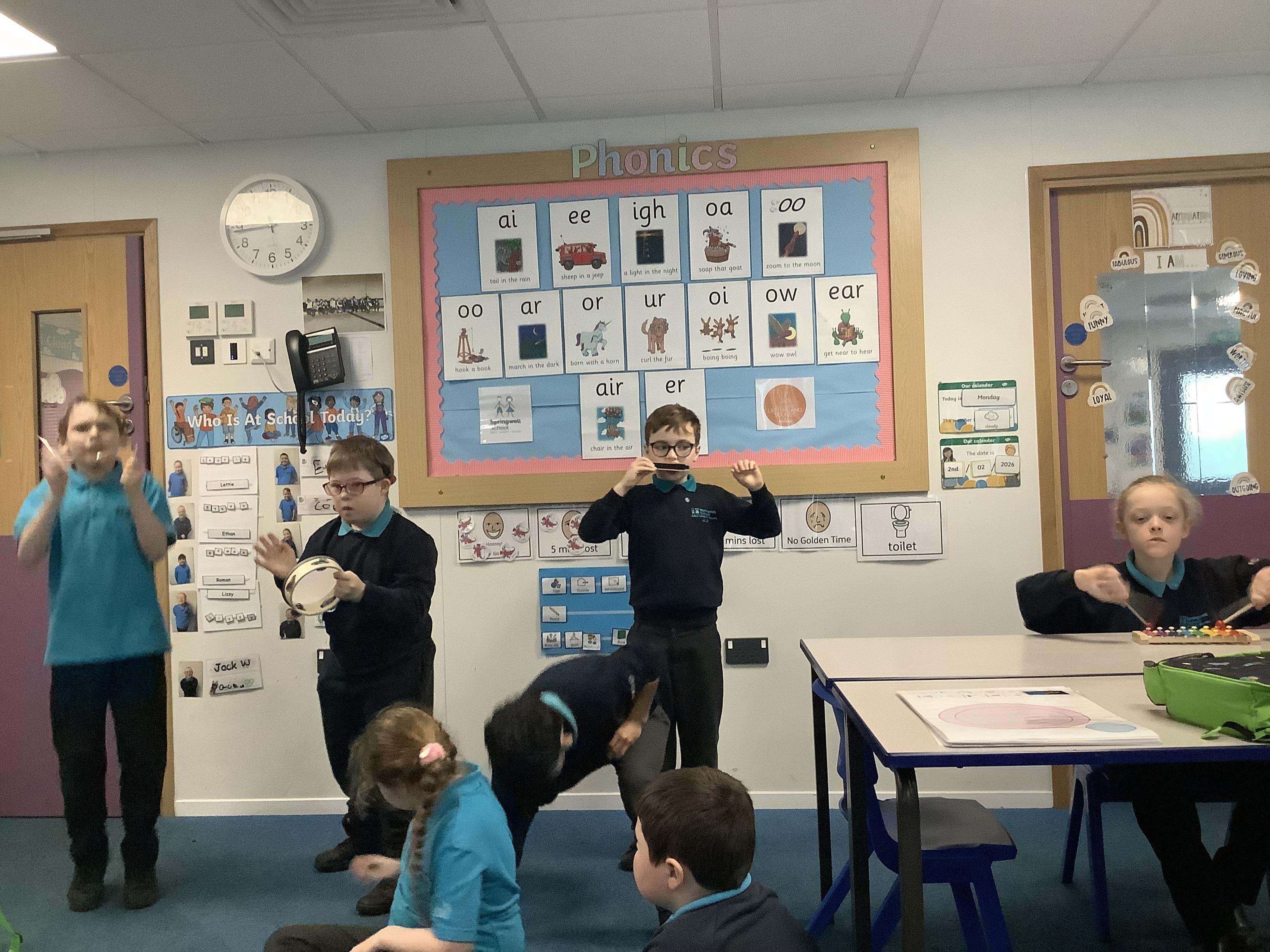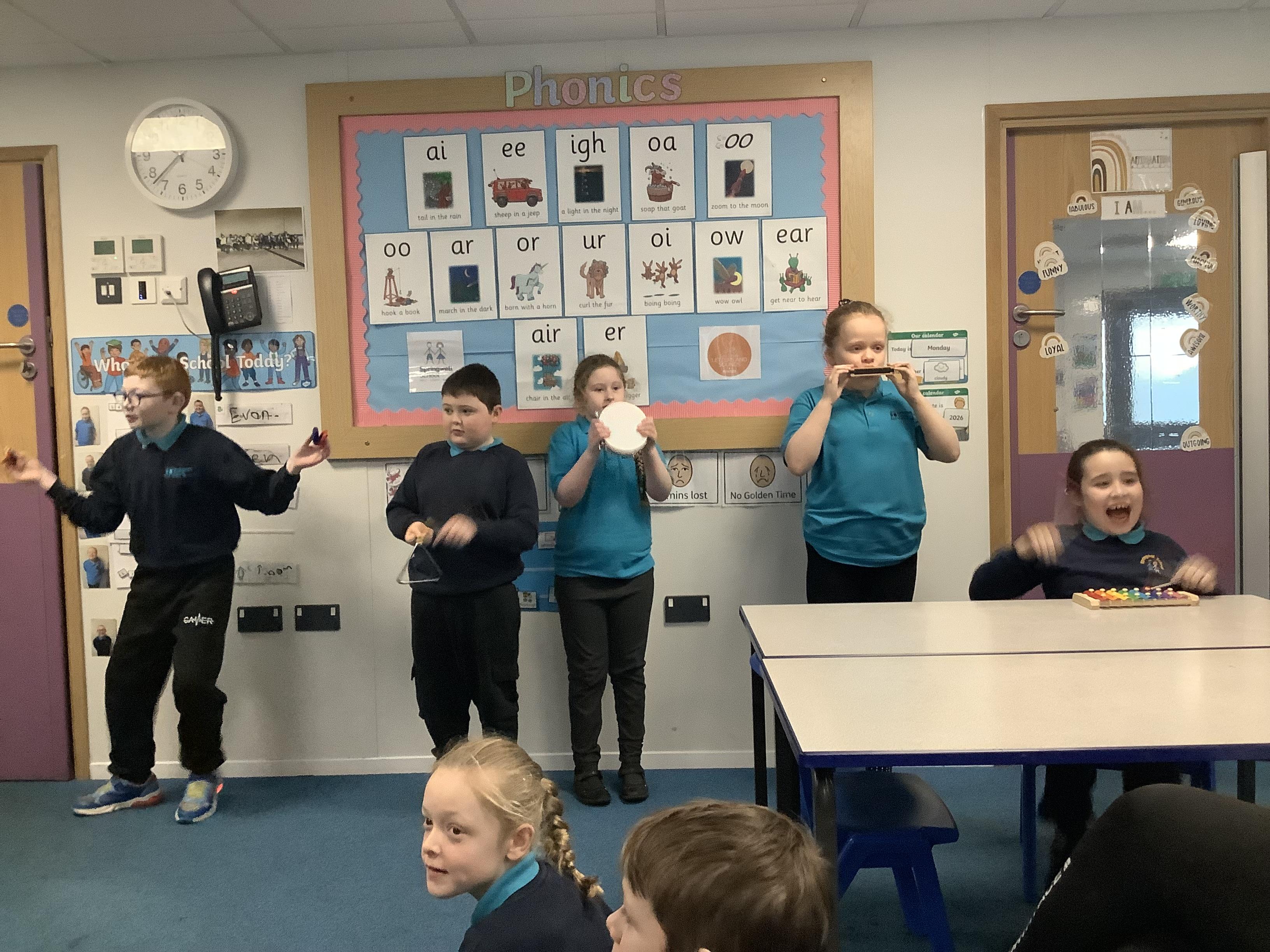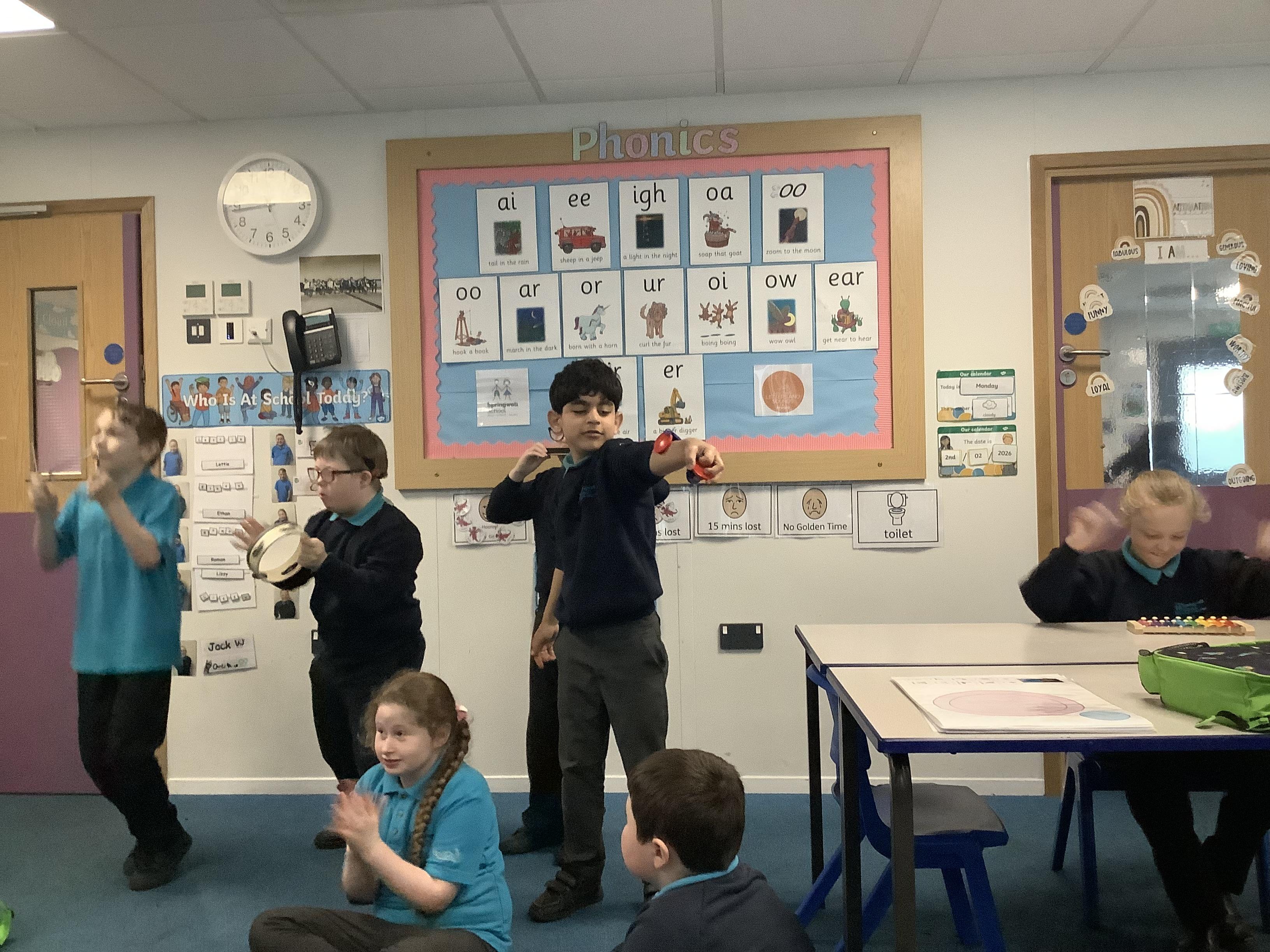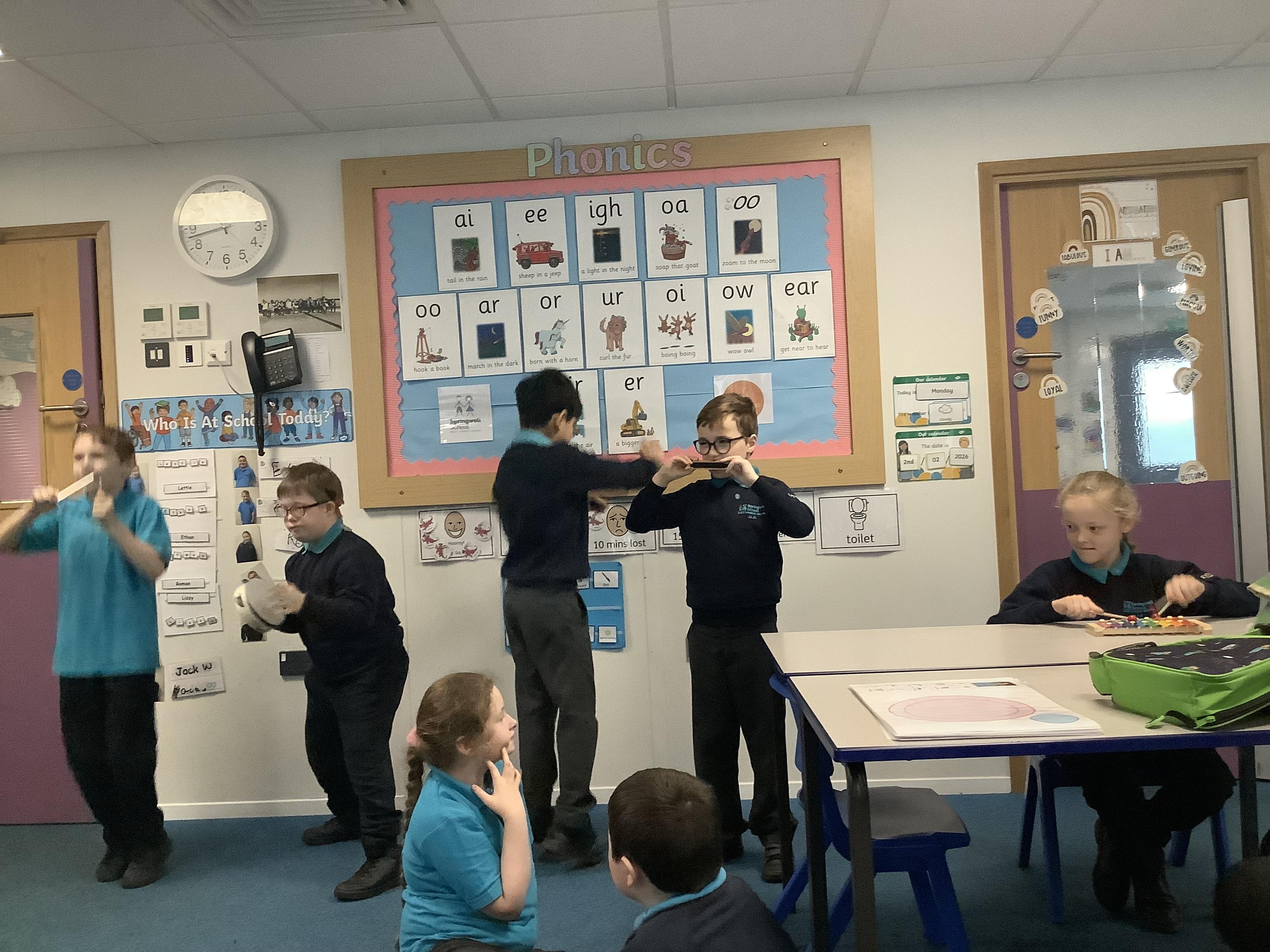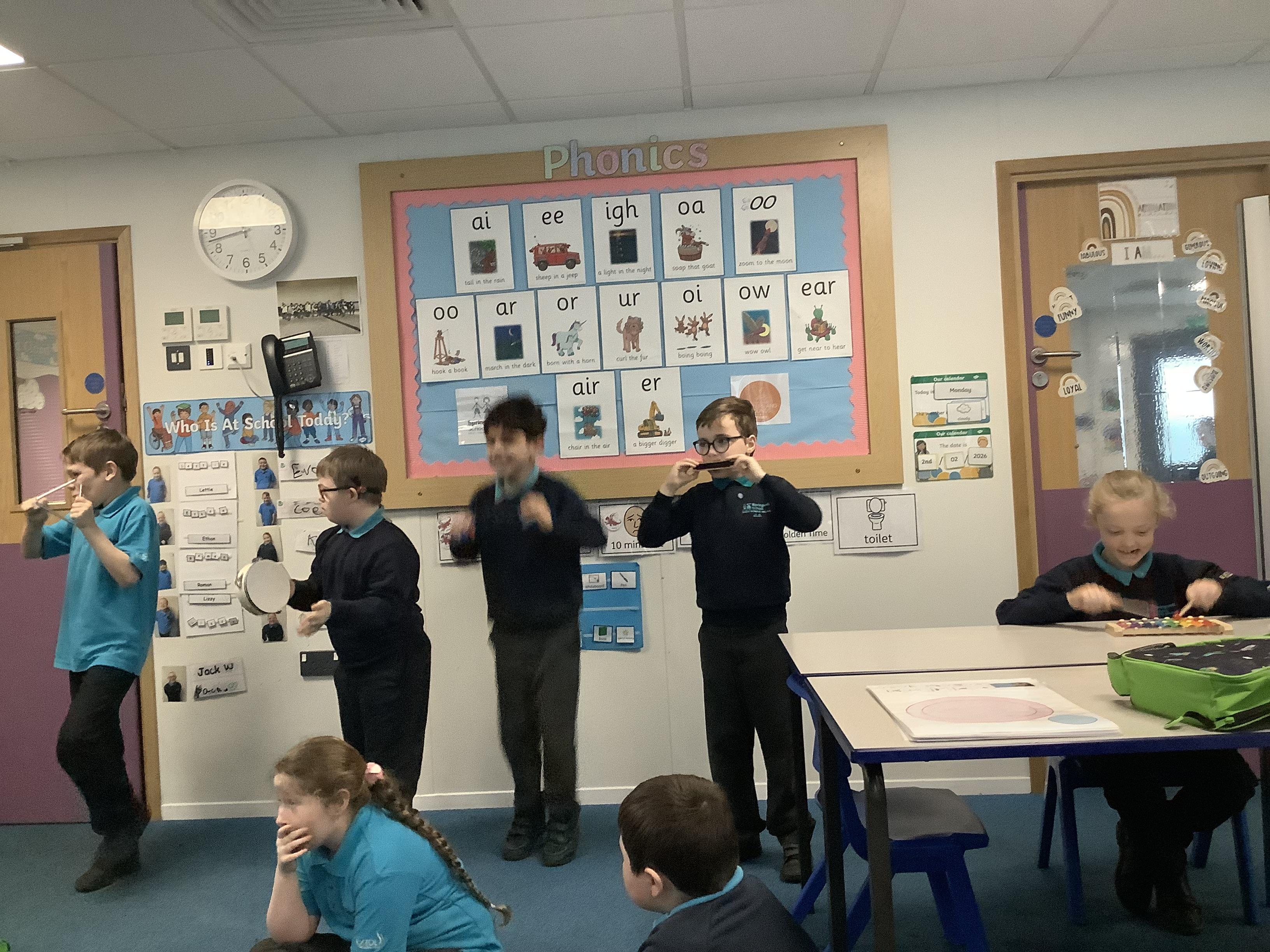 W.B. 02.02.26 - Music - We have been taking part in a musical performance with instruments to some very popular songs requested by Dragon Class.