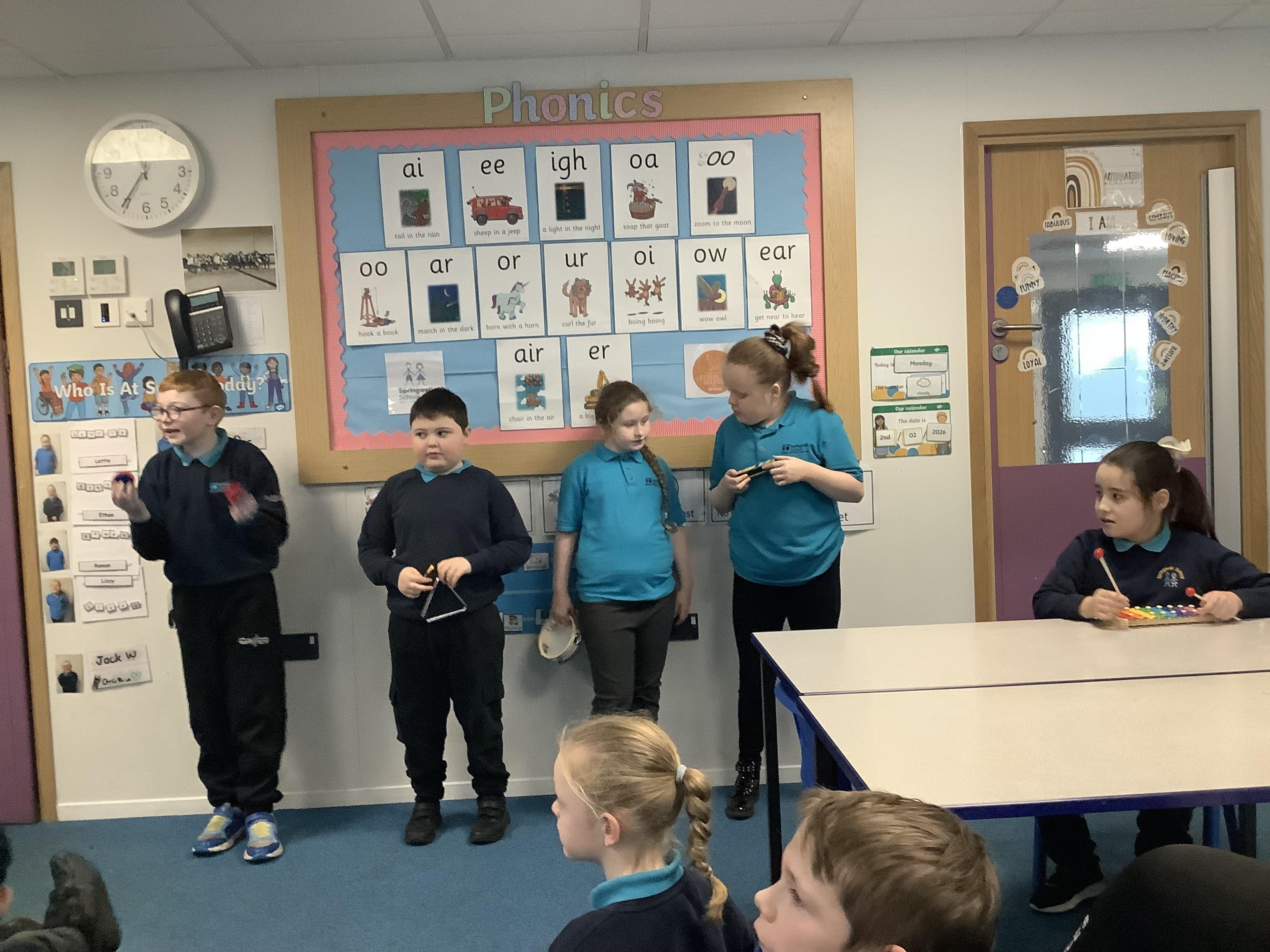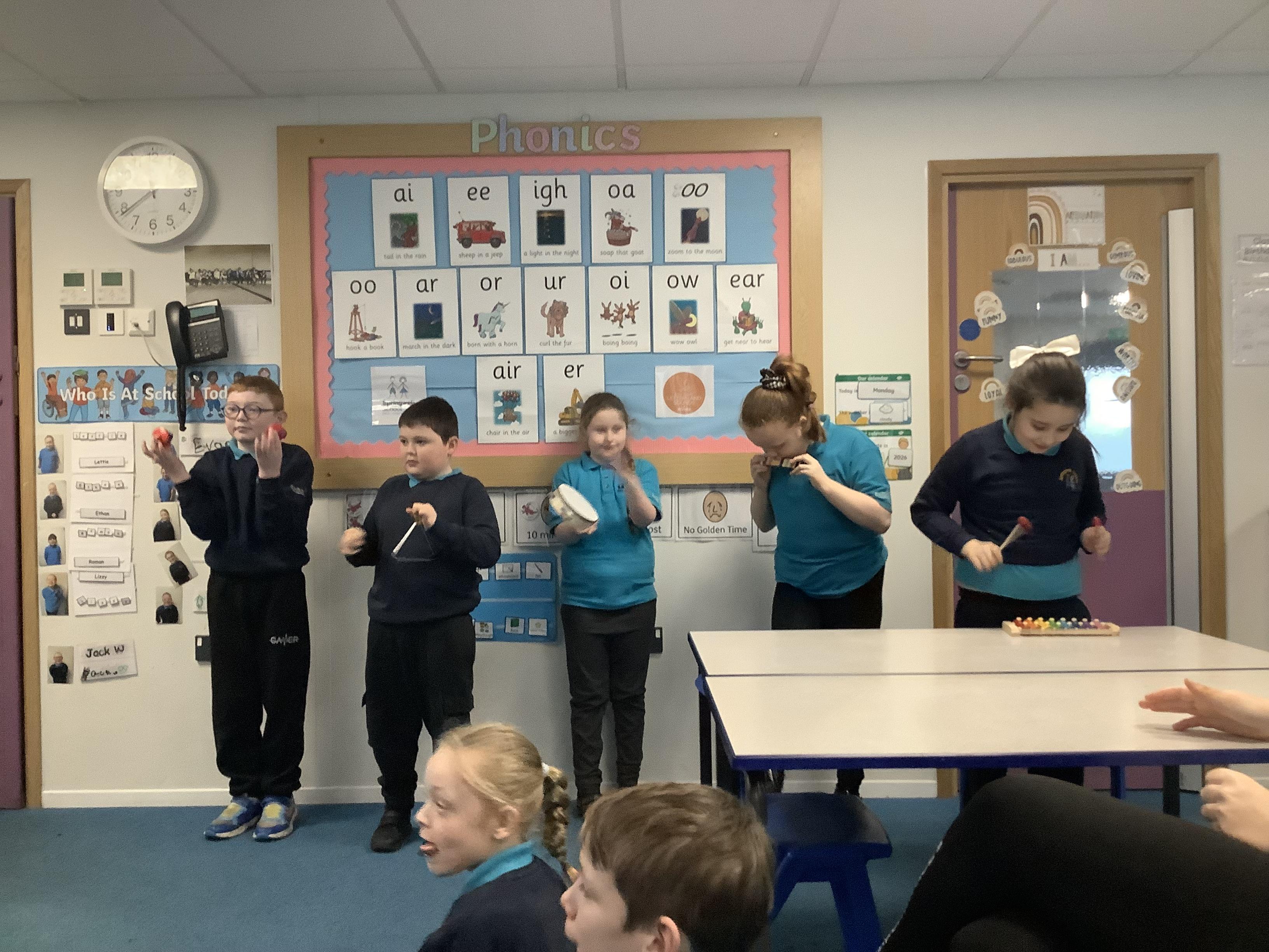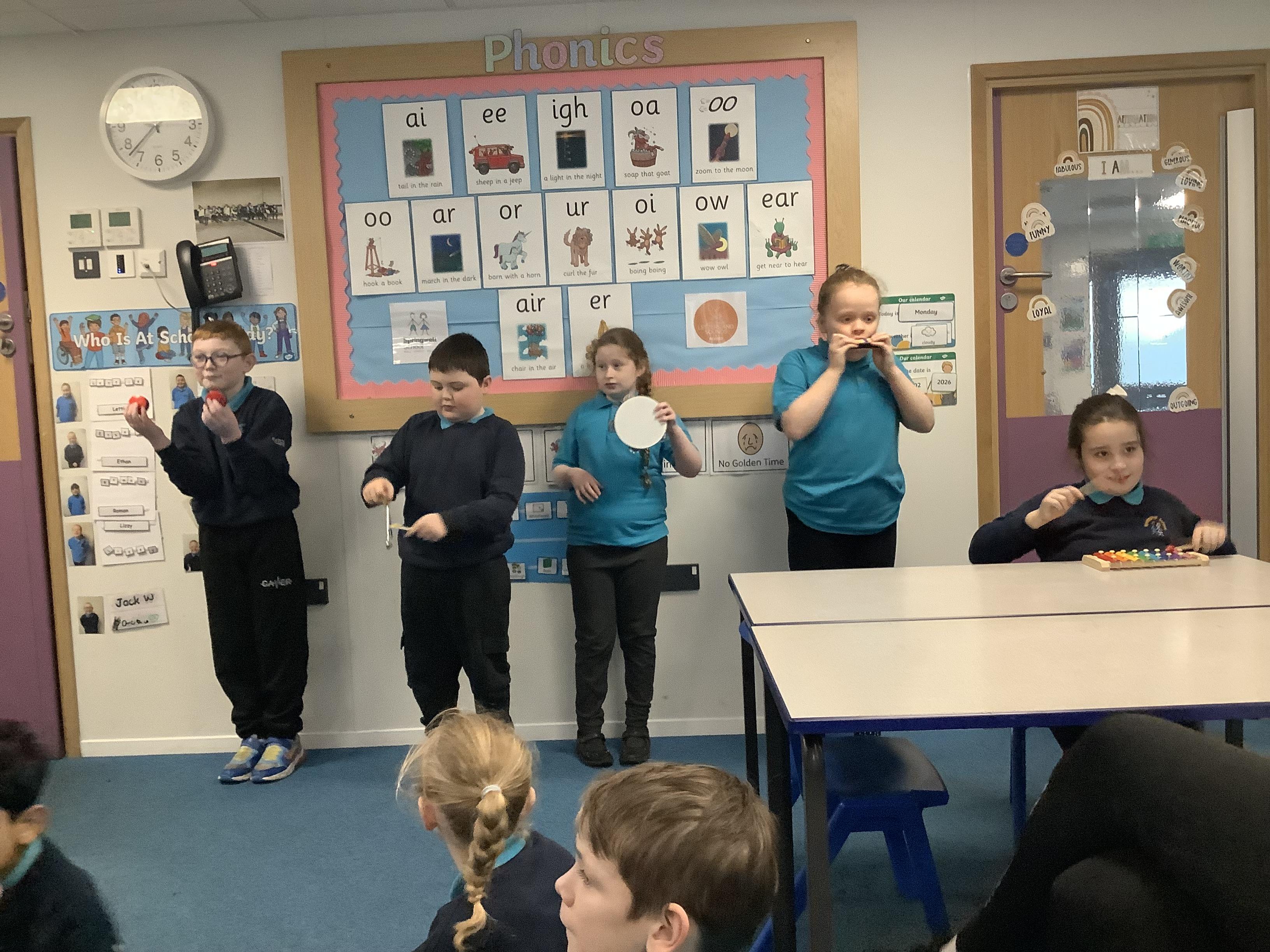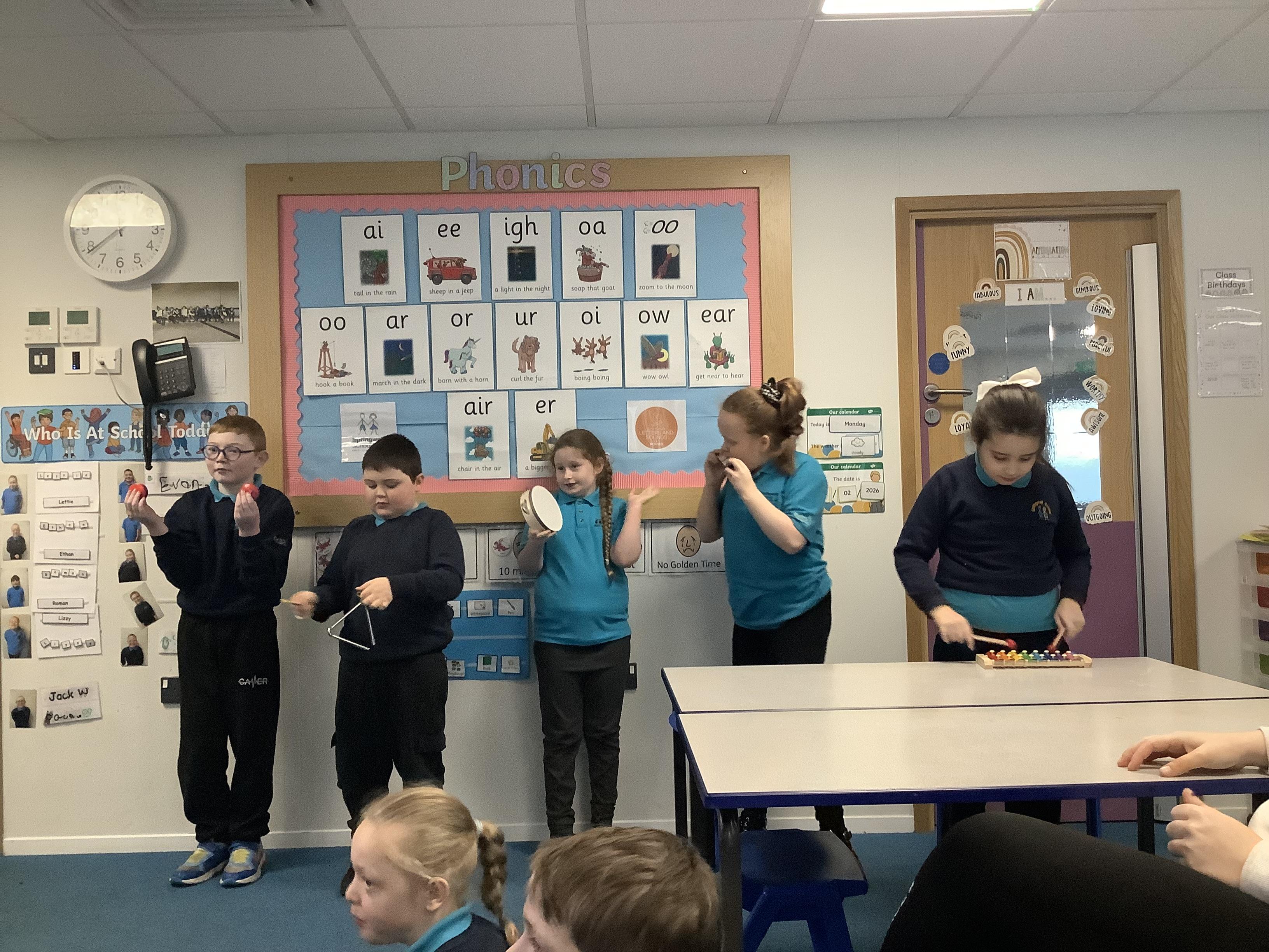 W.B. 02.02.26 - Music - We have been taking part in a musical performance with instruments to some very popular songs requested by Dragon Class.