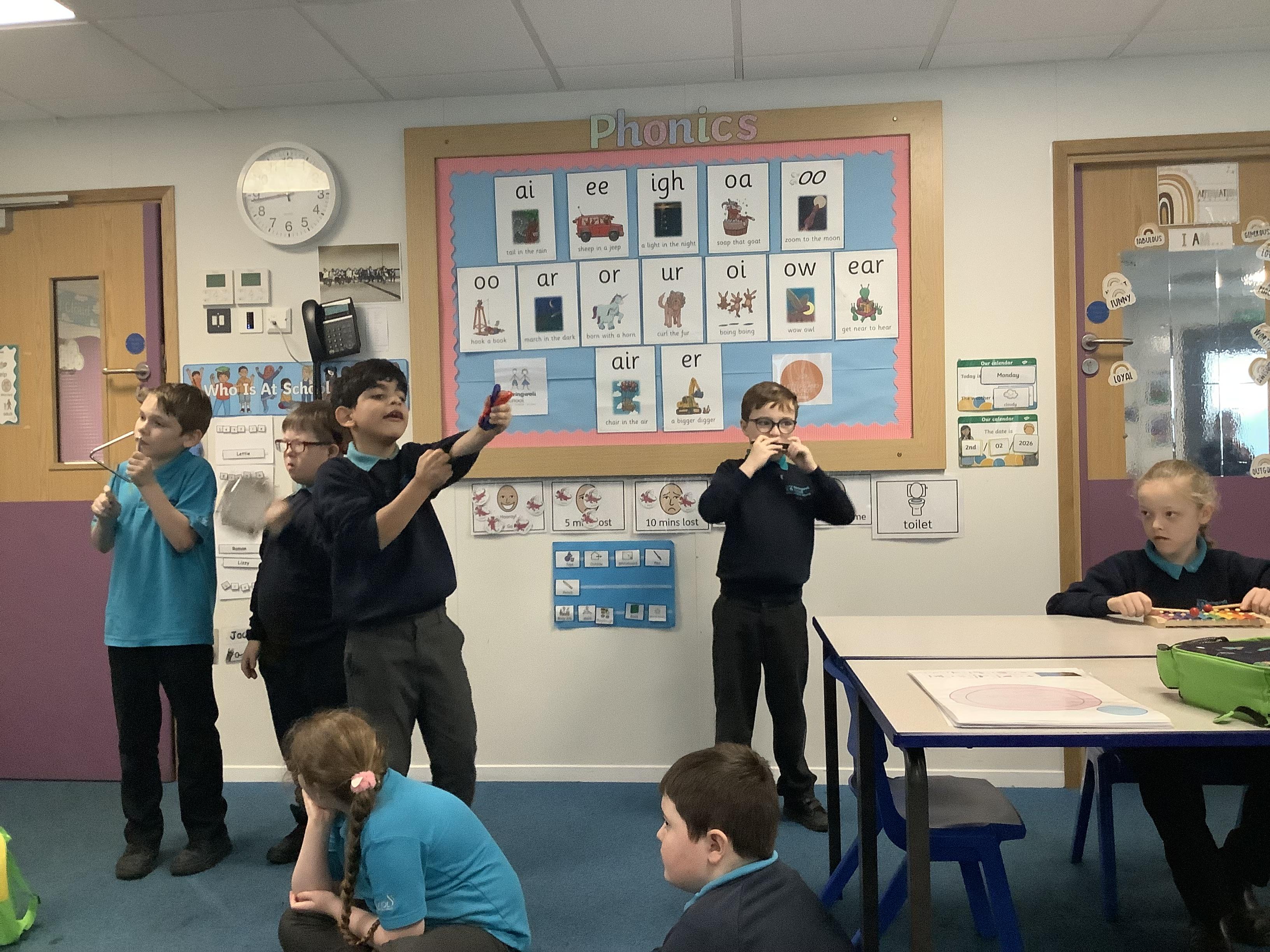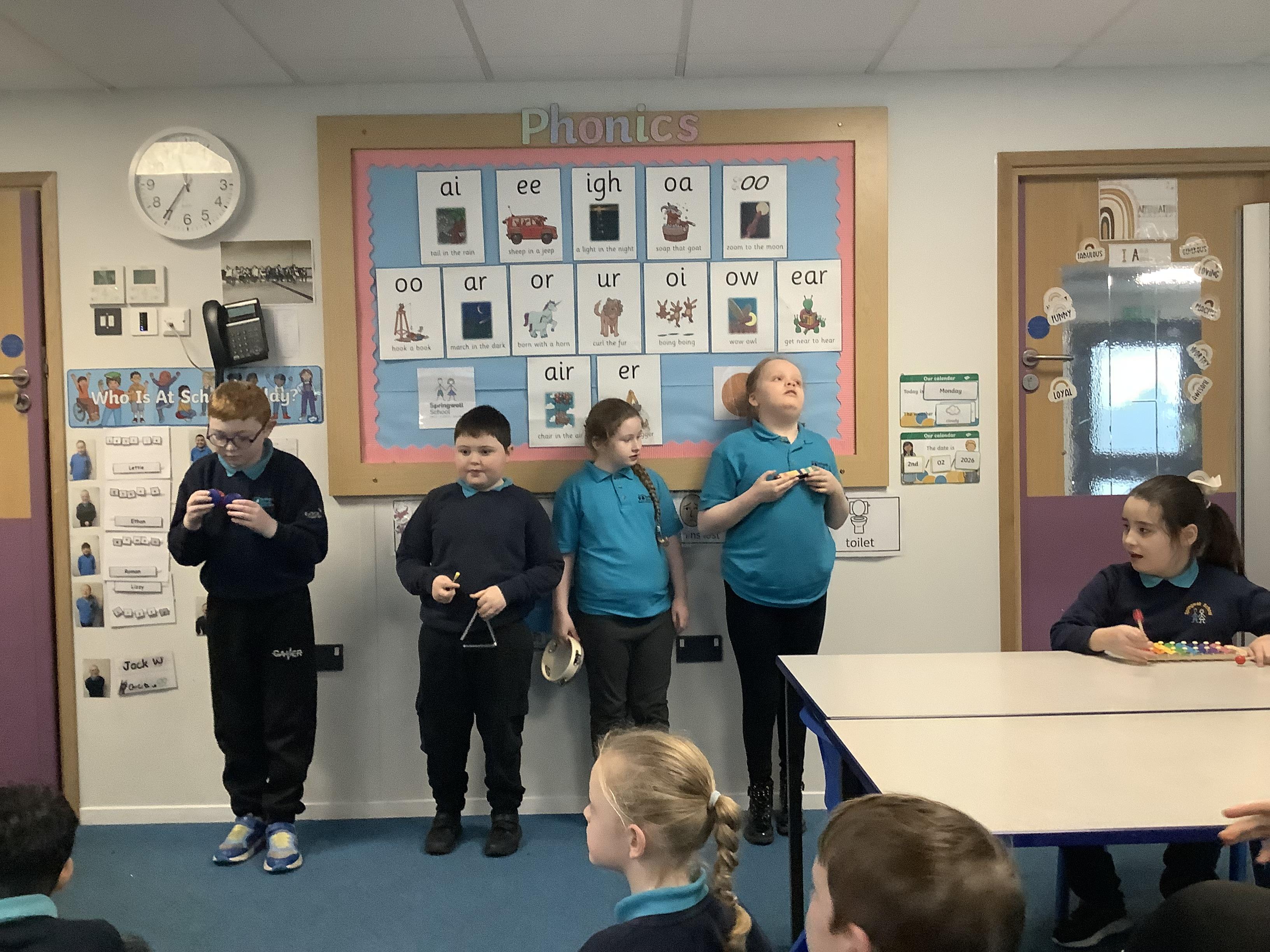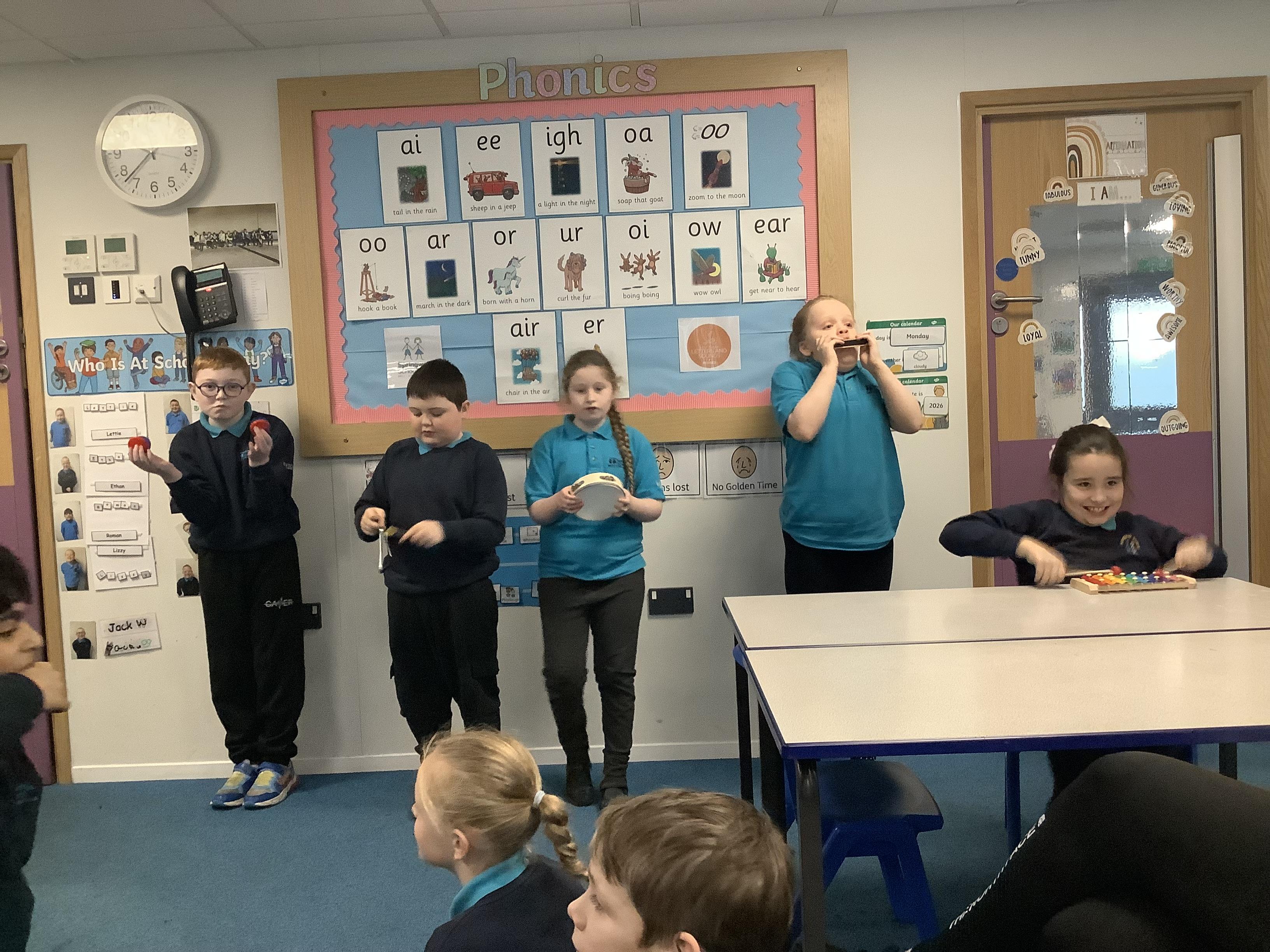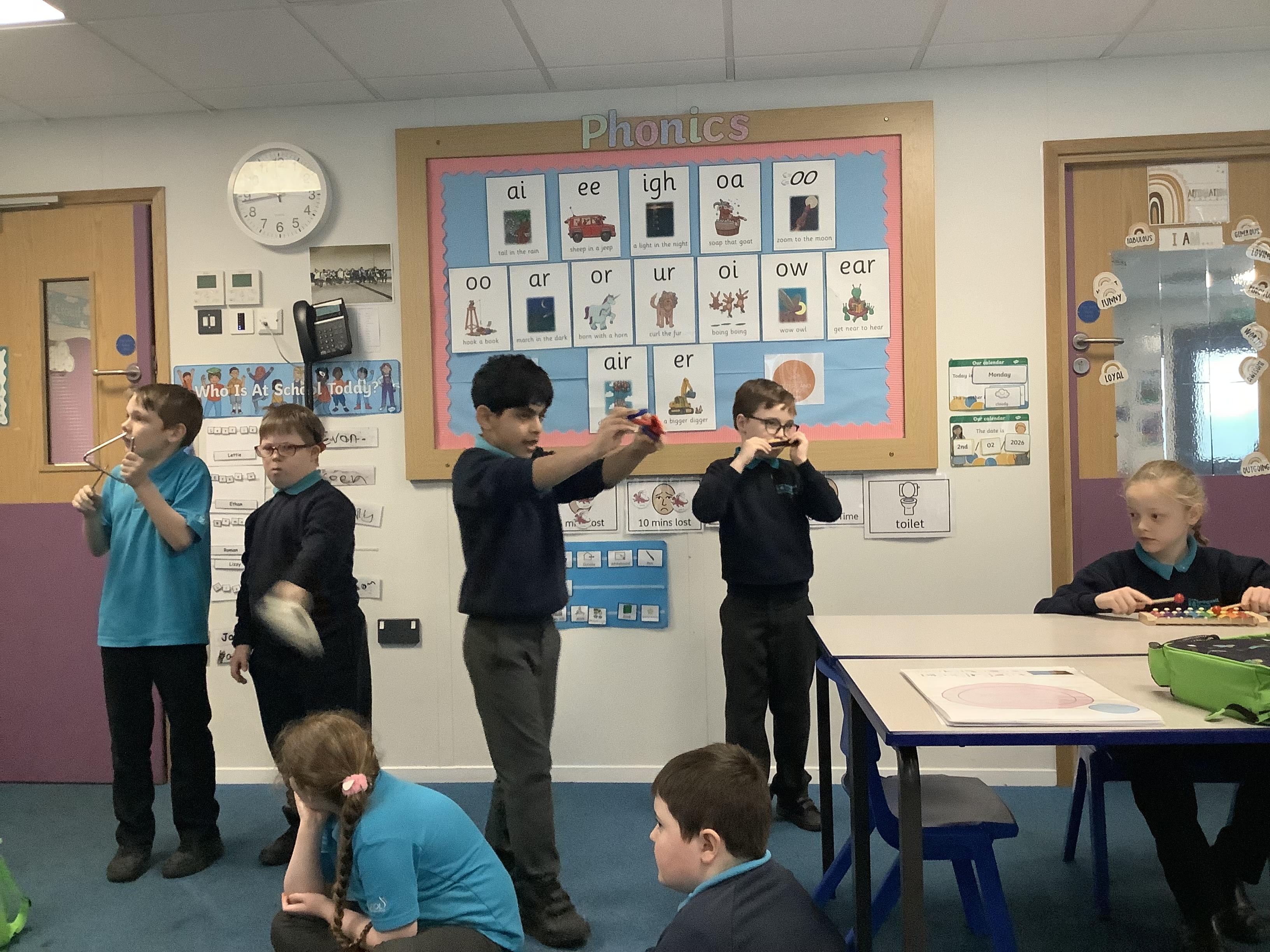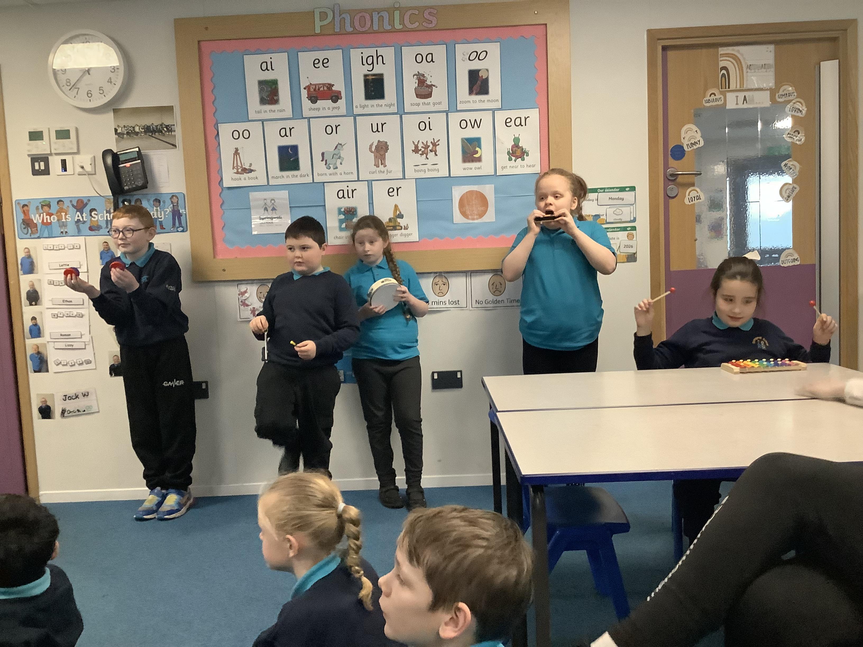 W.B. 02.02.26 - Music - We have been taking part in a musical performance with instruments to some very popular songs requested by Dragon Class.