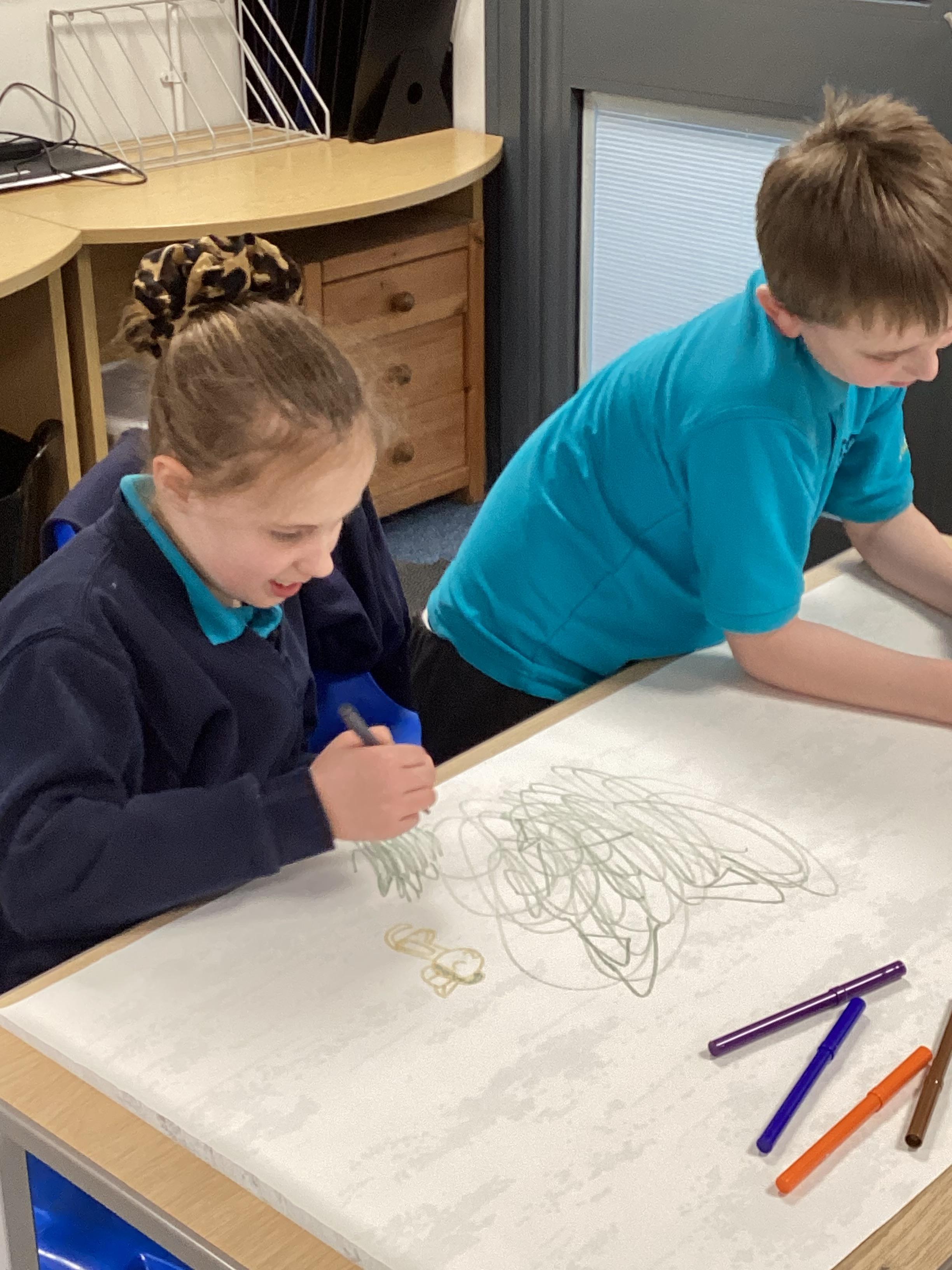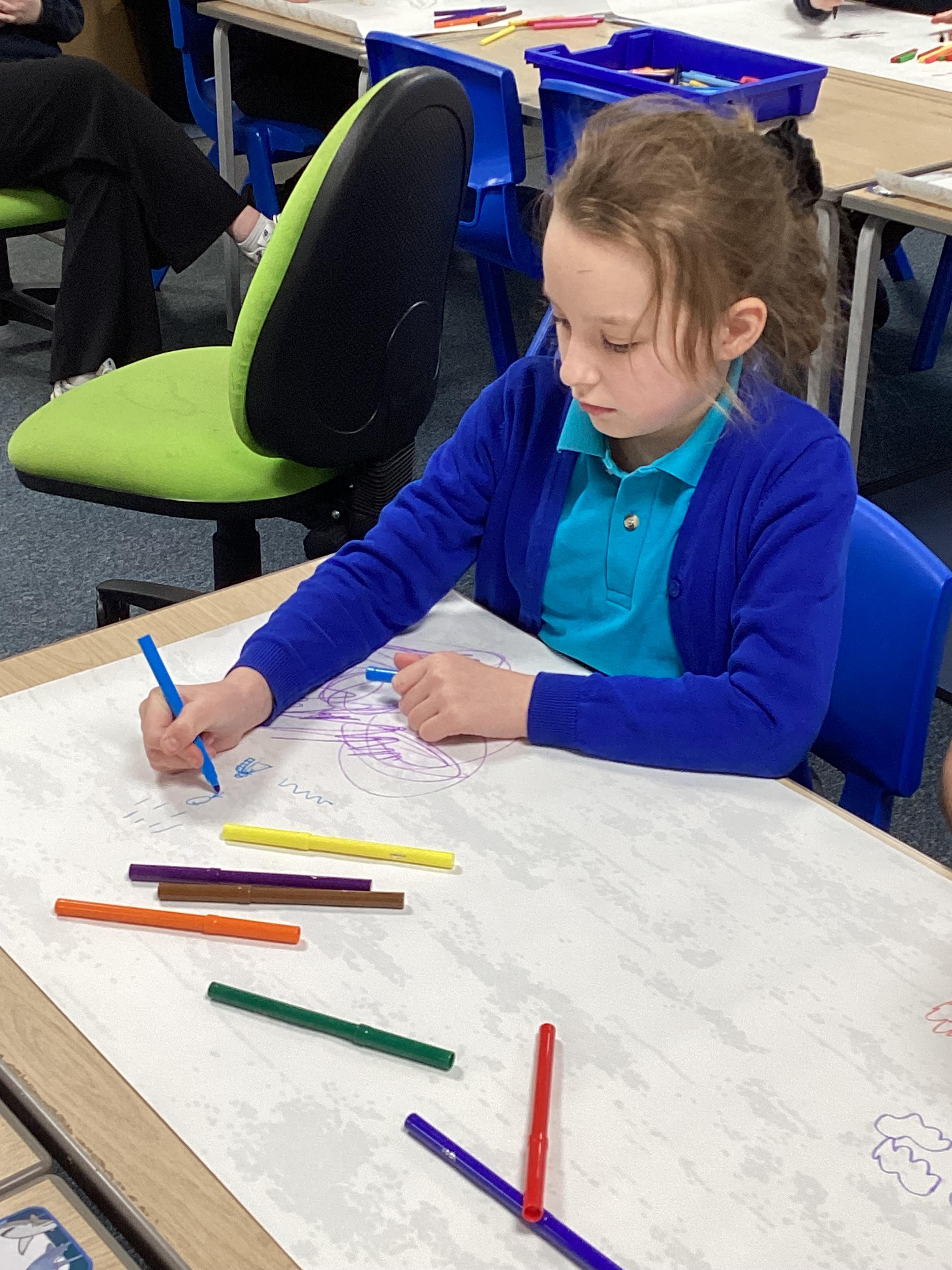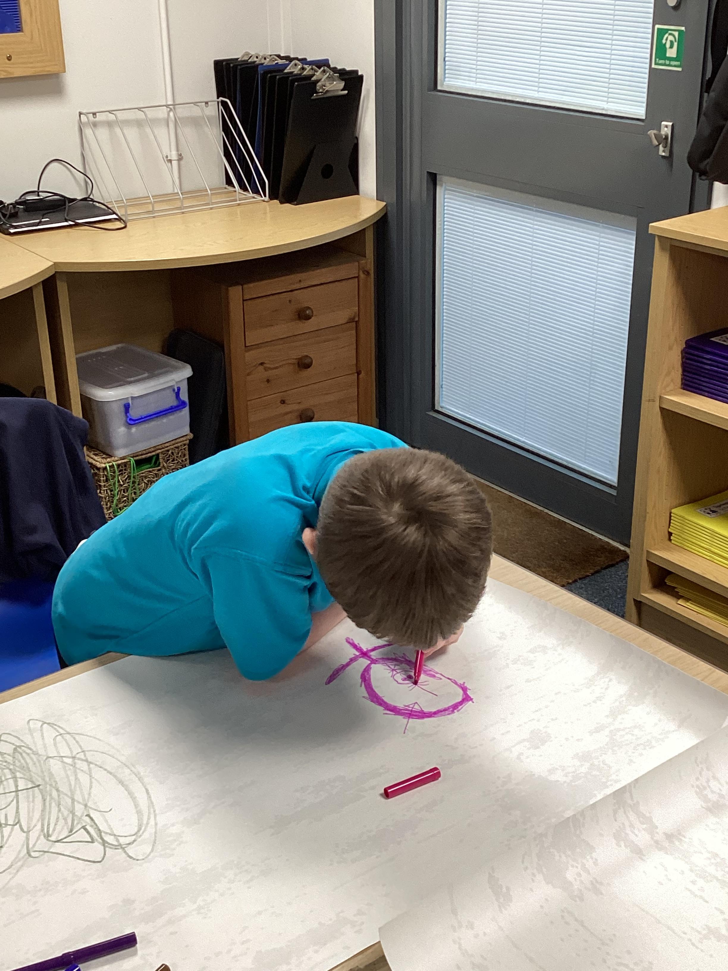 In PSHRE today, we have been discussing what to do if we feel angry. We discussed different techniques, such as listening to music, doing exercise or having a little nap. We listened to different music and drew/scribbled on large sheets to show what we thought and felt. Great work, sharks!