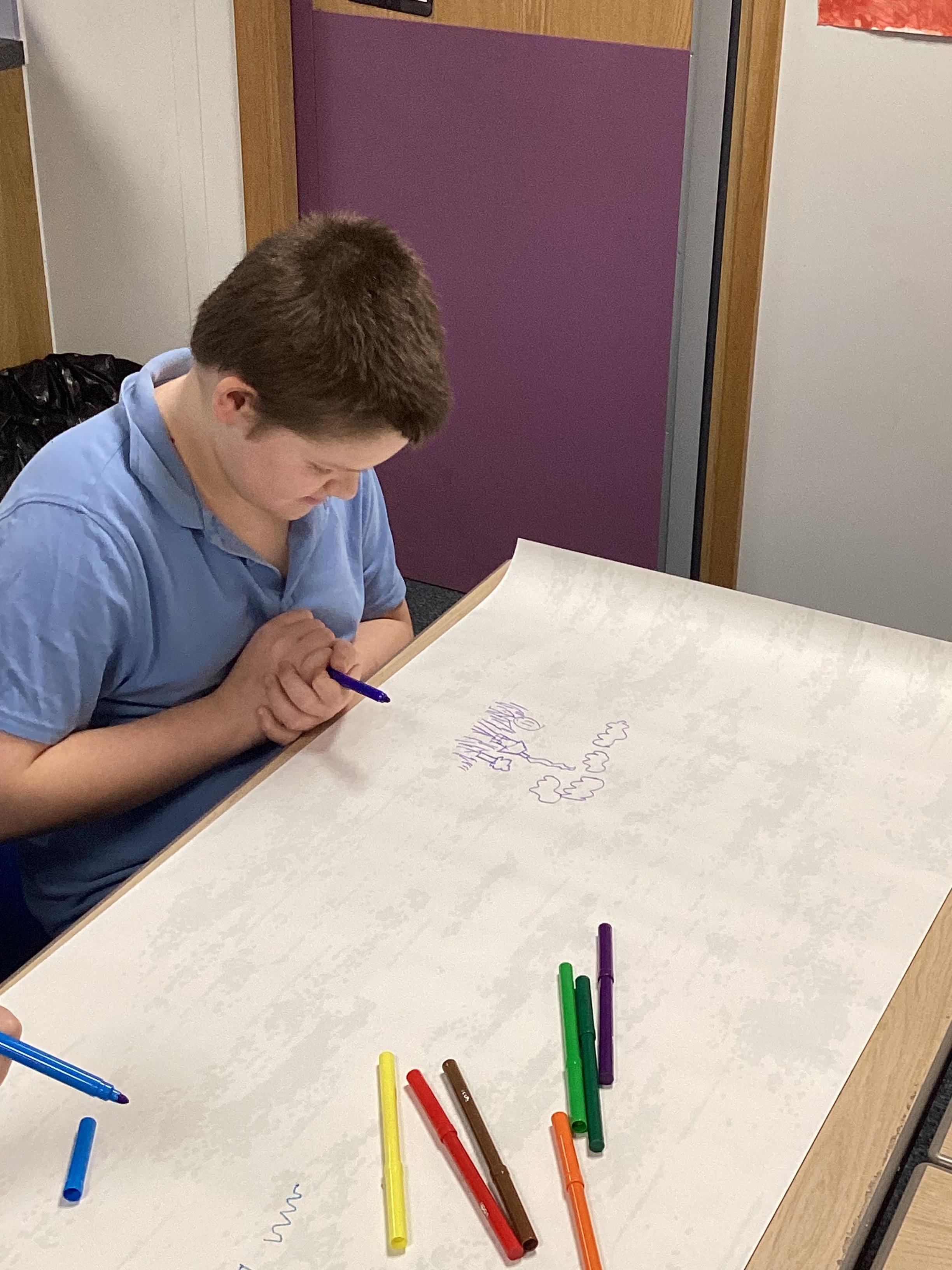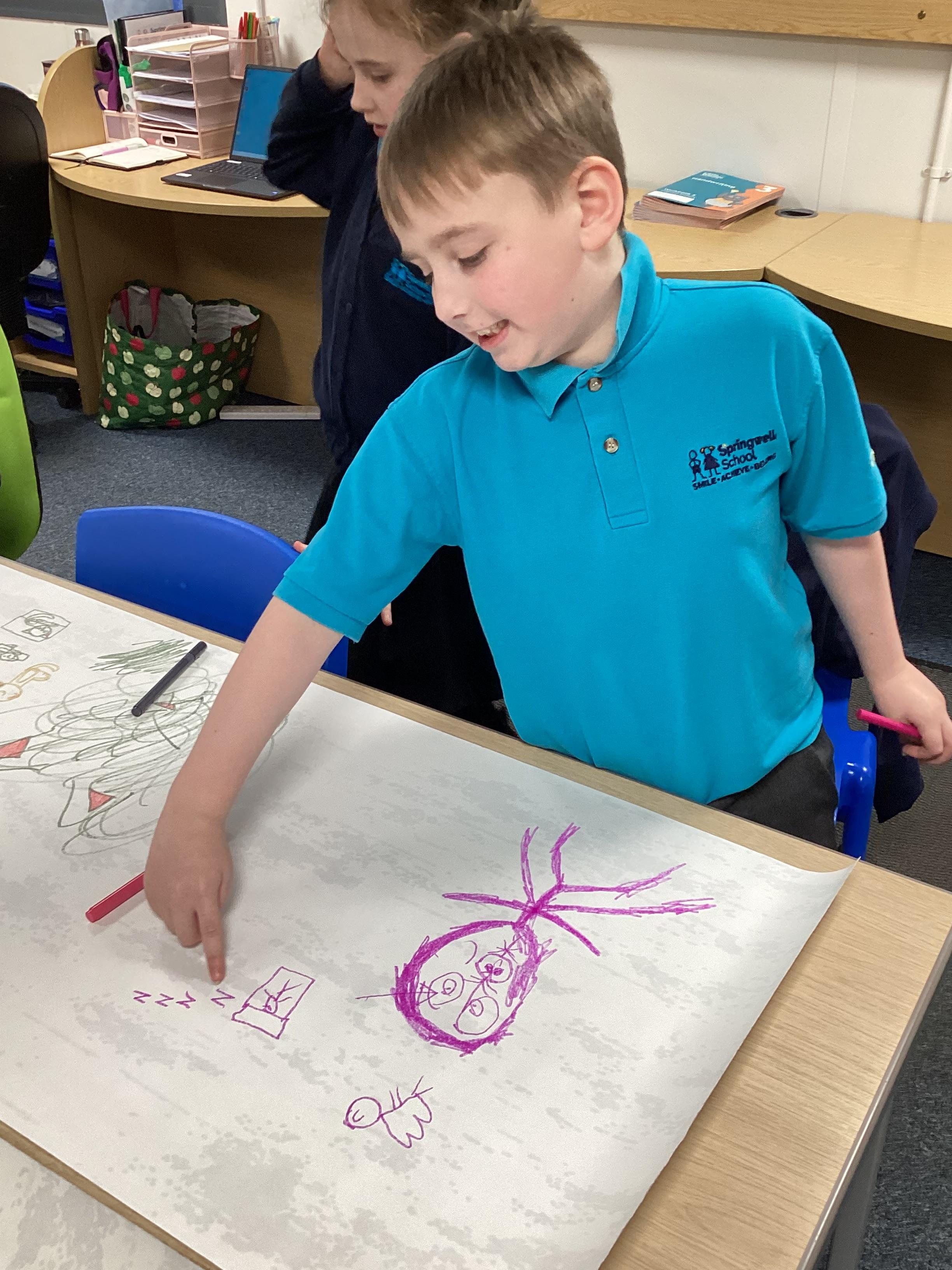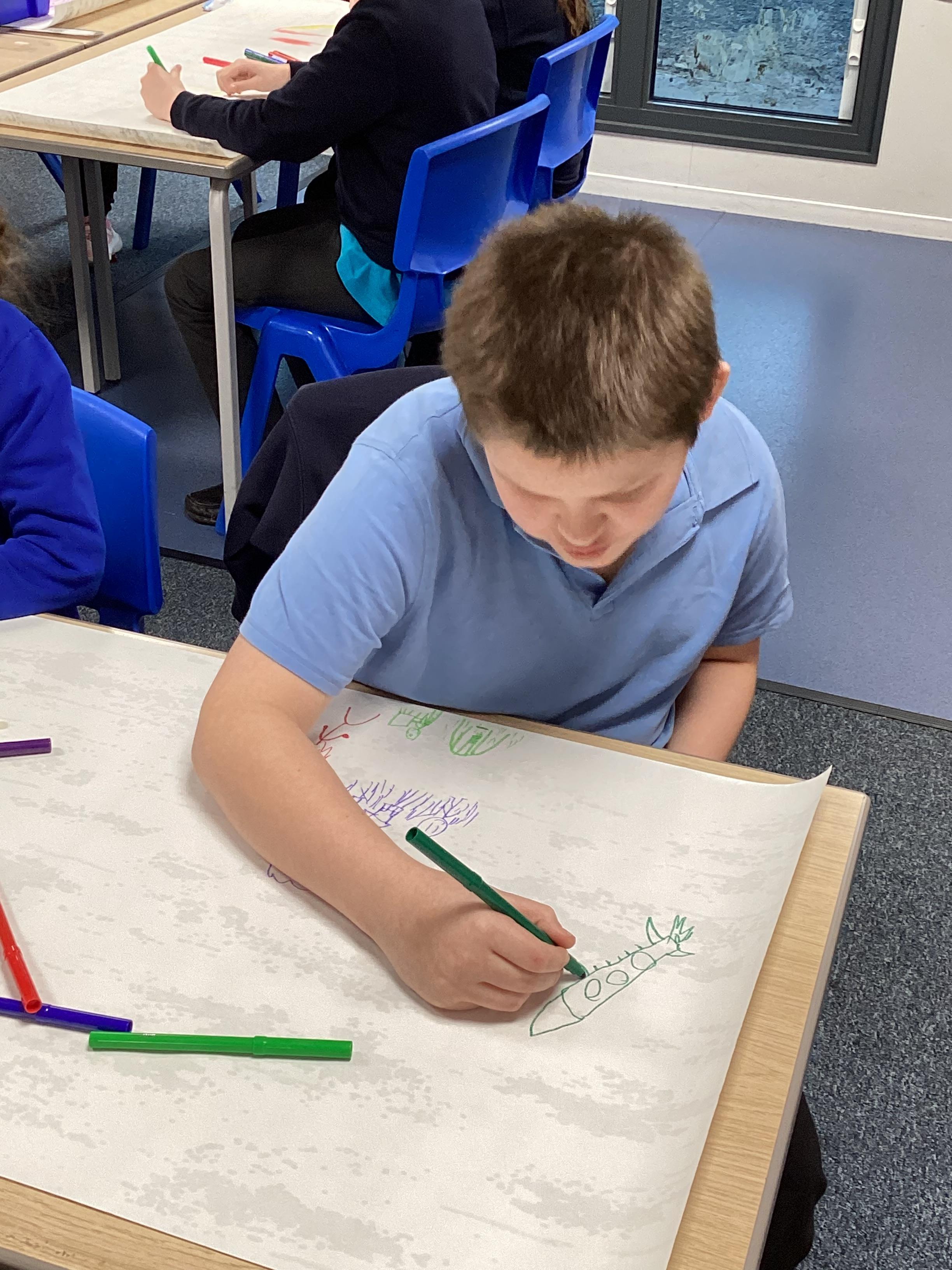 In PSHRE today, we have been discussing what to do if we feel angry. We discussed different techniques, such as listening to music, doing exercise or having a little nap. We listened to different music and drew/scribbled on large sheets to show what we thought and felt. Great work, sharks!