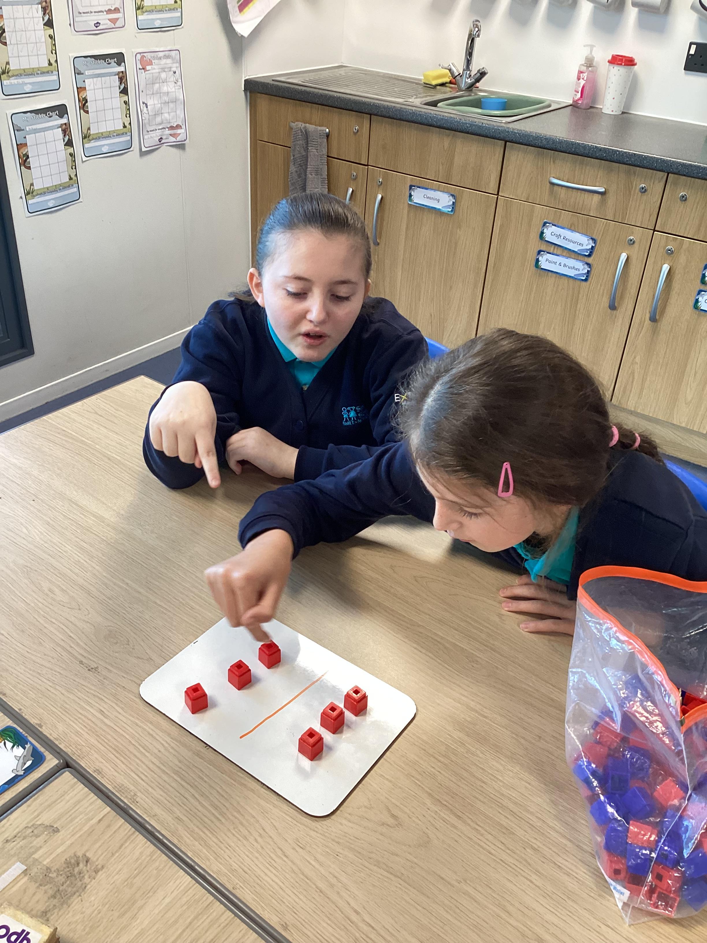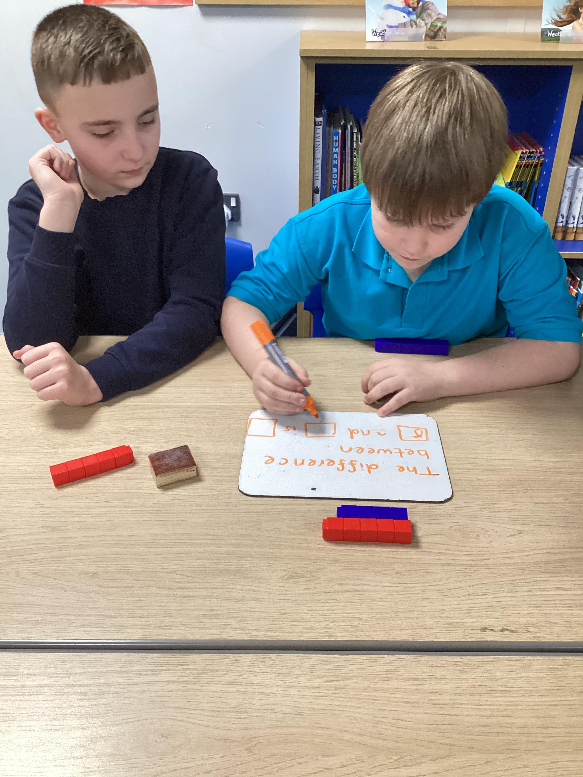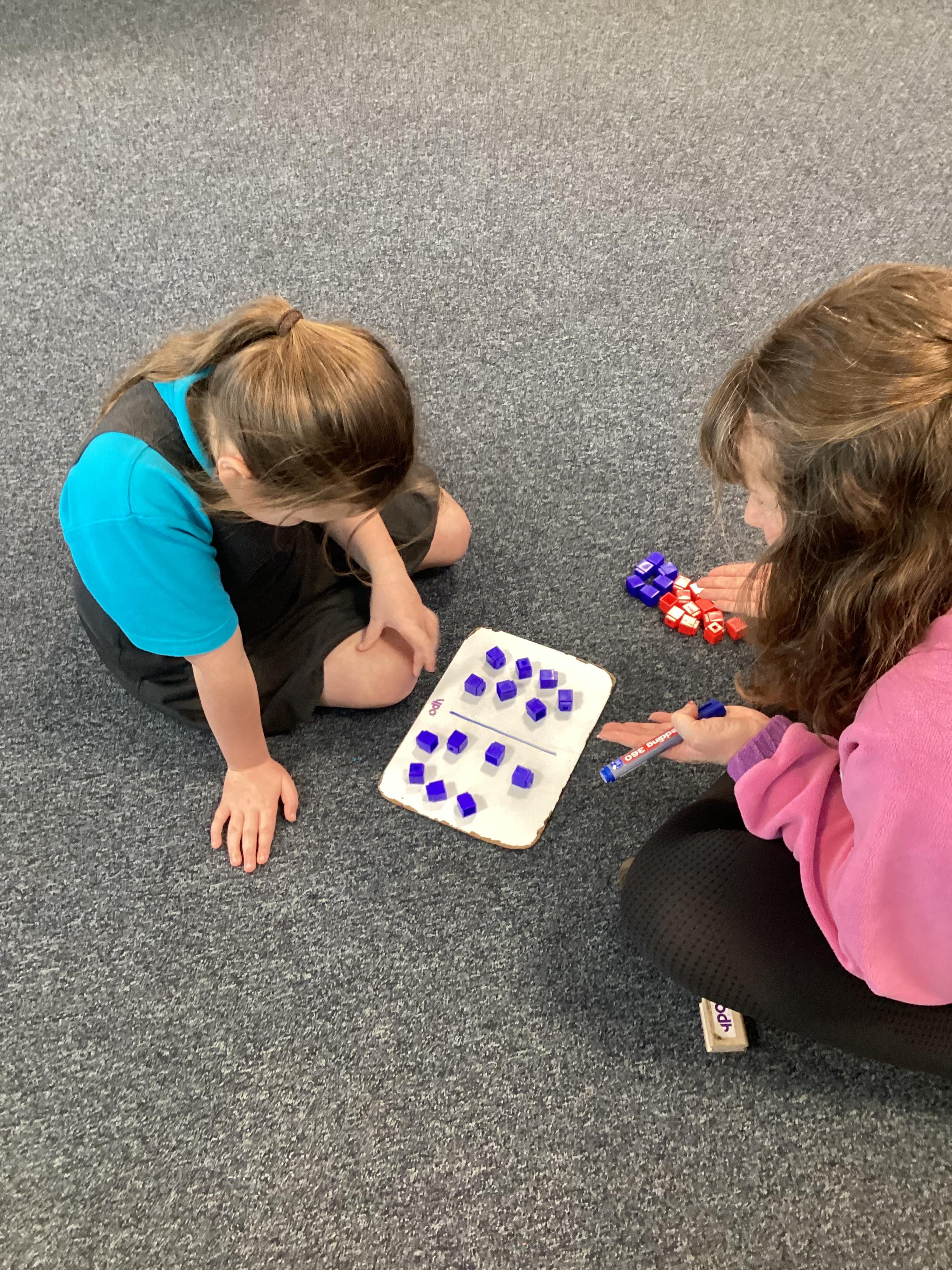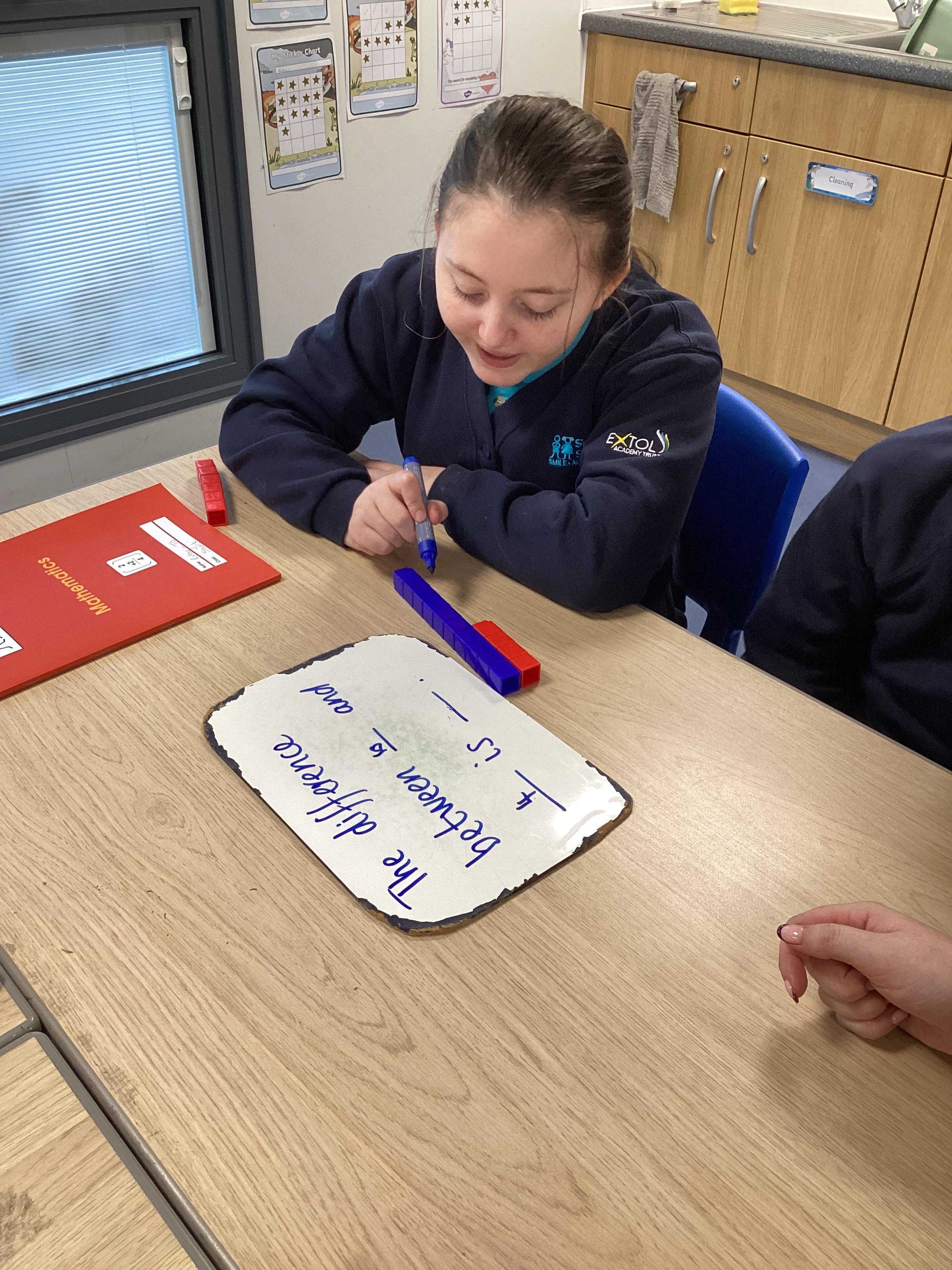 In Maths today, we have been finding the difference between two sets of cubes. Then writing number sentences to explain this. Amazing work!