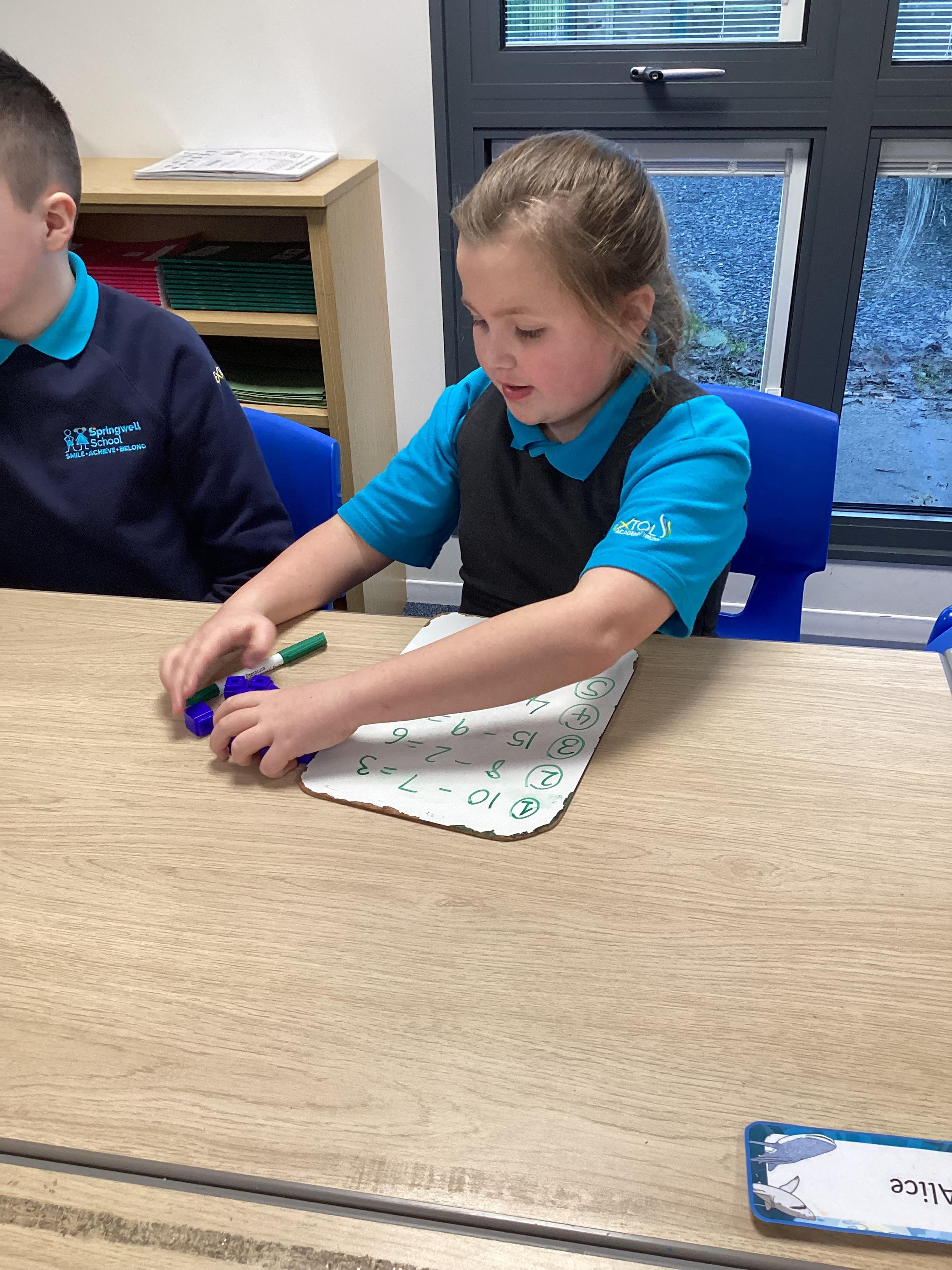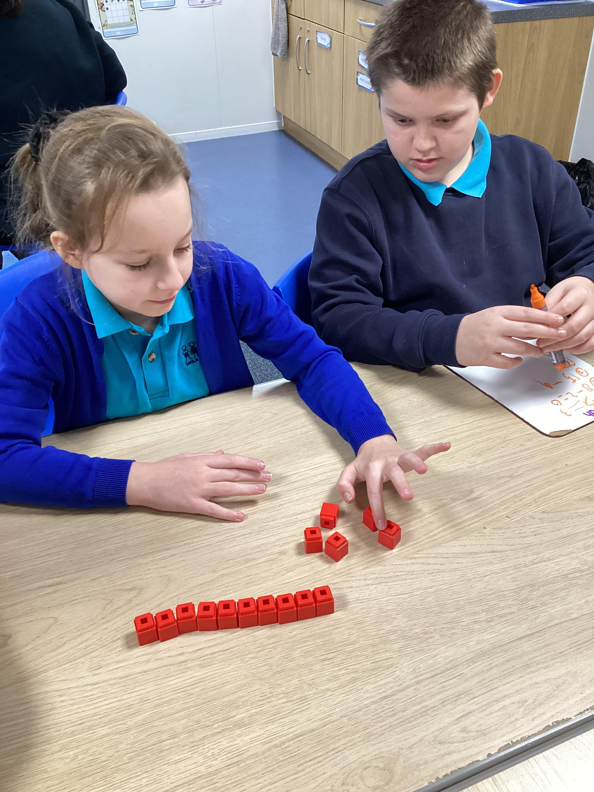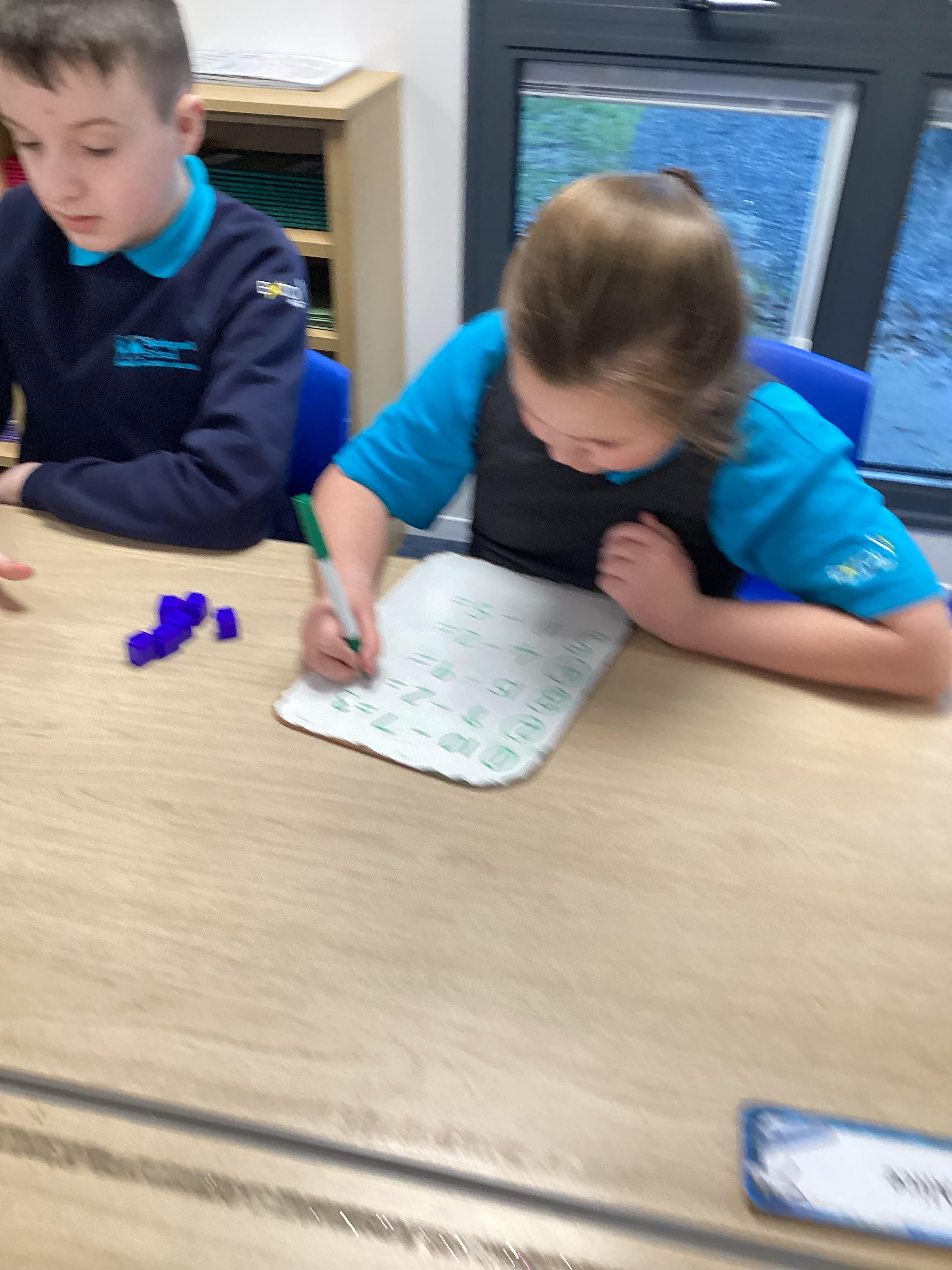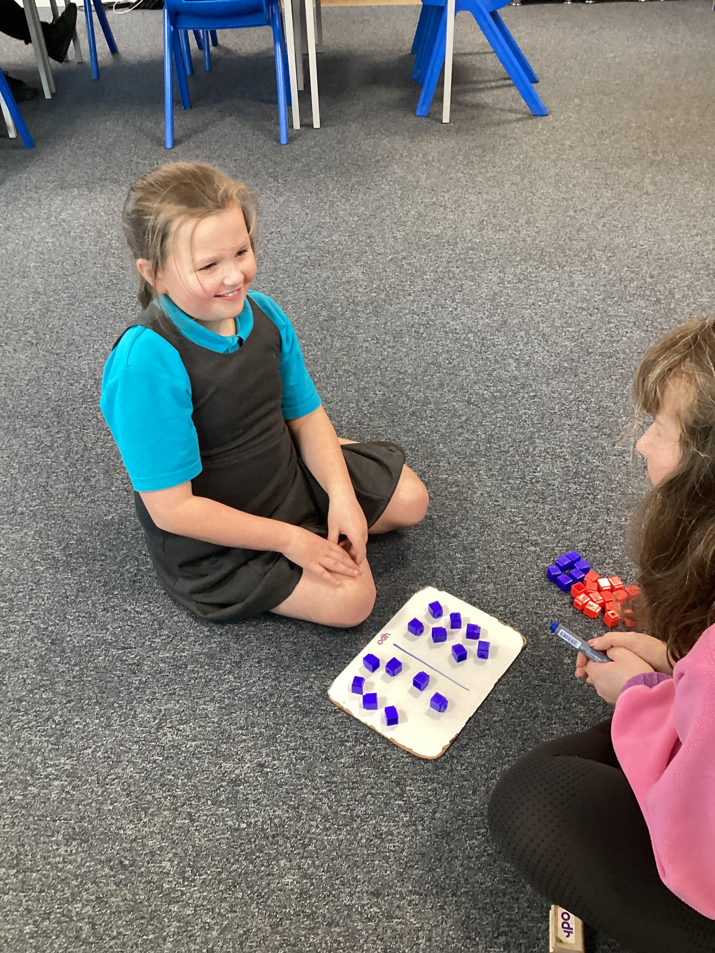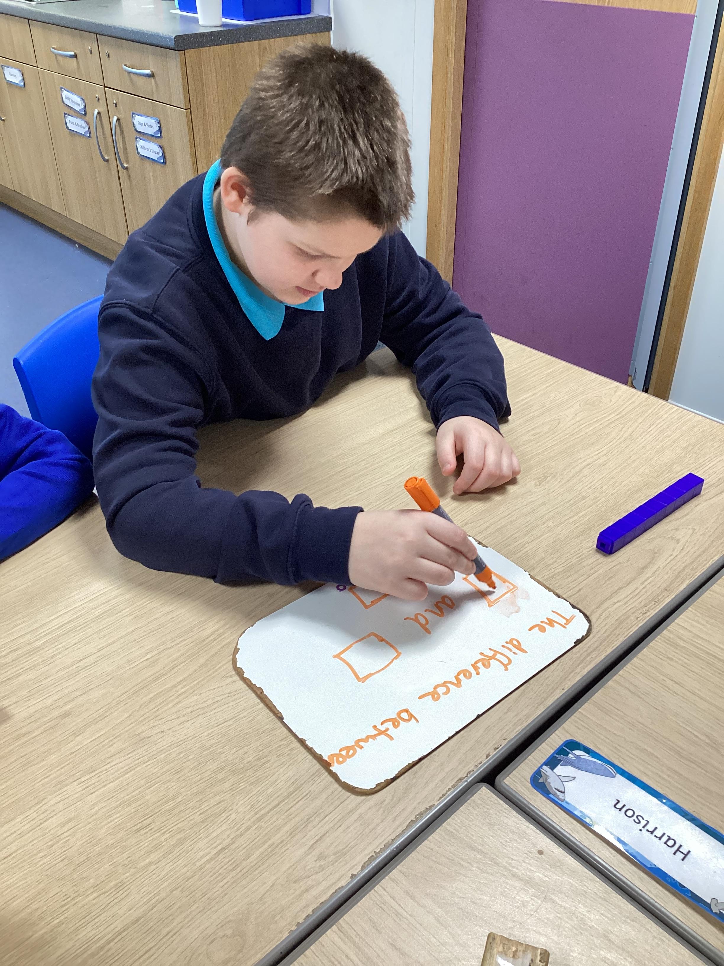 In Maths today, we have been finding the difference between two sets of cubes. Then writing number sentences to explain this. Amazing work!