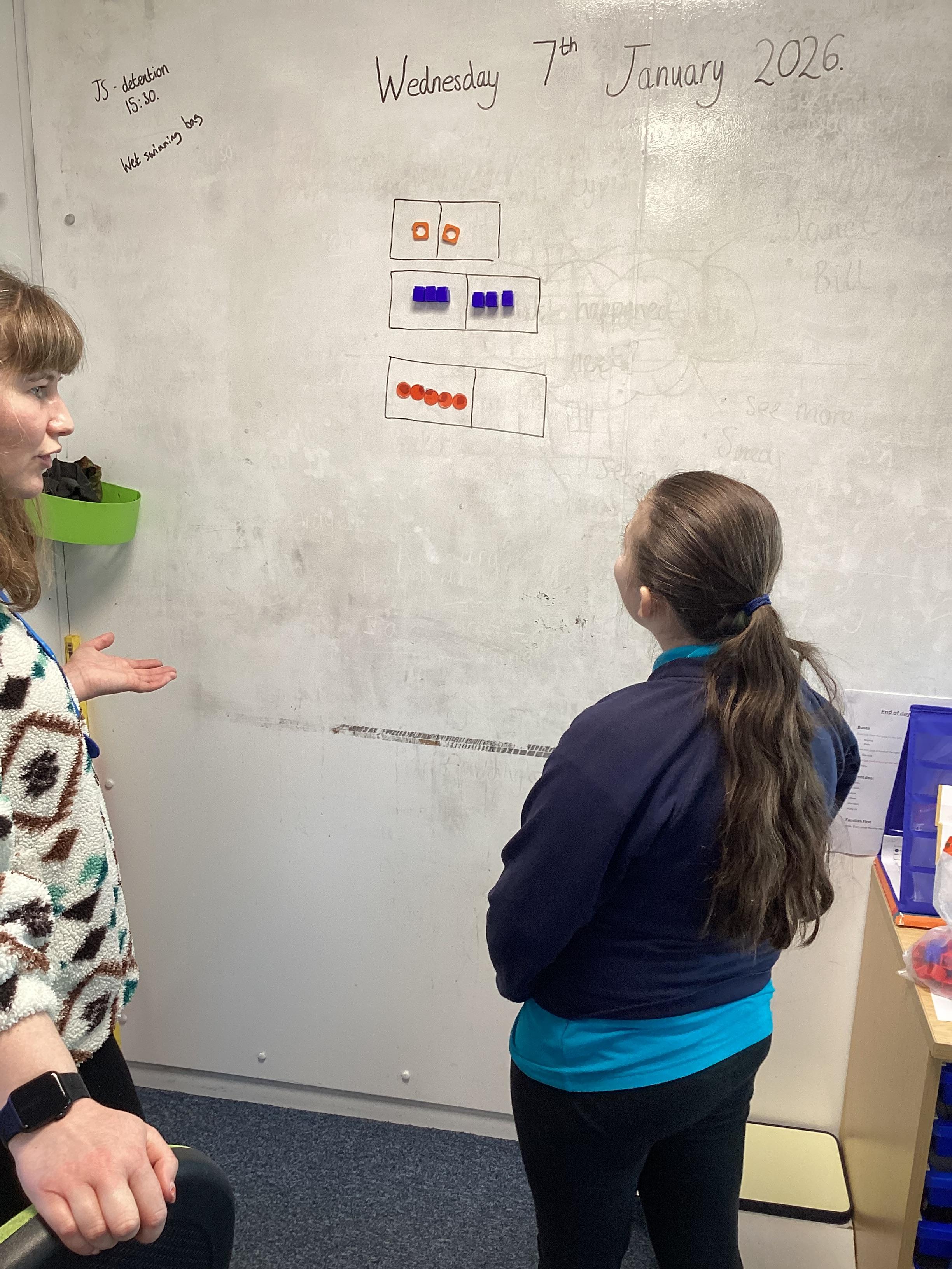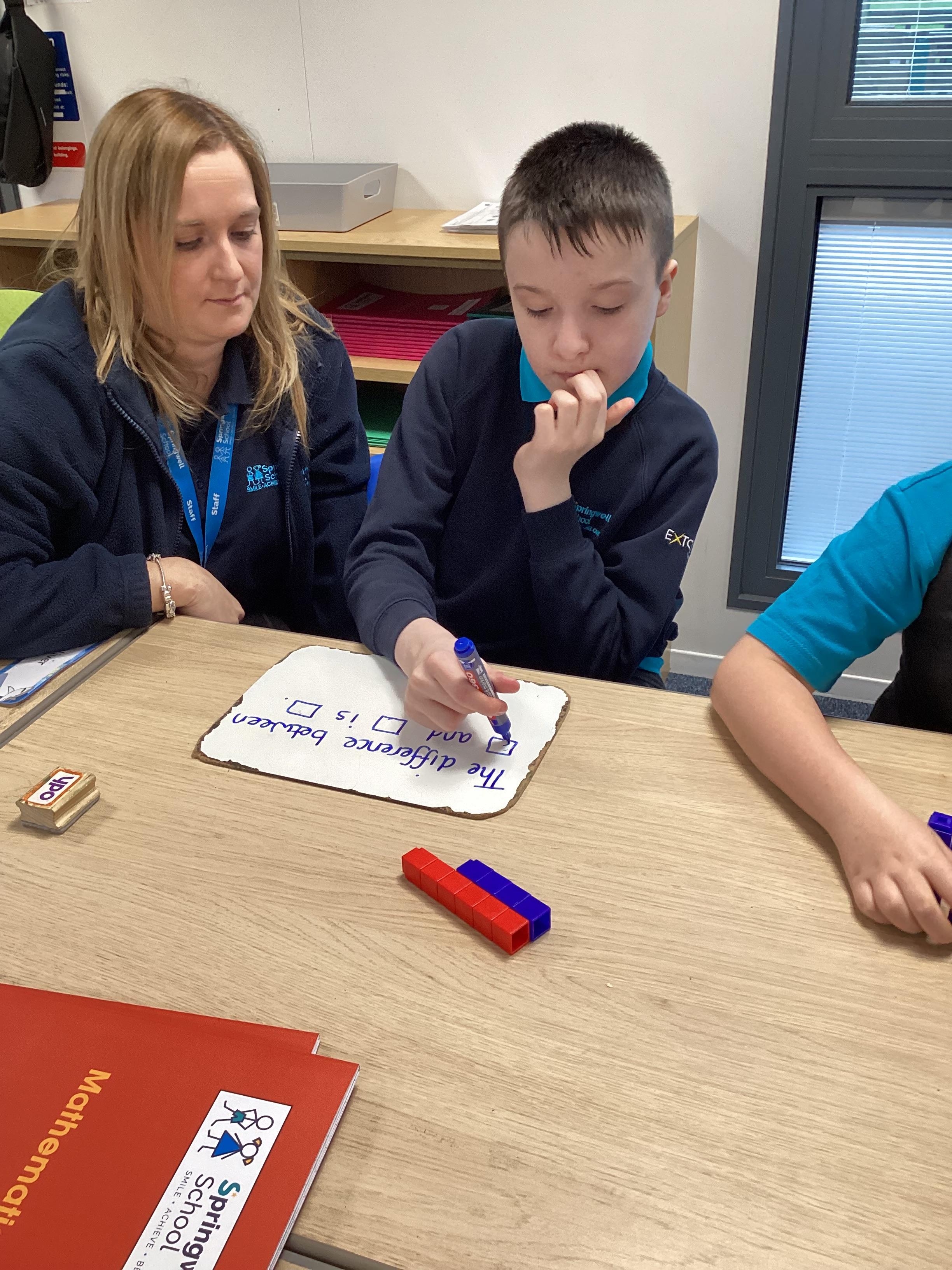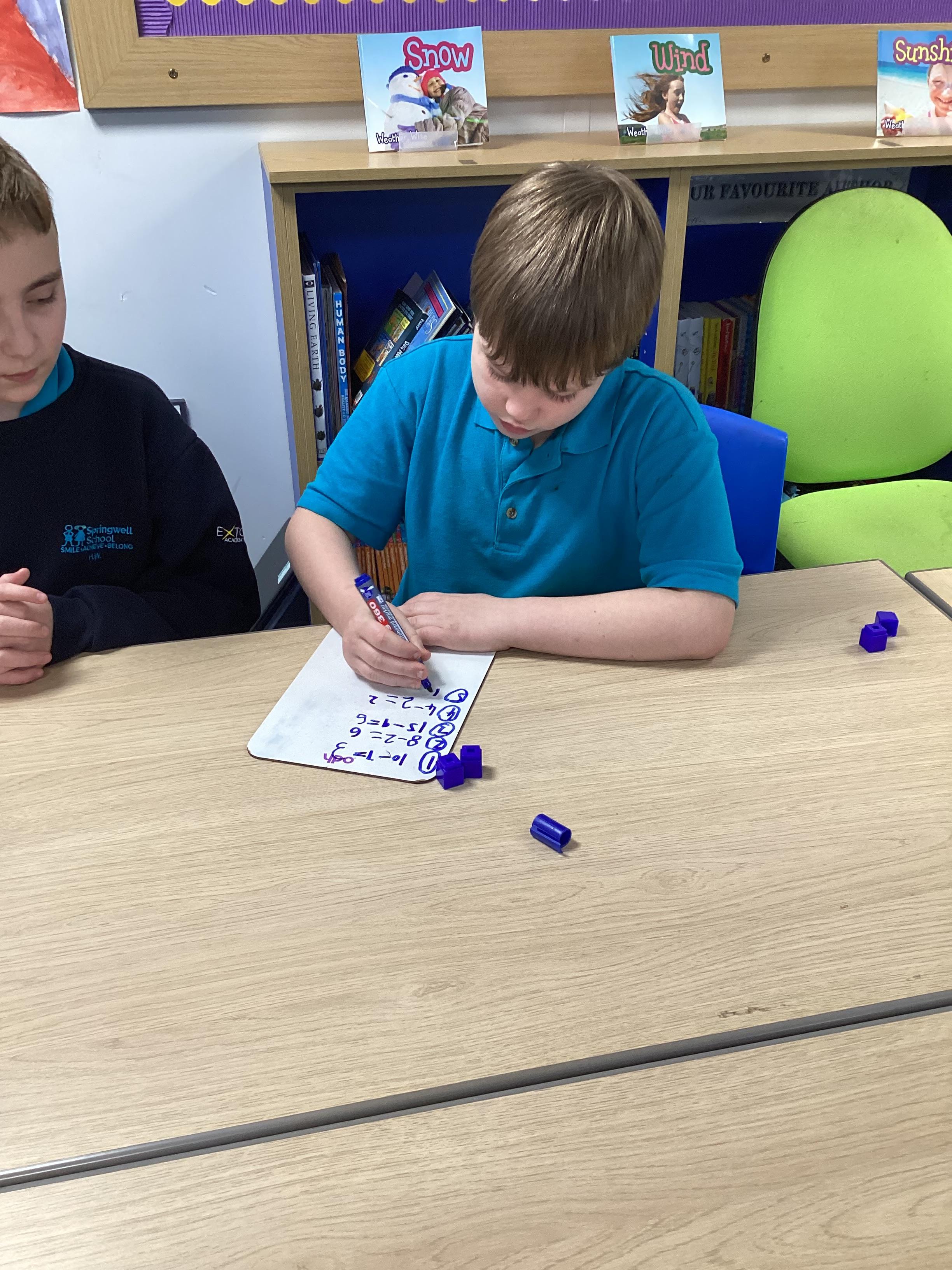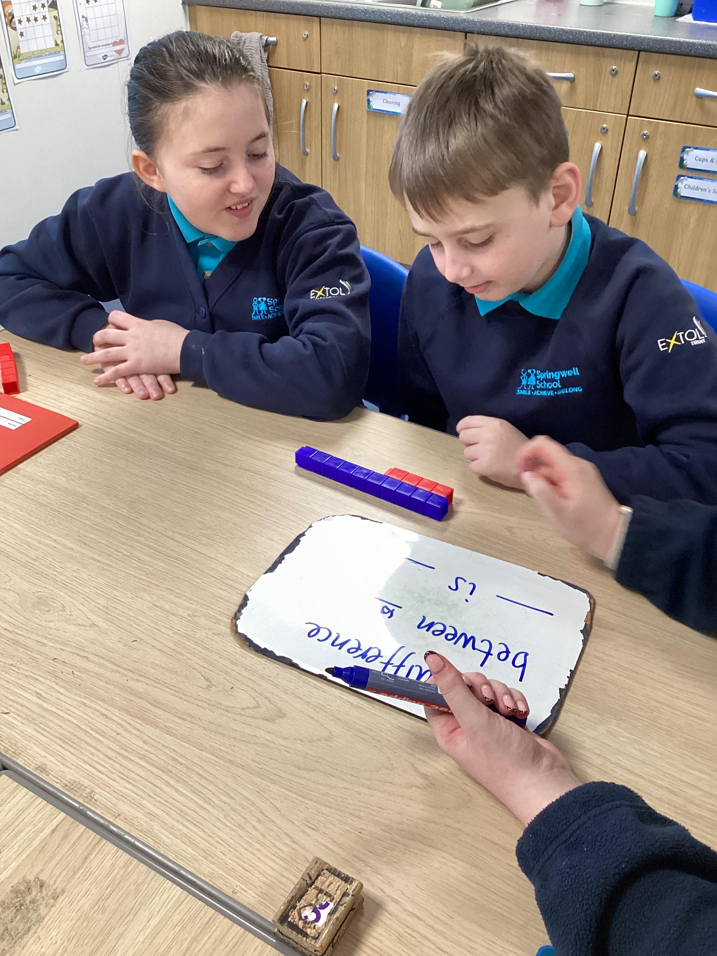 In Maths today, we have been finding the difference between two sets of cubes. Then writing number sentences to explain this. Amazing work!
