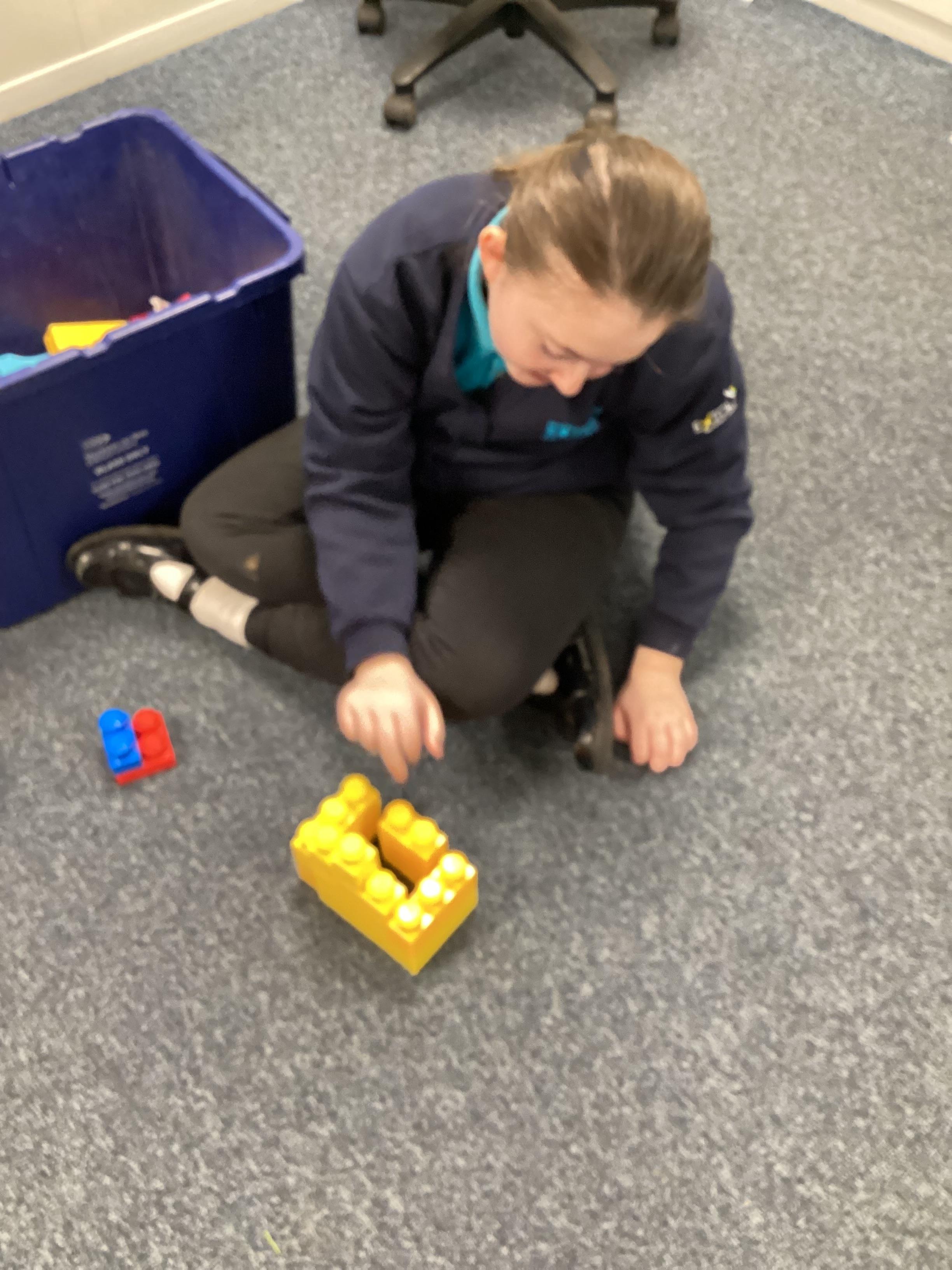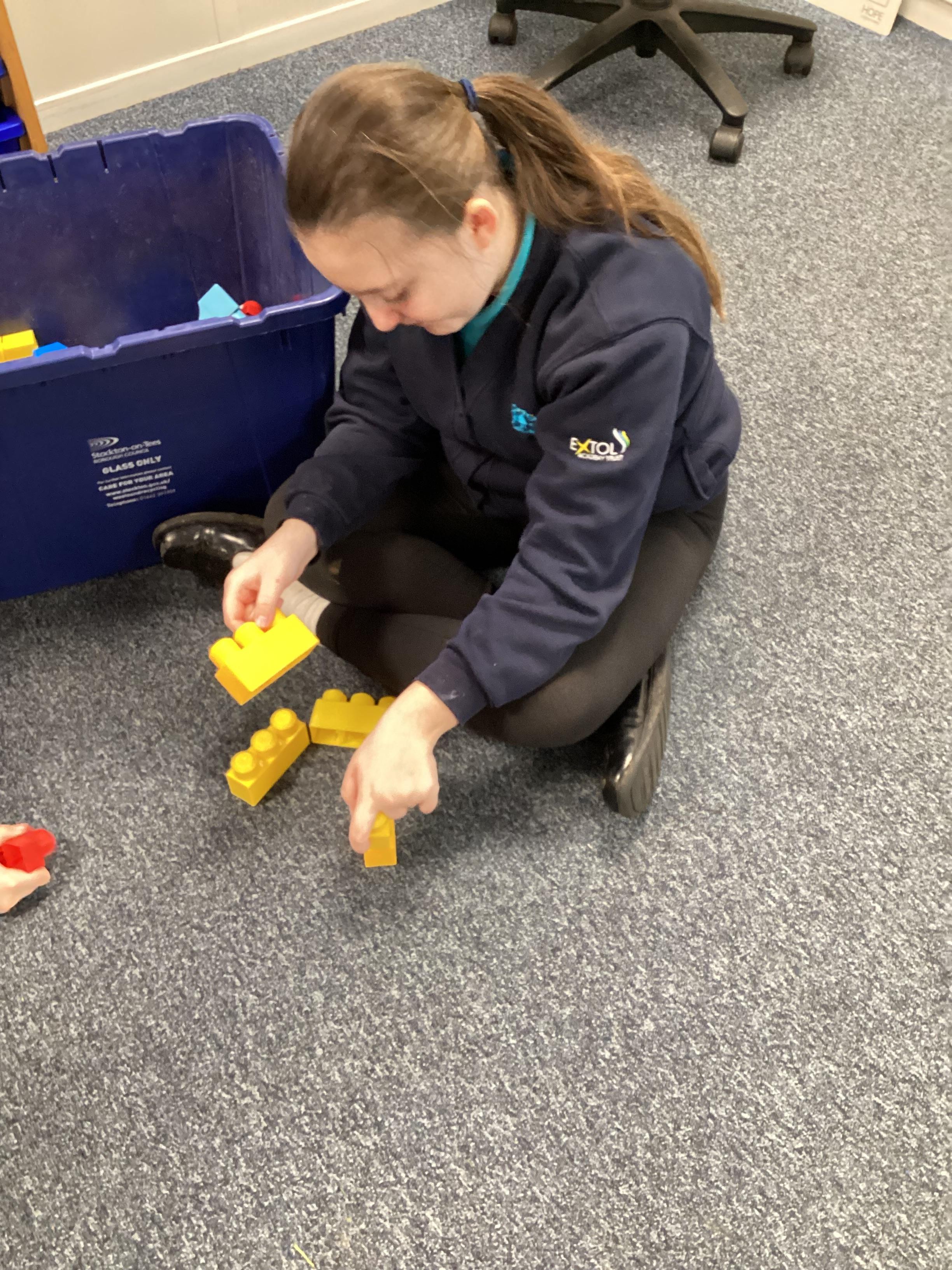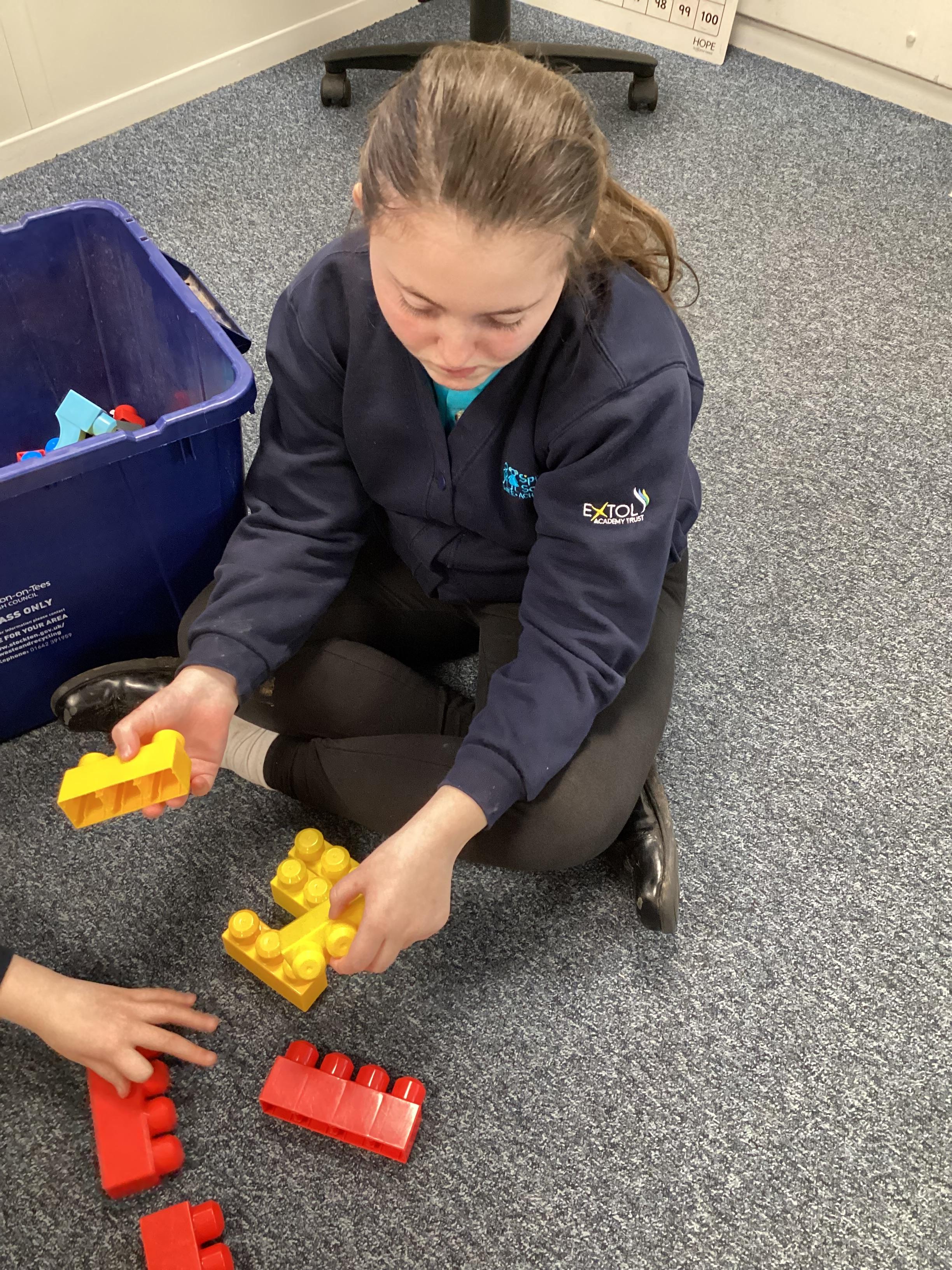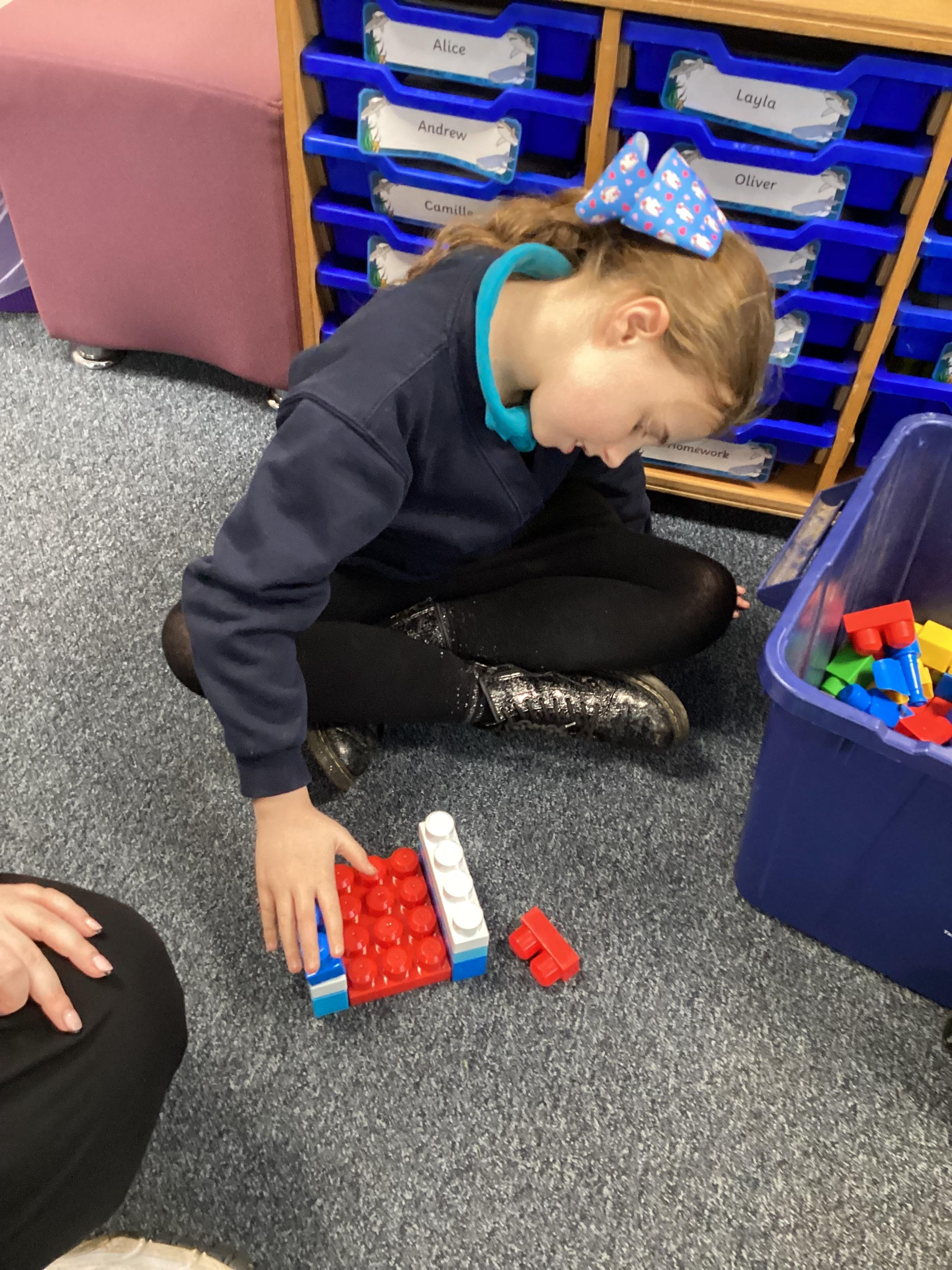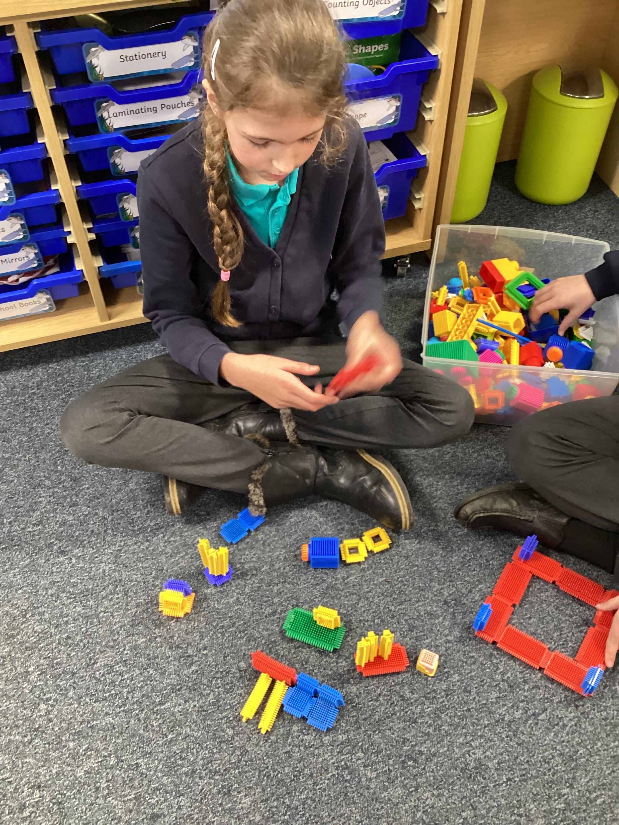 In Maths today, we have been working out subtraction sums by using concrete objects (cubes). We counted the whole, took away so many and counted how many were left.