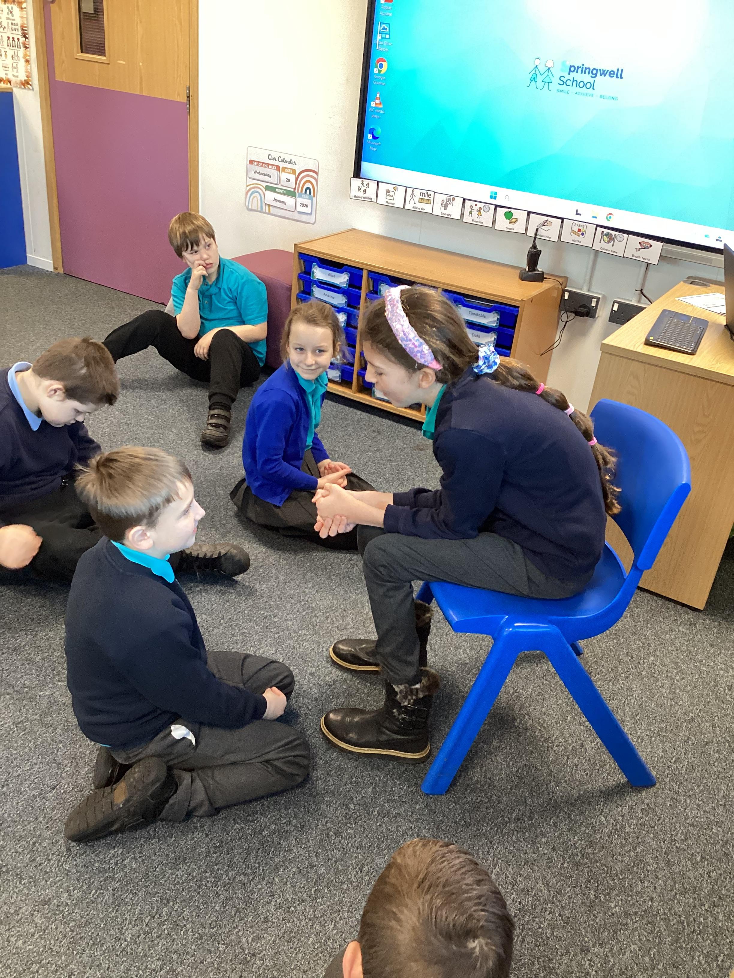 In PSHRE today, we have been learning about what it means to be a good friend. We talked about how being kind to others is very important and if we see someone in school on their own, ask them if they want to join in playing. We then played games together and helped each other. We have some fantastic friends, here in Shark Class.