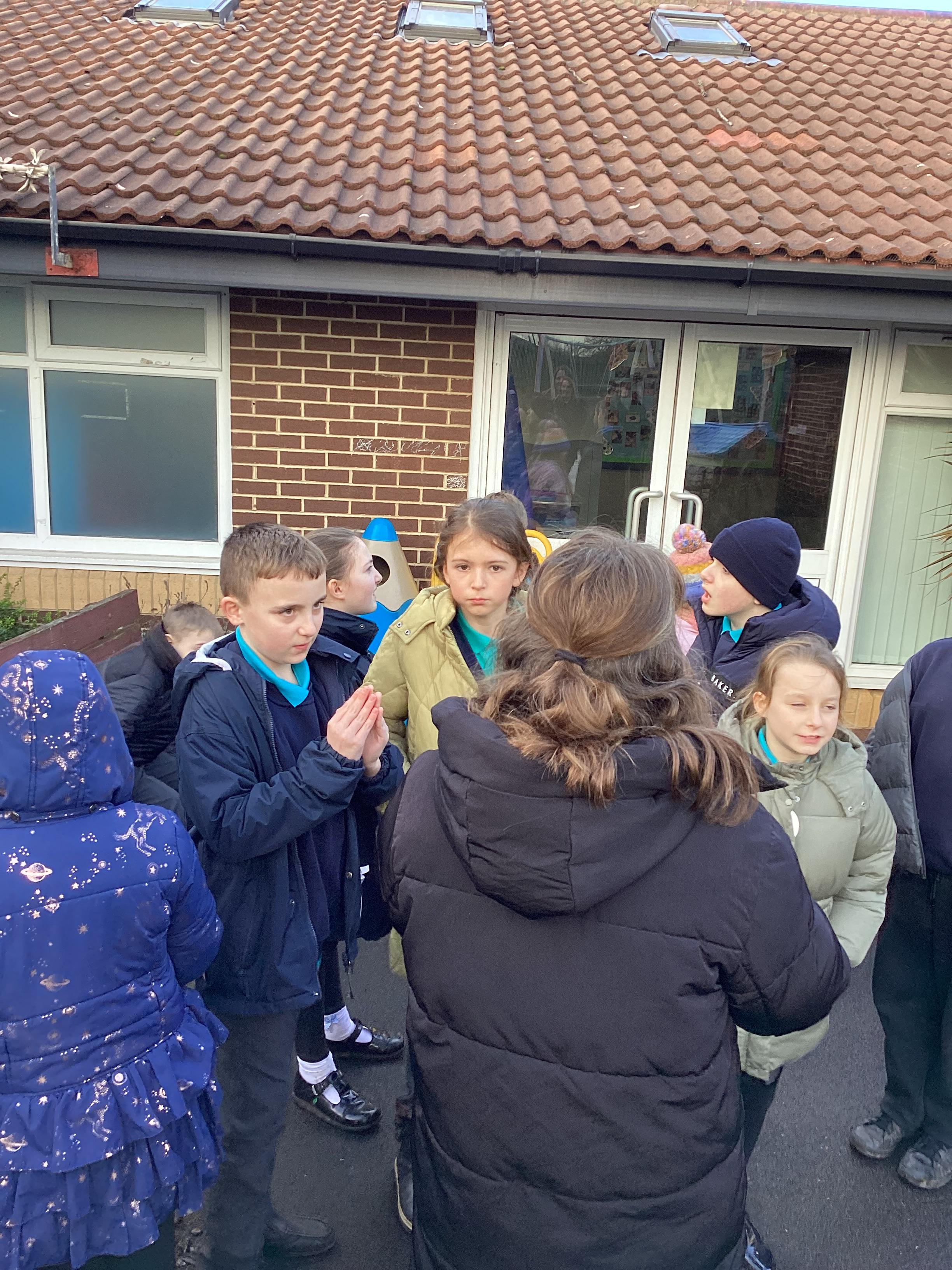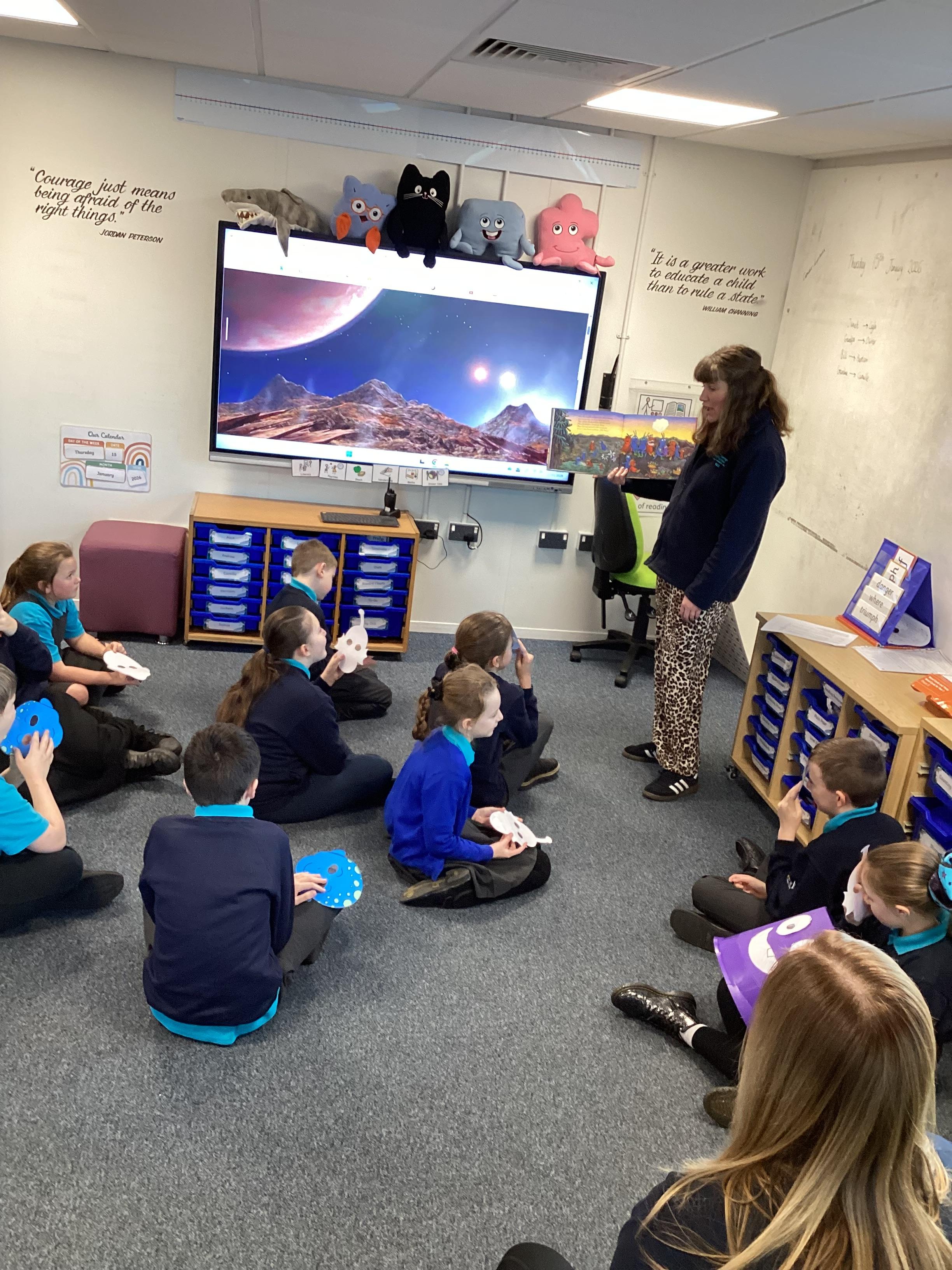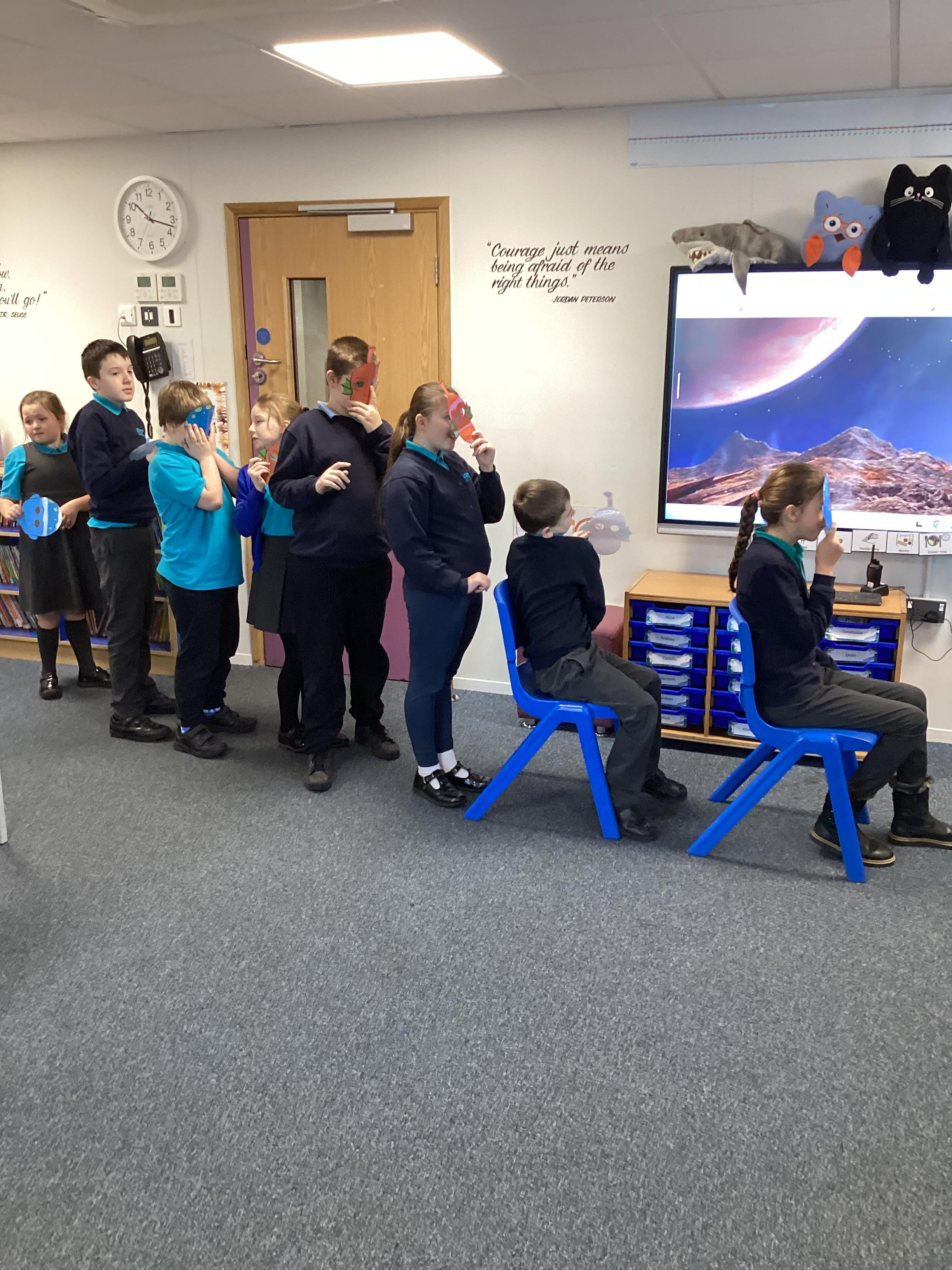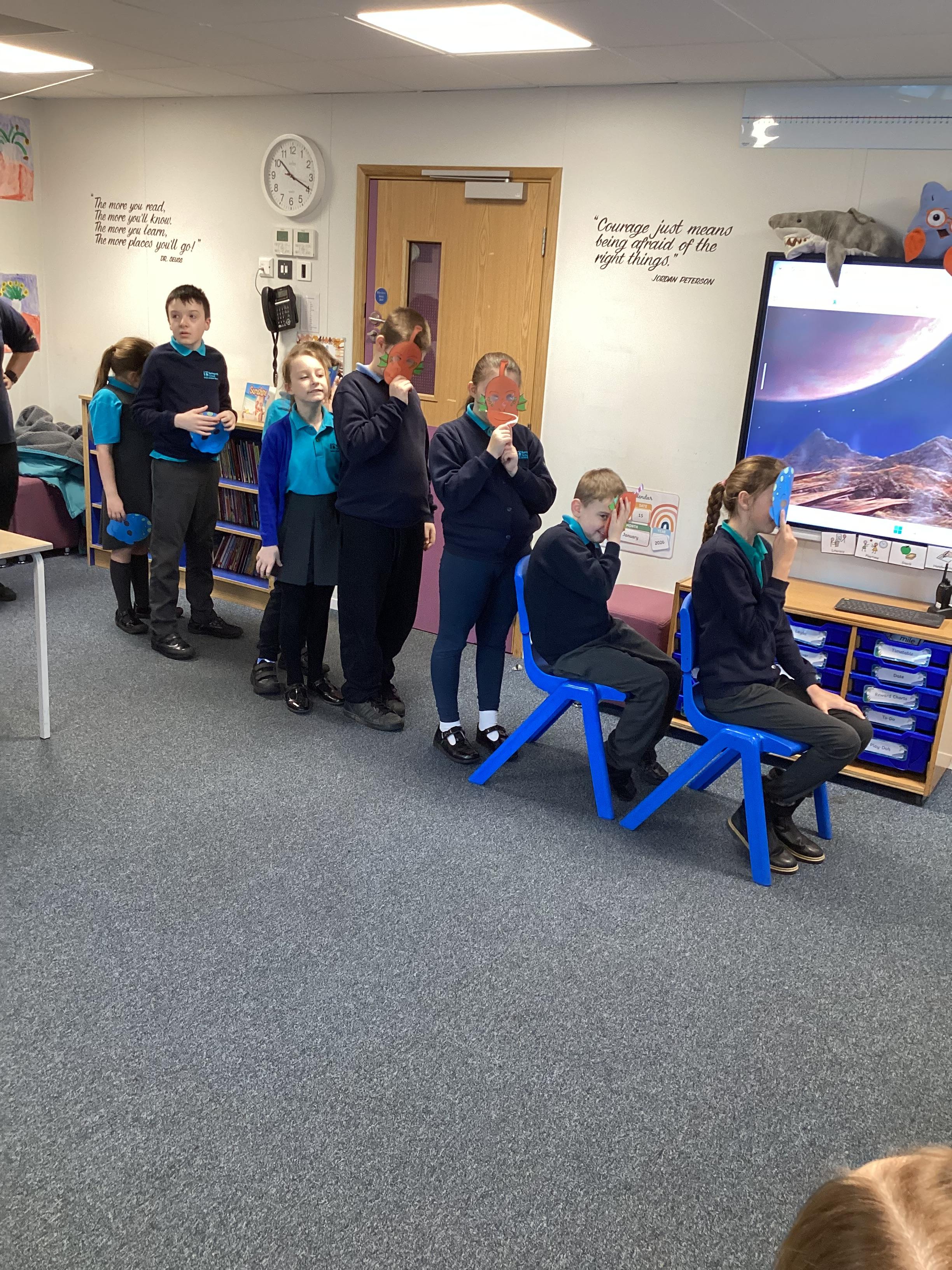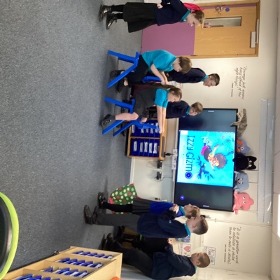 In PE today, we had LOTS of fun. Our topic is 'Expressive Movements' and we've been learning about different ways to move our bodies to tell a story. Today we imagined that we had just landed our rockets on the moon and that we found aliens.