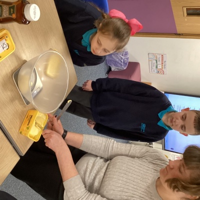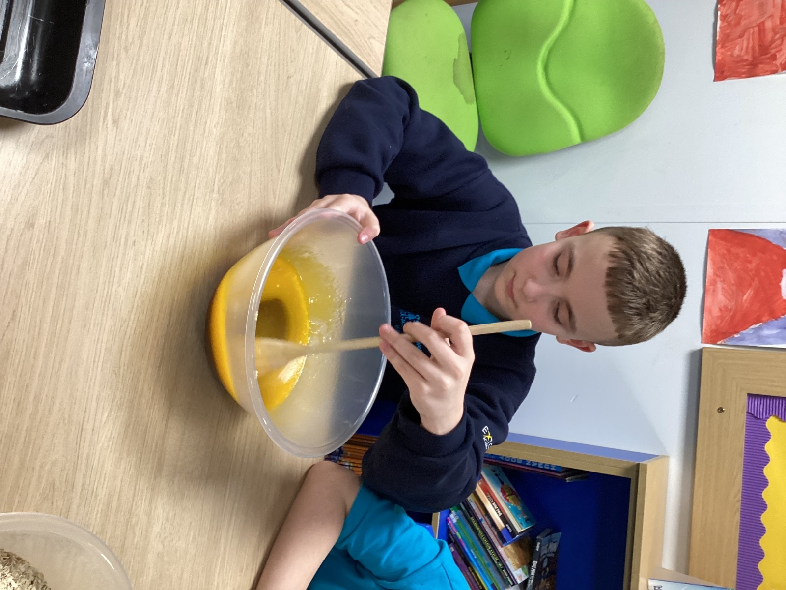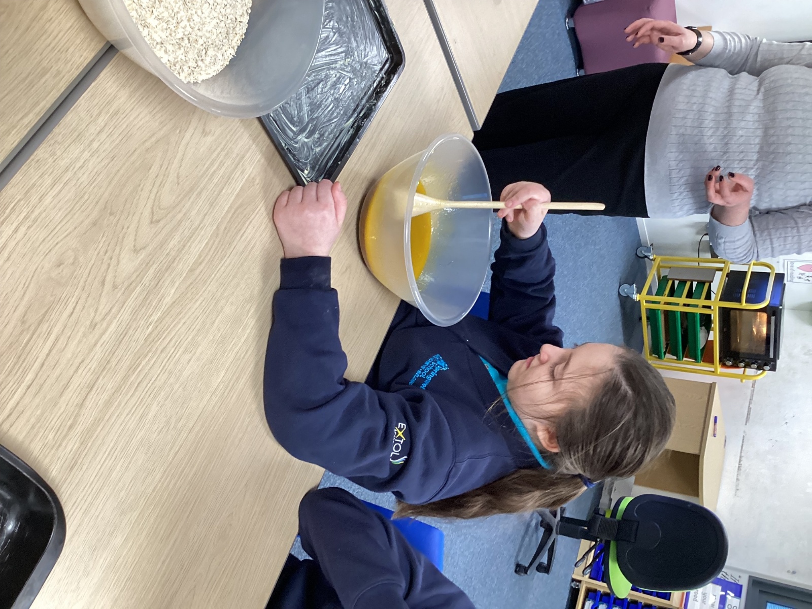 In Cookery today, we made some delicious flapjacks. We weighed out the ingredient and took our time mixing it. They turned out amazing and we enjoyed them as a snack before Golden Time.
