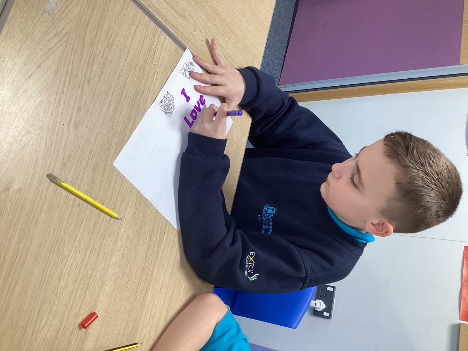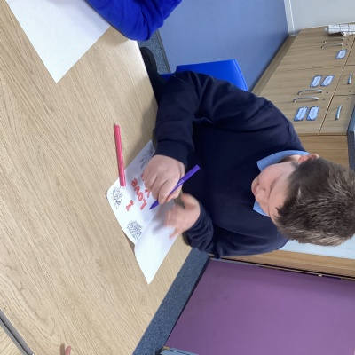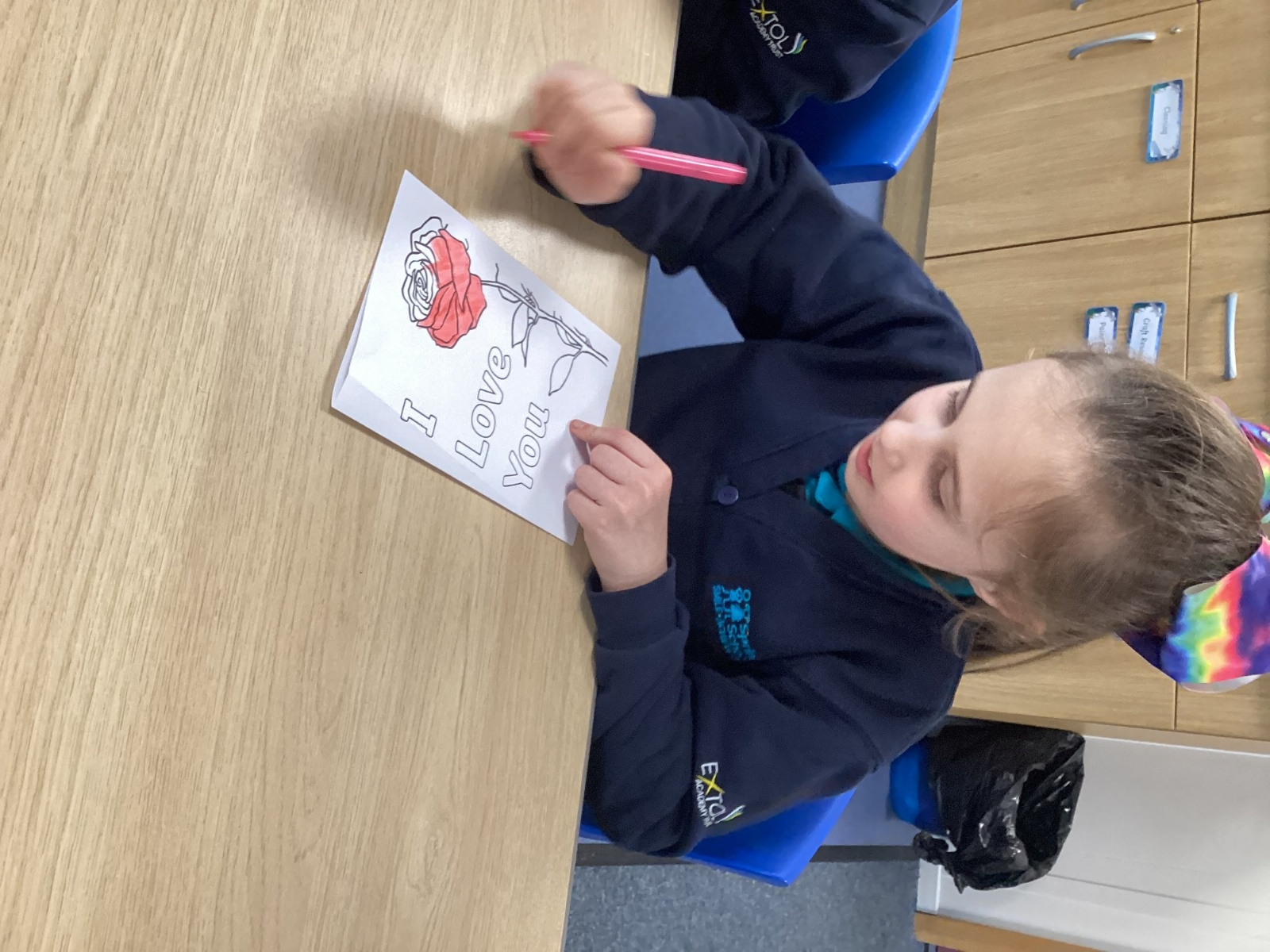In Music today, we sang and signed along to some songs by Singing Hands 'It Must Be Love' and 'I Love You'. We then coloured in some lovely Valentine's Day cards. What a LOVELY afternoon! <3
