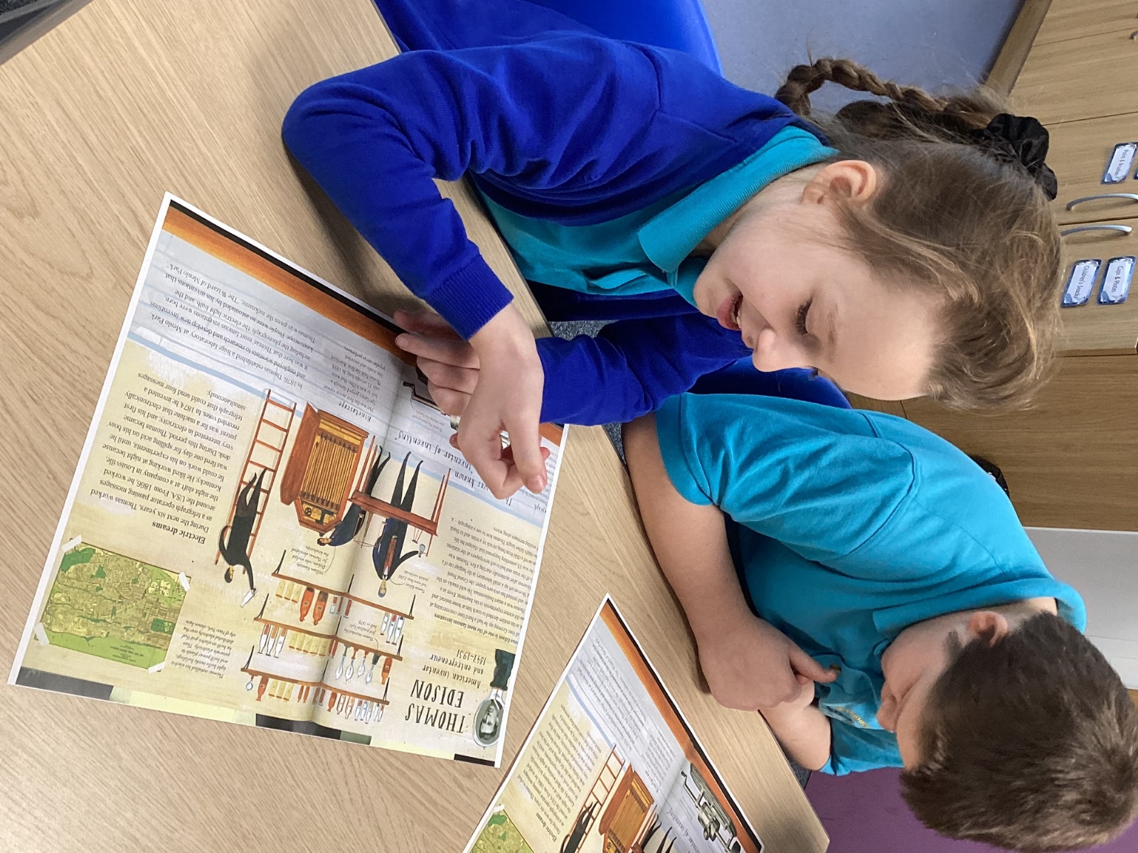In Literacy today, we have been reading the book 'Inventors'. This is a non-fiction book. We looked at and spoke about the different features of a non-fiction book. (Contents page, heading, line, illustration, page numbers etc). Great work!!!