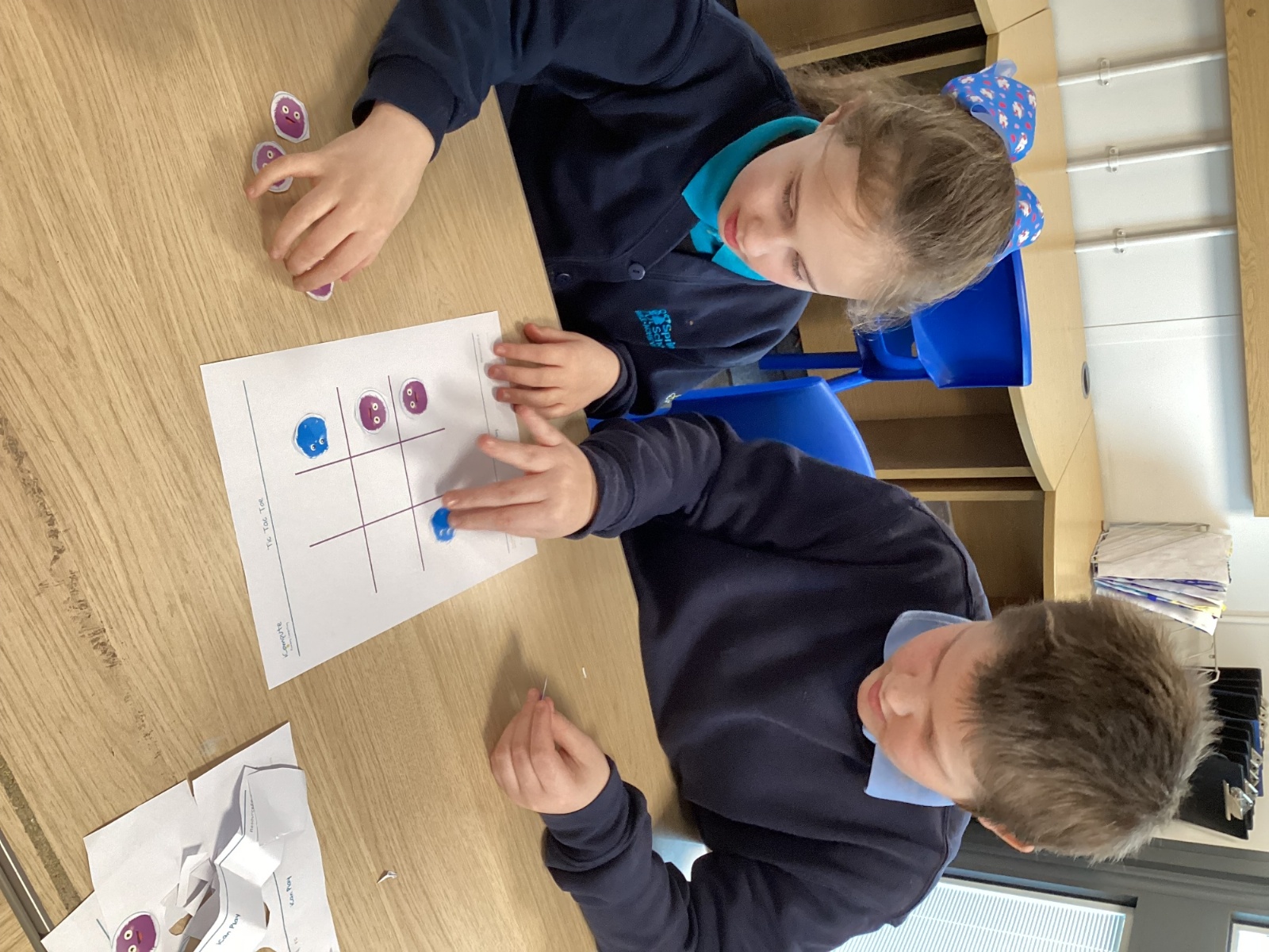 In Computing today, we have been learning about taking turns. We played 'tic tac toe' using paper versions and on the interactive whiteboard. We have some very competitive Sharks!