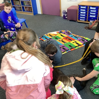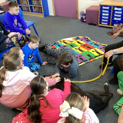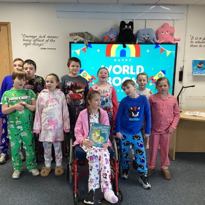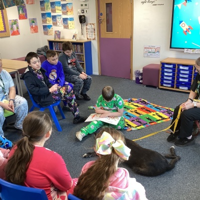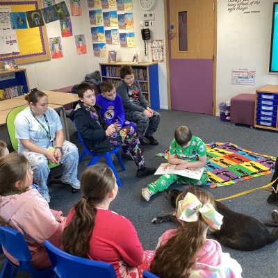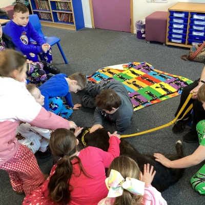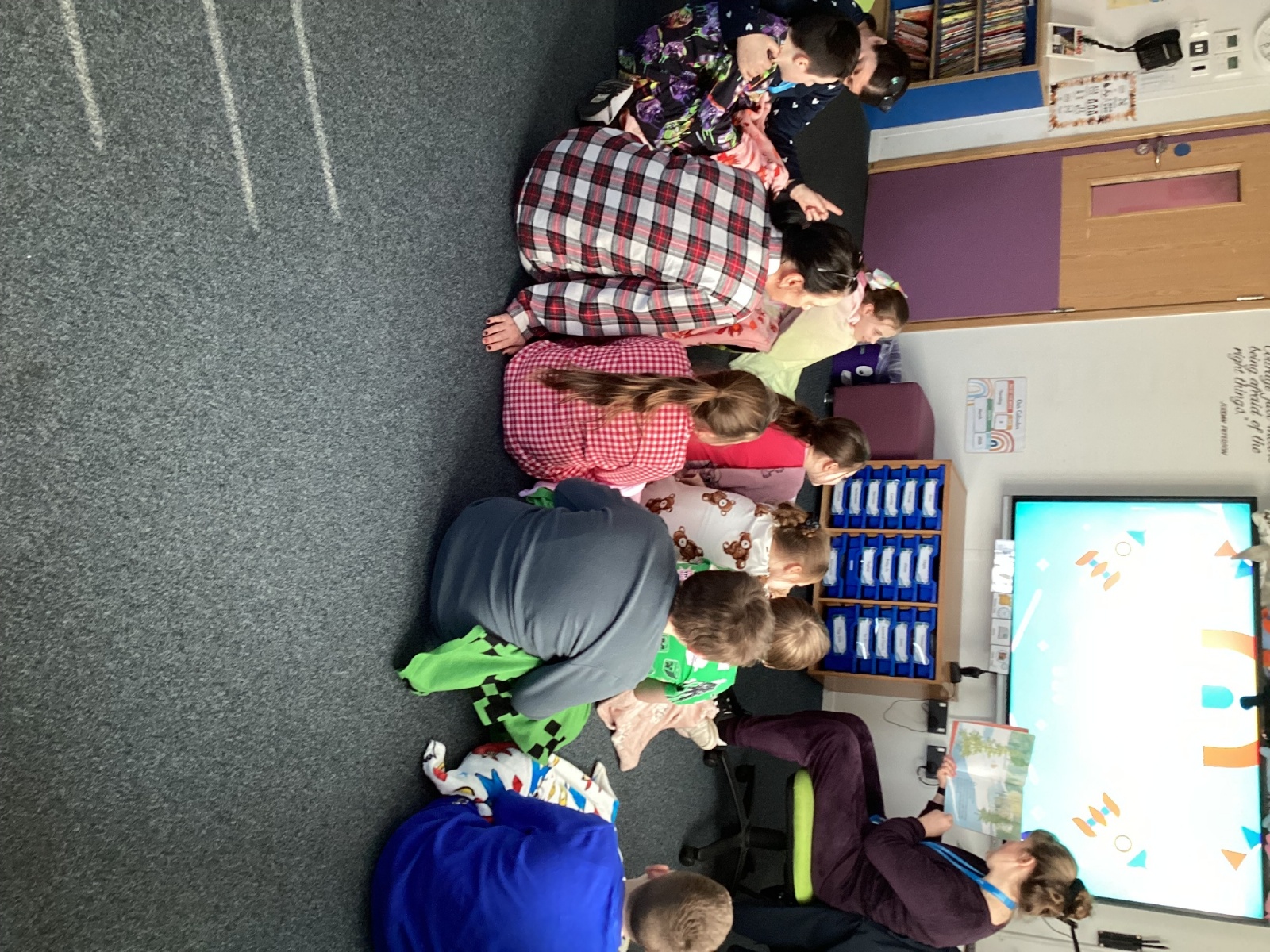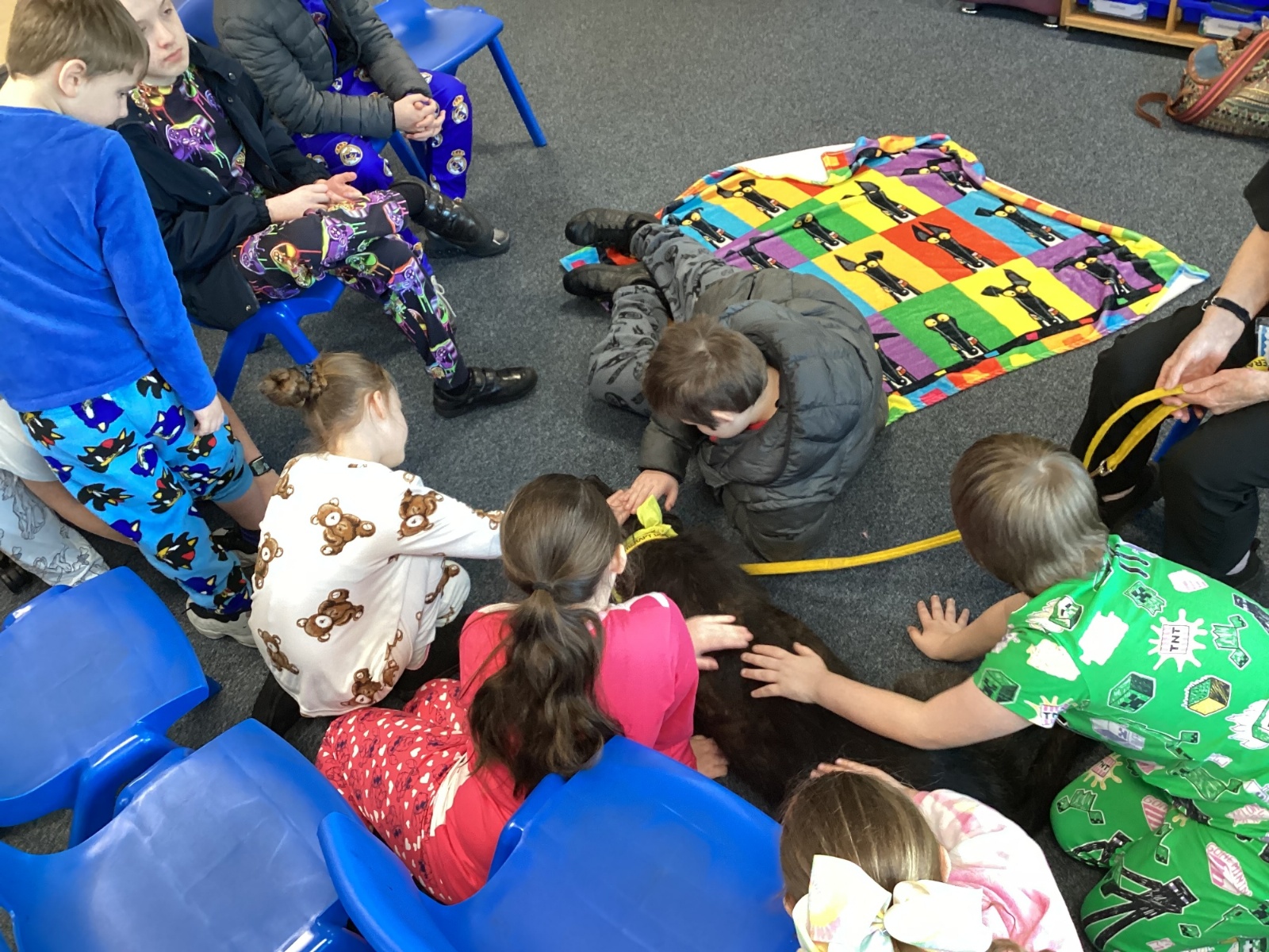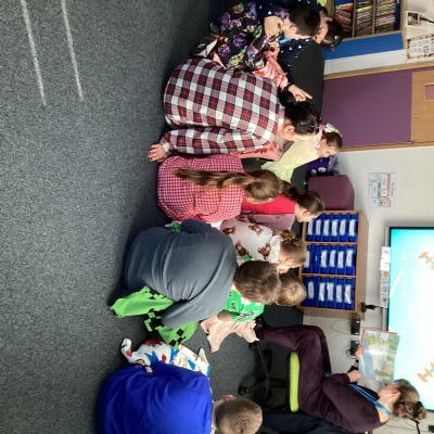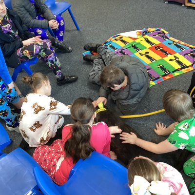 We had a fabulous time celebrating World Book Day! We opened up our gift of Caroline, which was a new book 'Can't You Sleep Little Bear'. We had a visit from Ronnie, the PAT Dog, and we read him the story 'Dragons Love Tacos'. To end the day we all snuggled up, had some hot chocolate and listened to our new book.
