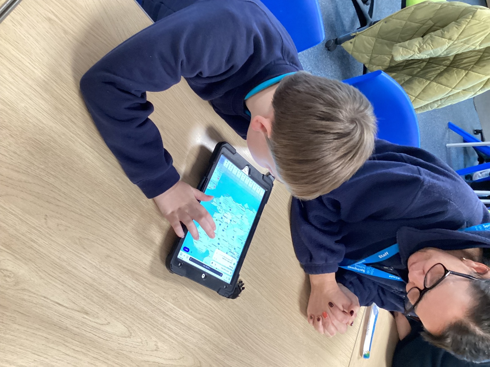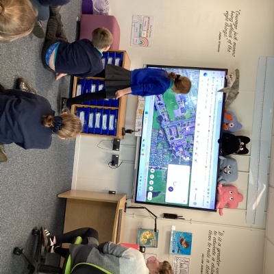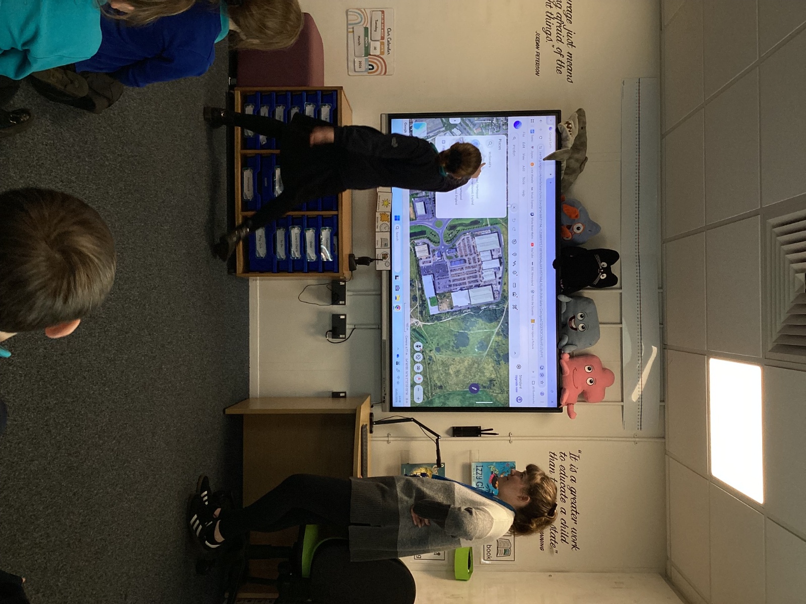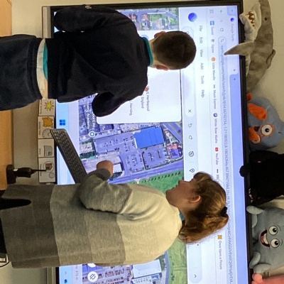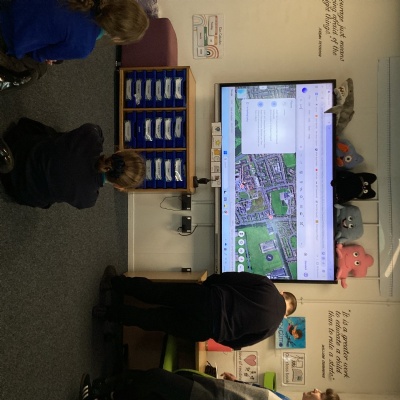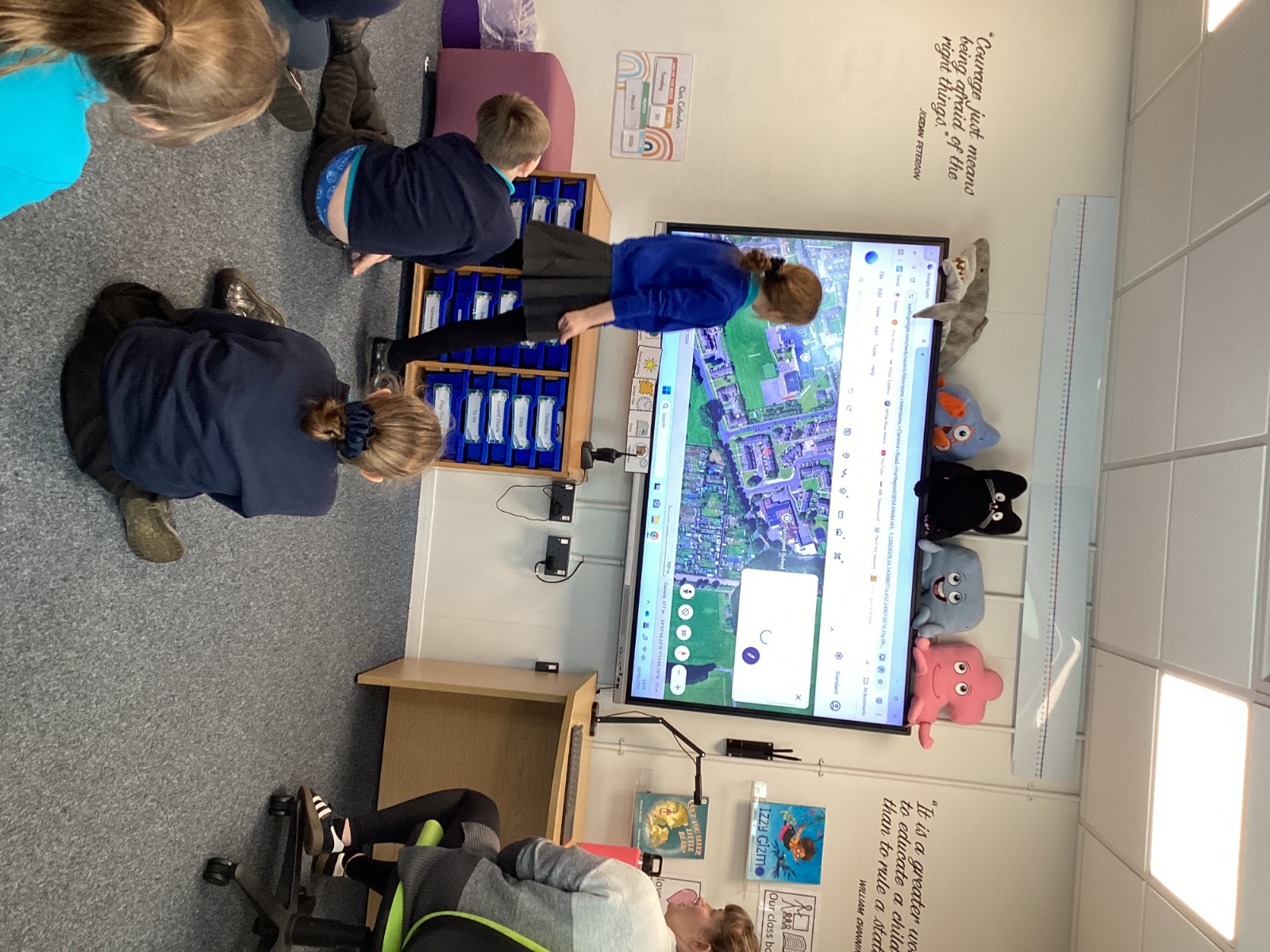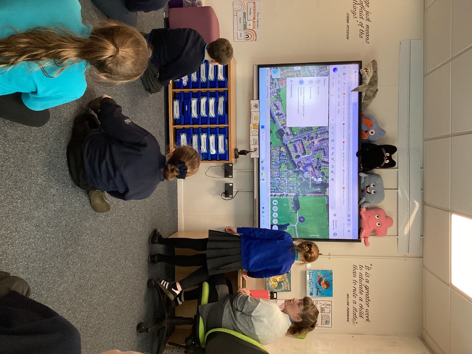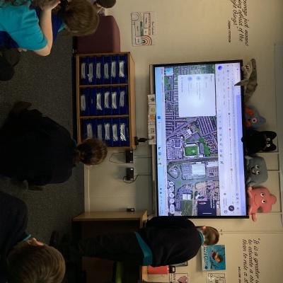 In Geography today, we looked at Google Maps and Google Earth. We looked at places we have visited and what is around them. The children then worked in pairs on iPads to find some familiar places (shops, Mill House, school etc).