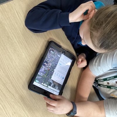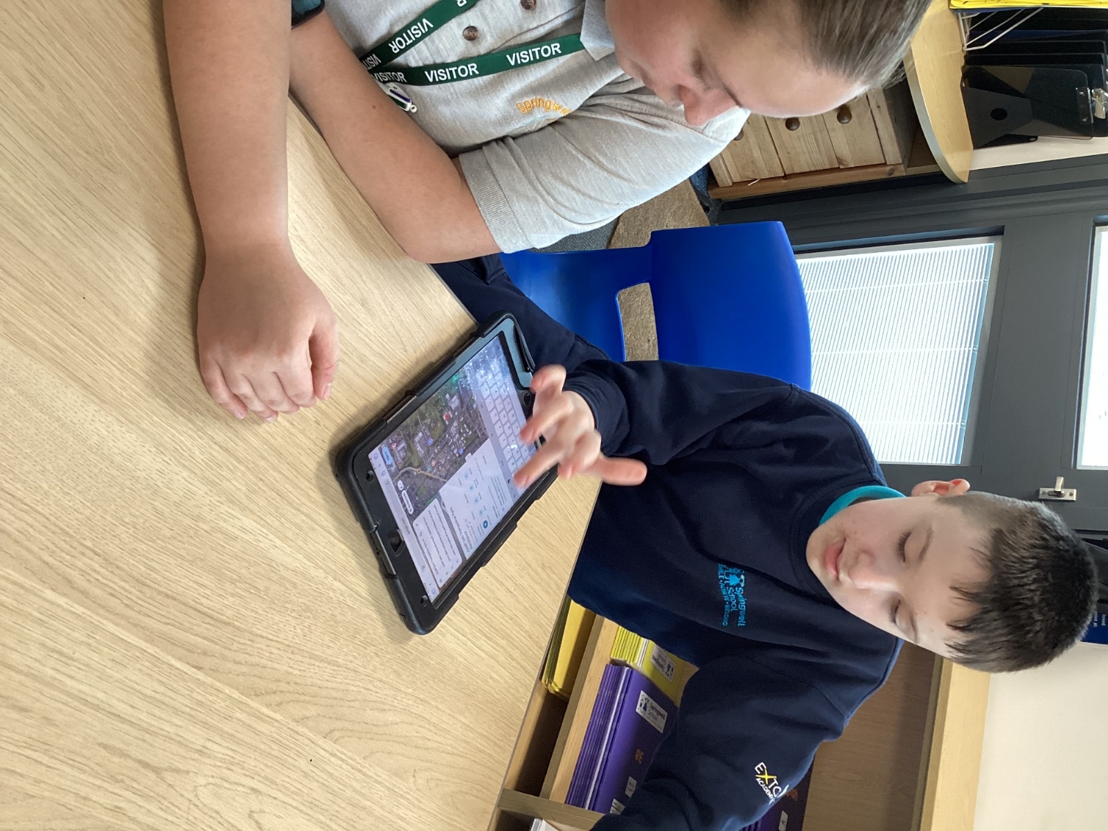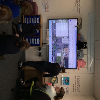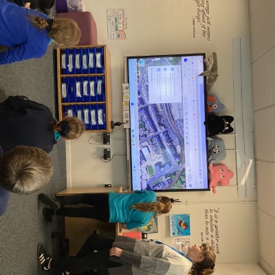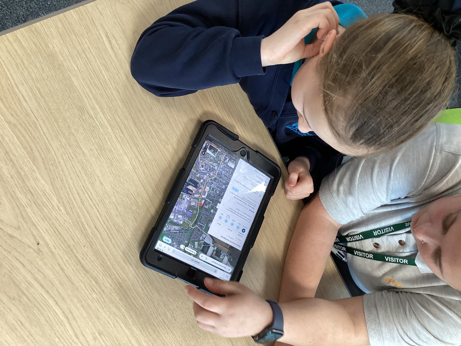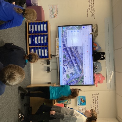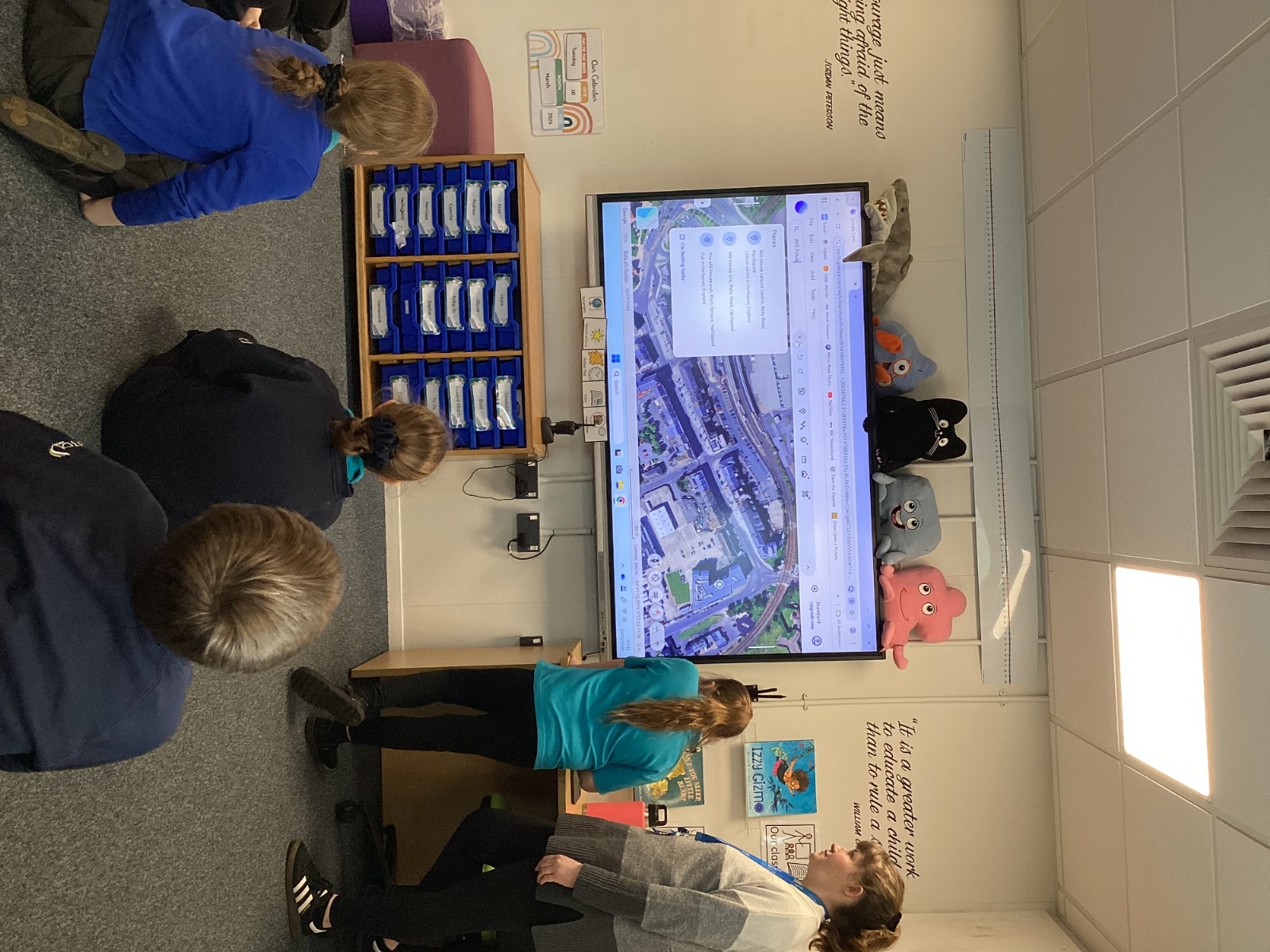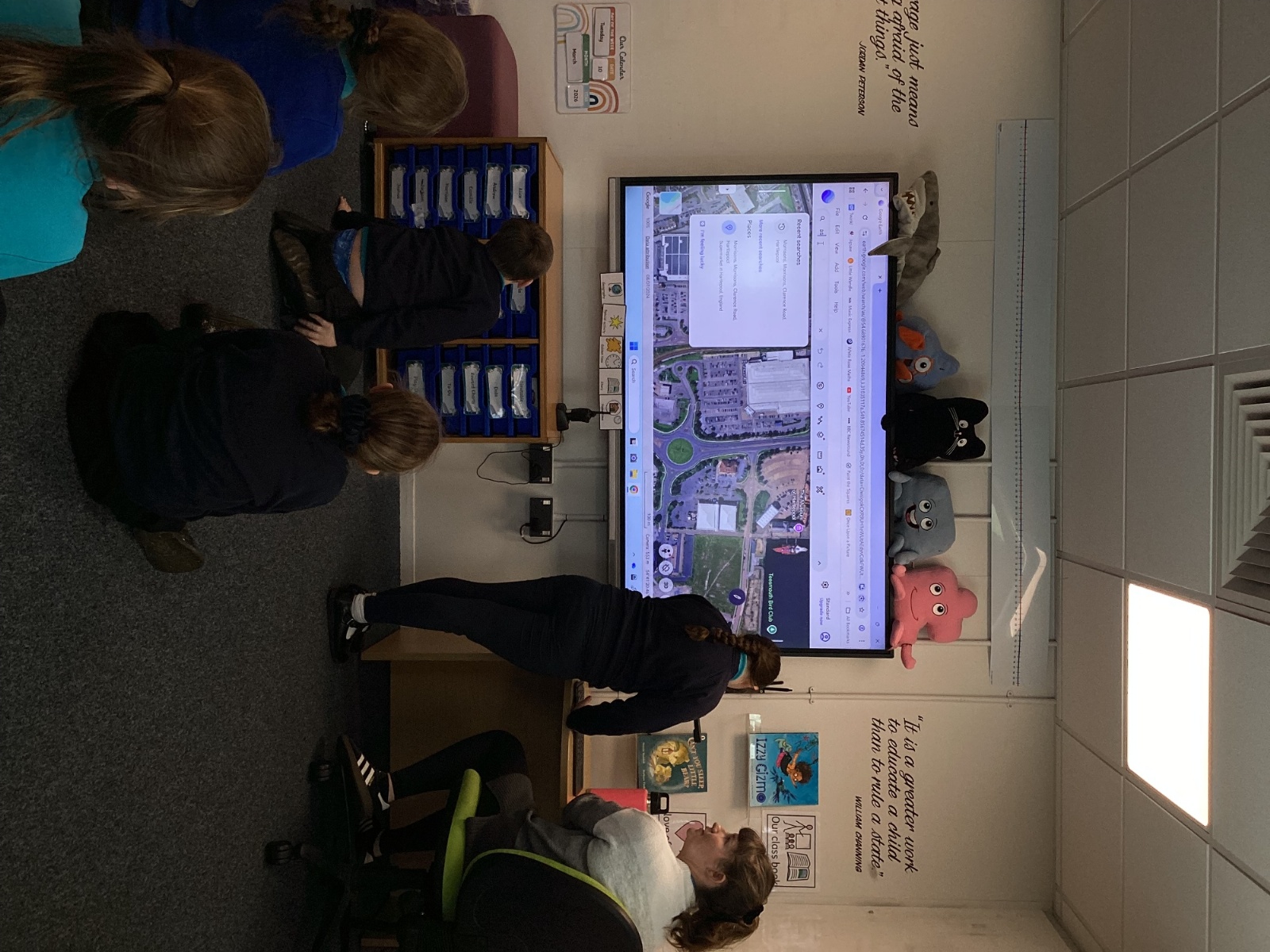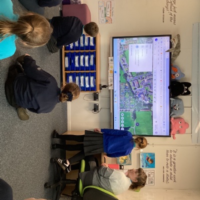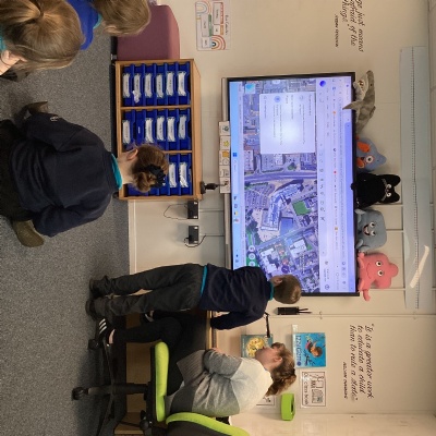 In Geography today, we looked at Google Maps and Google Earth. We looked at places we have visited and what is around them. The children then worked in pairs on iPads to find some familiar places (shops, Mill House, school etc).