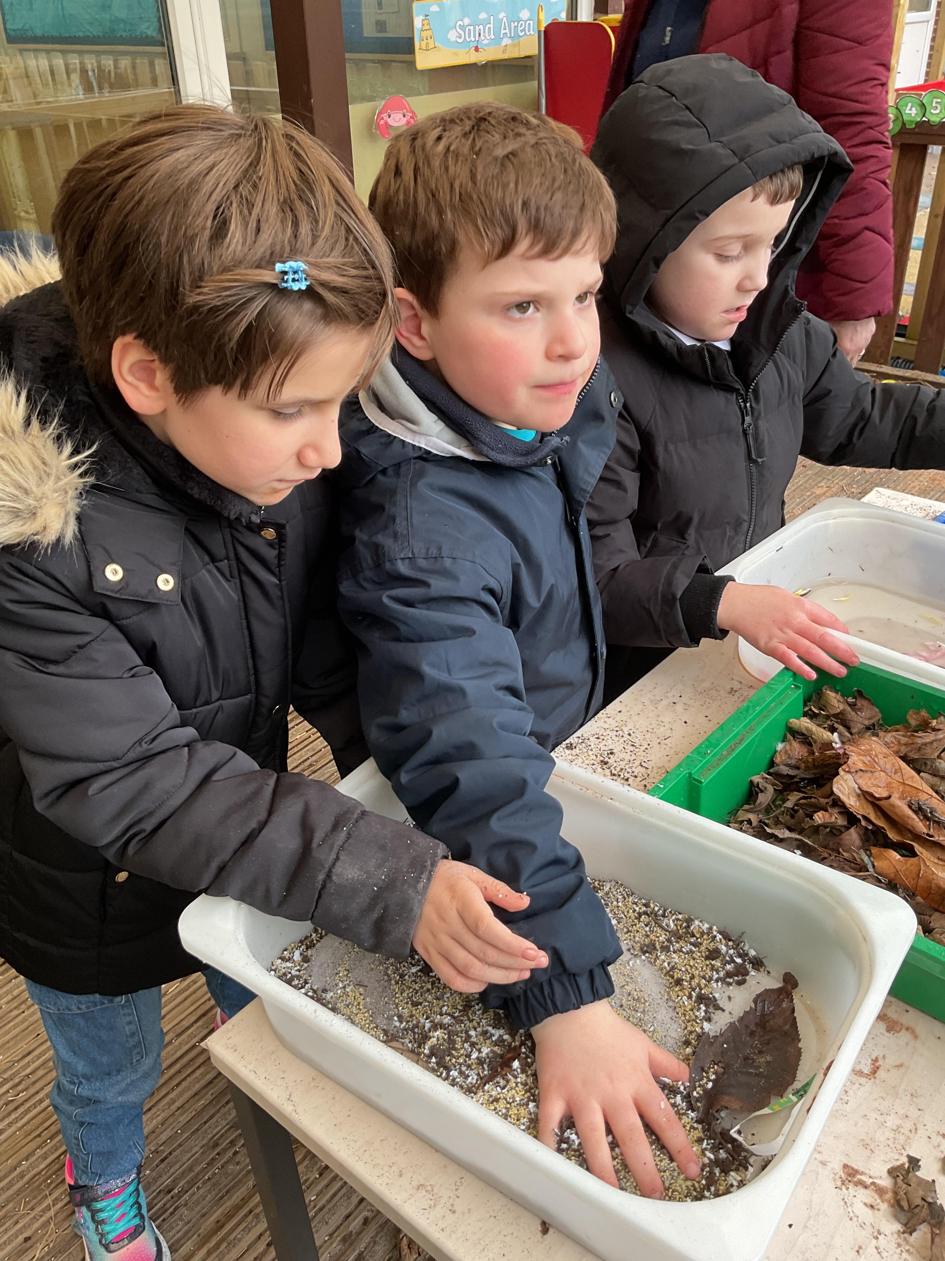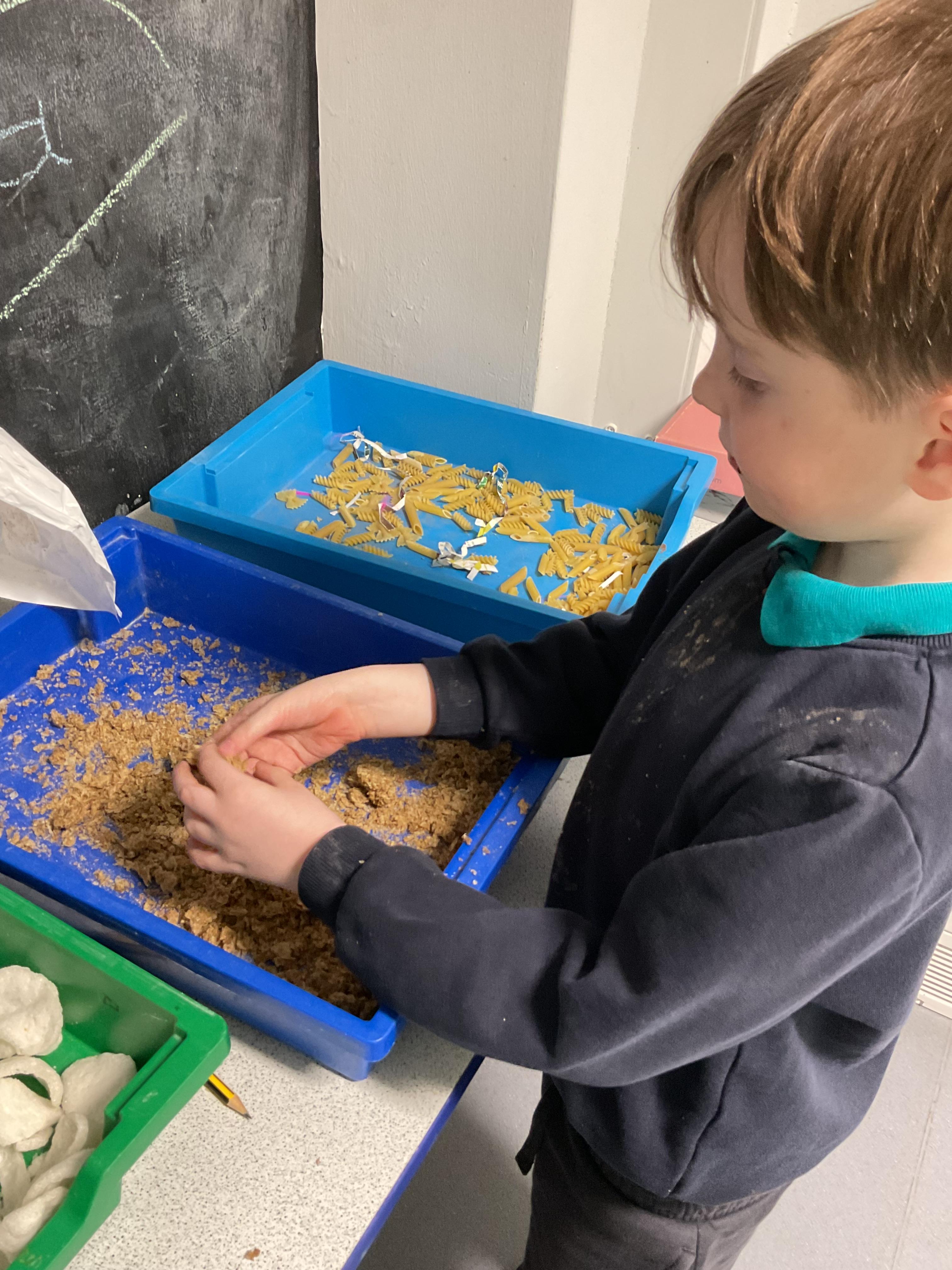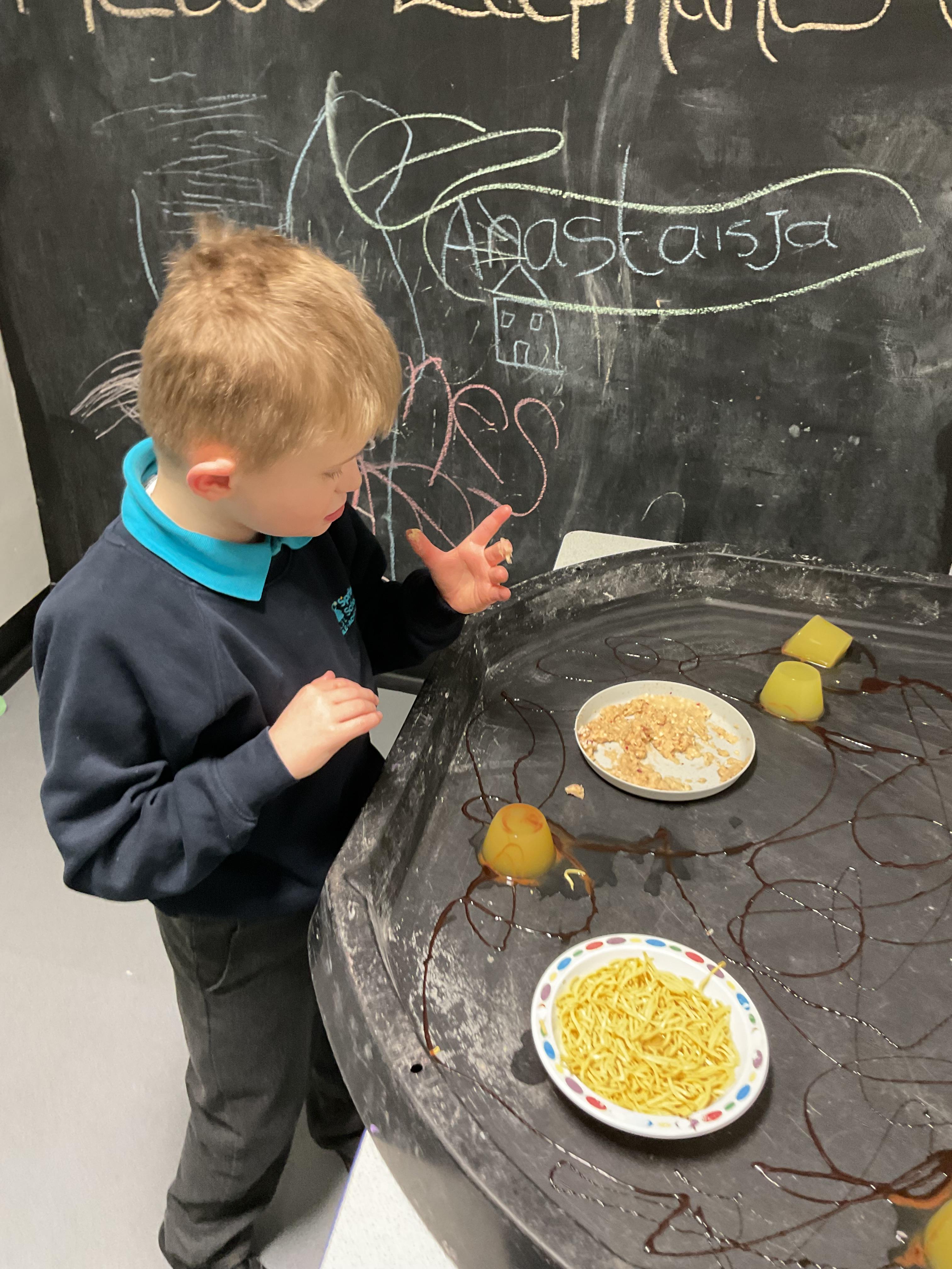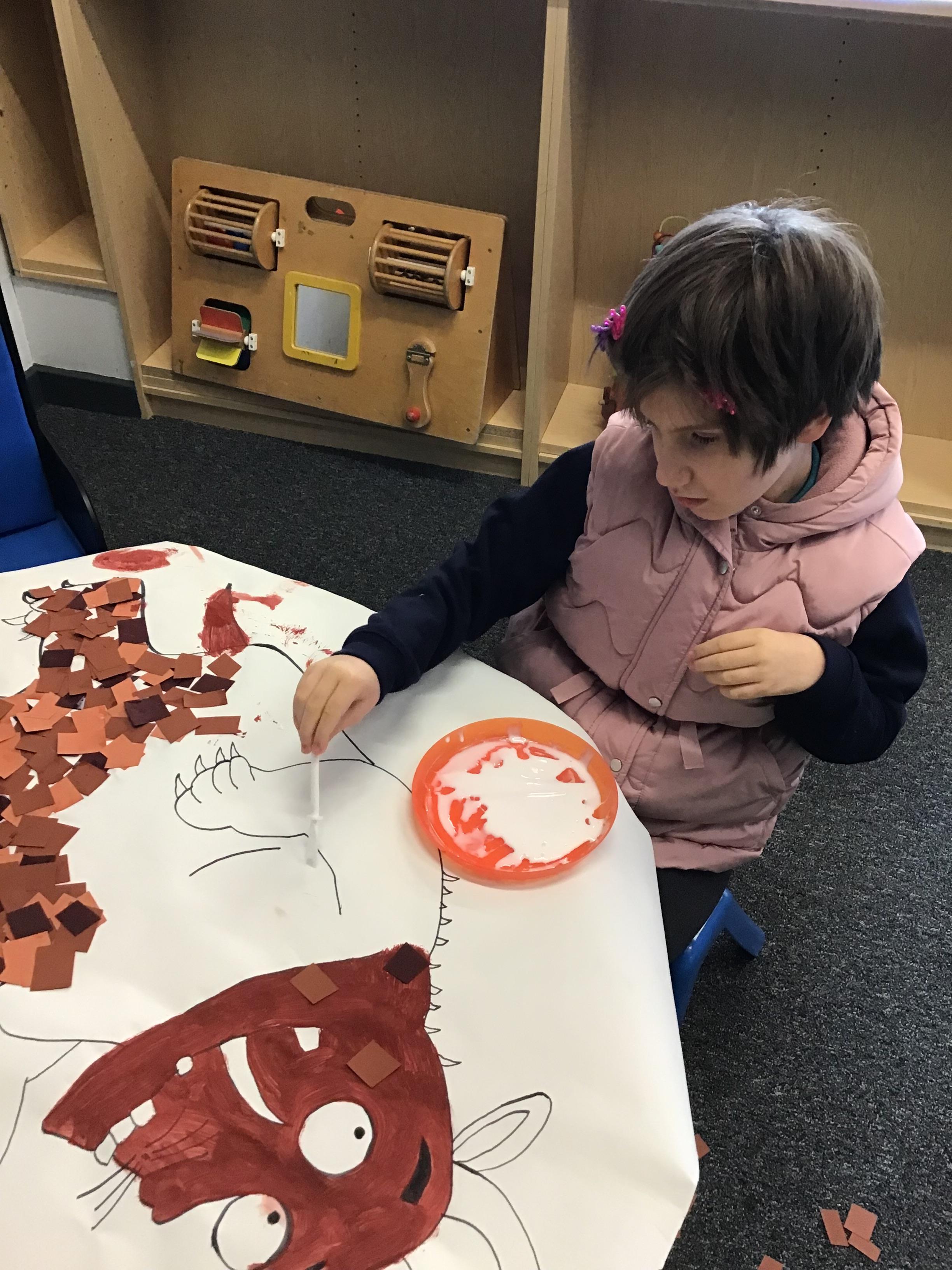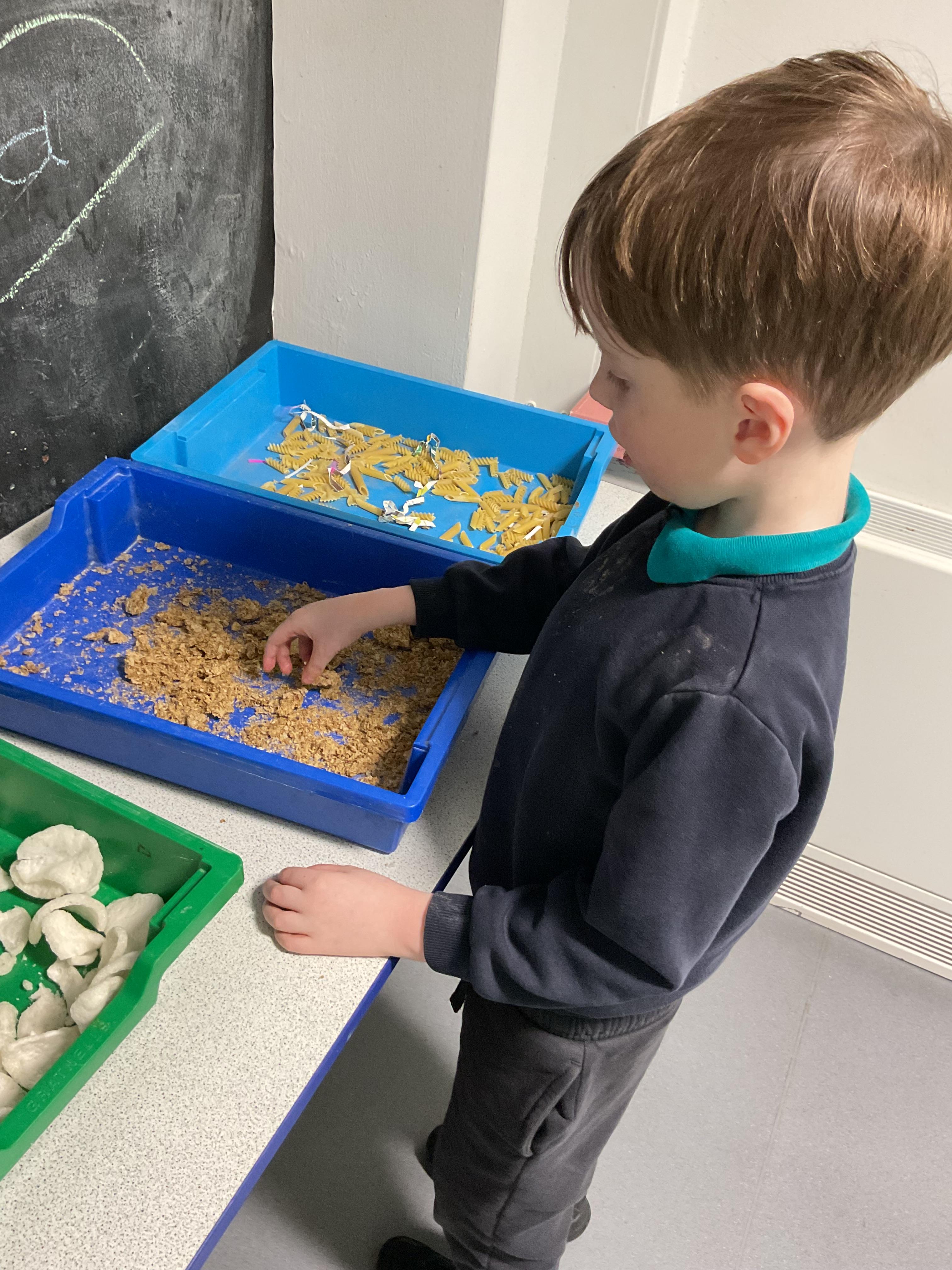Over the last two weeks of term we enjoyed exploring our story of the week in an interactive way. All of the children enjoyed using their senses as they explored the 'Gruffalo Crumble' alongside a variety of textures objects and food sources.
