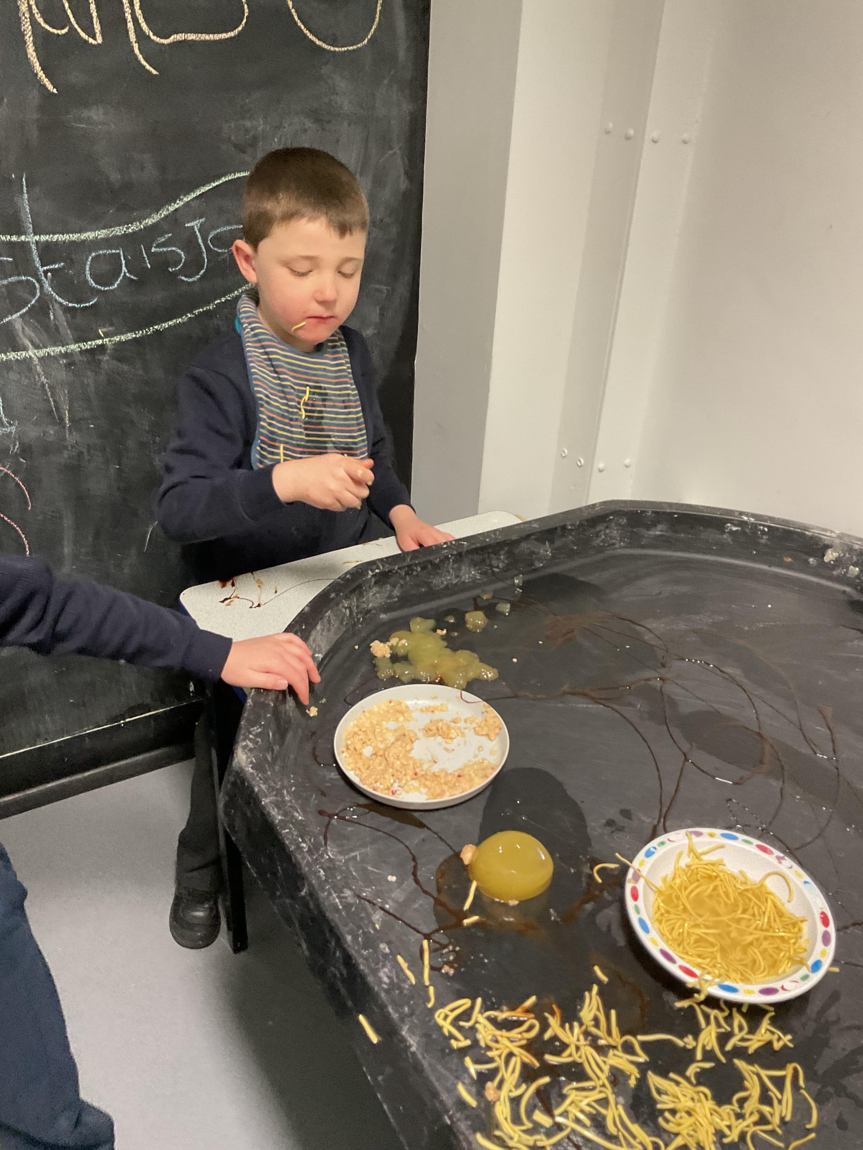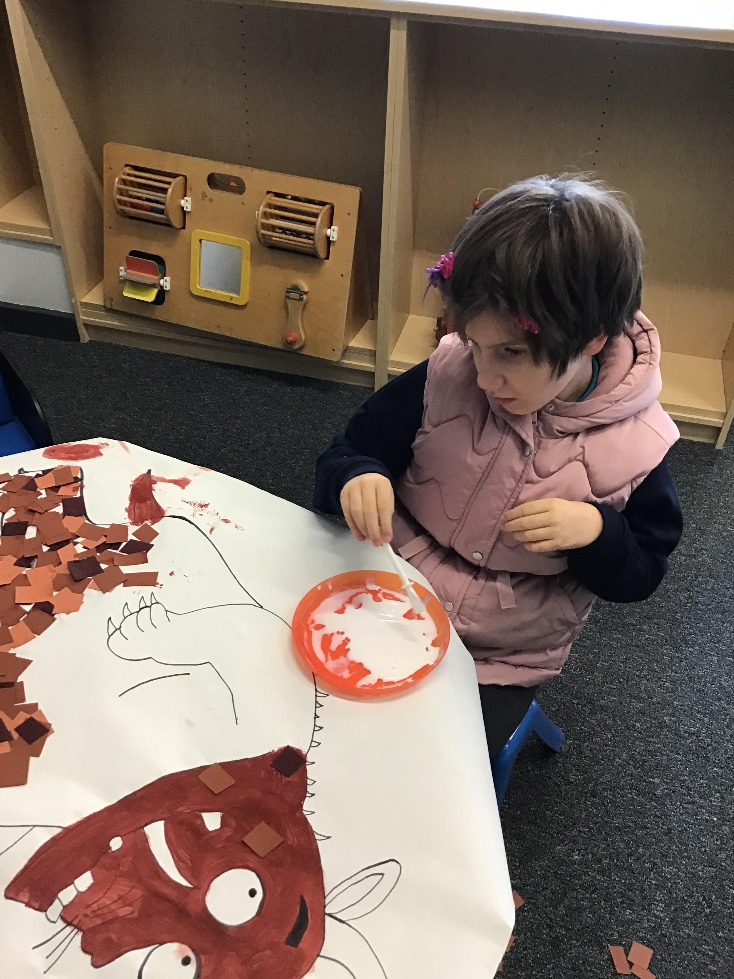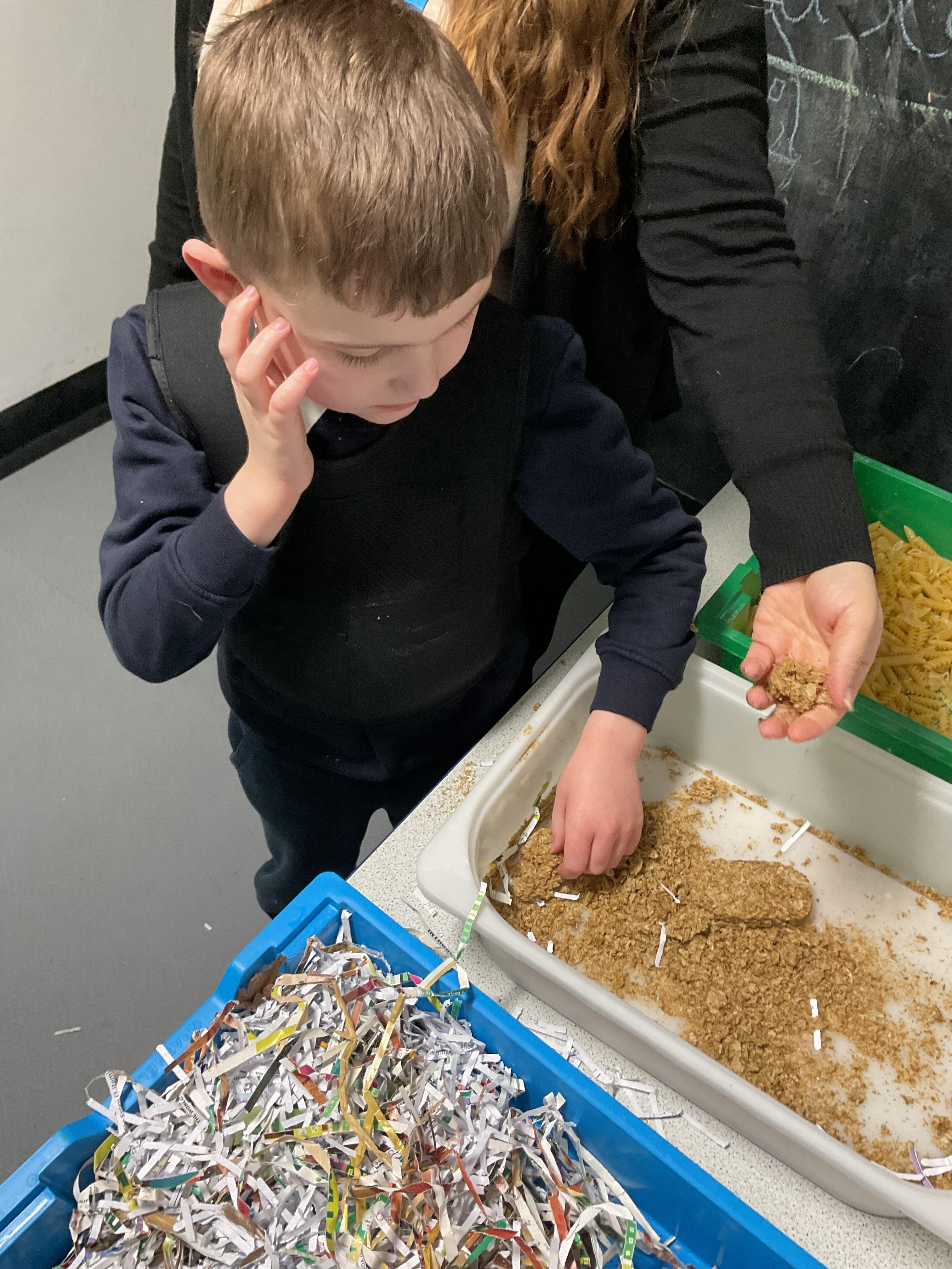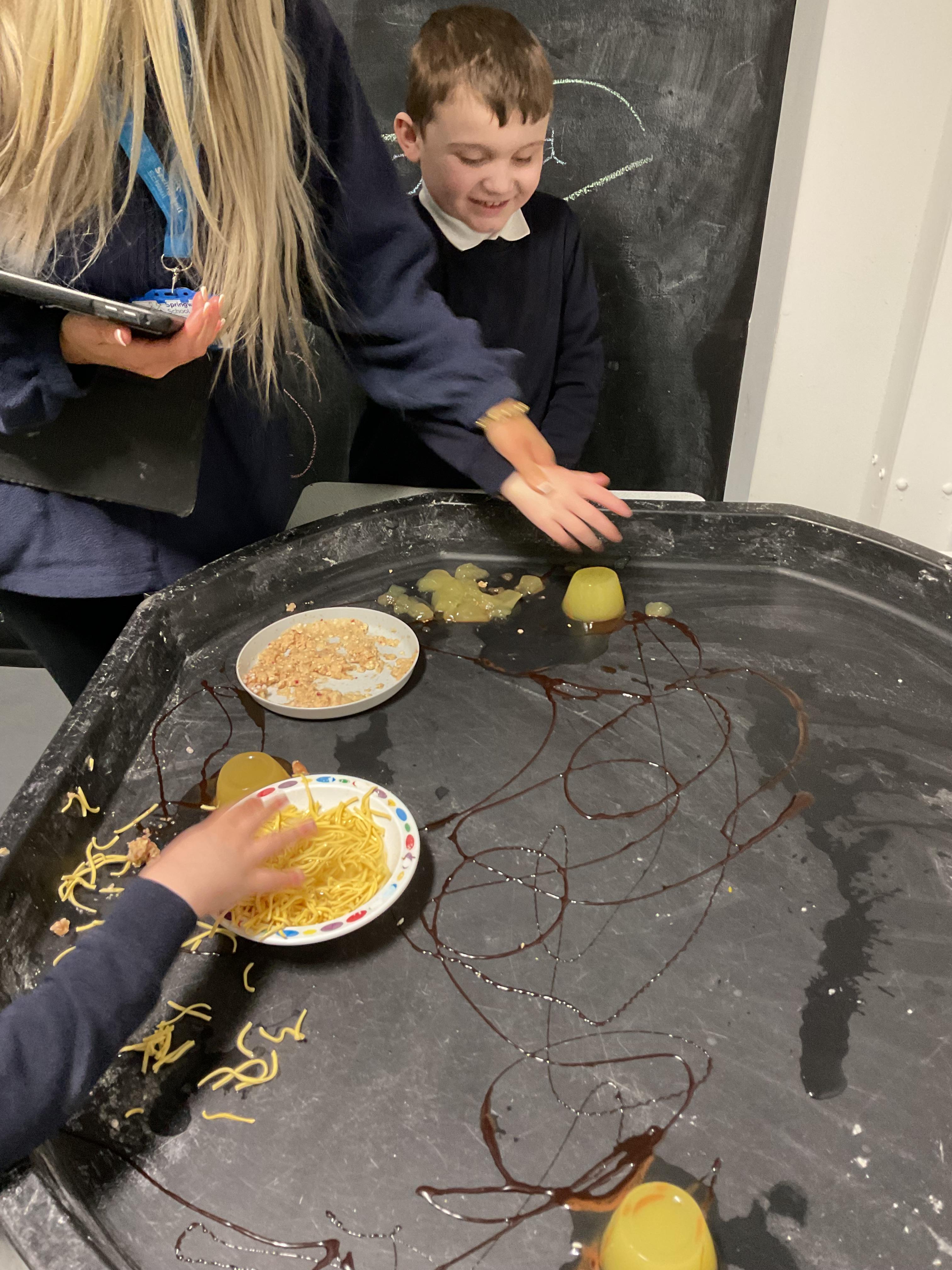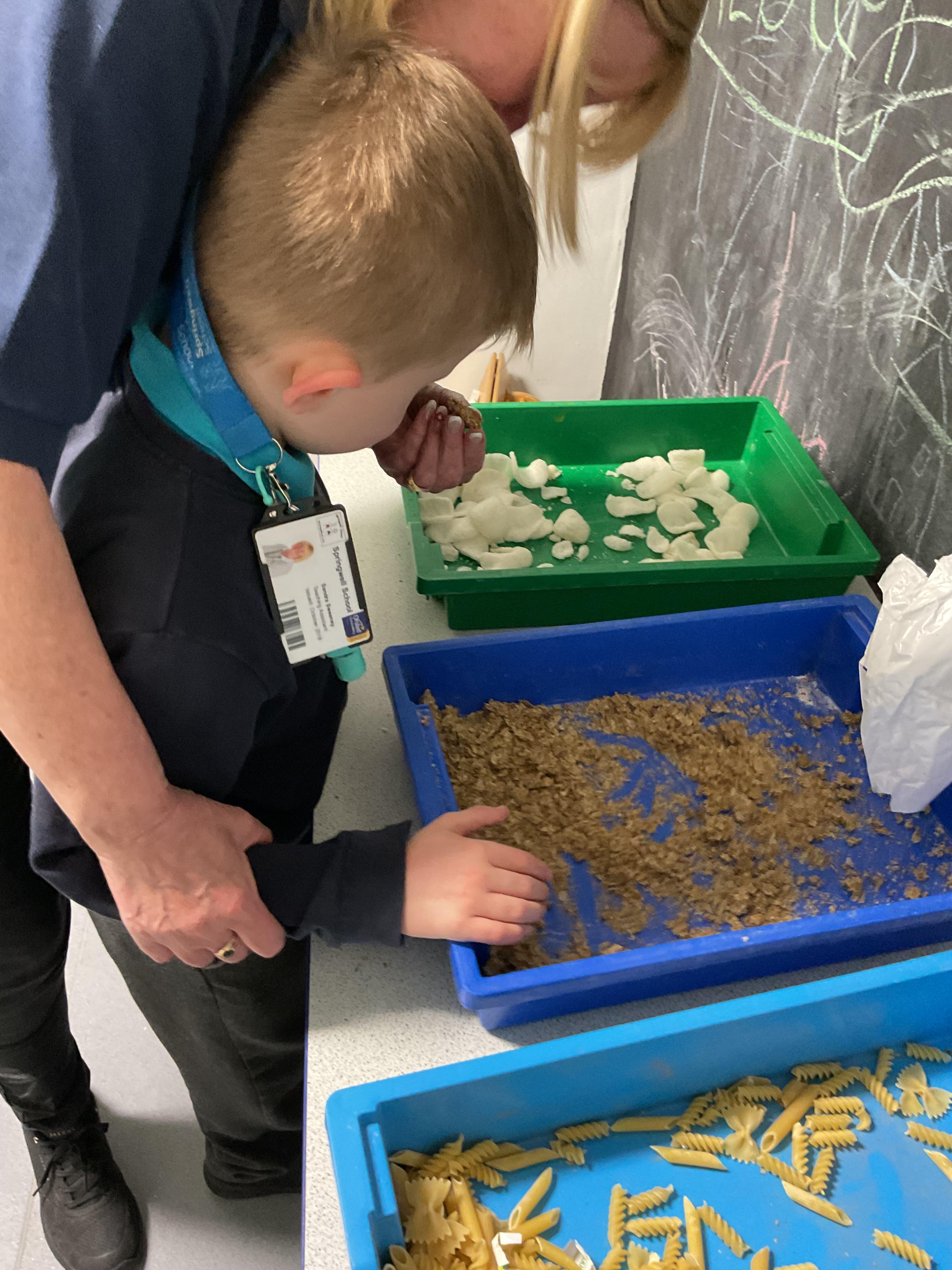 Over the last two weeks of term we enjoyed exploring our story of the week in an interactive way. All of the children enjoyed using their senses as they explored the 'Gruffalo Crumble' alongside a variety of textures objects and food sources.
