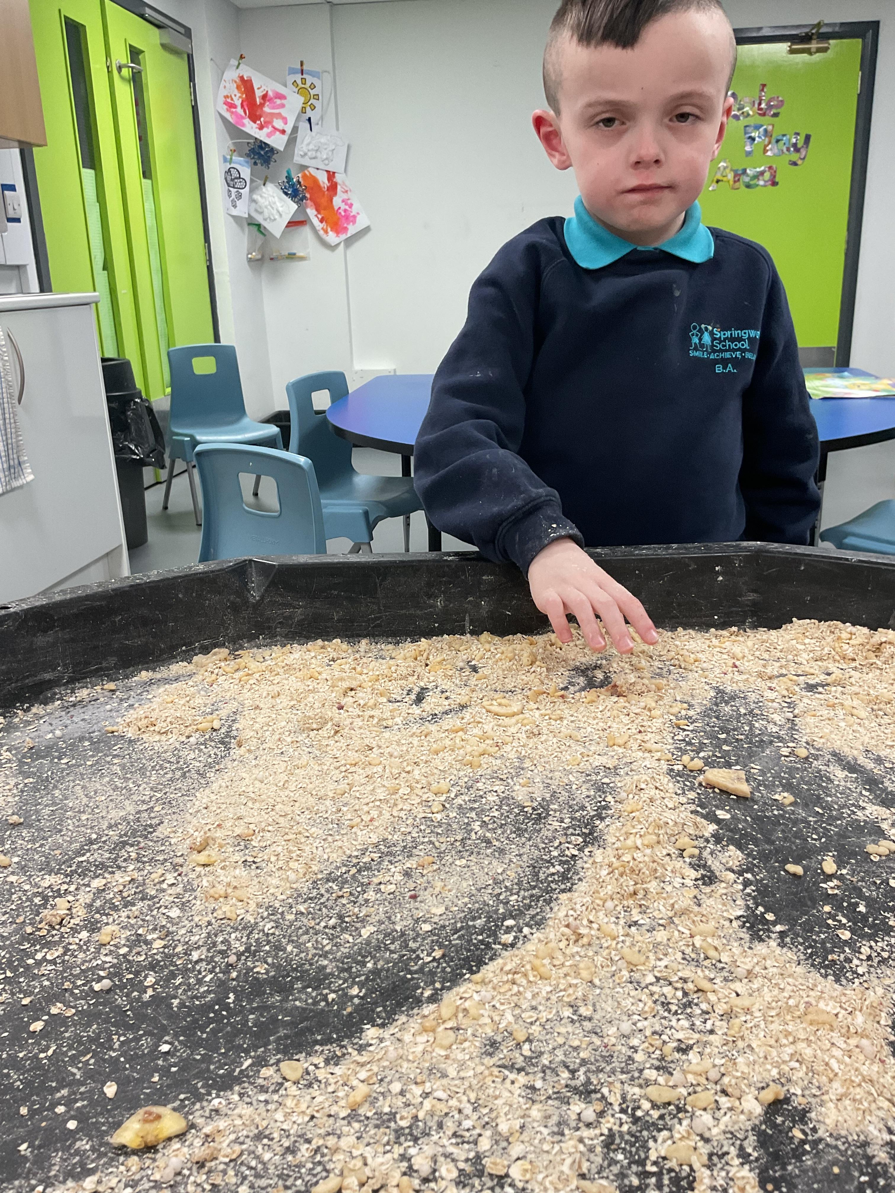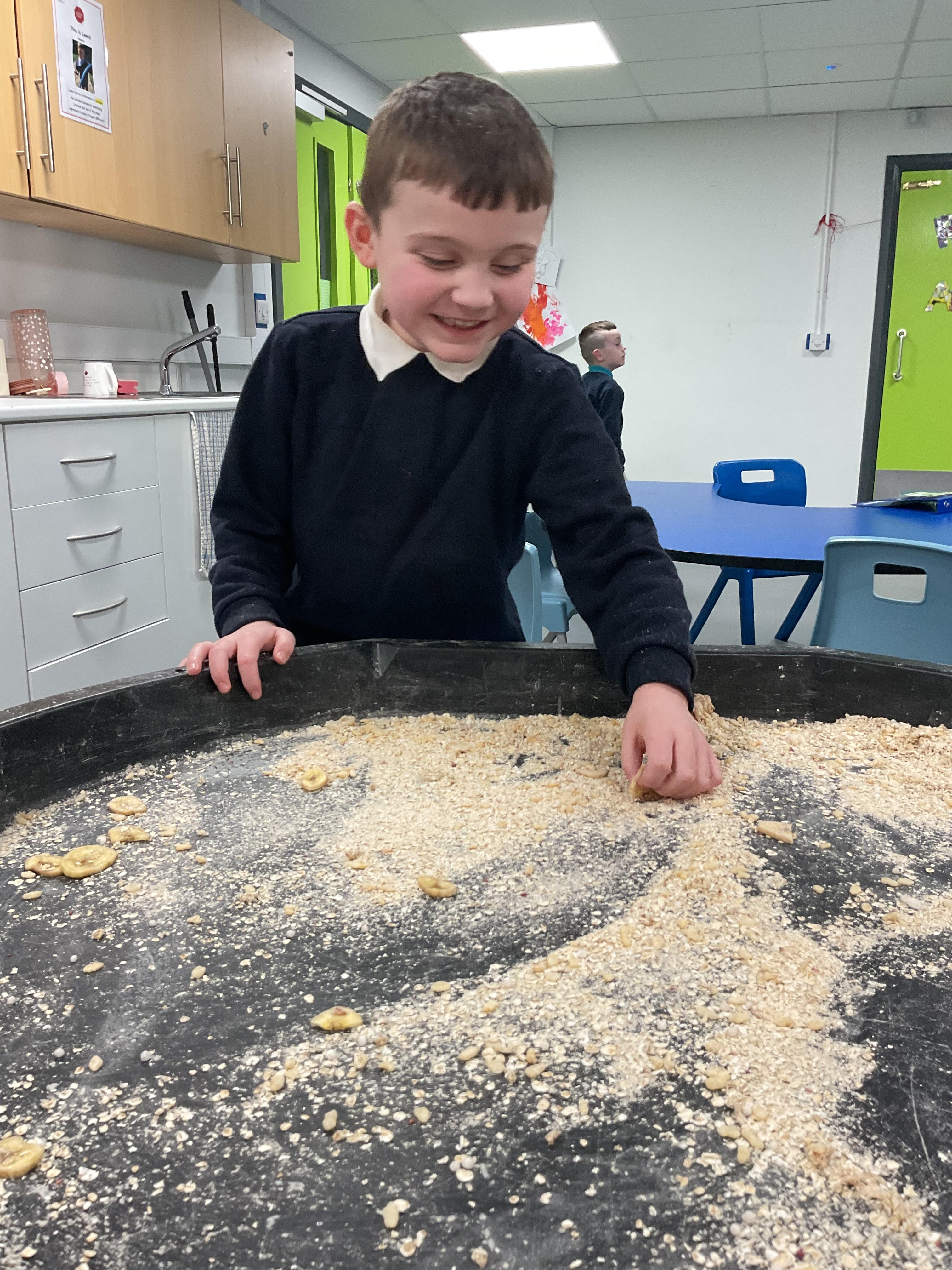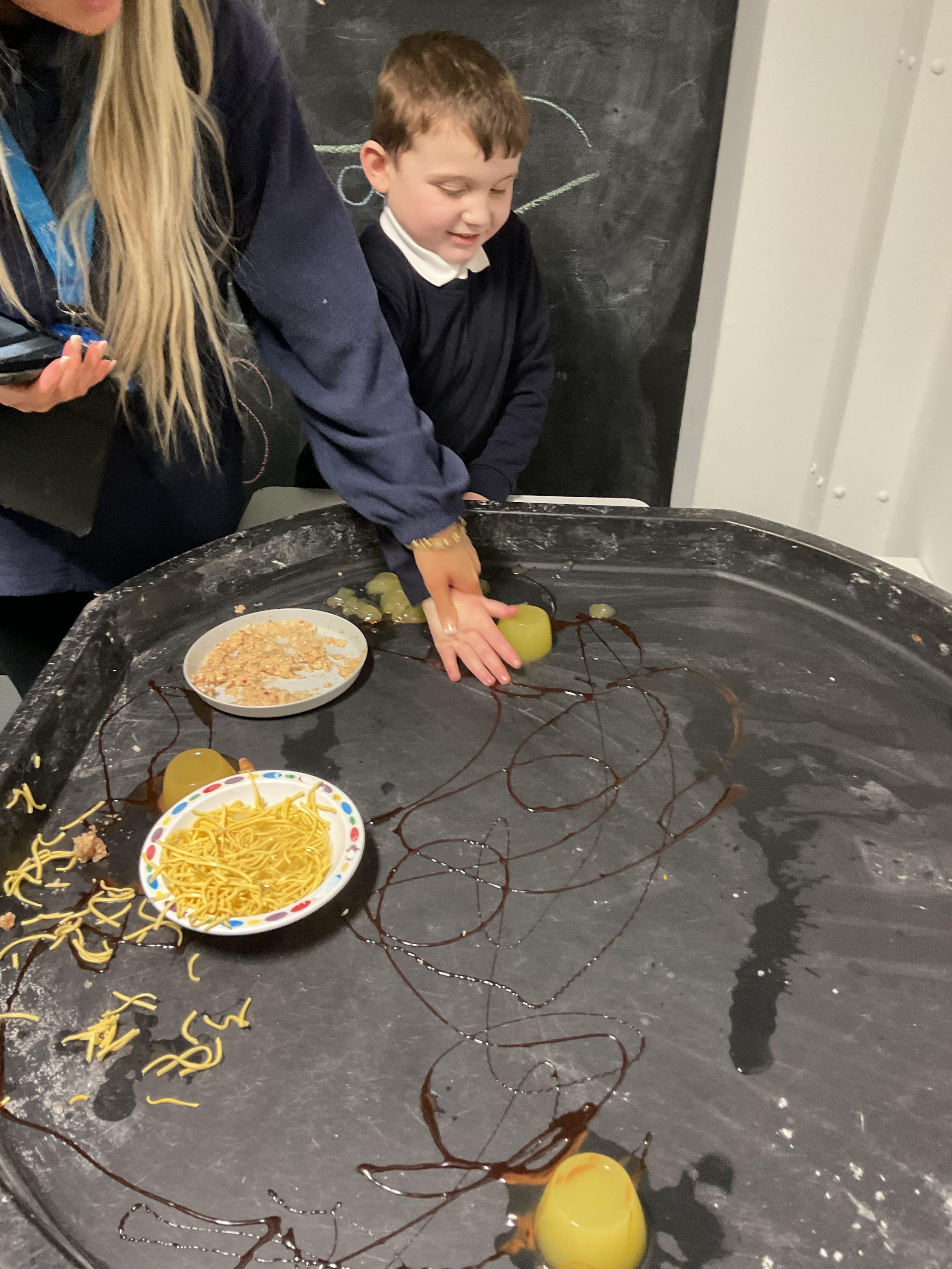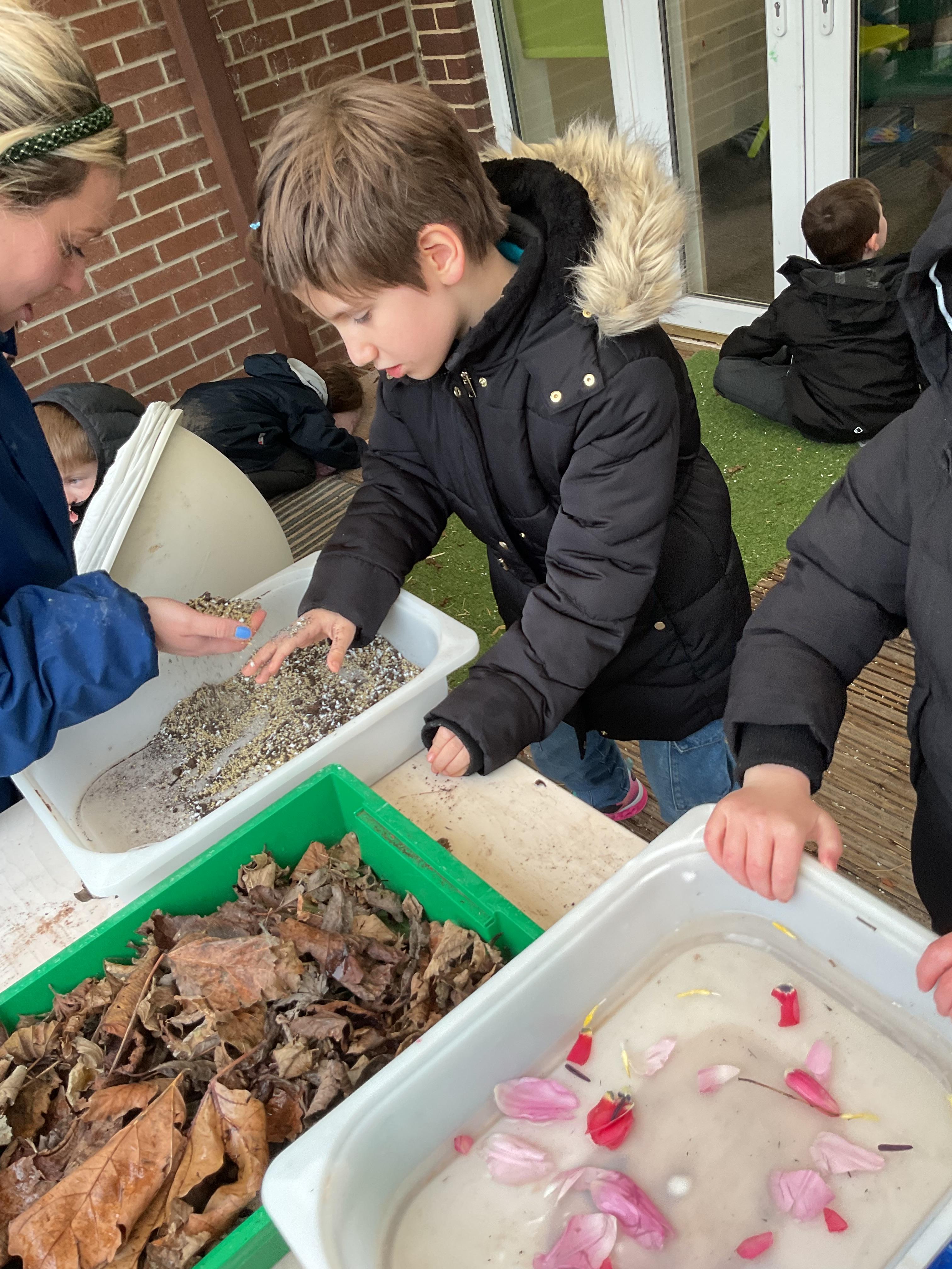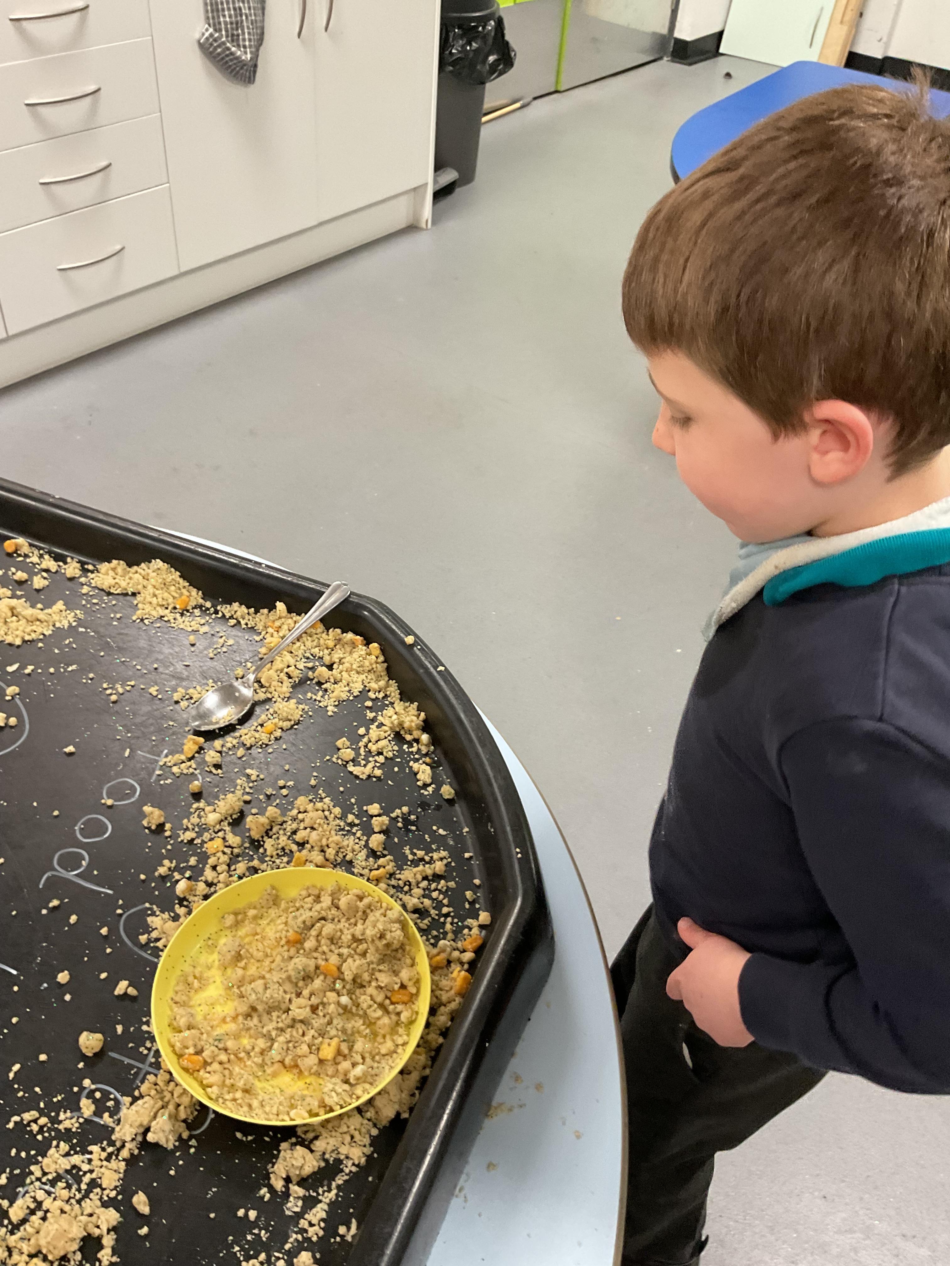 Over the last two weeks of term we enjoyed exploring our story of the week in an interactive way. All of the children enjoyed using their senses as they explored the 'Gruffalo Crumble' alongside a variety of textures objects and food sources.