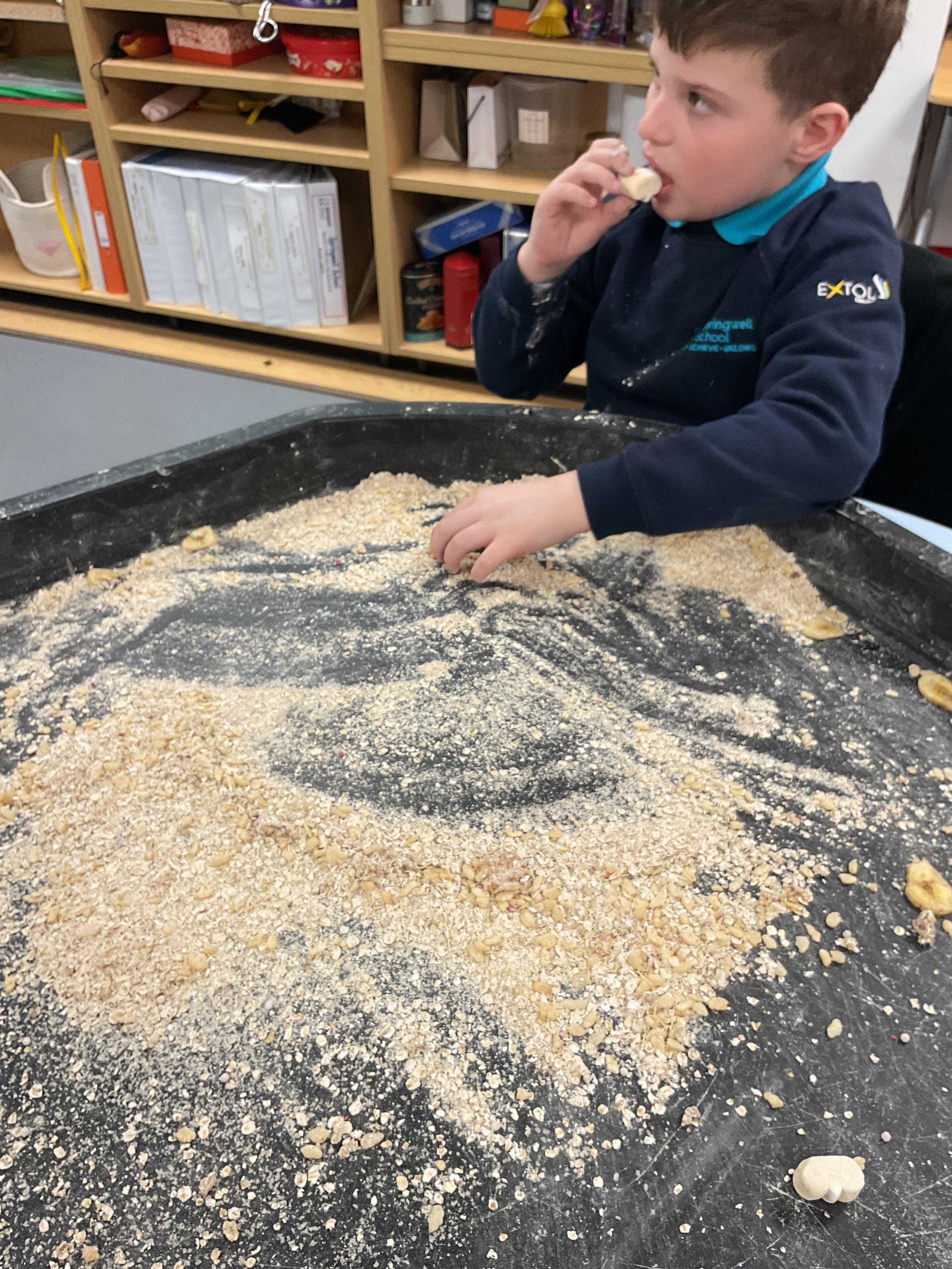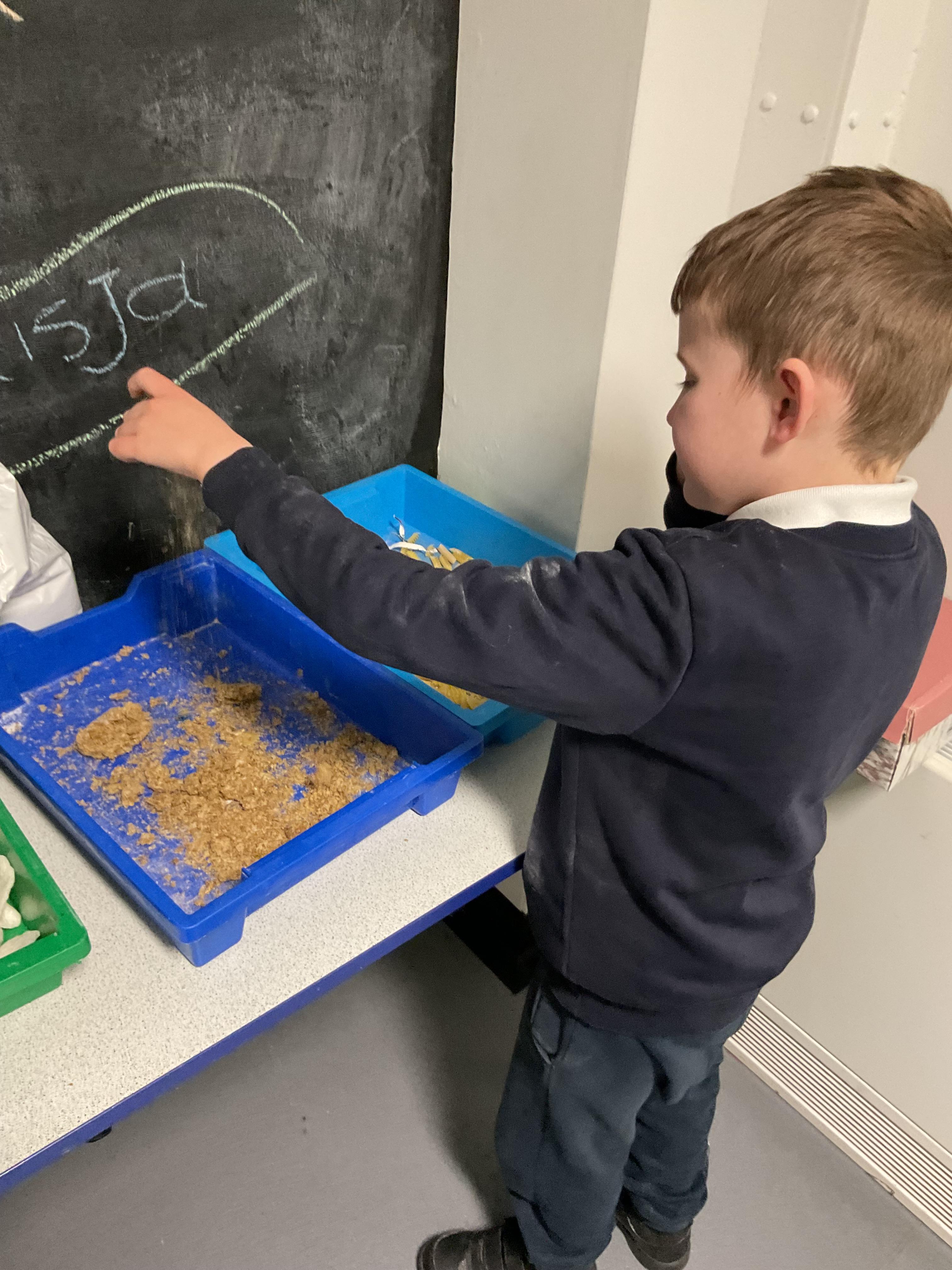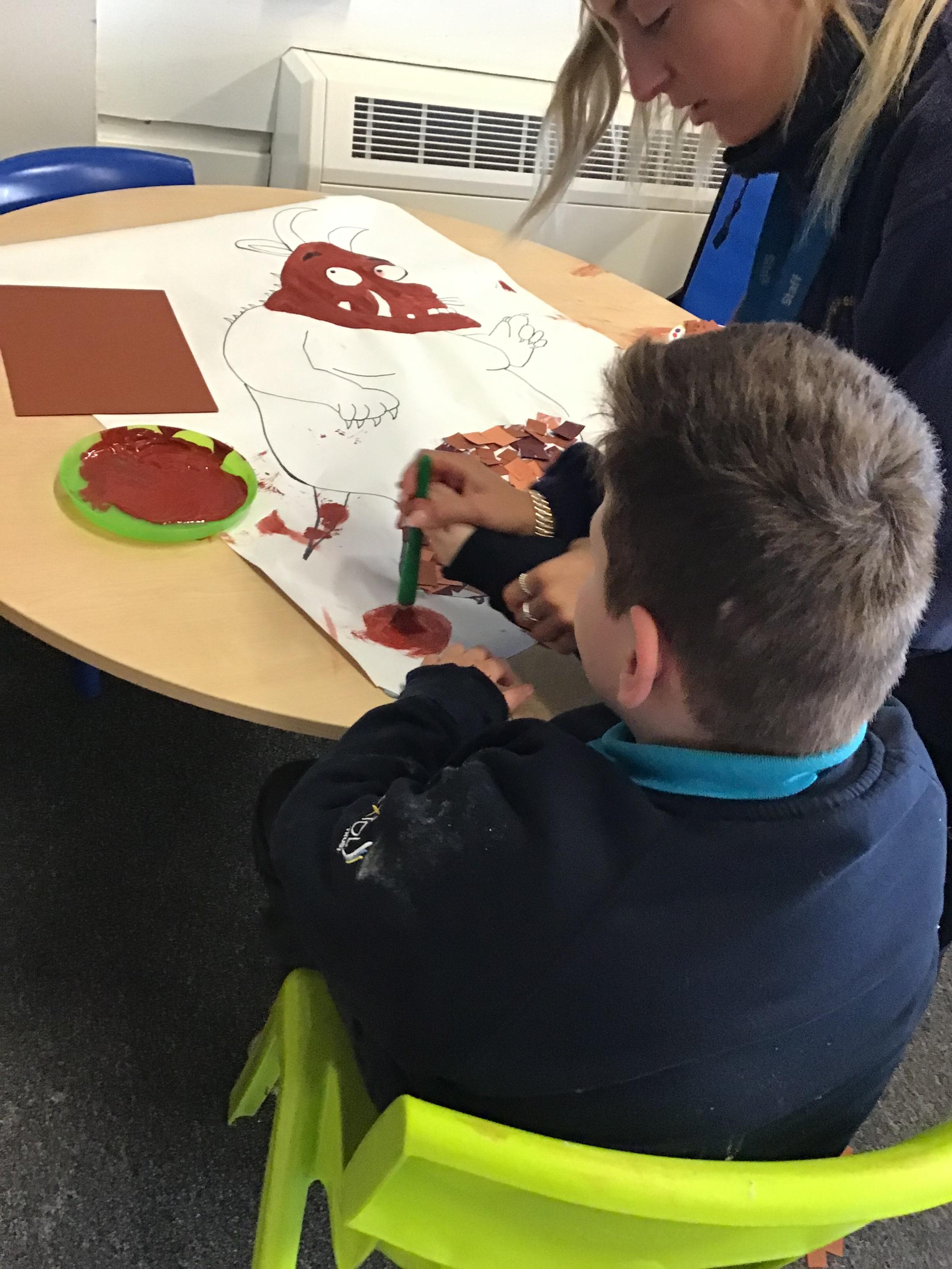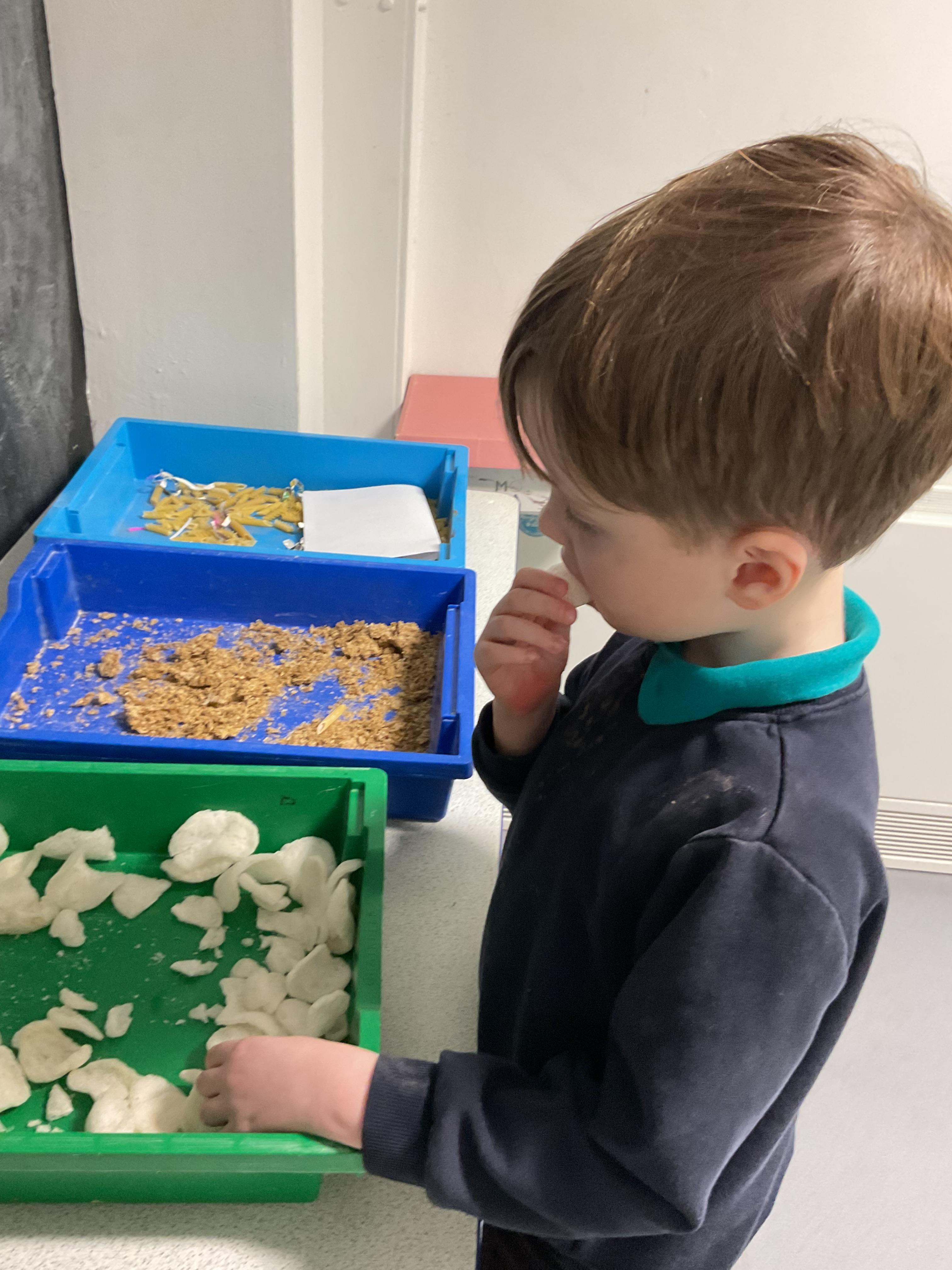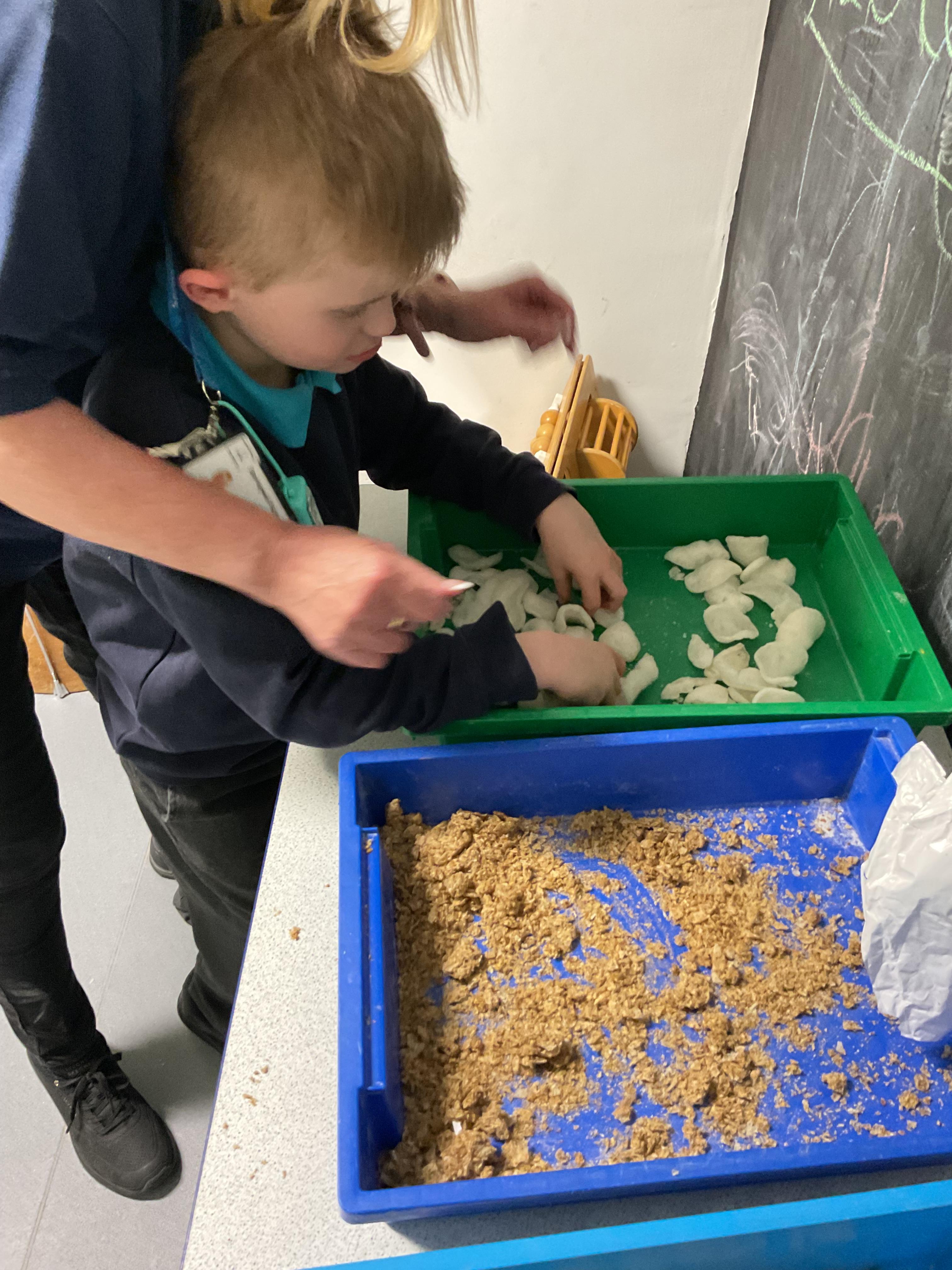 Over the last two weeks of term we enjoyed exploring our story of the week in an interactive way. All of the children enjoyed using their senses as they explored the 'Gruffalo Crumble' alongside a variety of textures objects and food sources.