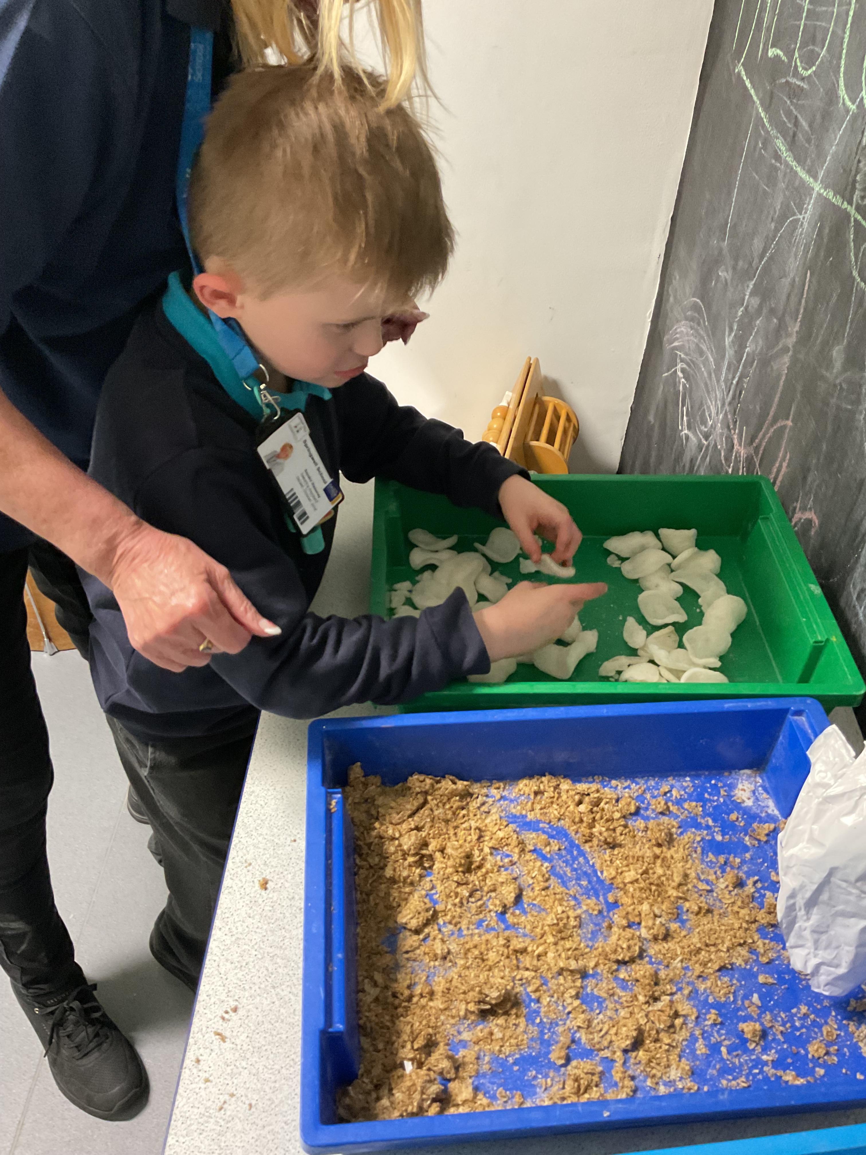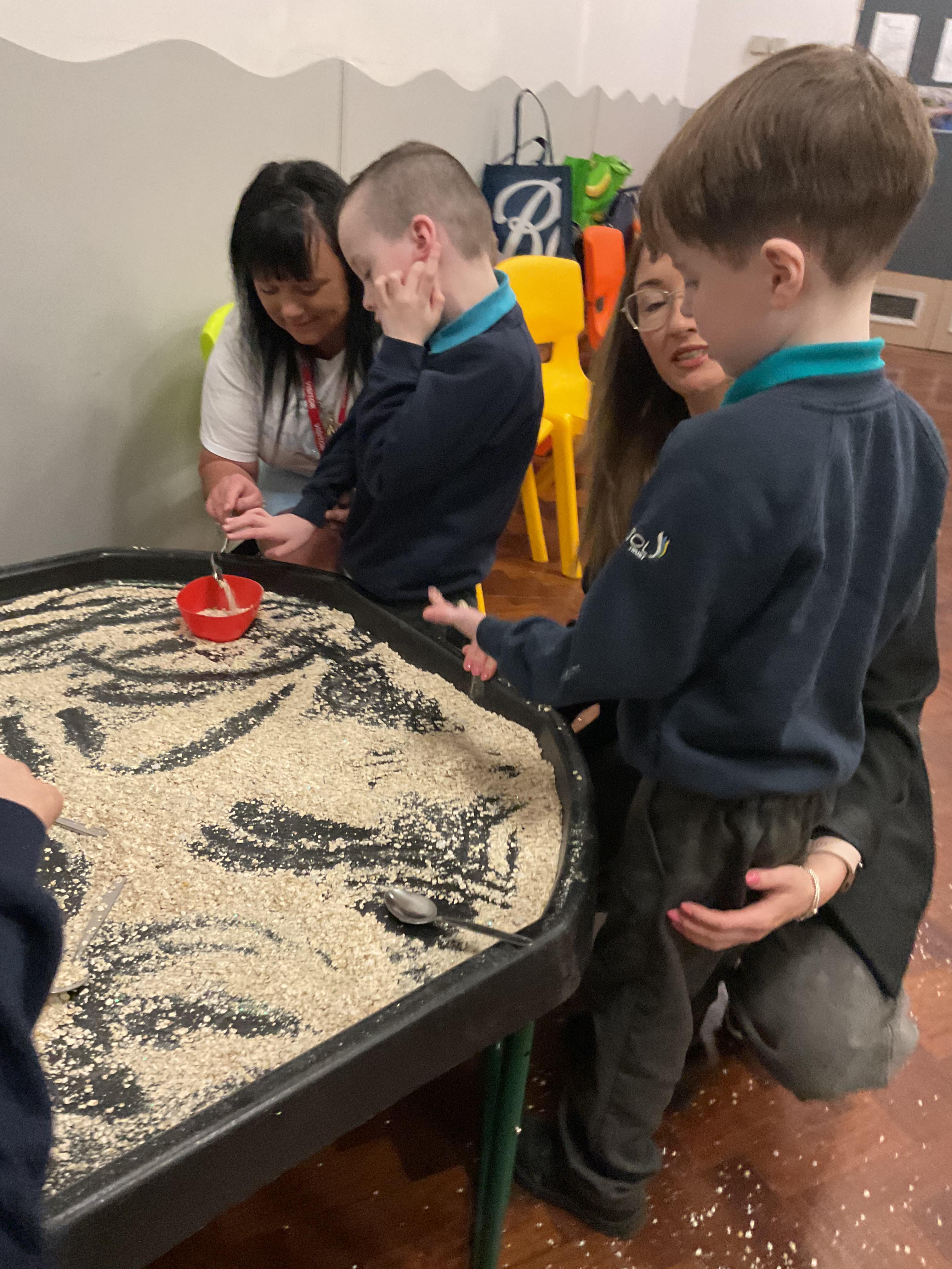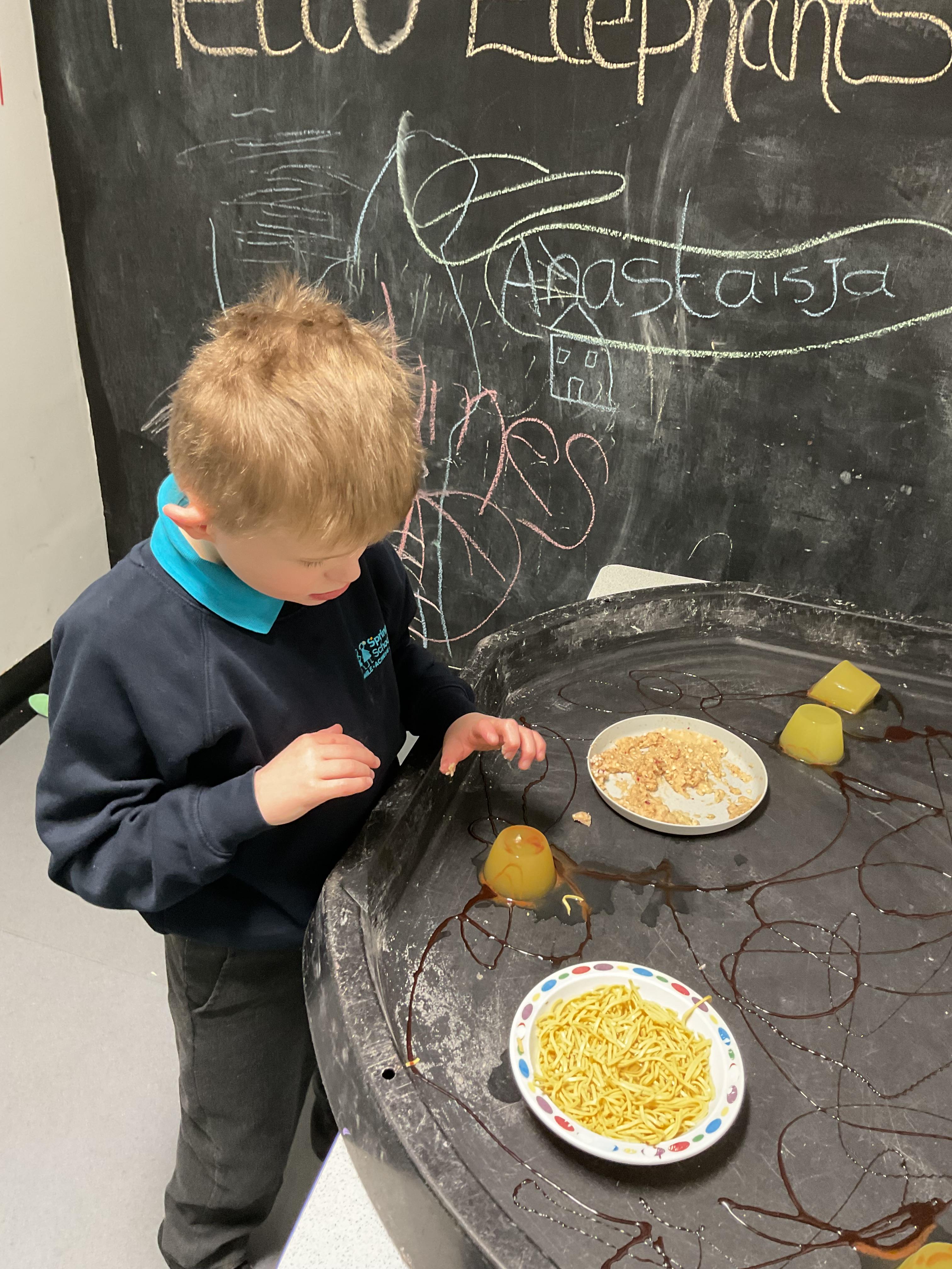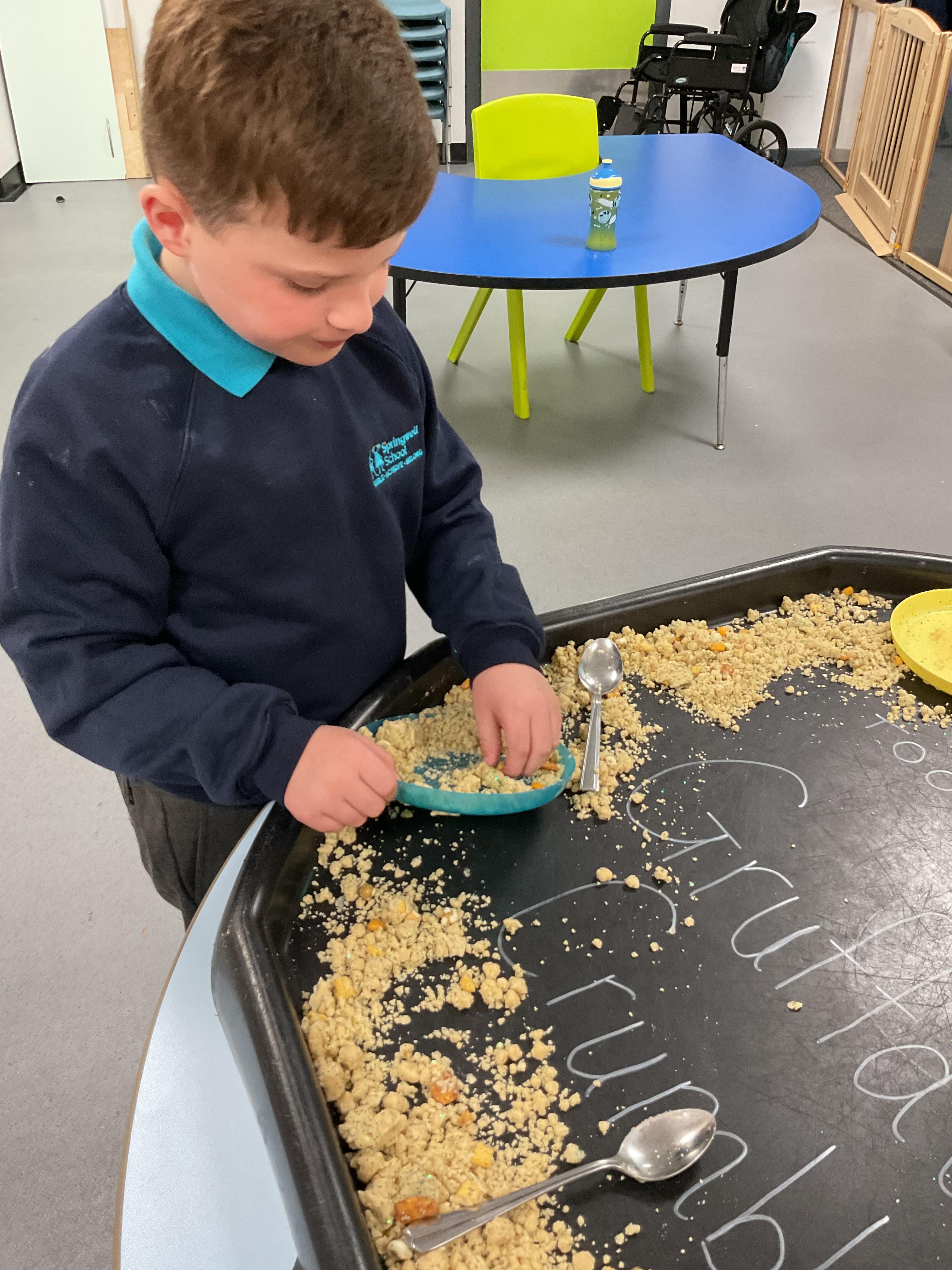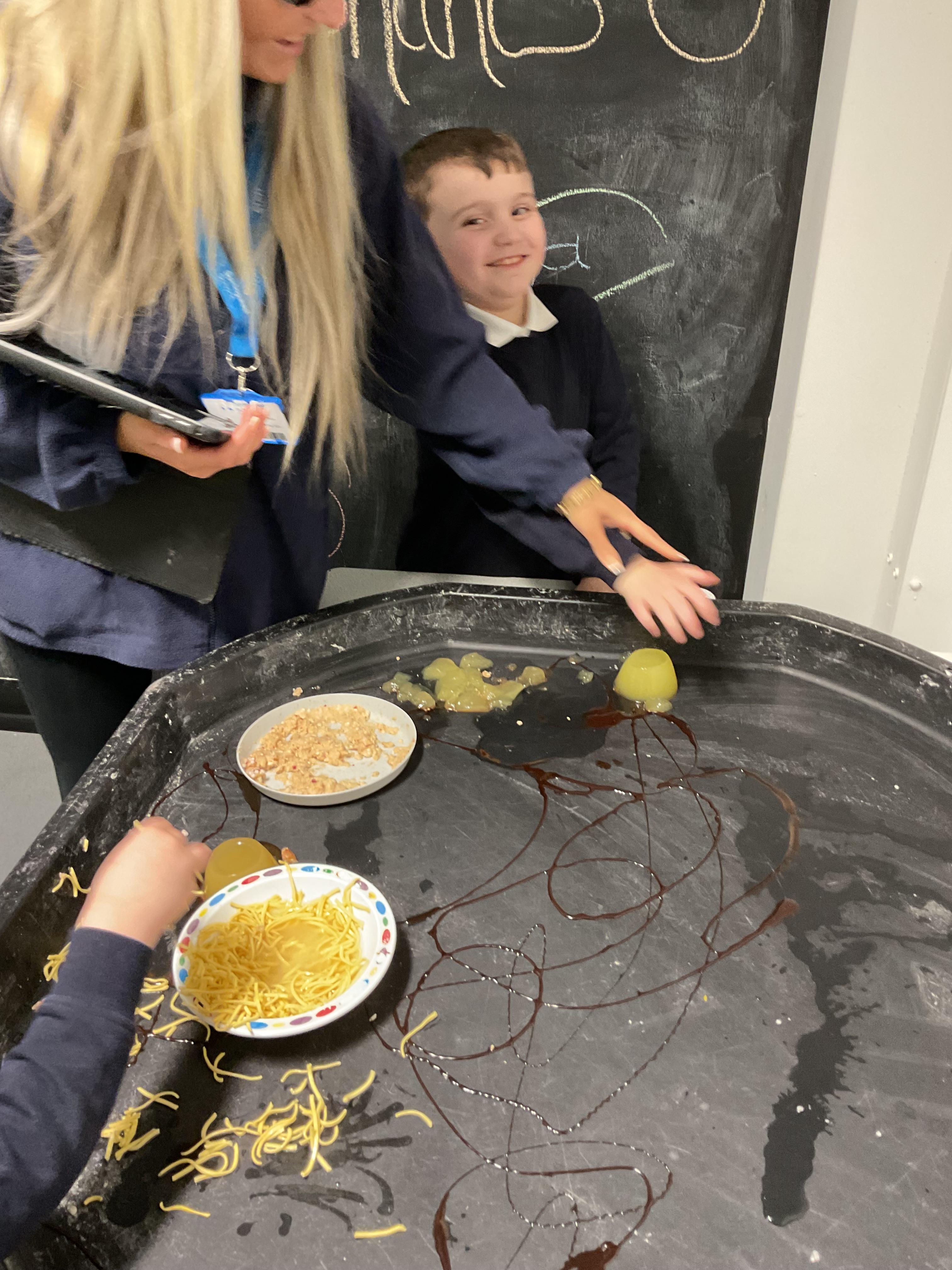 Over the last two weeks of term we enjoyed exploring our story of the week in an interactive way. All of the children enjoyed using their senses as they explored the 'Gruffalo Crumble' alongside a variety of textures objects and food sources.