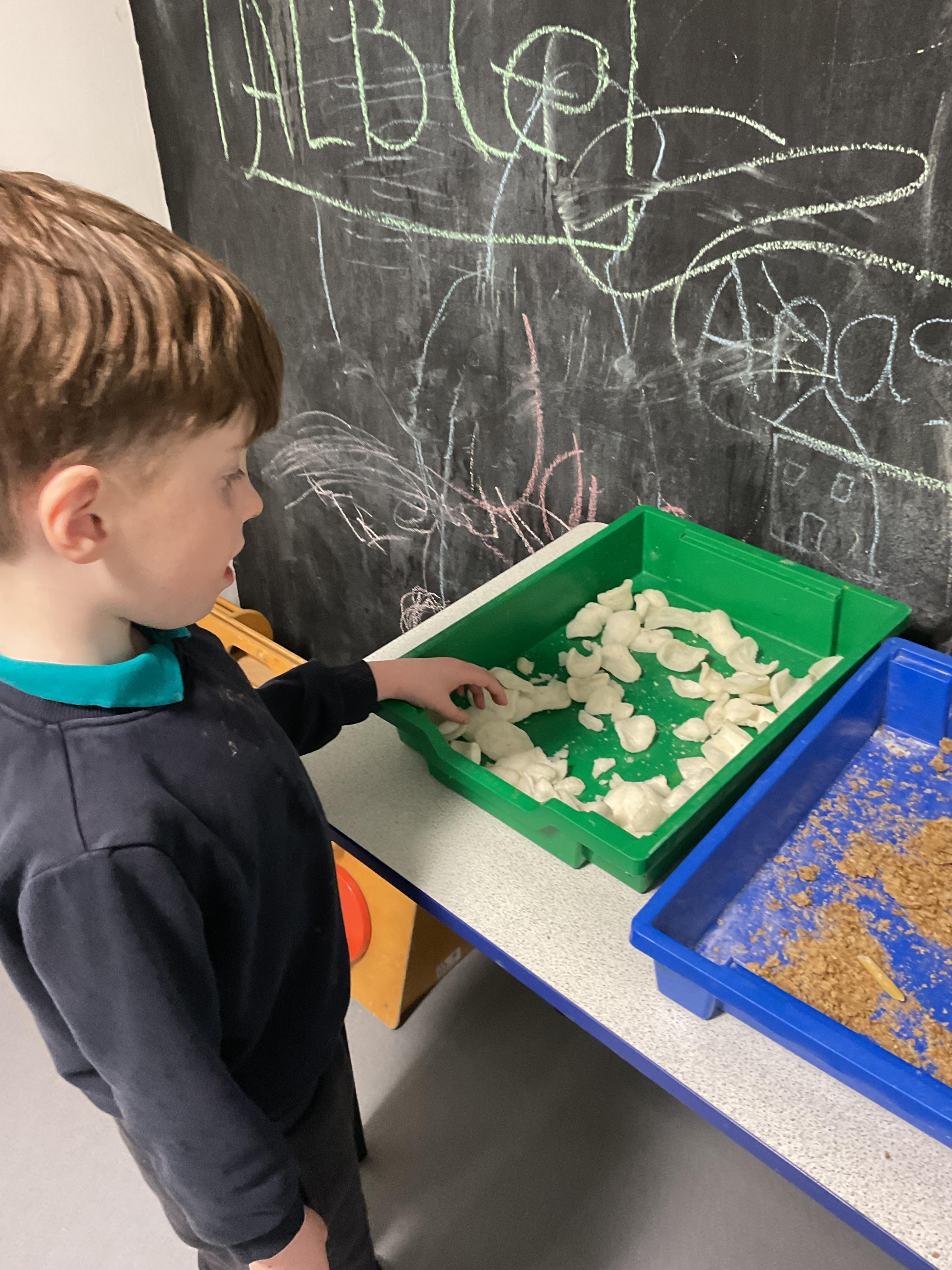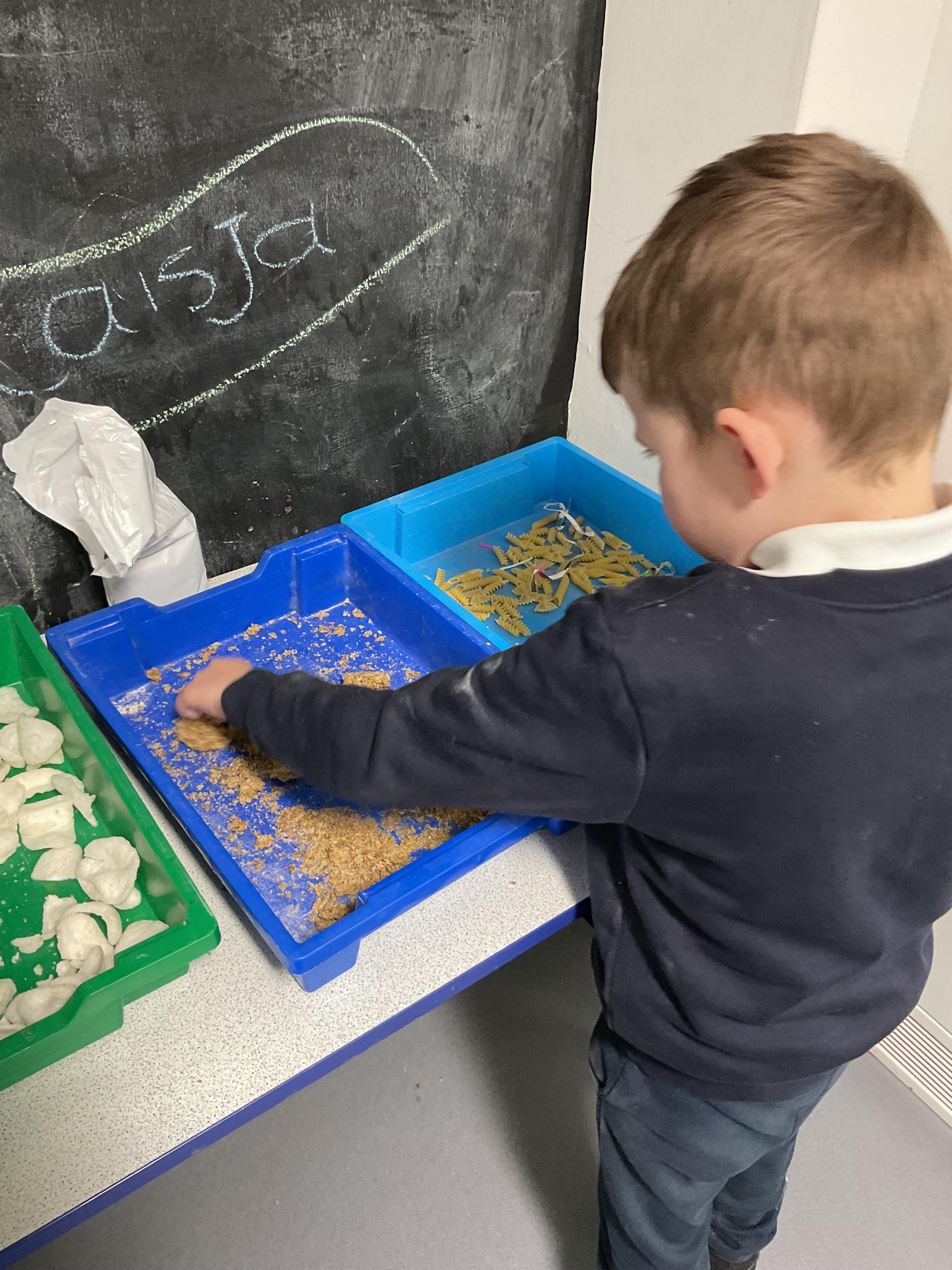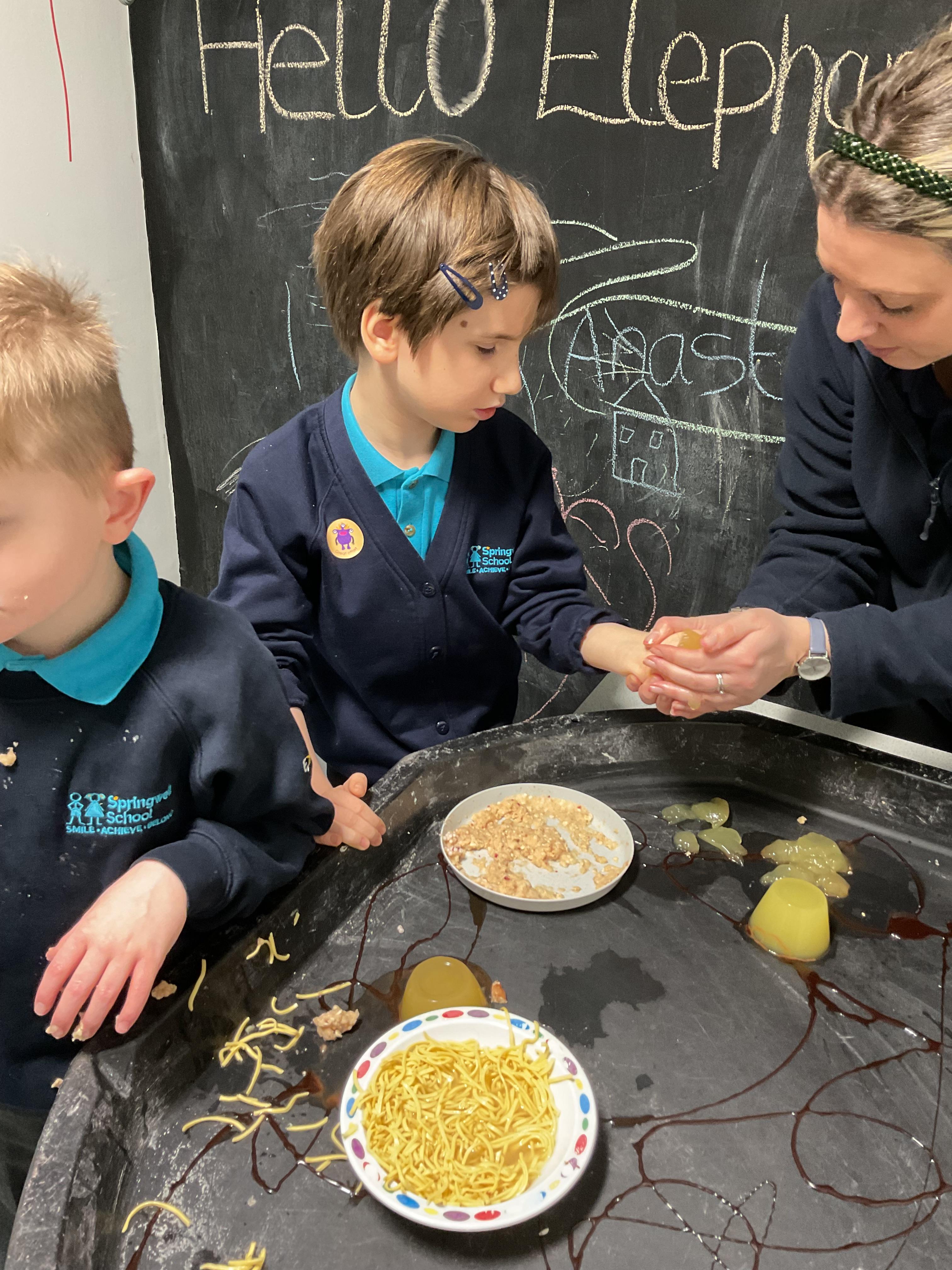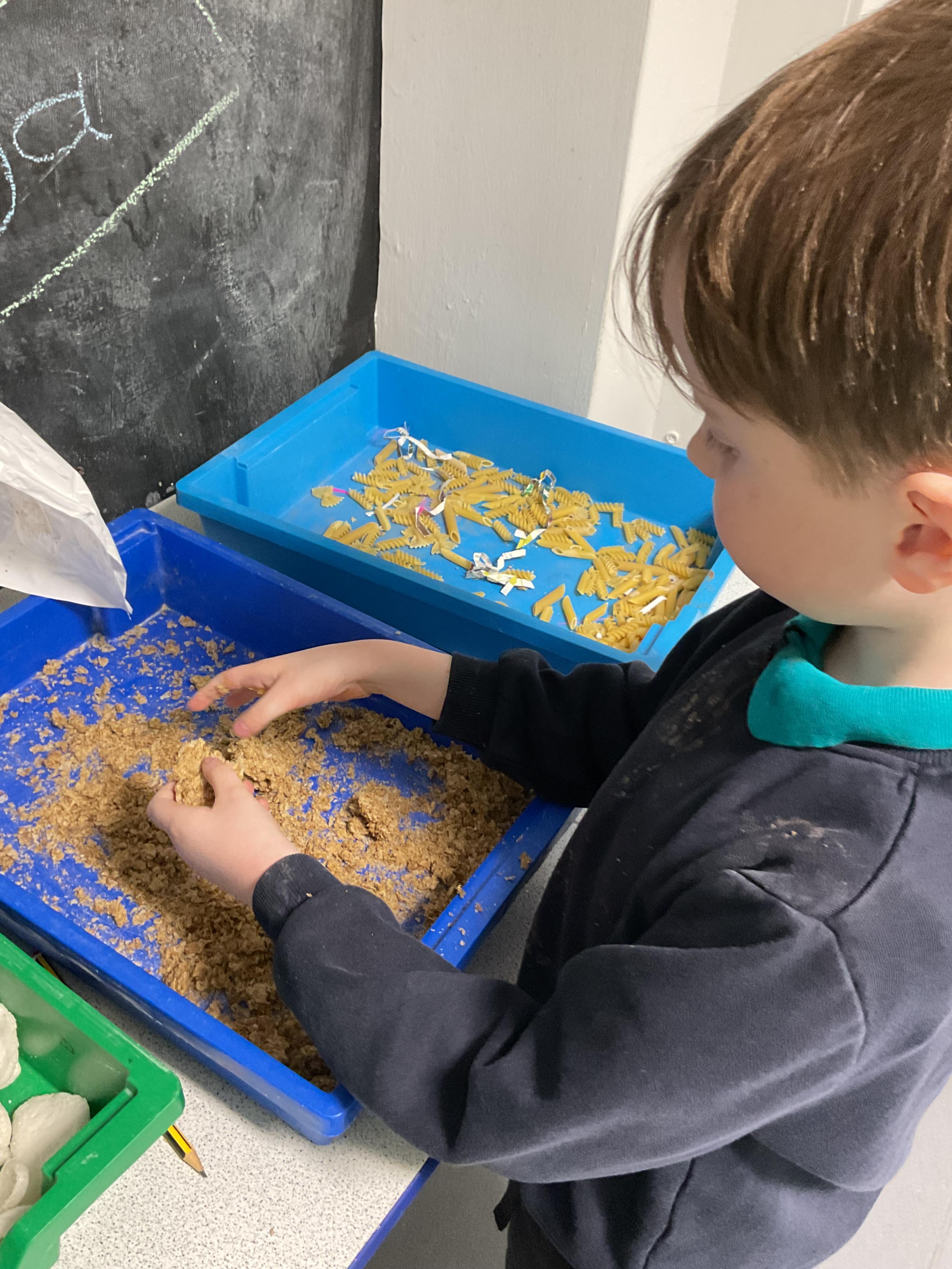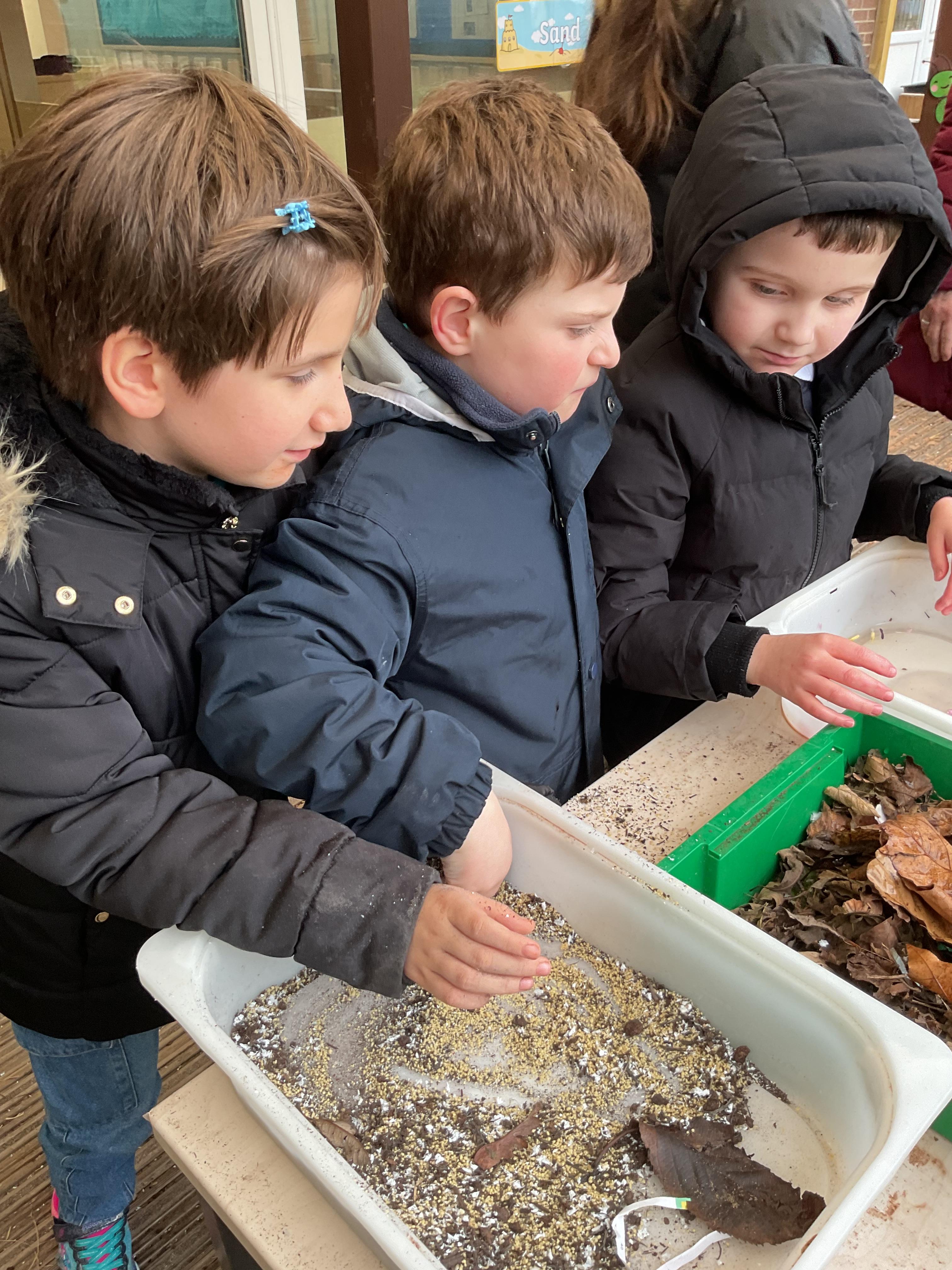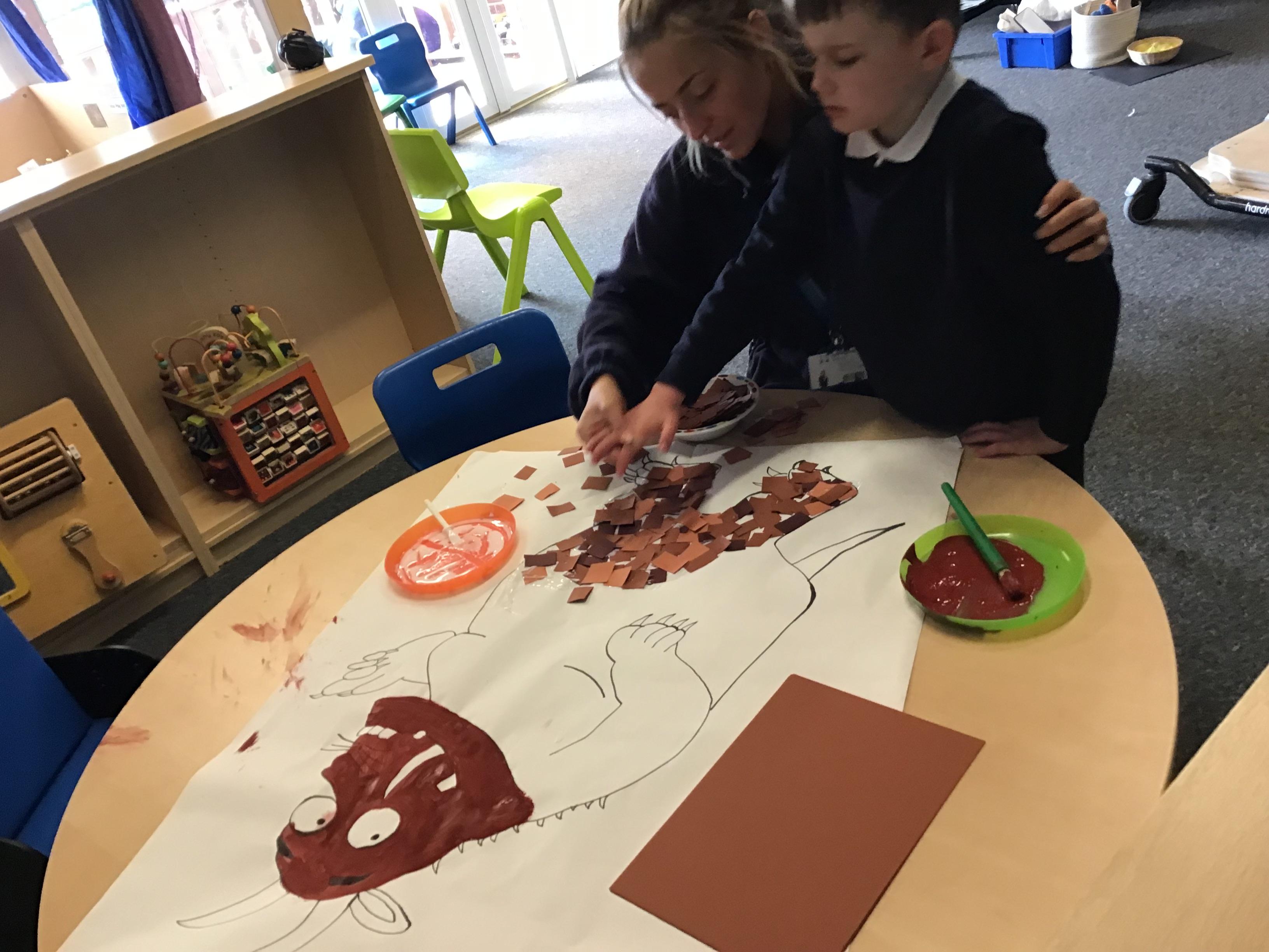 Over the last two weeks of term we enjoyed exploring our story of the week in an interactive way. All of the children enjoyed using their senses as they explored the 'Gruffalo Crumble' alongside a variety of textures objects and food sources.