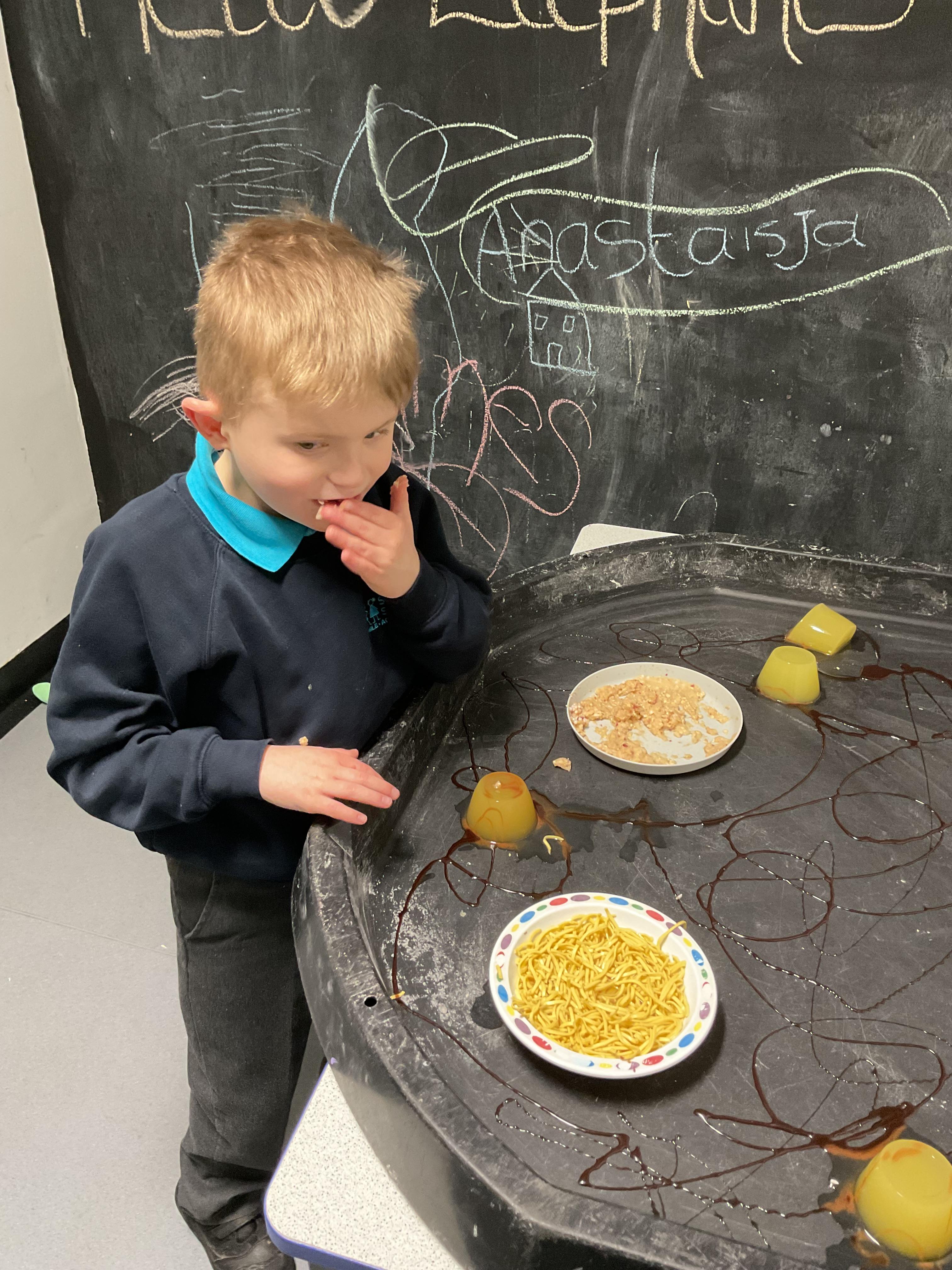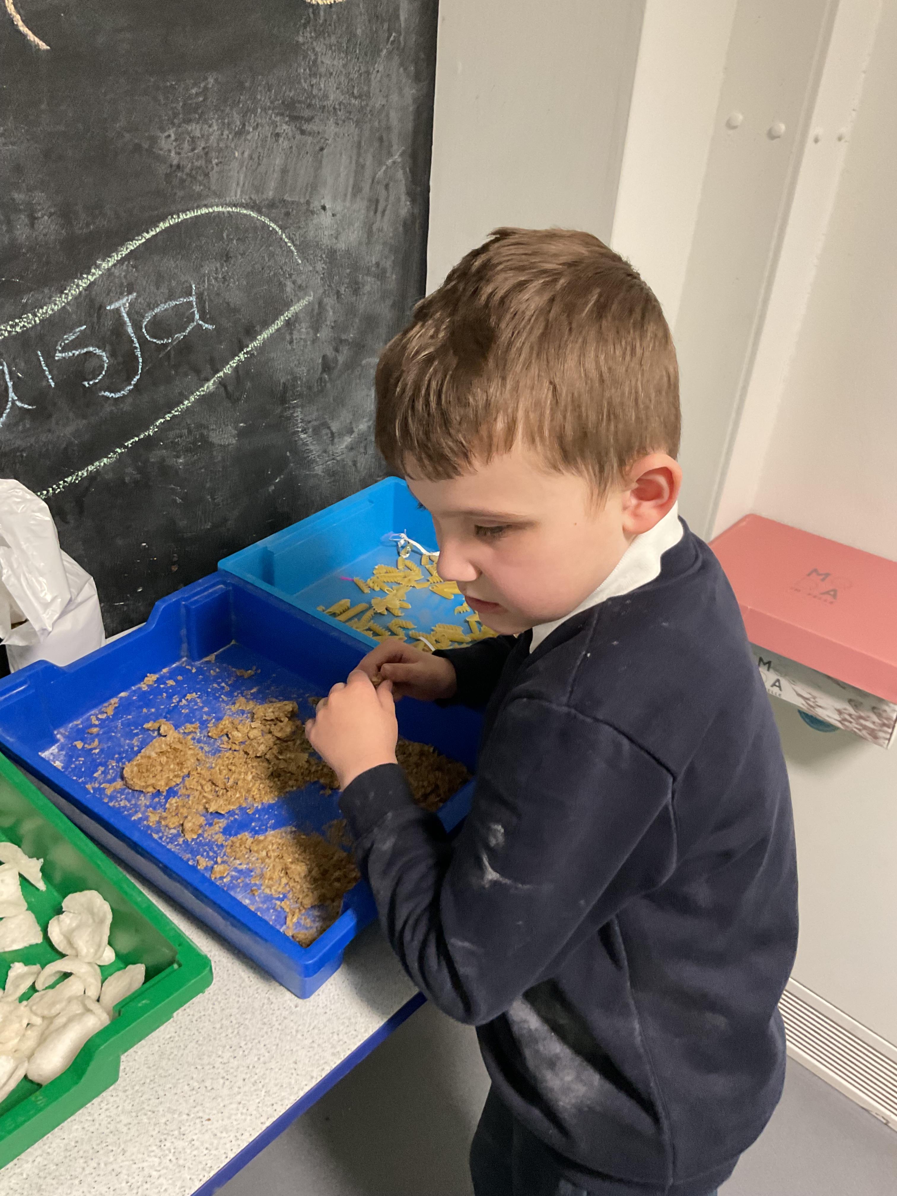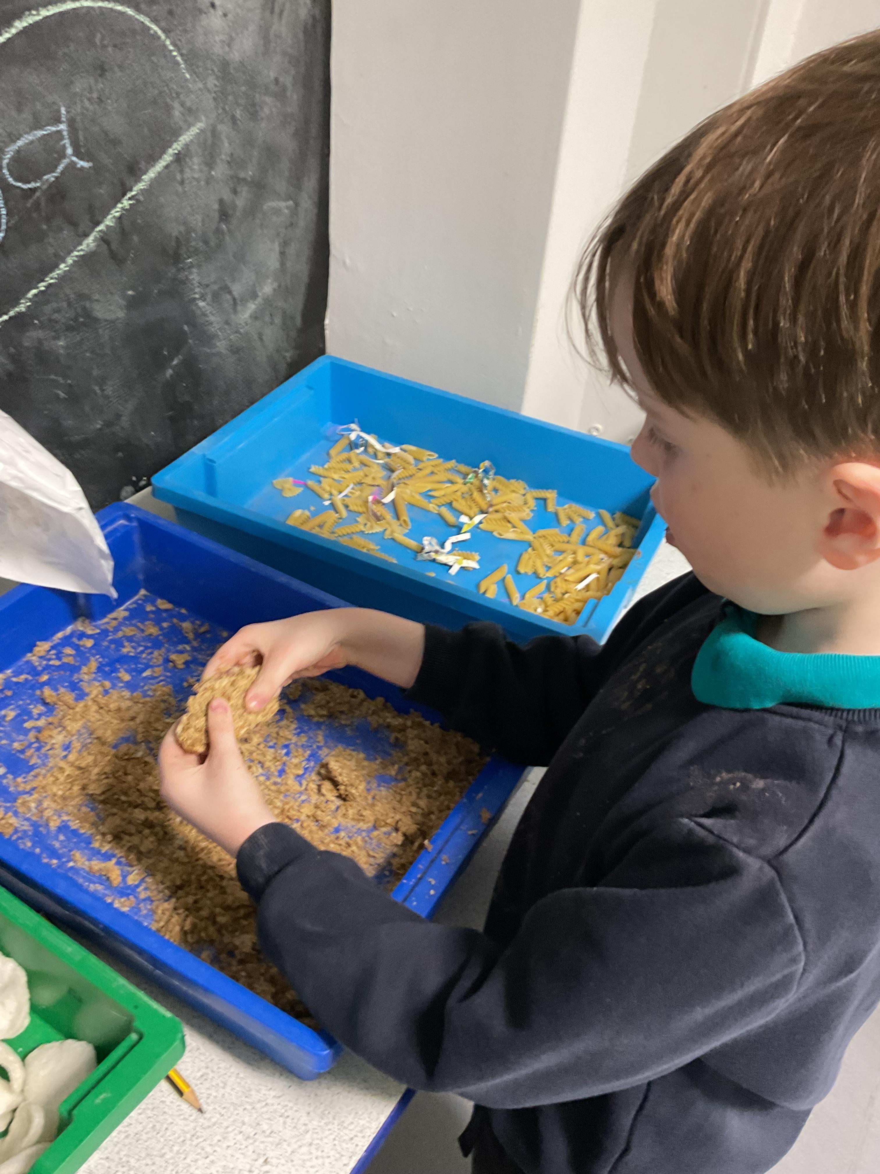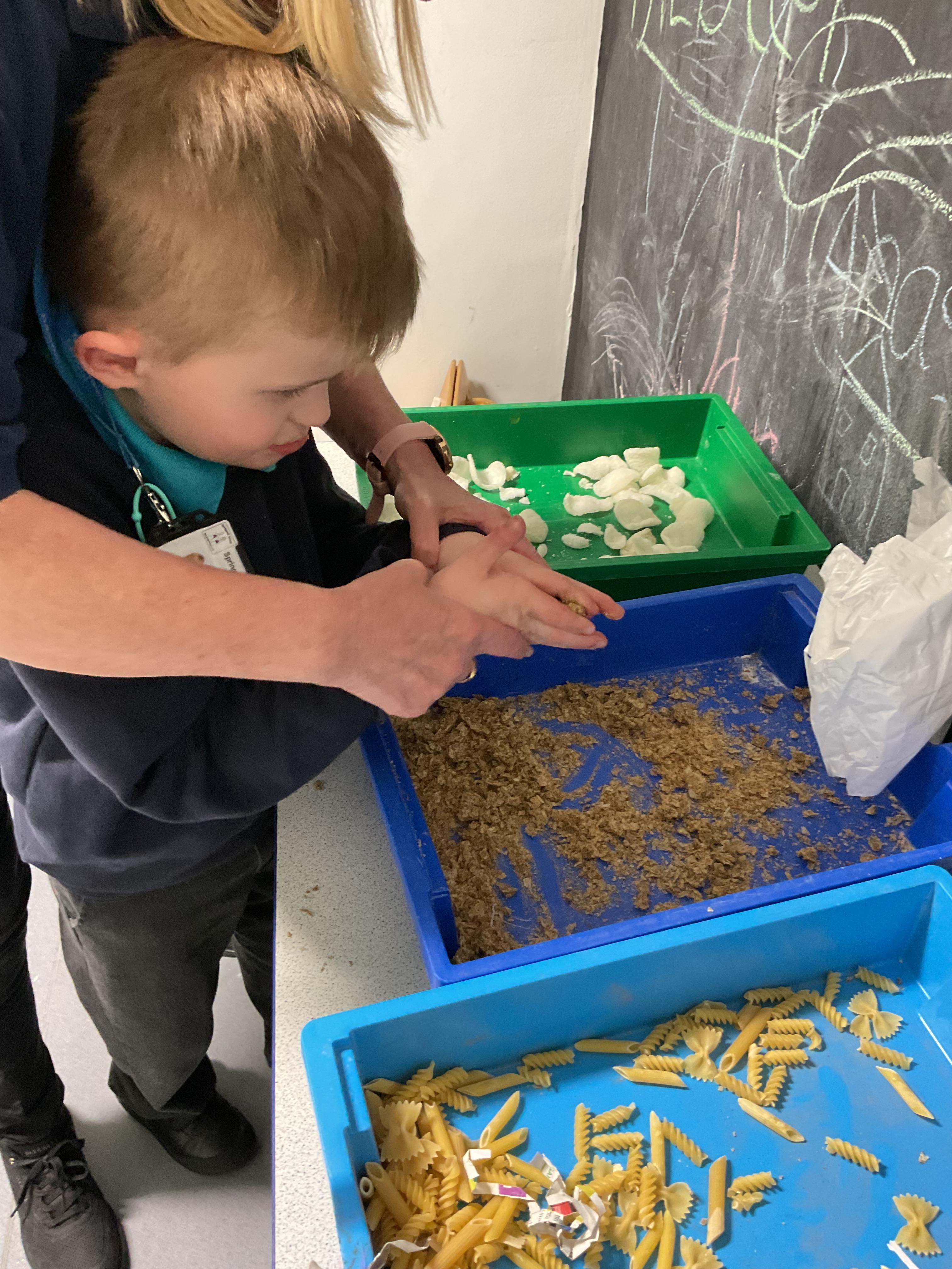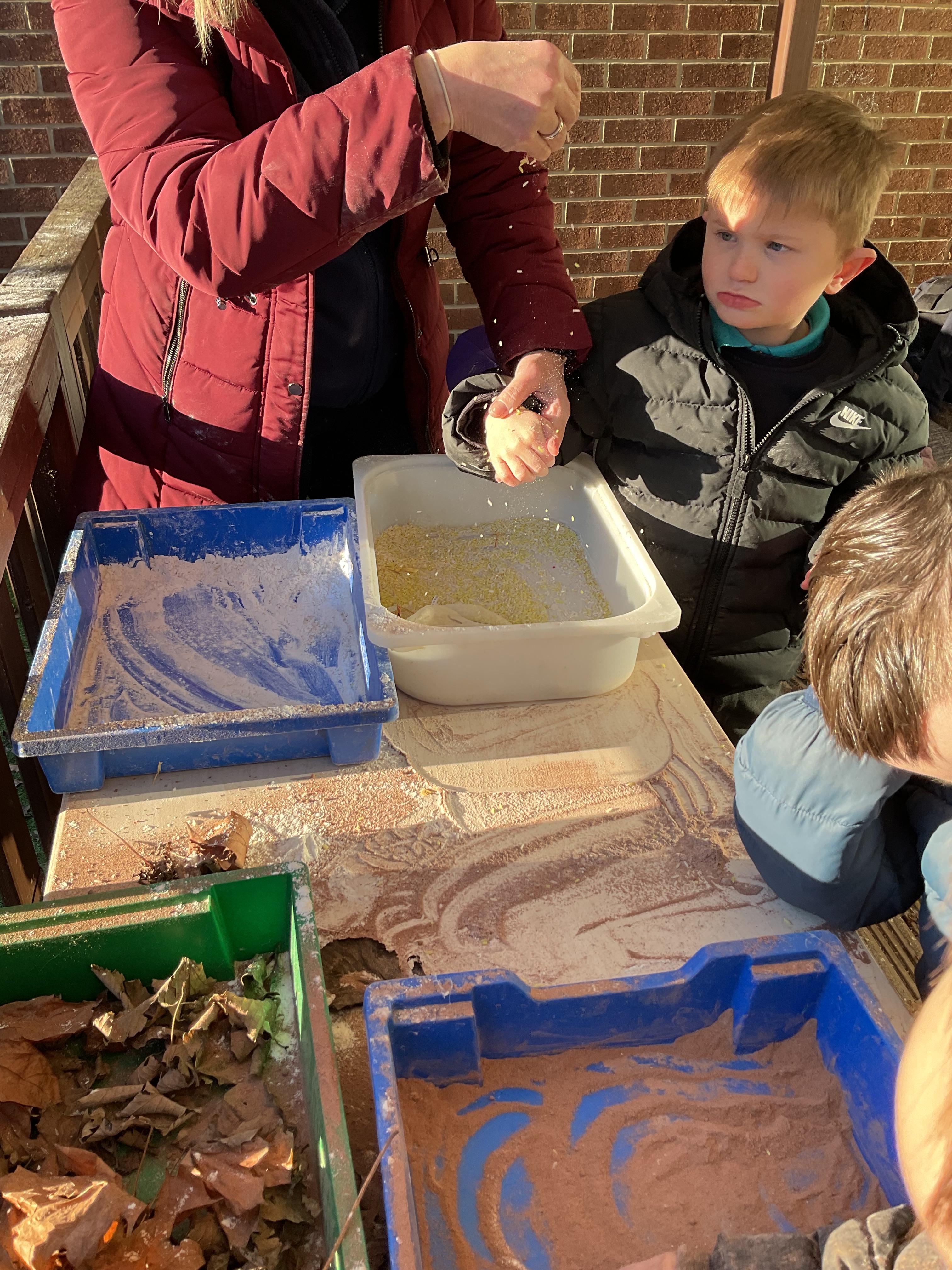 Over the last two weeks of term we enjoyed exploring our story of the week in an interactive way. All of the children enjoyed using their senses as they explored the 'Gruffalo Crumble' alongside a variety of textures objects and food sources.