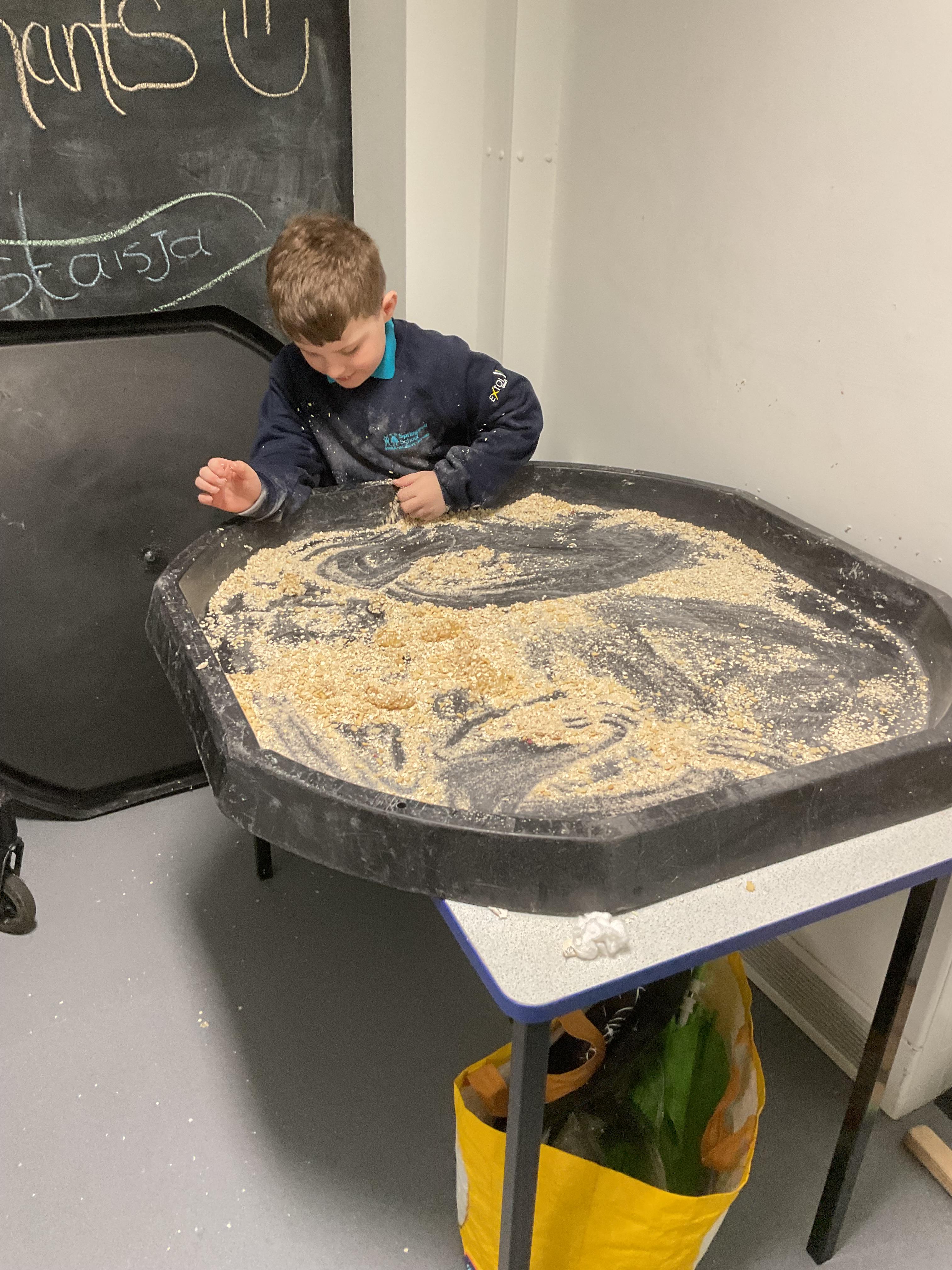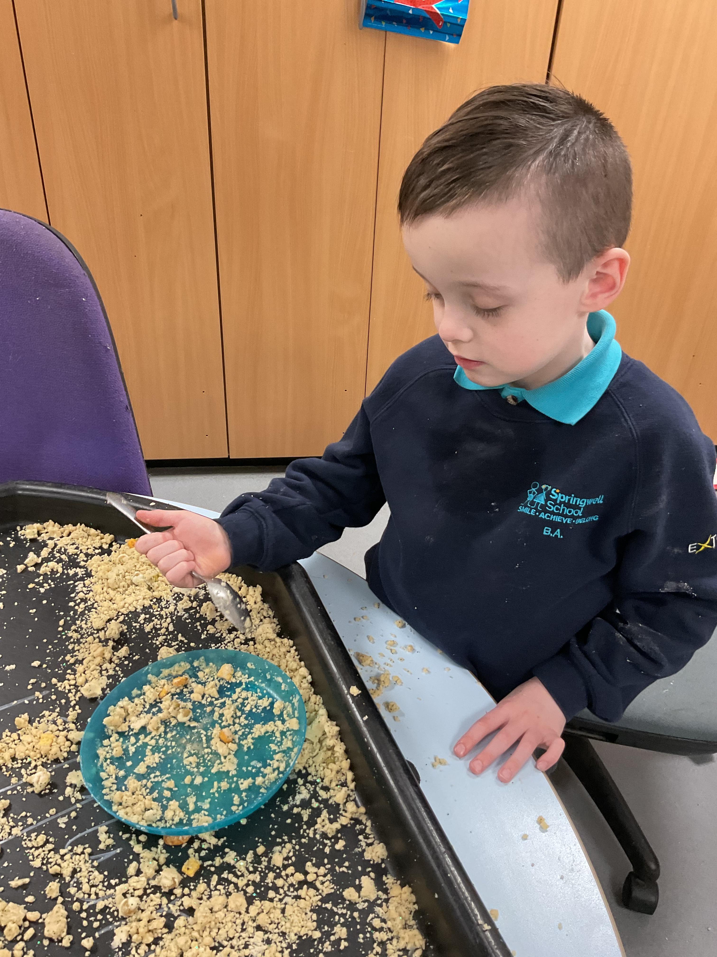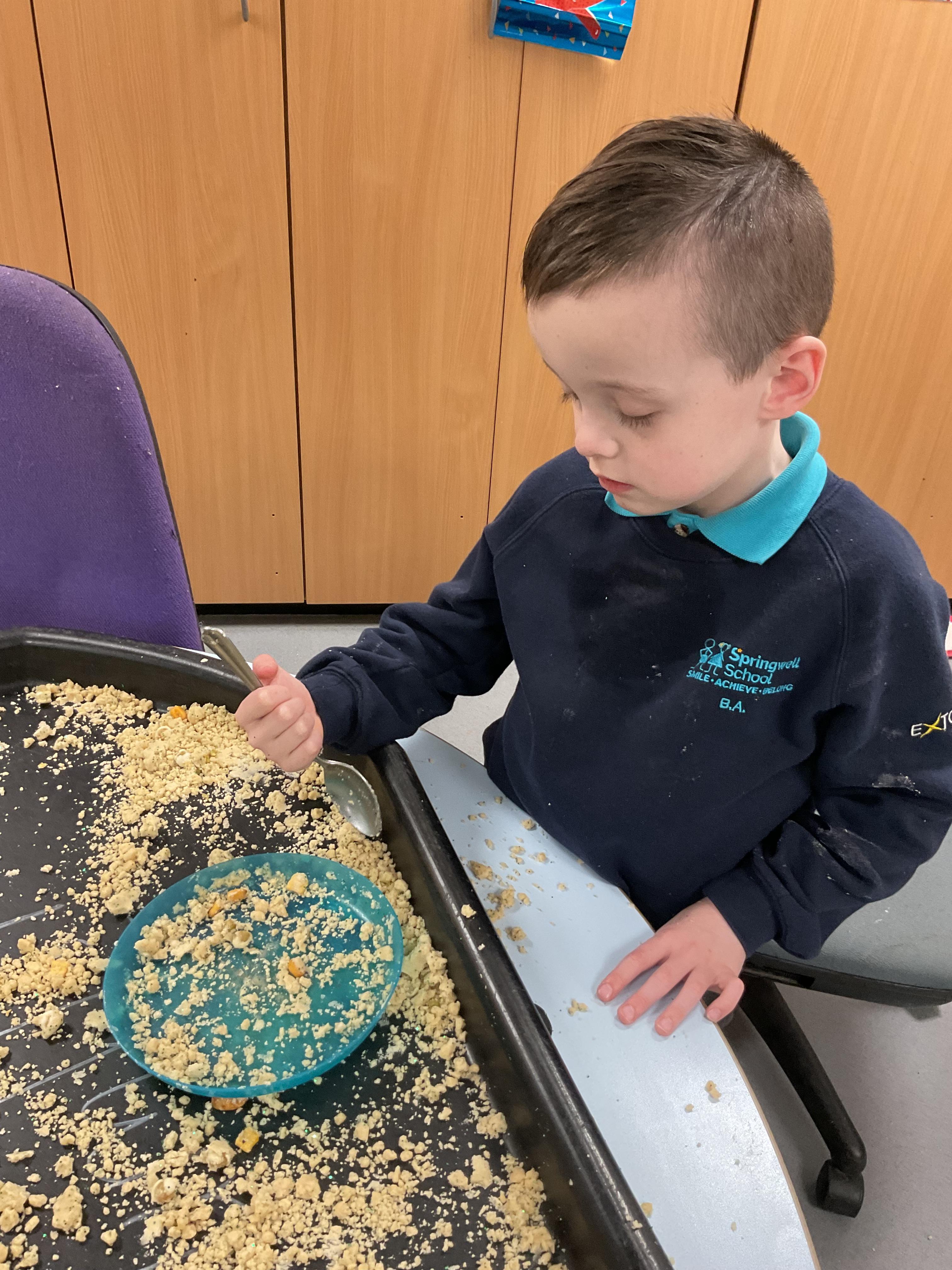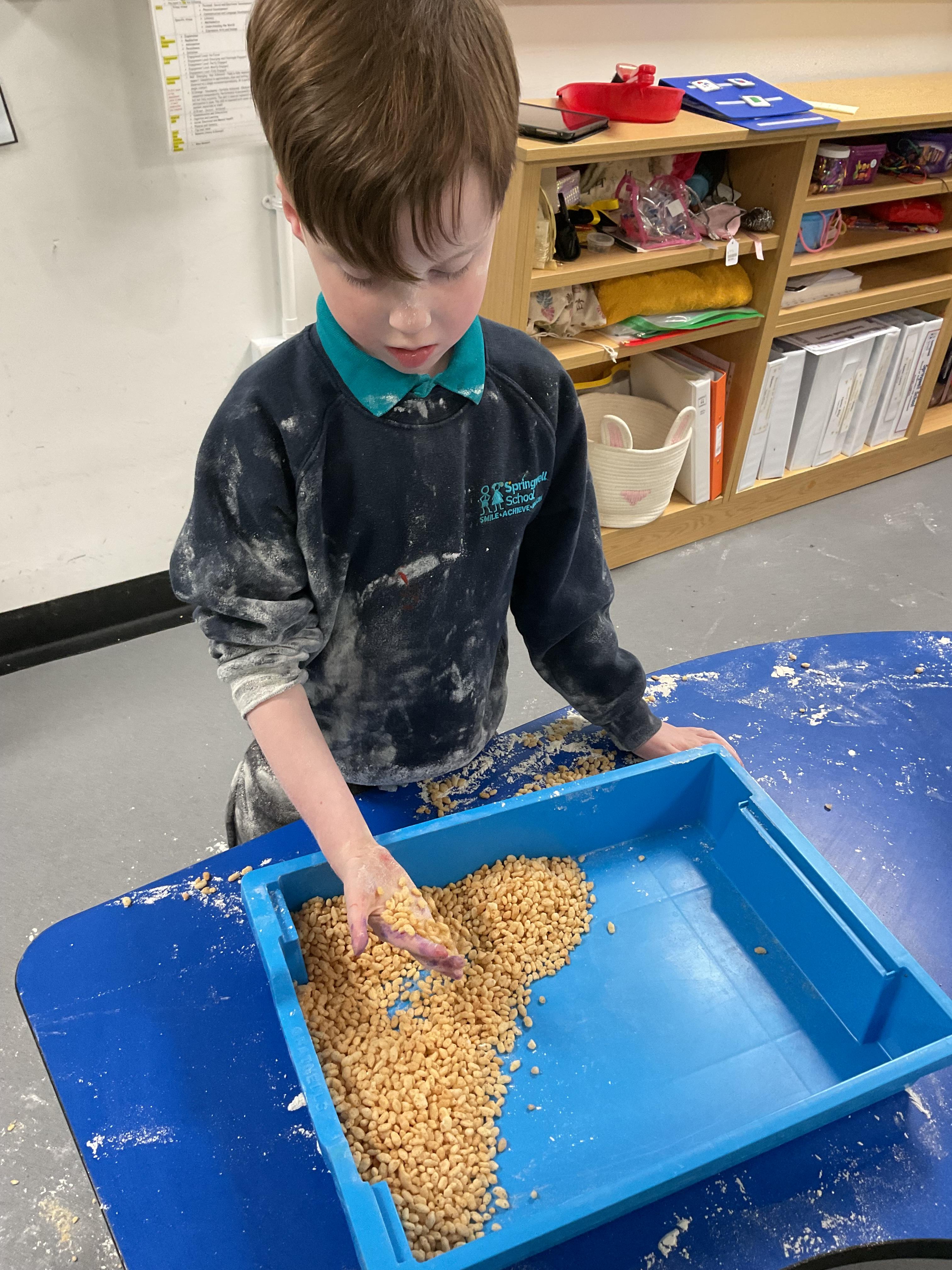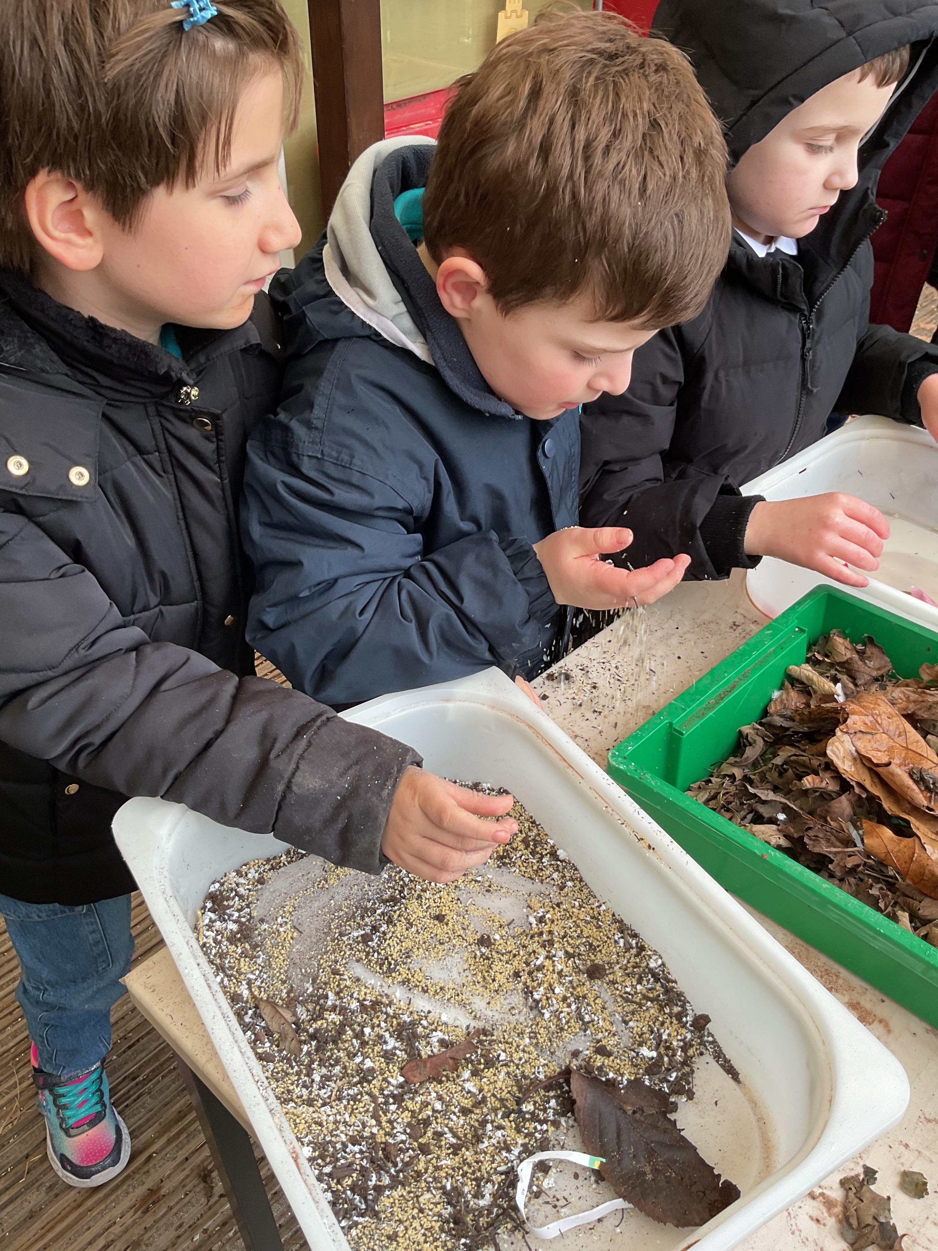 Over the last two weeks of term we enjoyed exploring our story of the week in an interactive way. All of the children enjoyed using their senses as they explored the 'Gruffalo Crumble' alongside a variety of textures objects and food sources.
