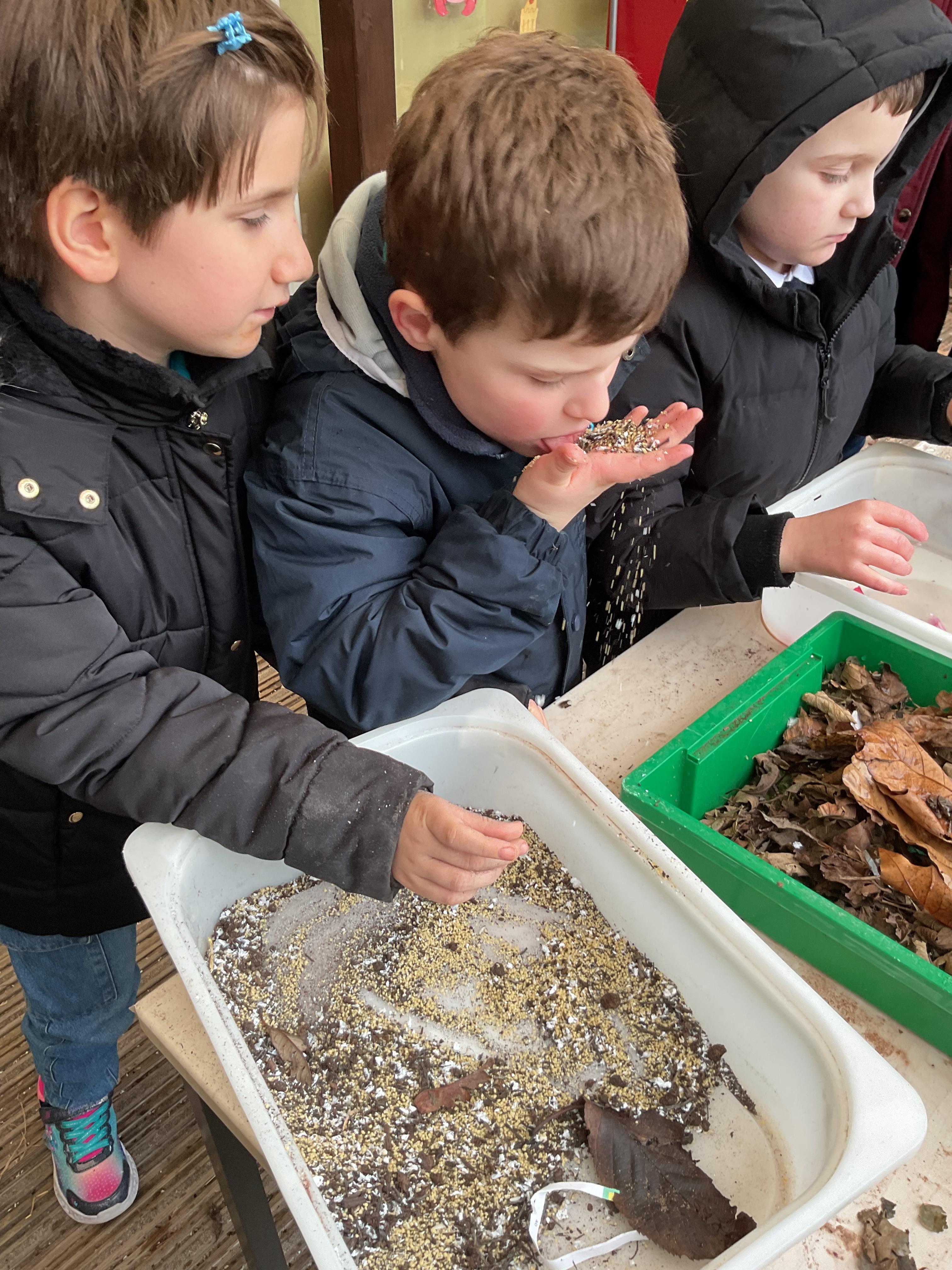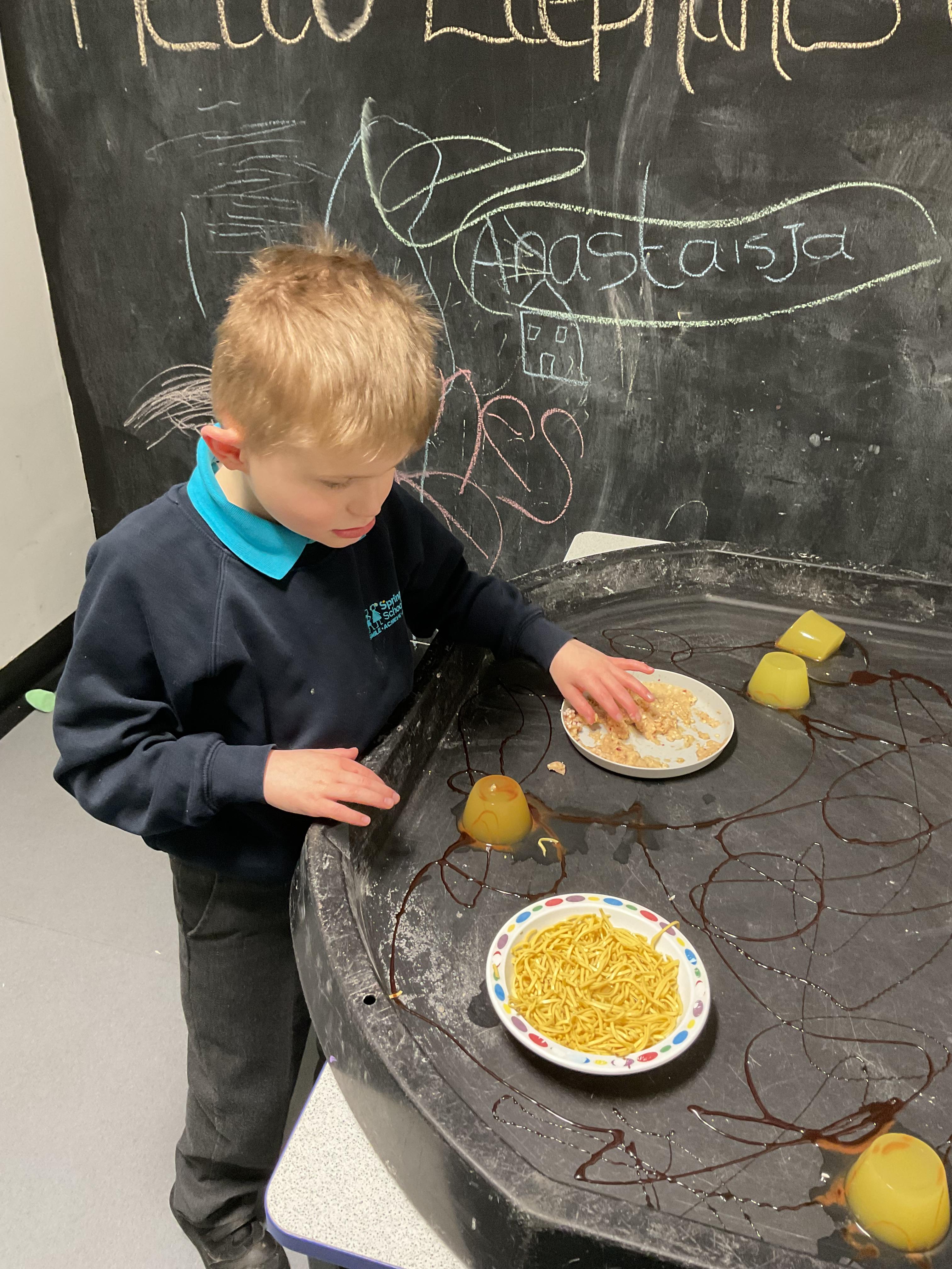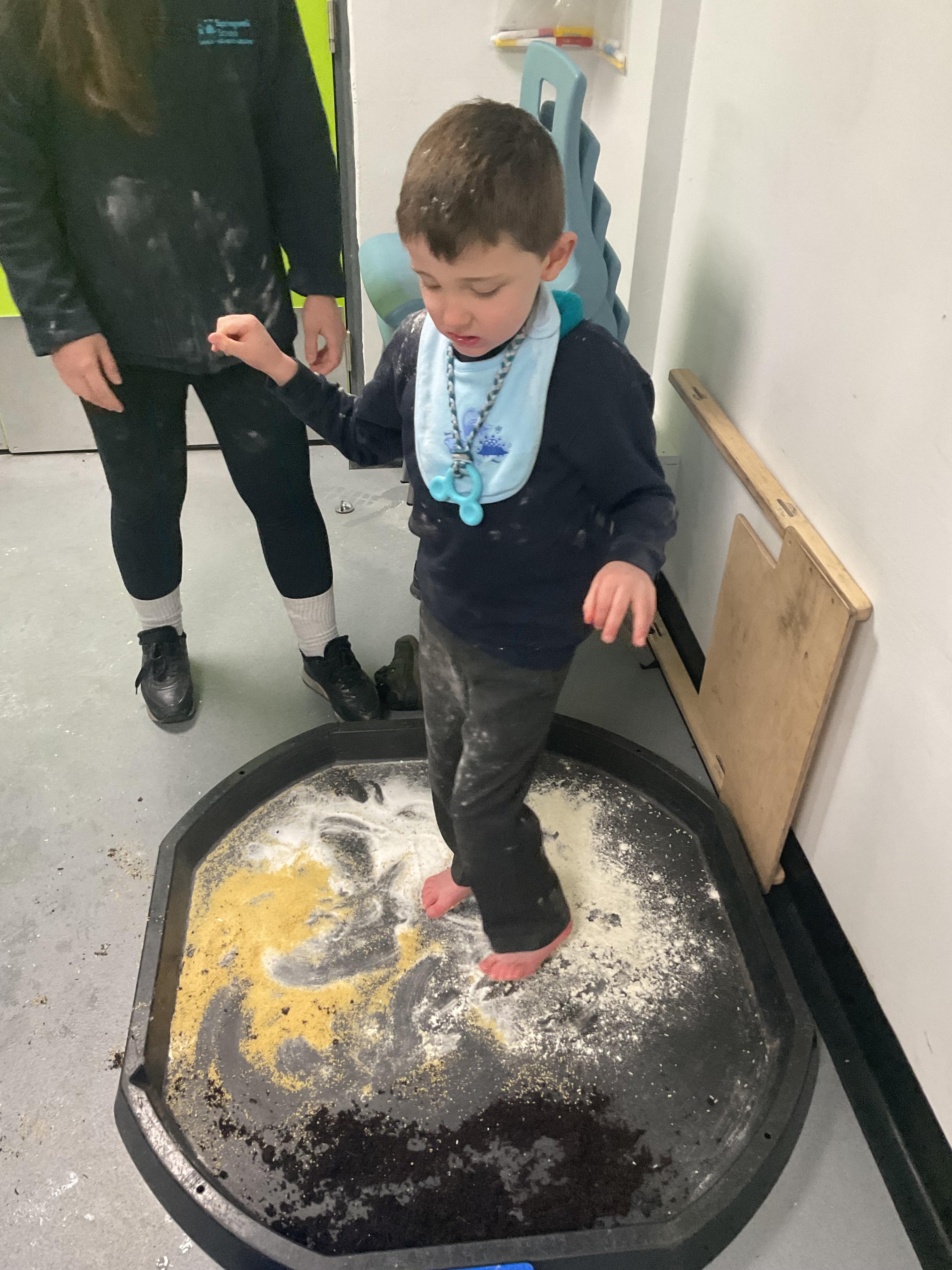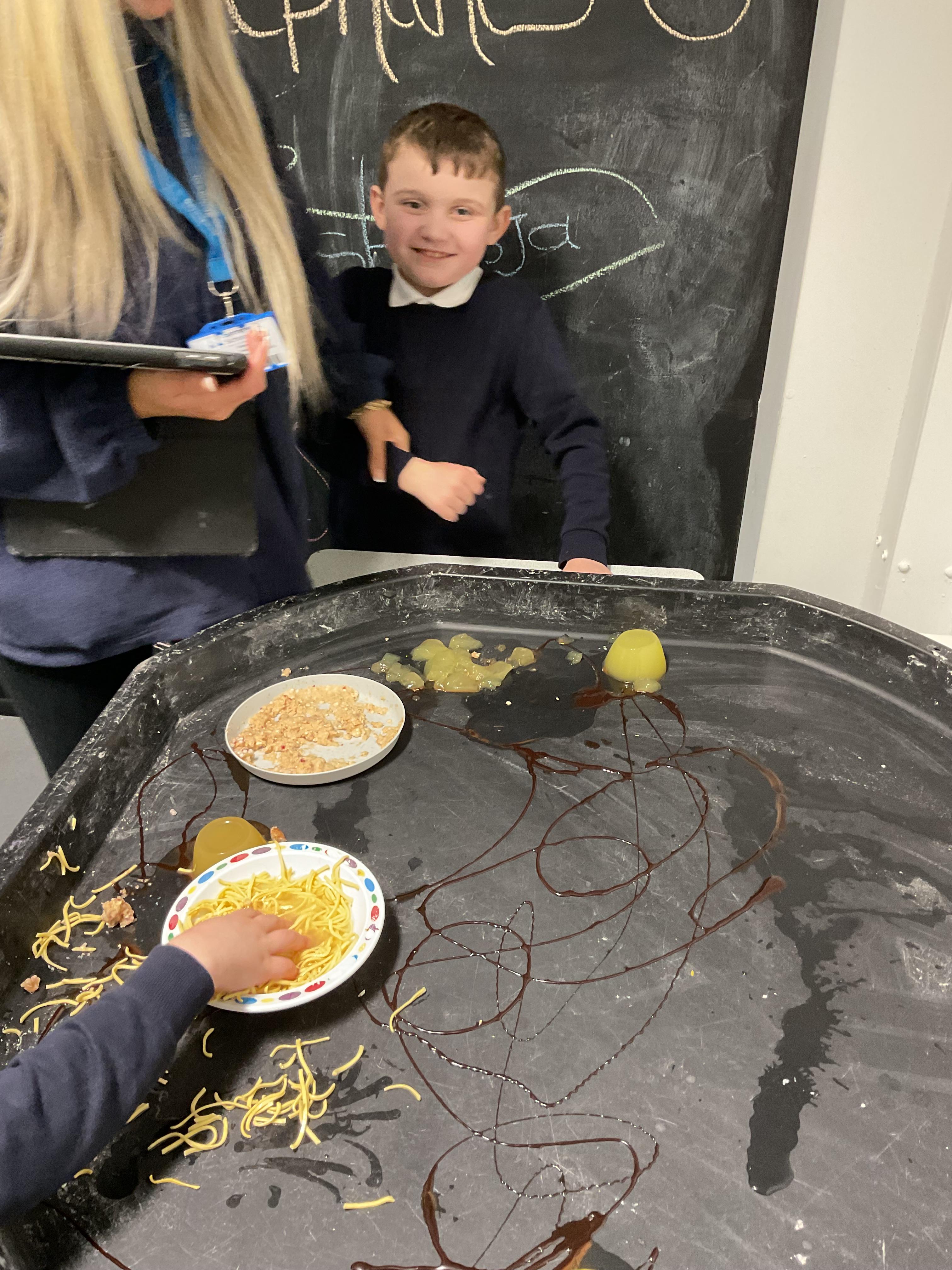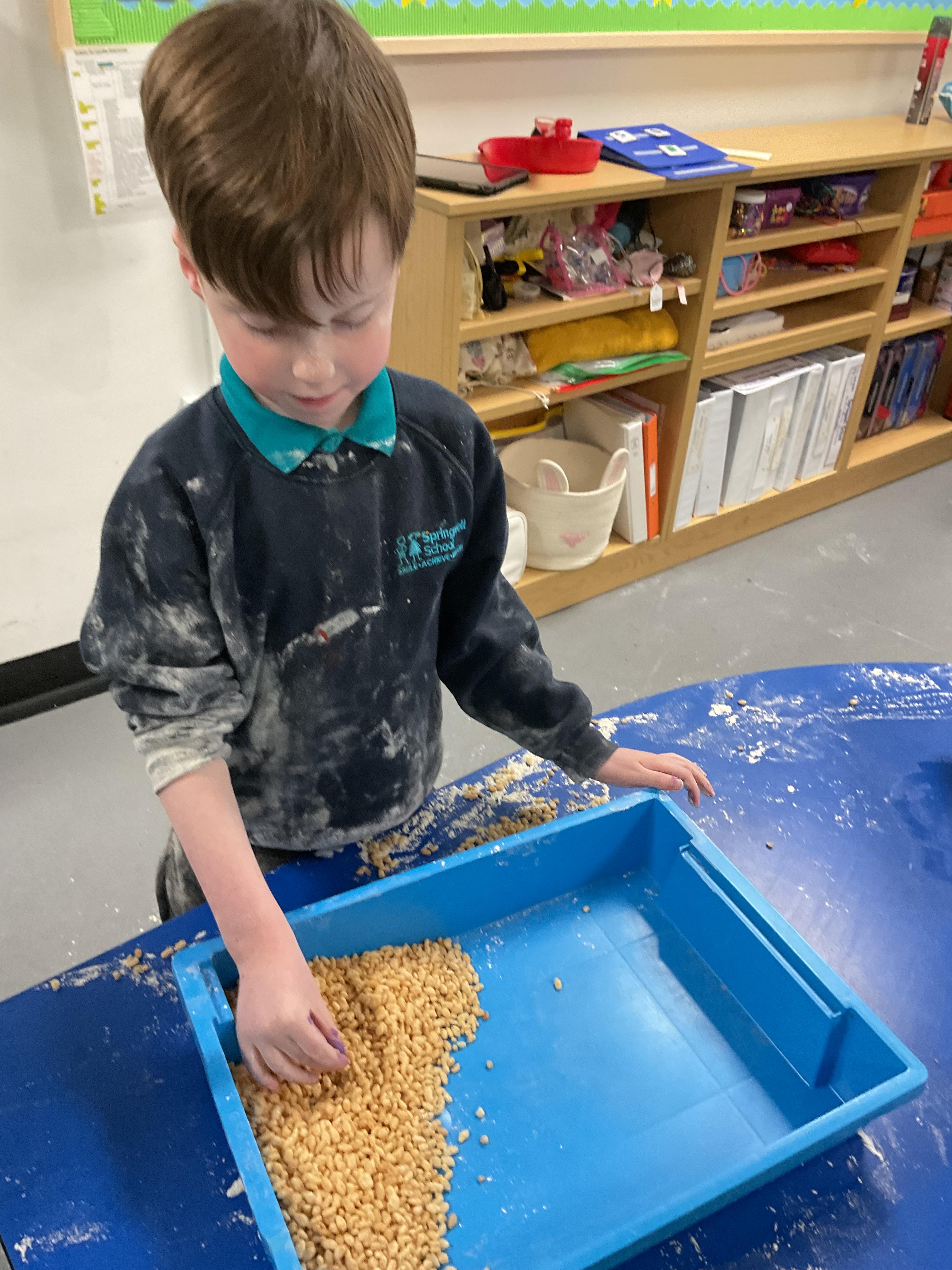 Over the last two weeks of term we enjoyed exploring our story of the week in an interactive way. All of the children enjoyed using their senses as they explored the 'Gruffalo Crumble' alongside a variety of textures objects and food sources.