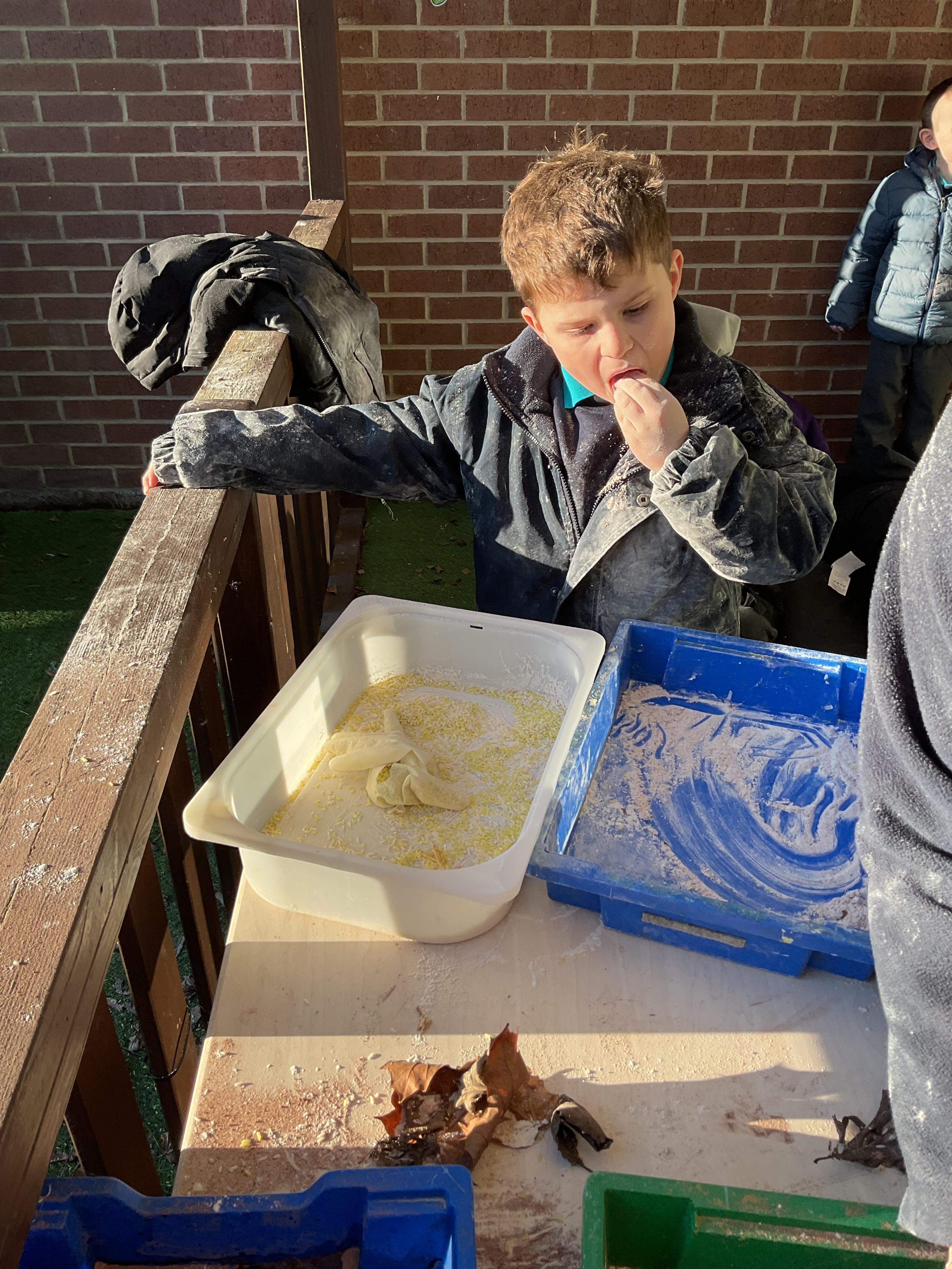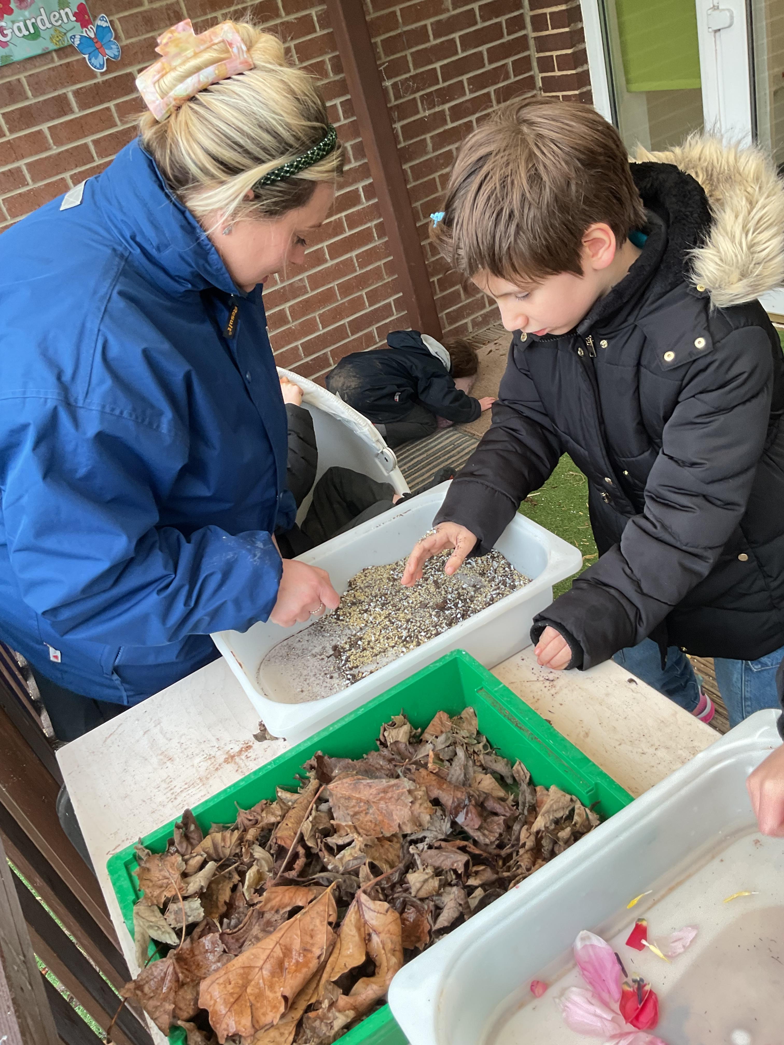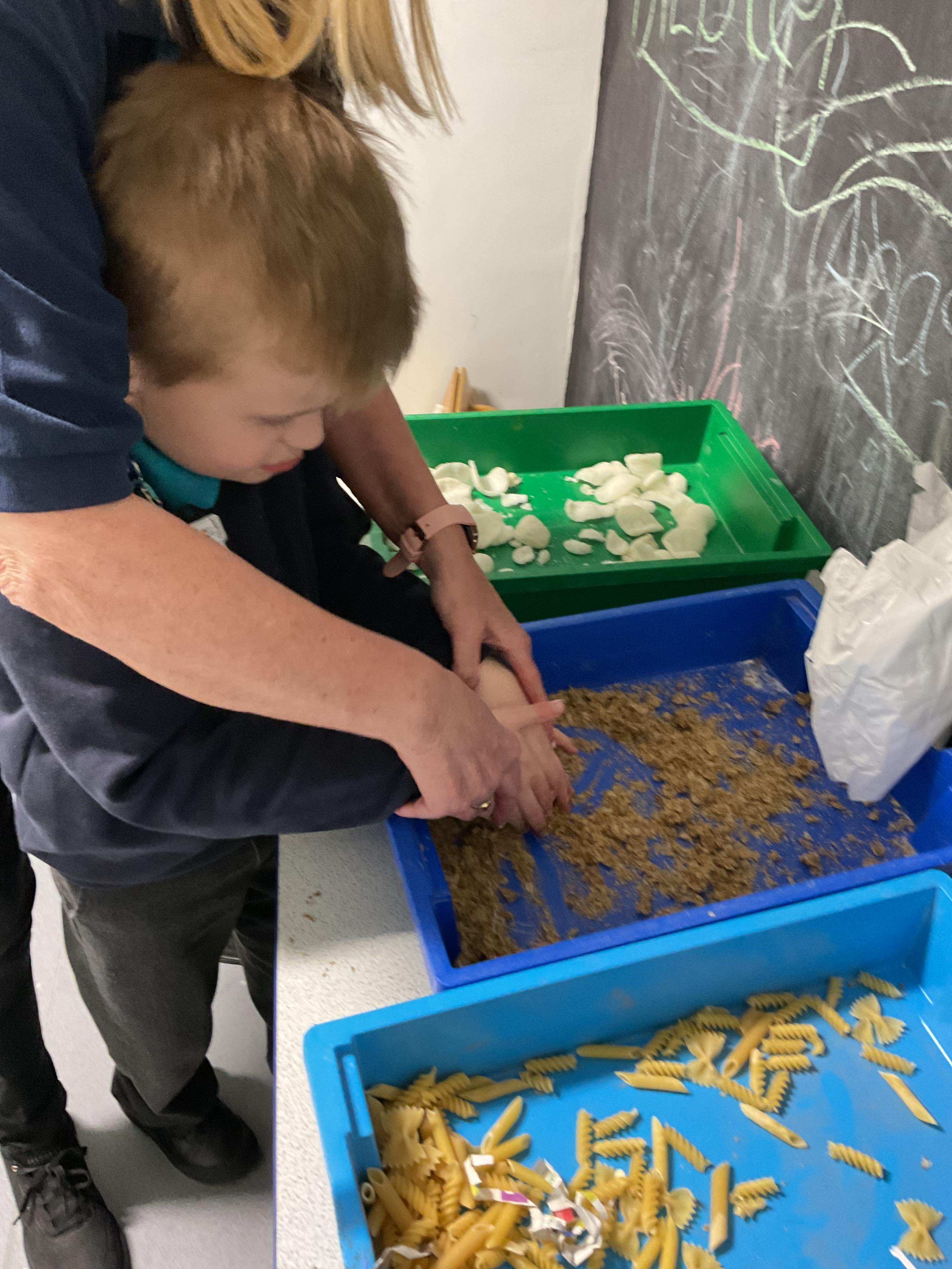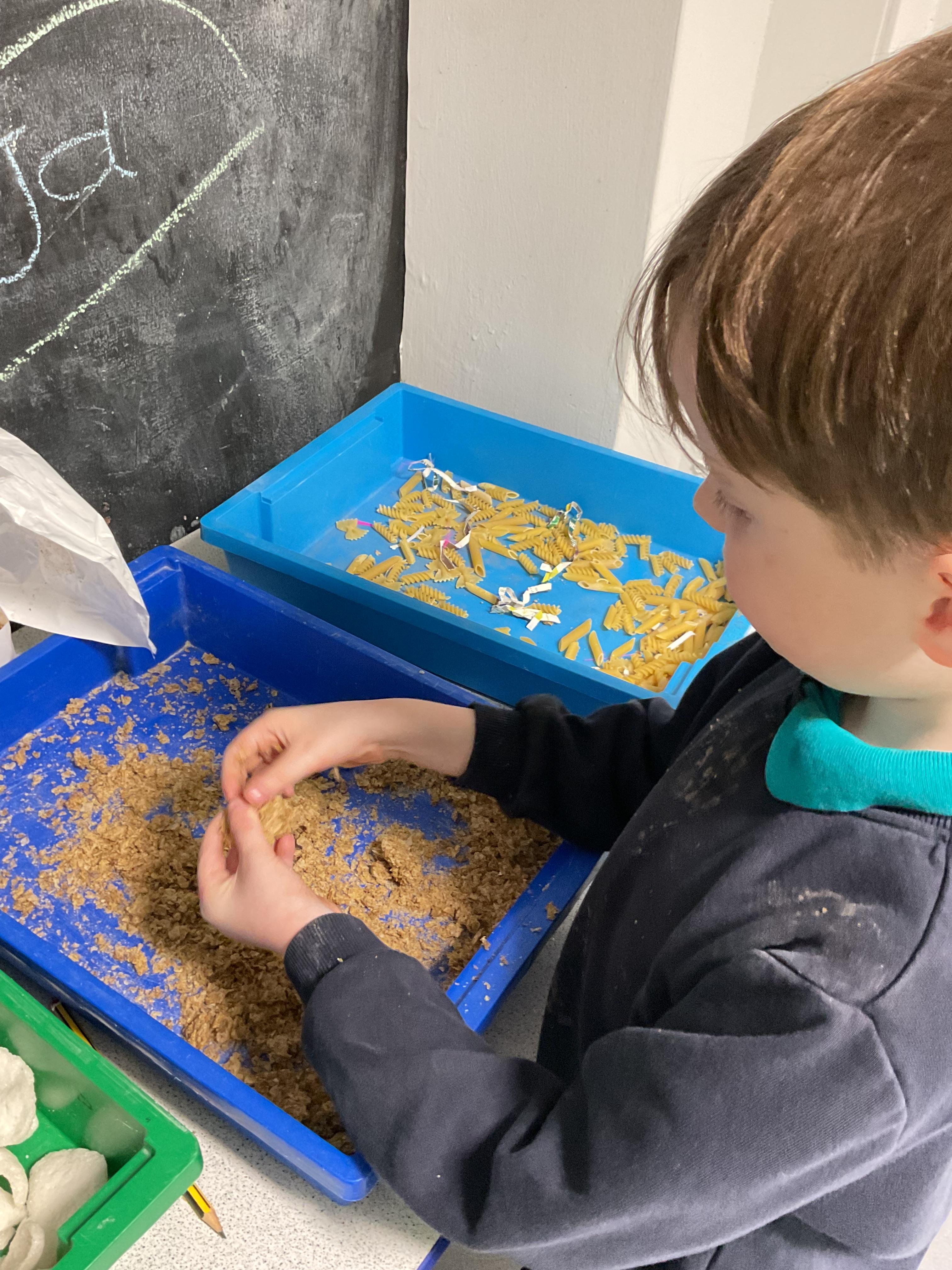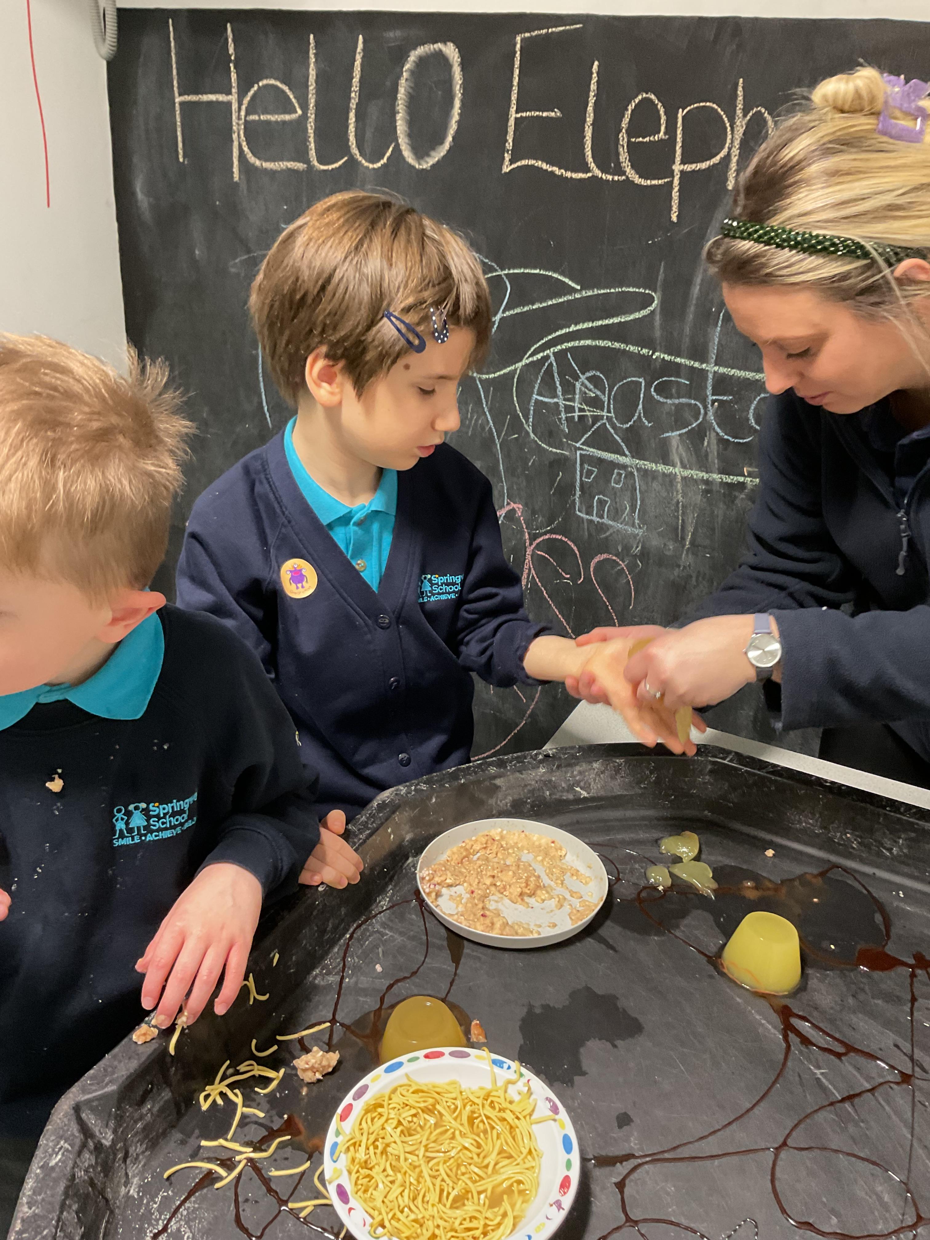 Over the last two weeks of term we enjoyed exploring our story of the week in an interactive way. All of the children enjoyed using their senses as they explored the 'Gruffalo Crumble' alongside a variety of textures objects and food sources.