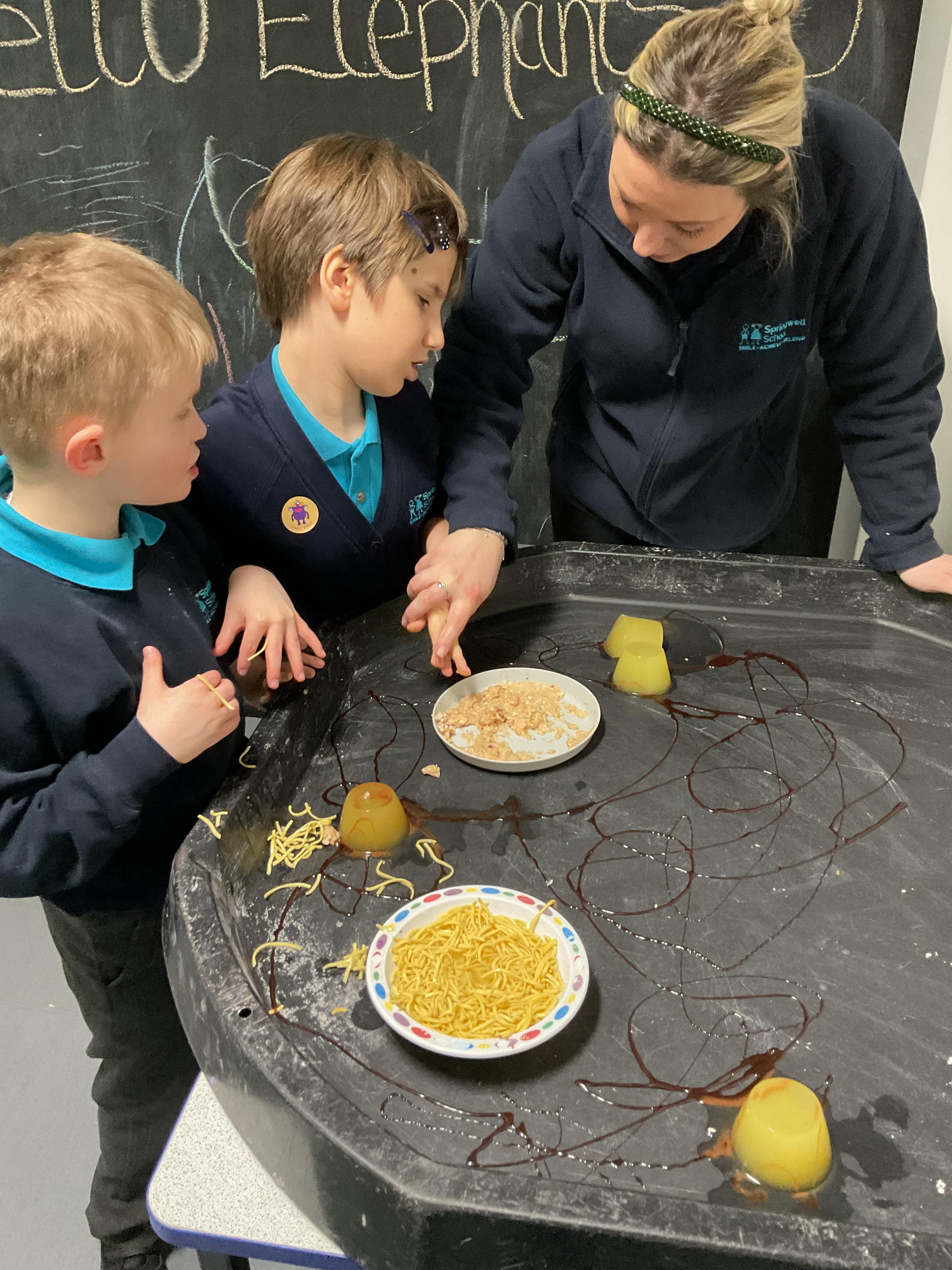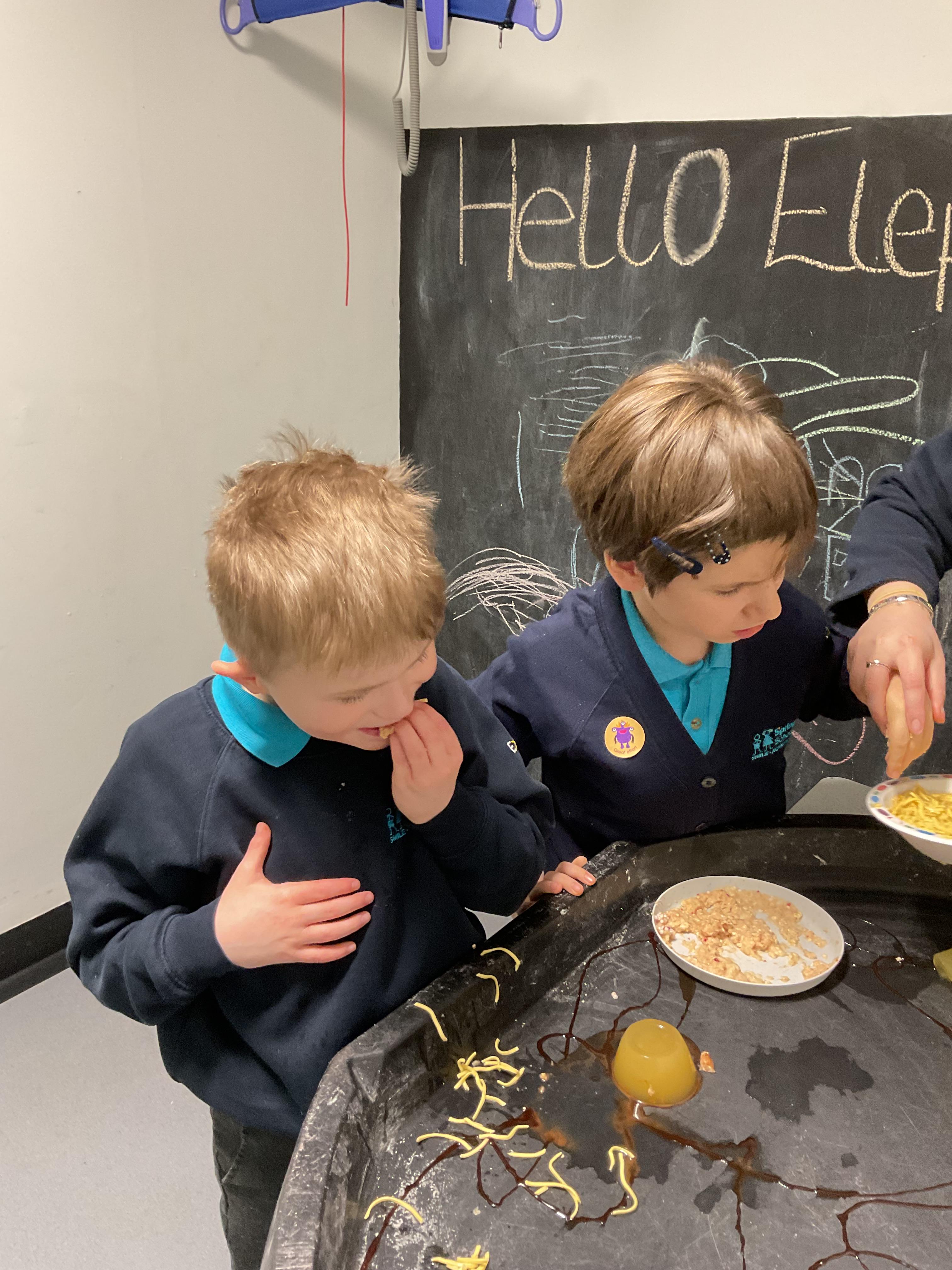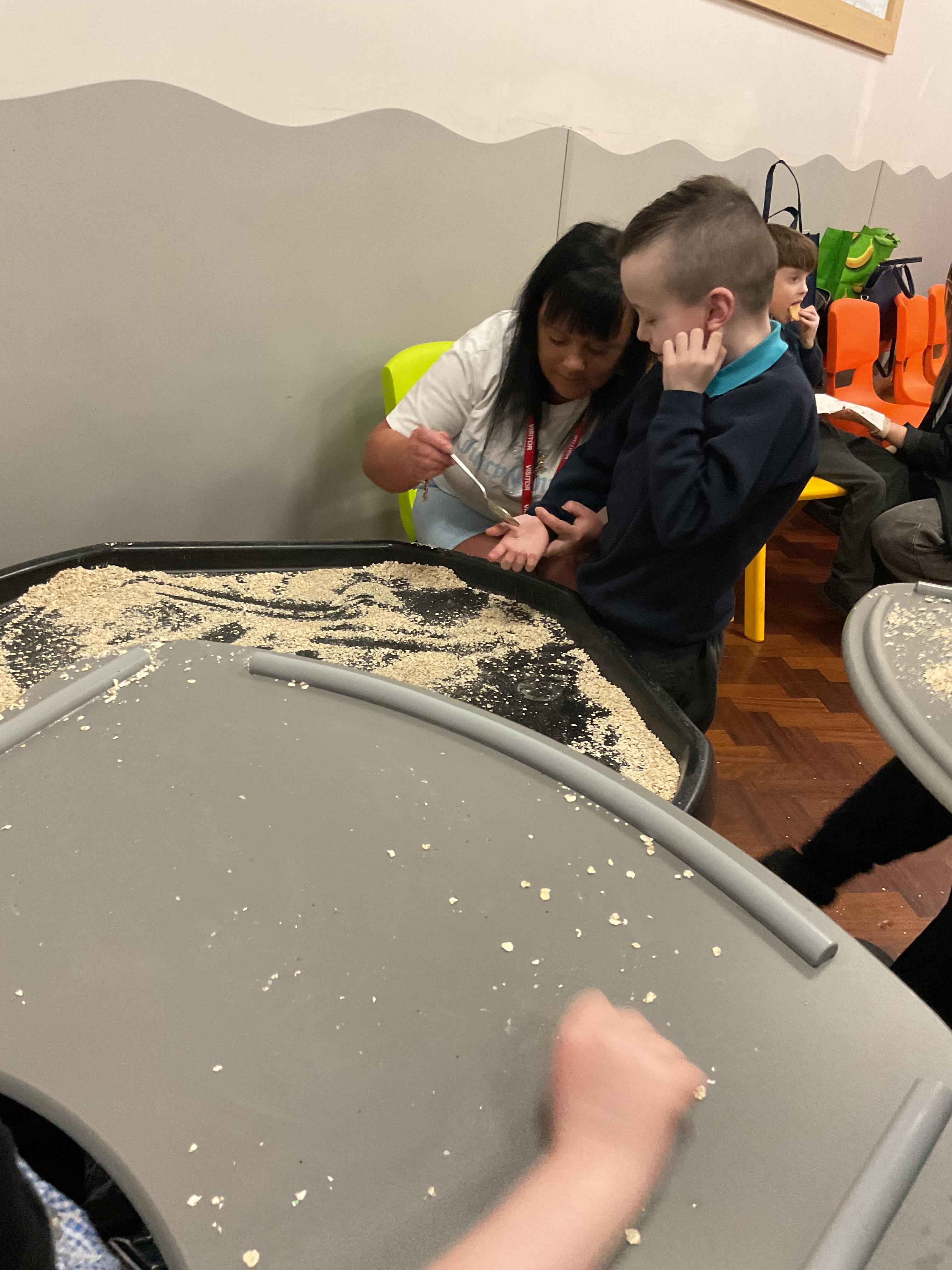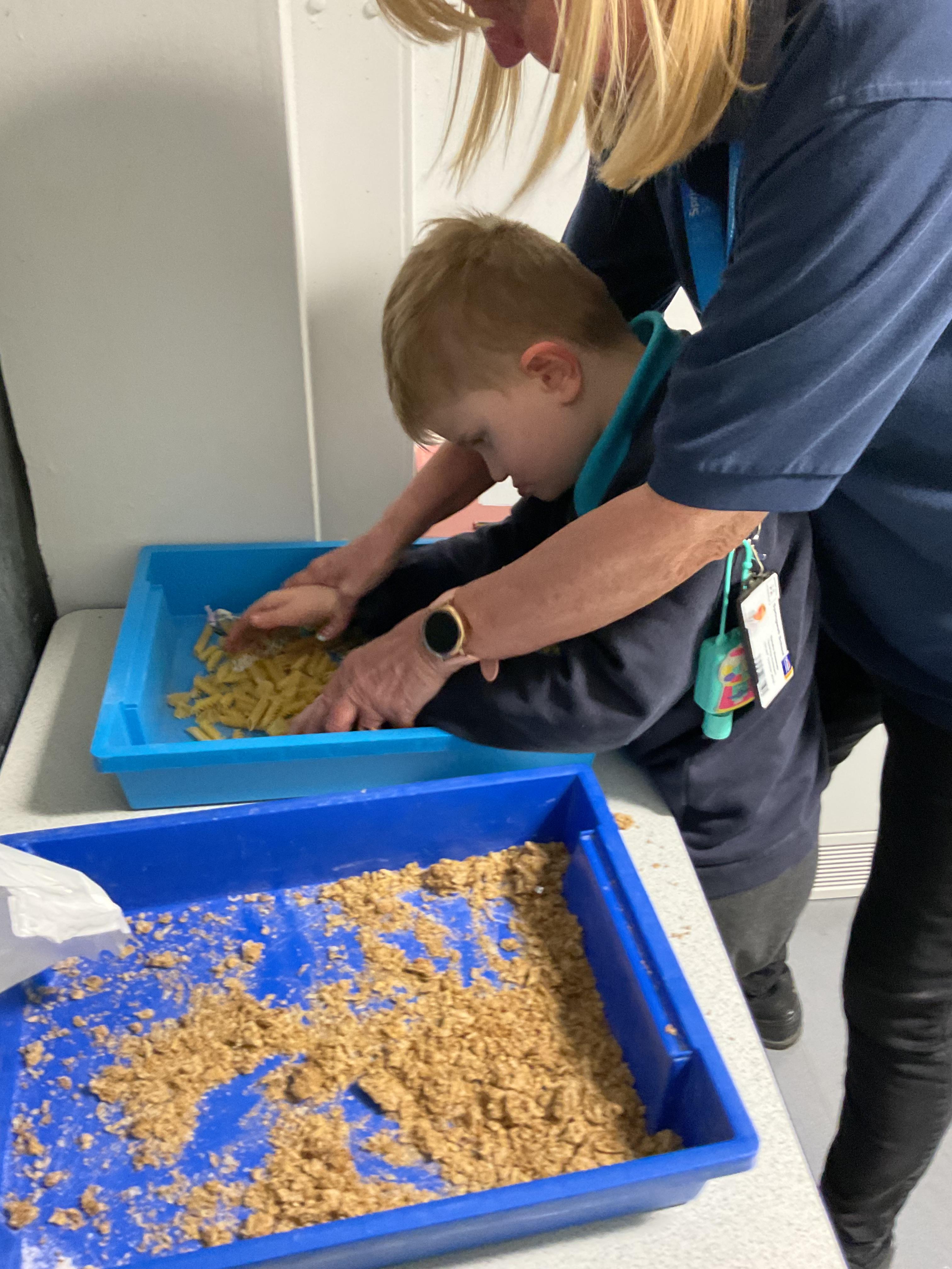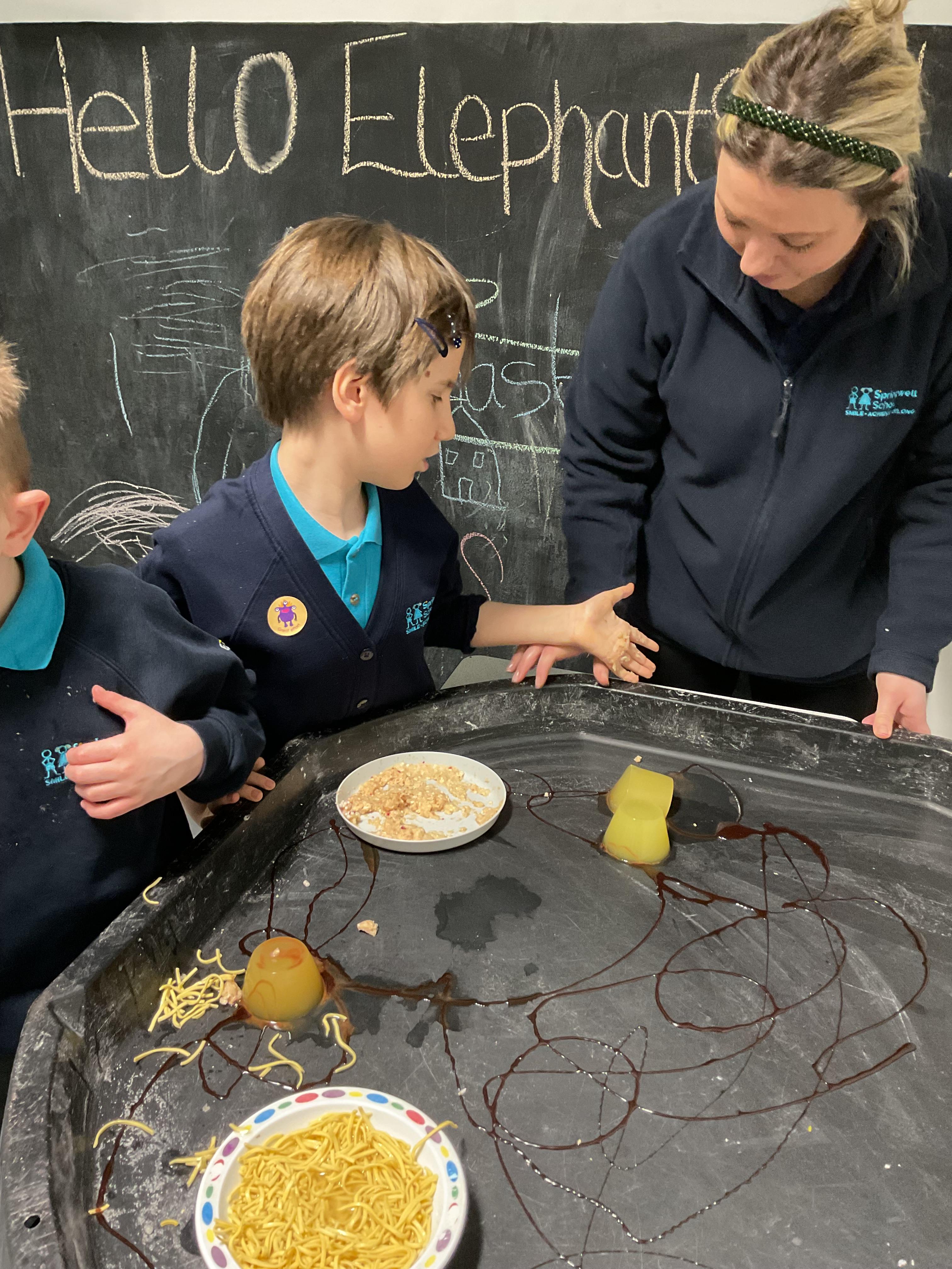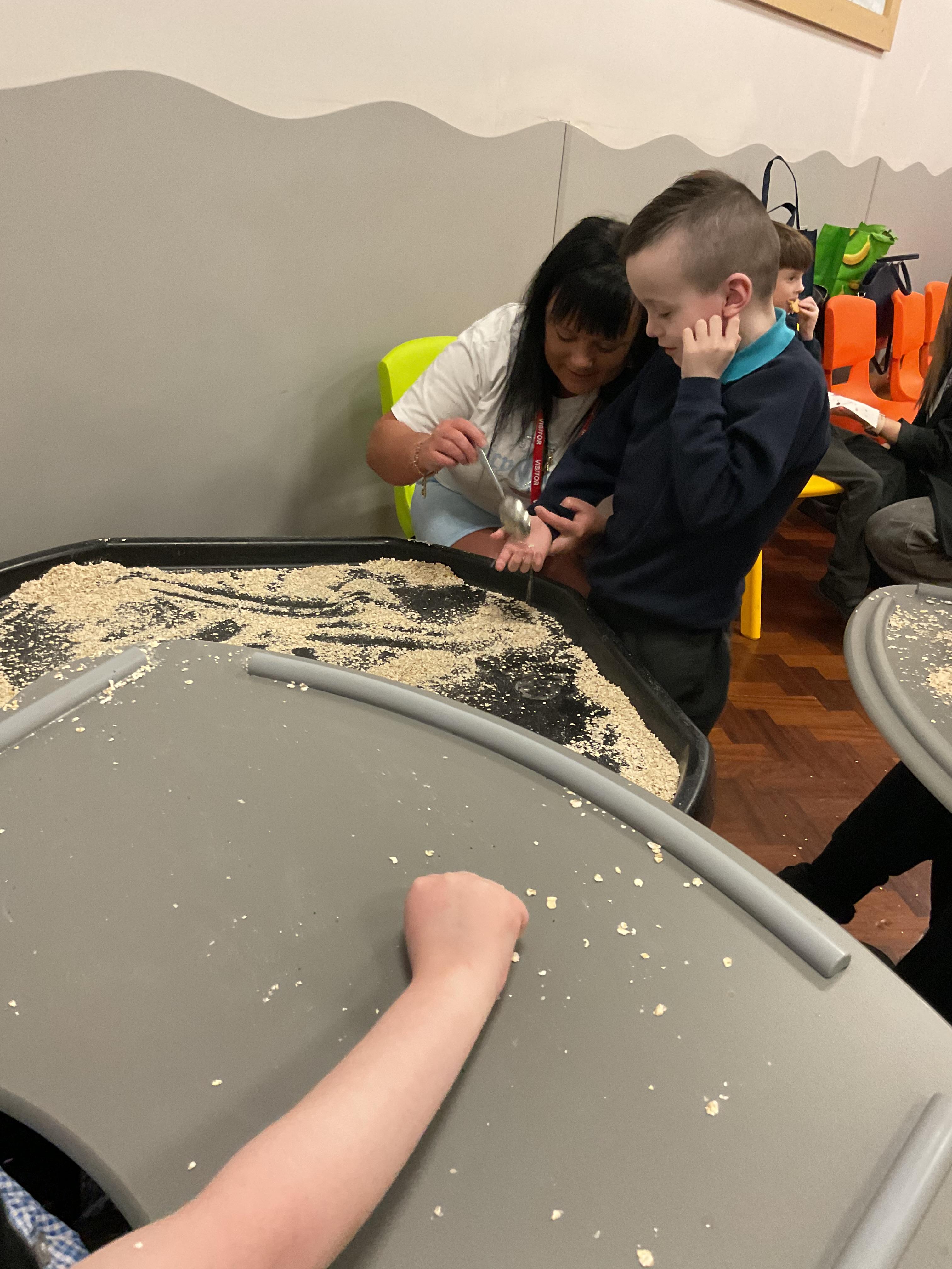 Over the last two weeks of term we enjoyed exploring our story of the week in an interactive way. All of the children enjoyed using their senses as they explored the 'Gruffalo Crumble' alongside a variety of textures objects and food sources.