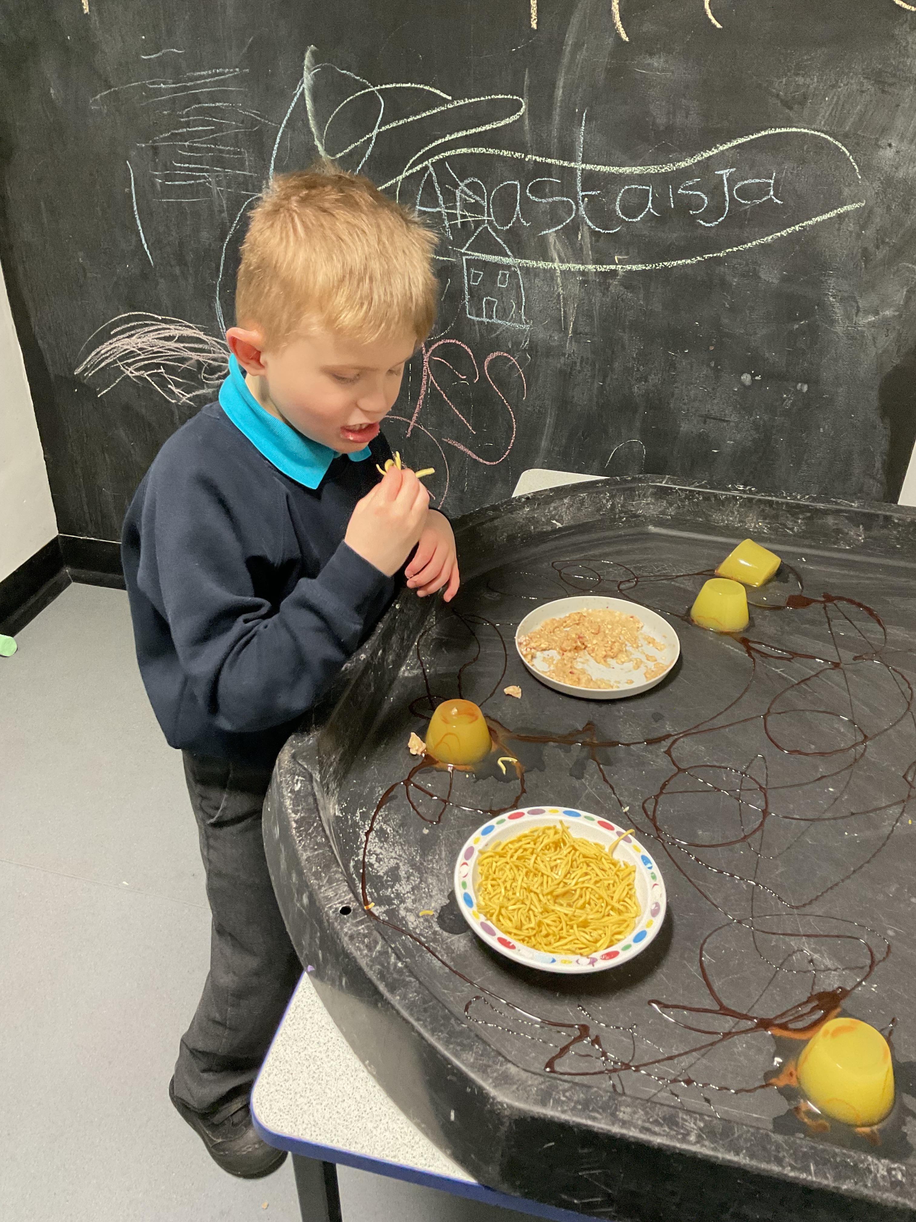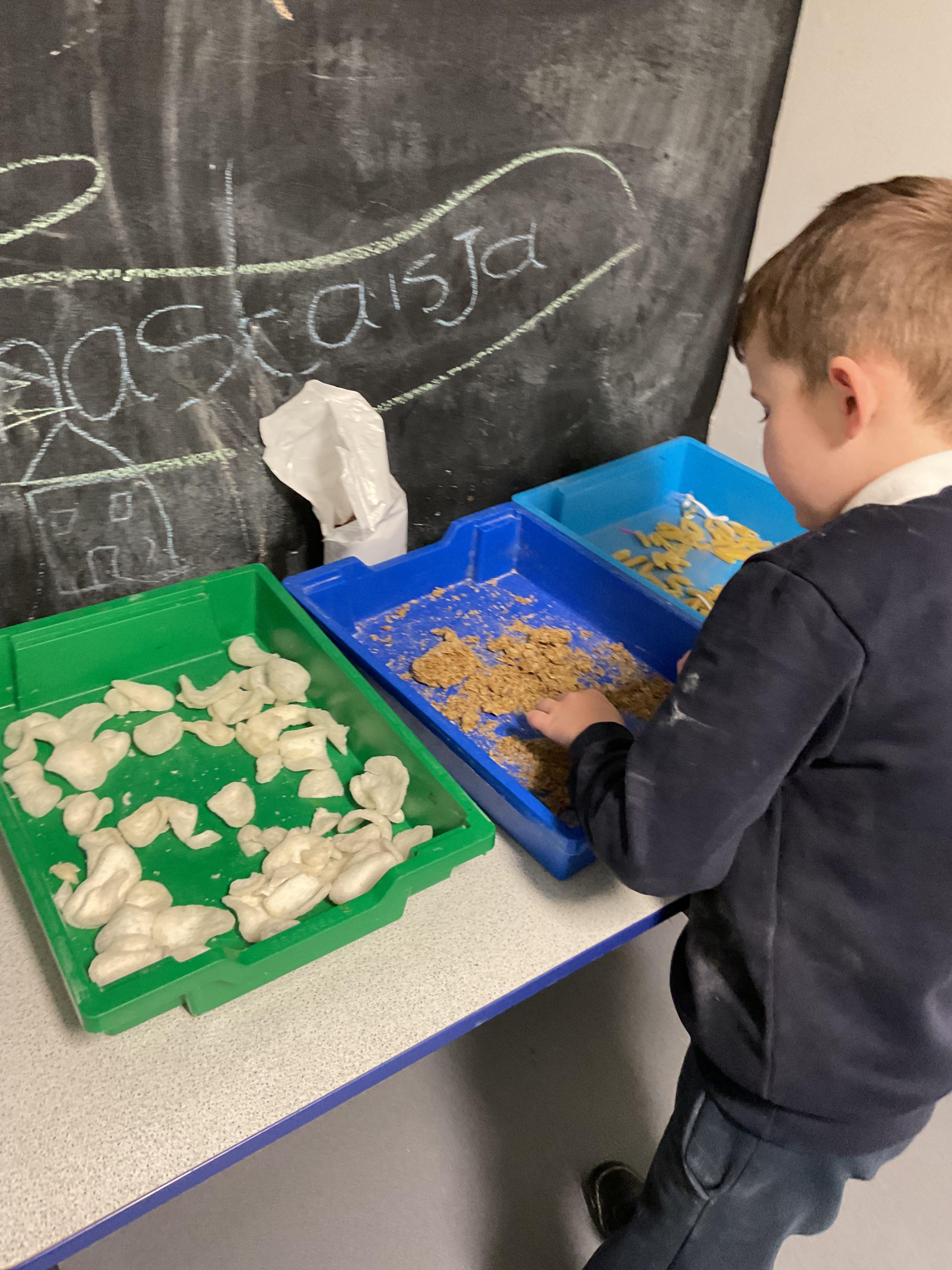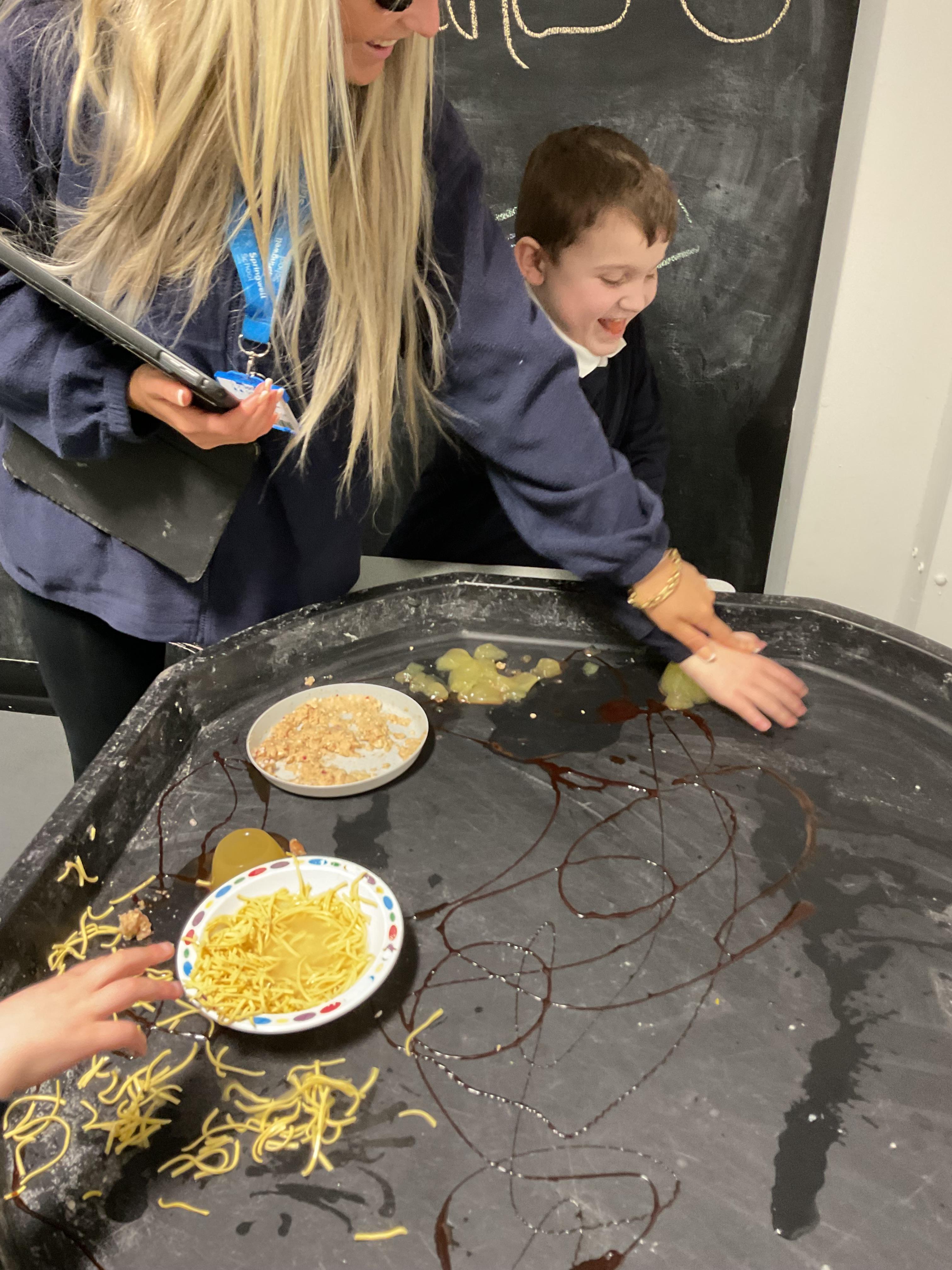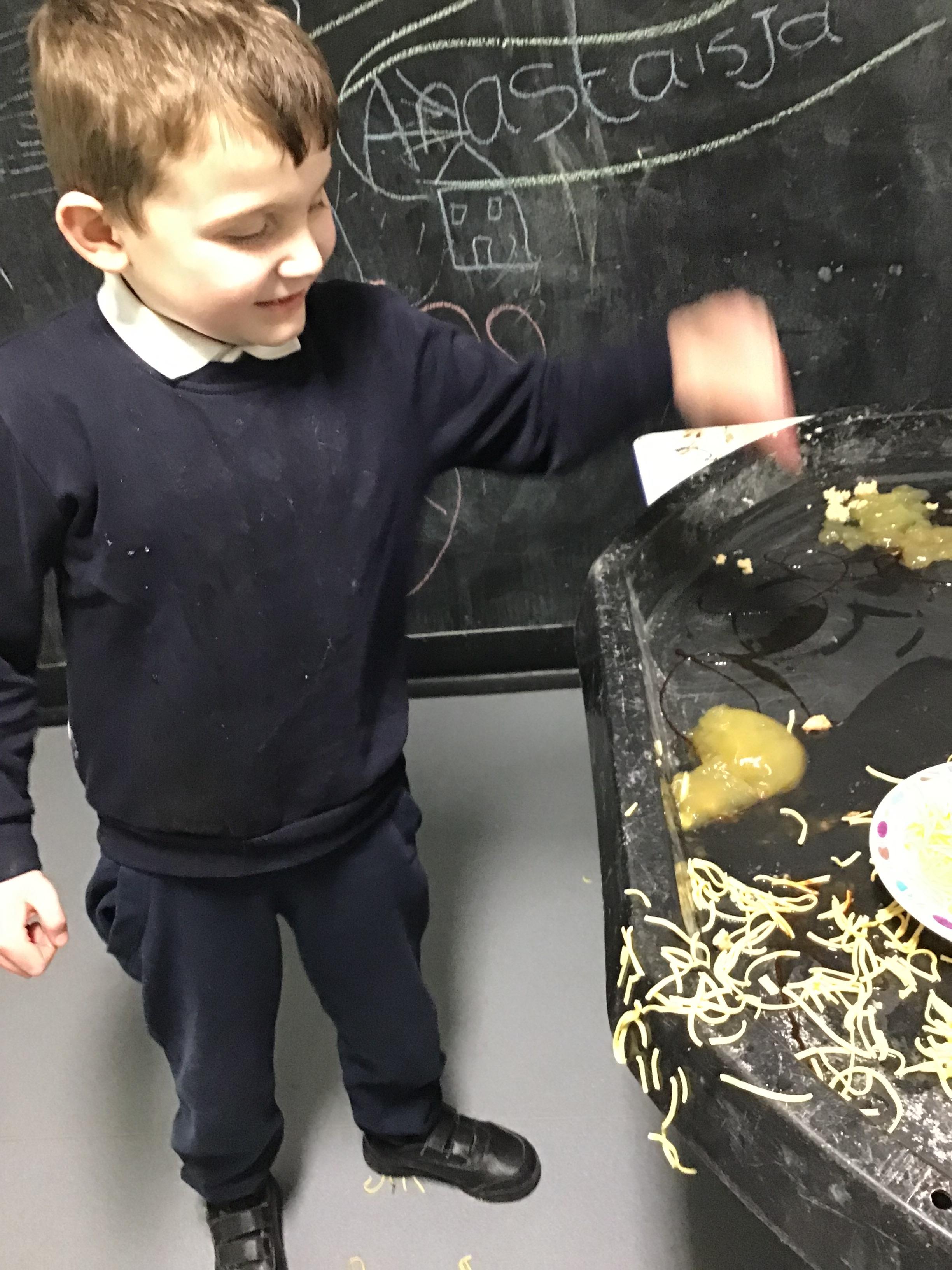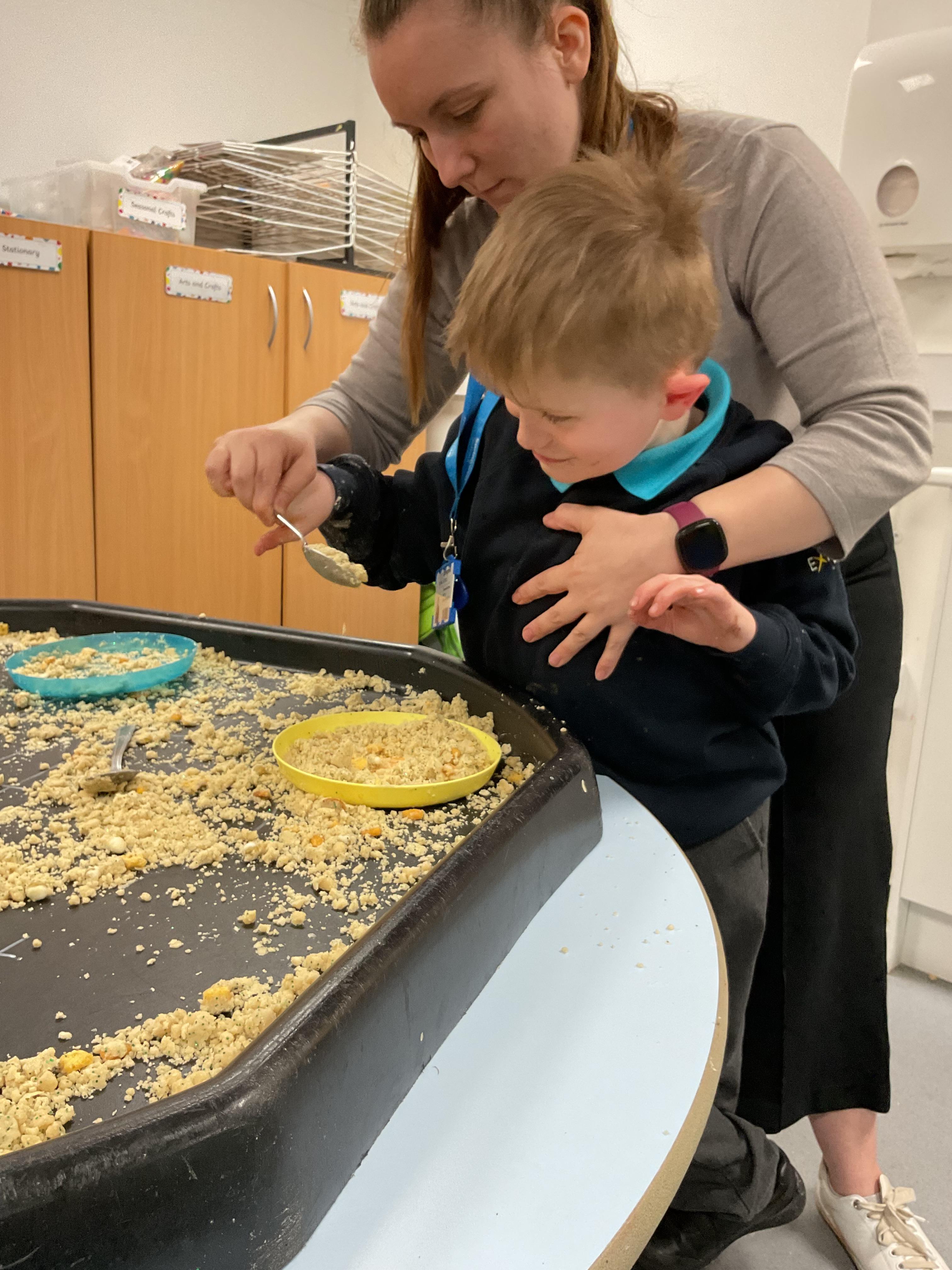 Over the last two weeks of term we enjoyed exploring our story of the week in an interactive way. All of the children enjoyed using their senses as they explored the 'Gruffalo Crumble' alongside a variety of textures objects and food sources.