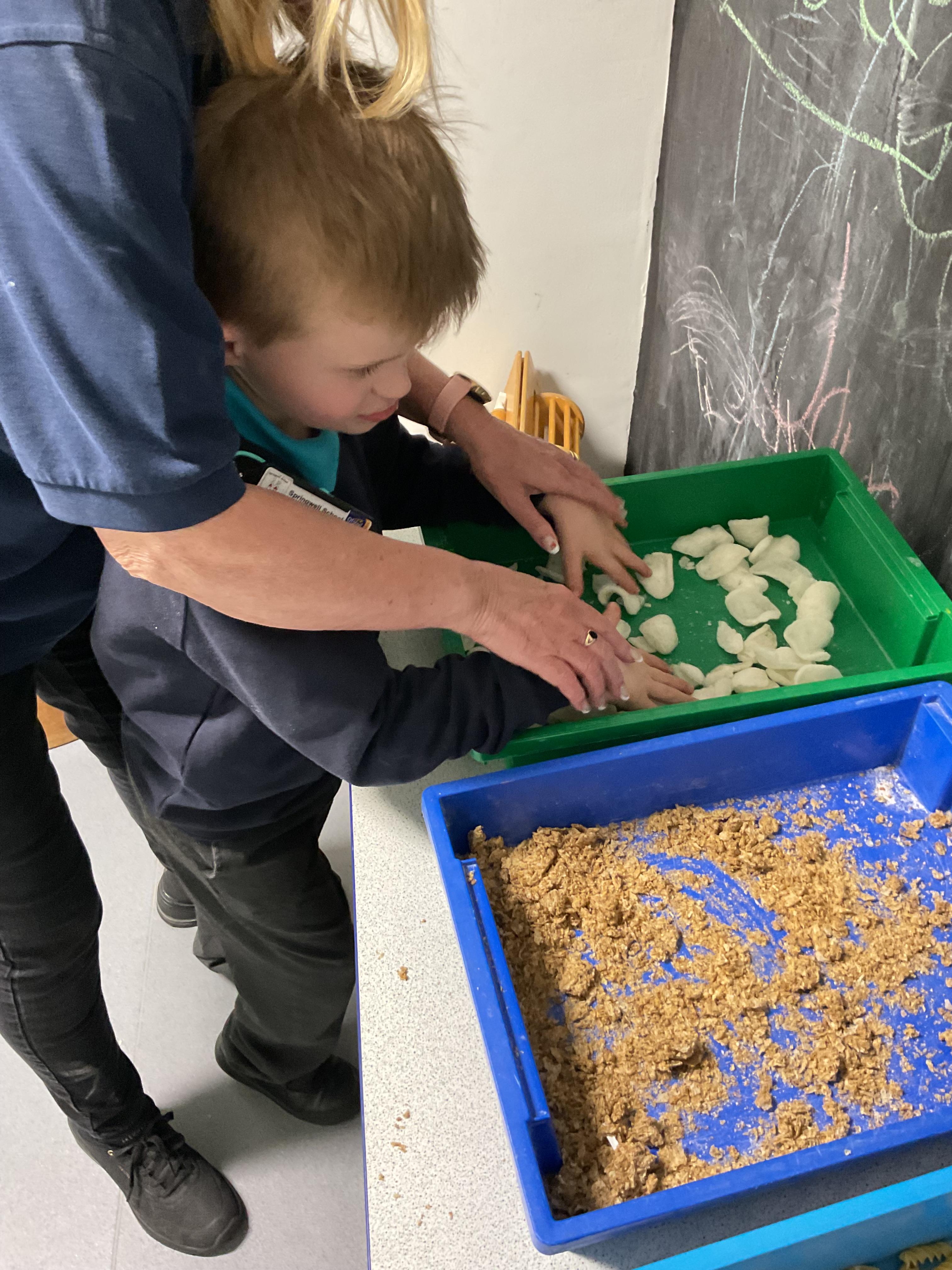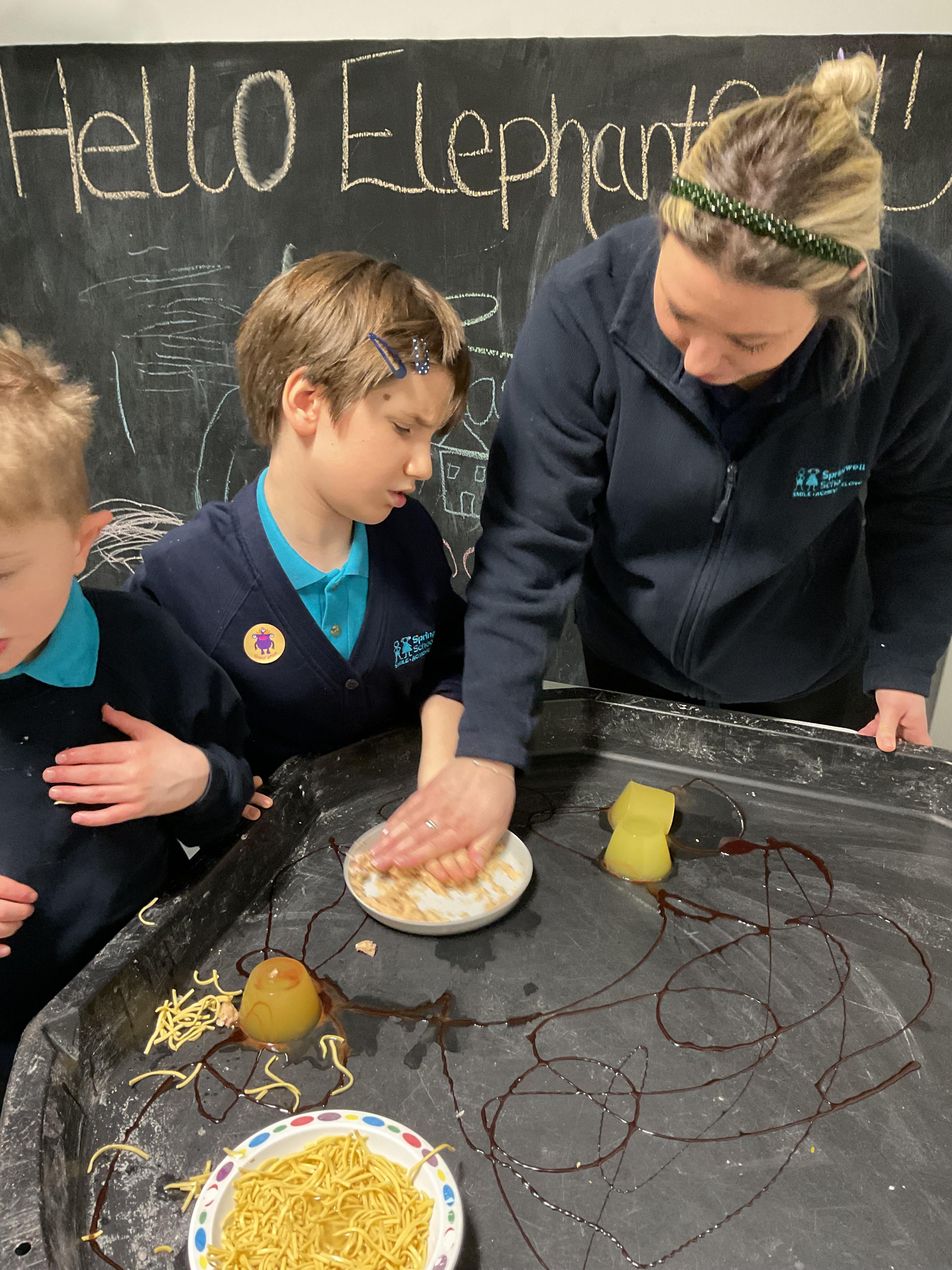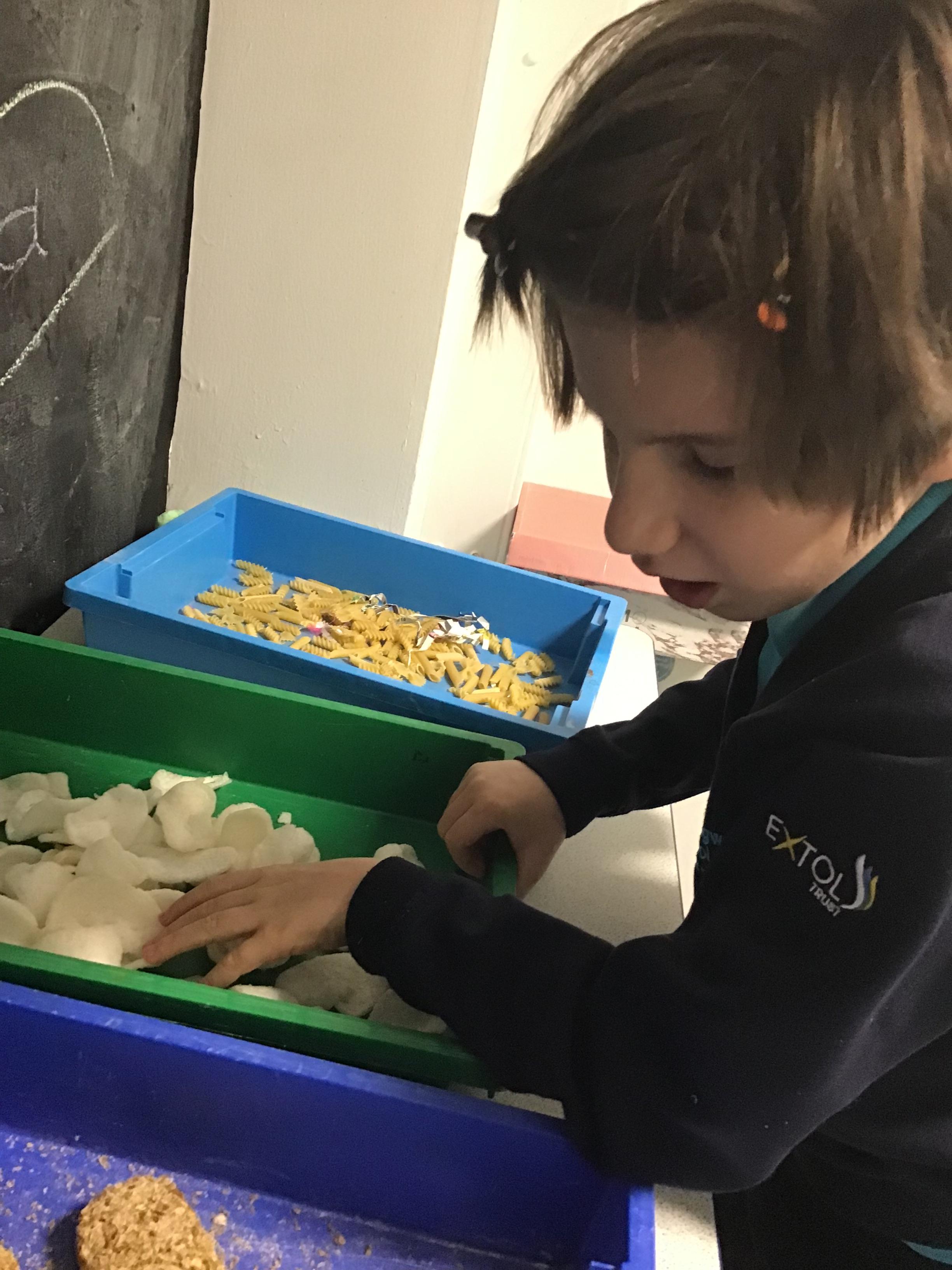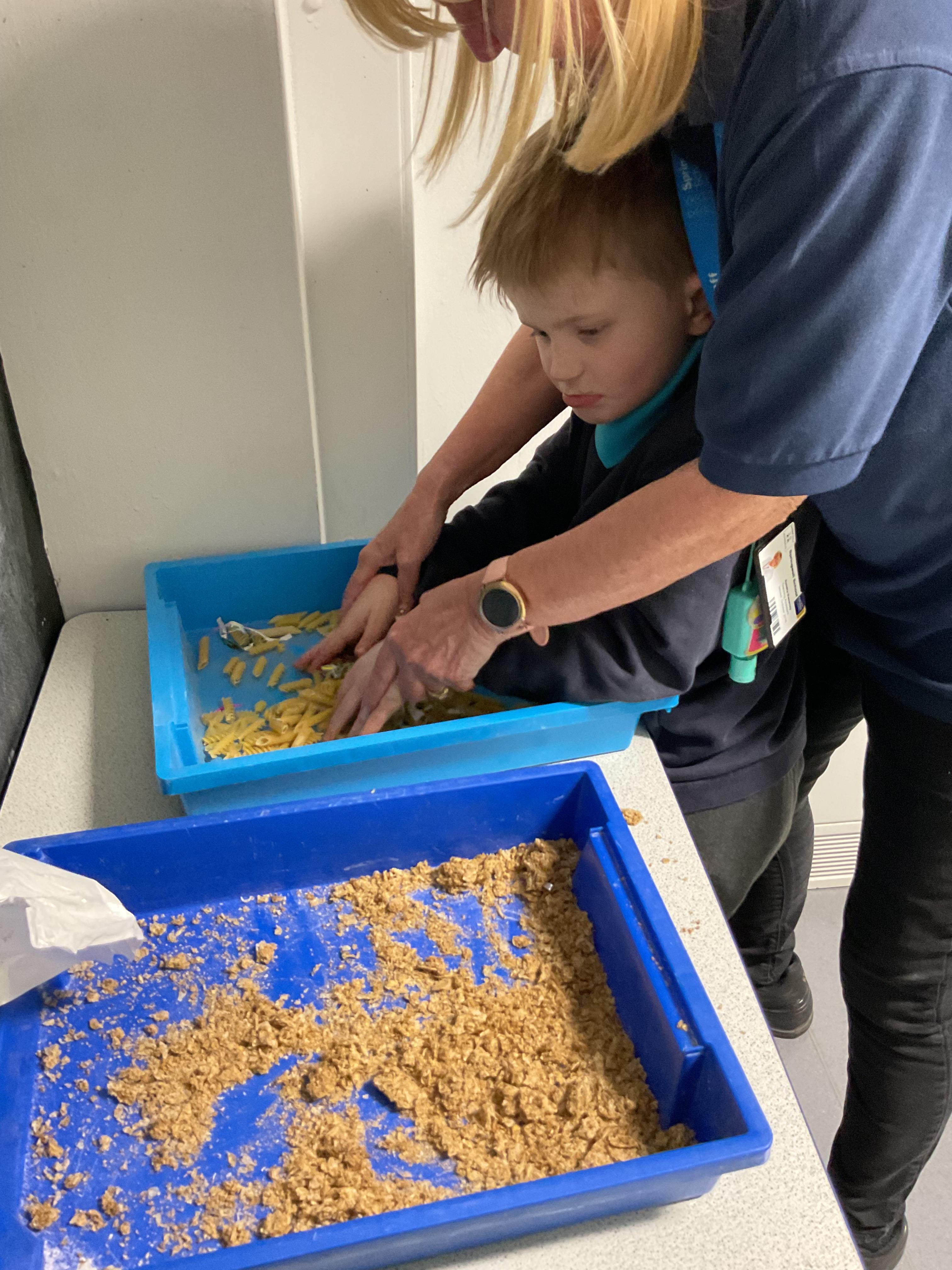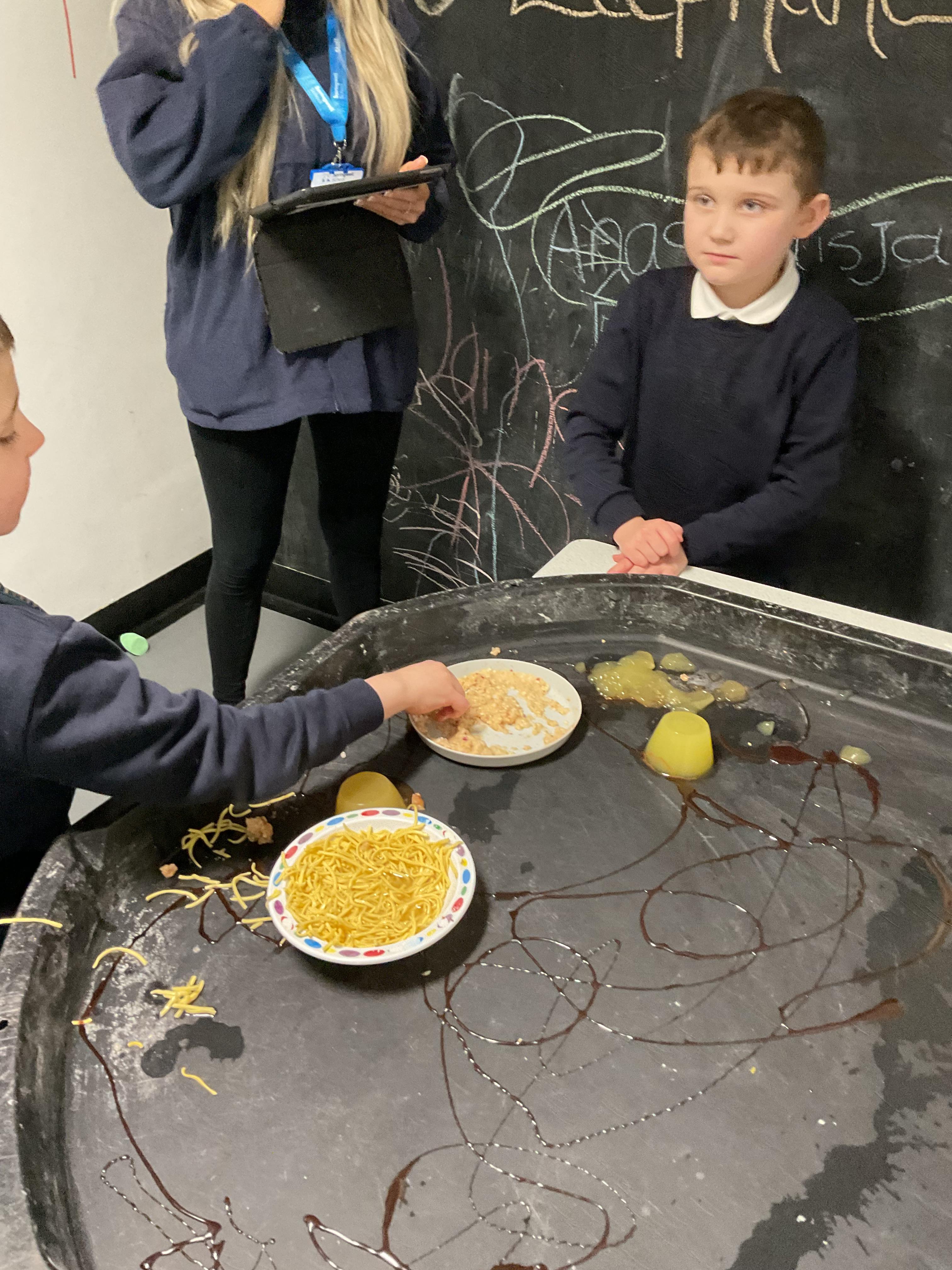 Over the last two weeks of term we enjoyed exploring our story of the week in an interactive way. All of the children enjoyed using their senses as they explored the 'Gruffalo Crumble' alongside a variety of textures objects and food sources.