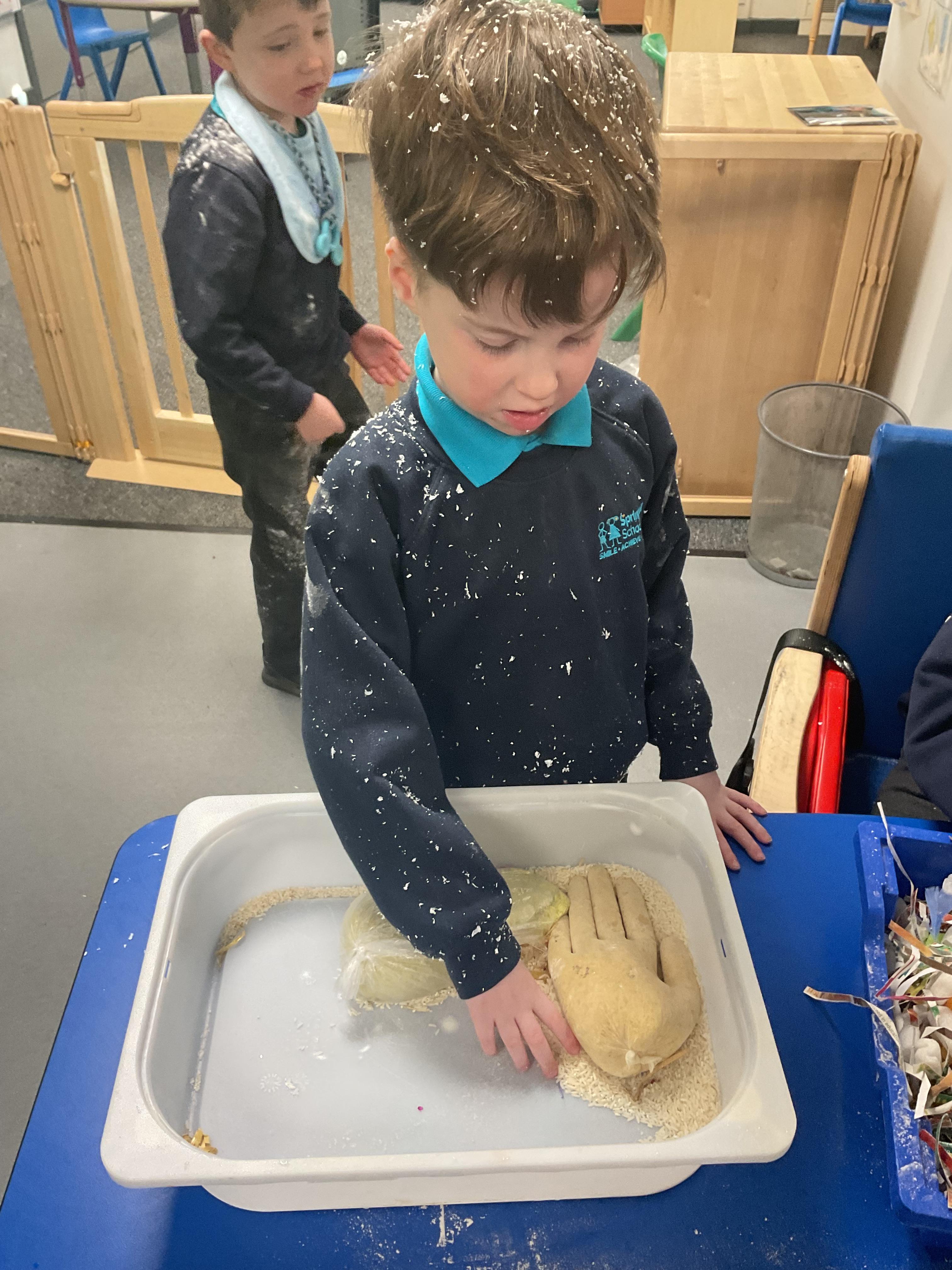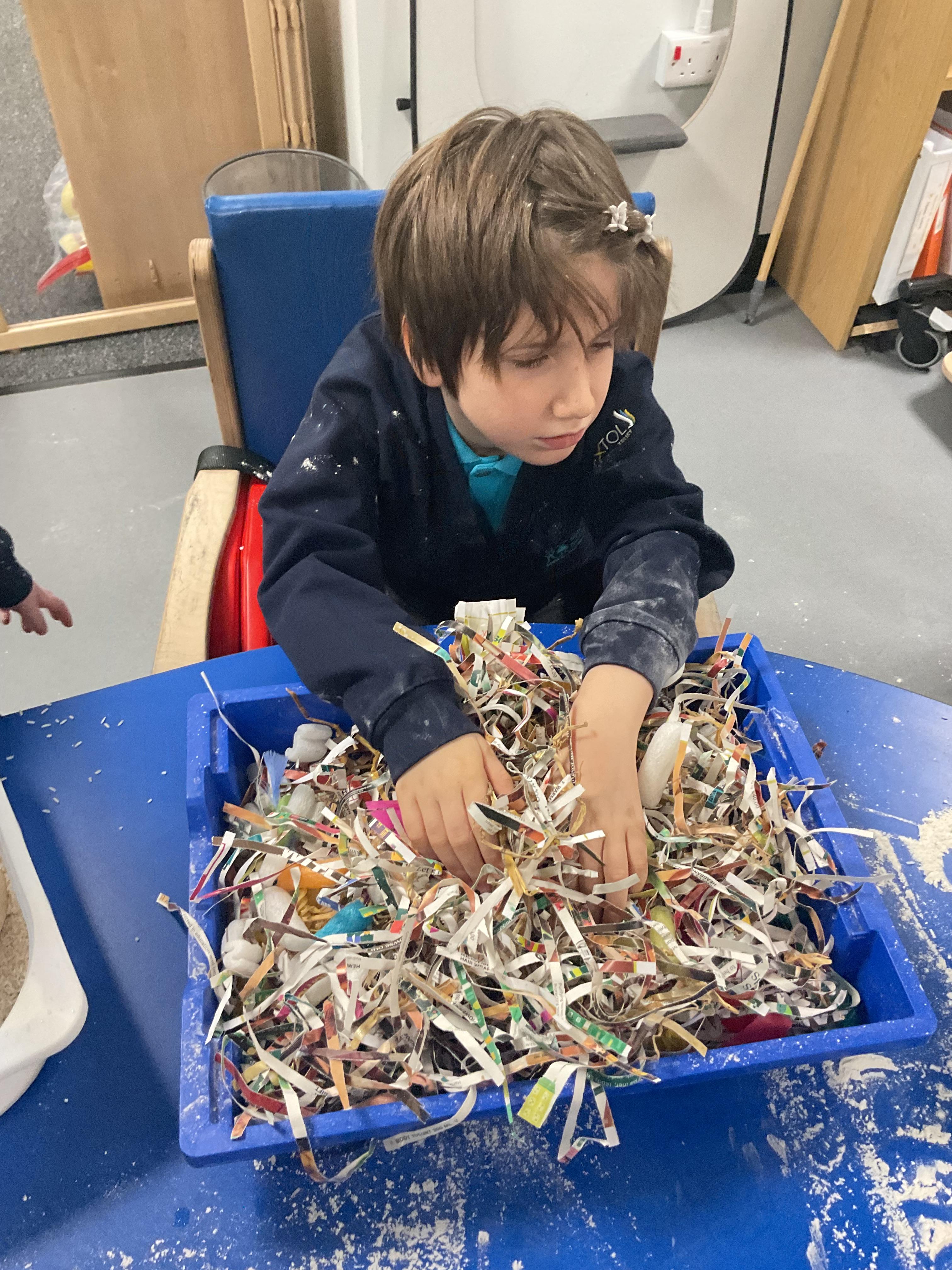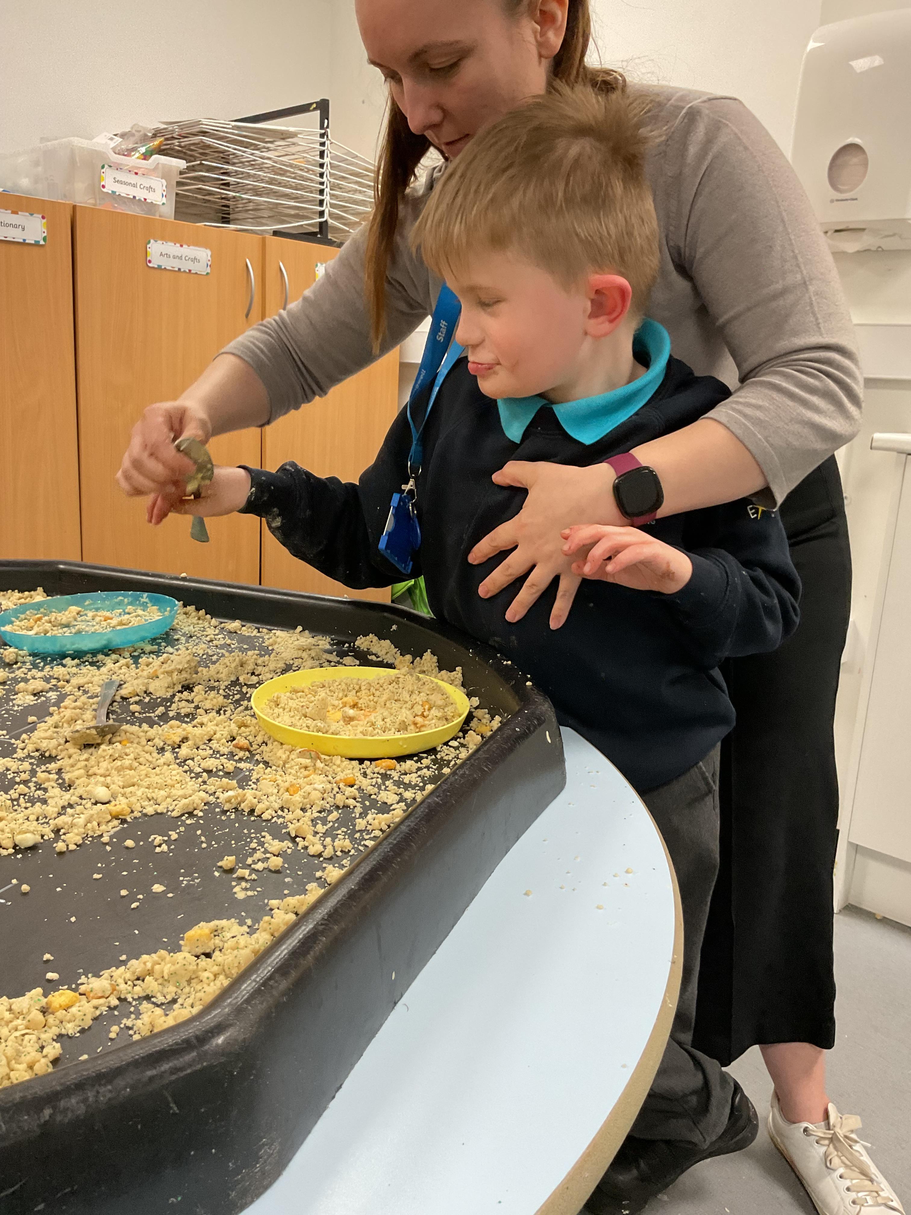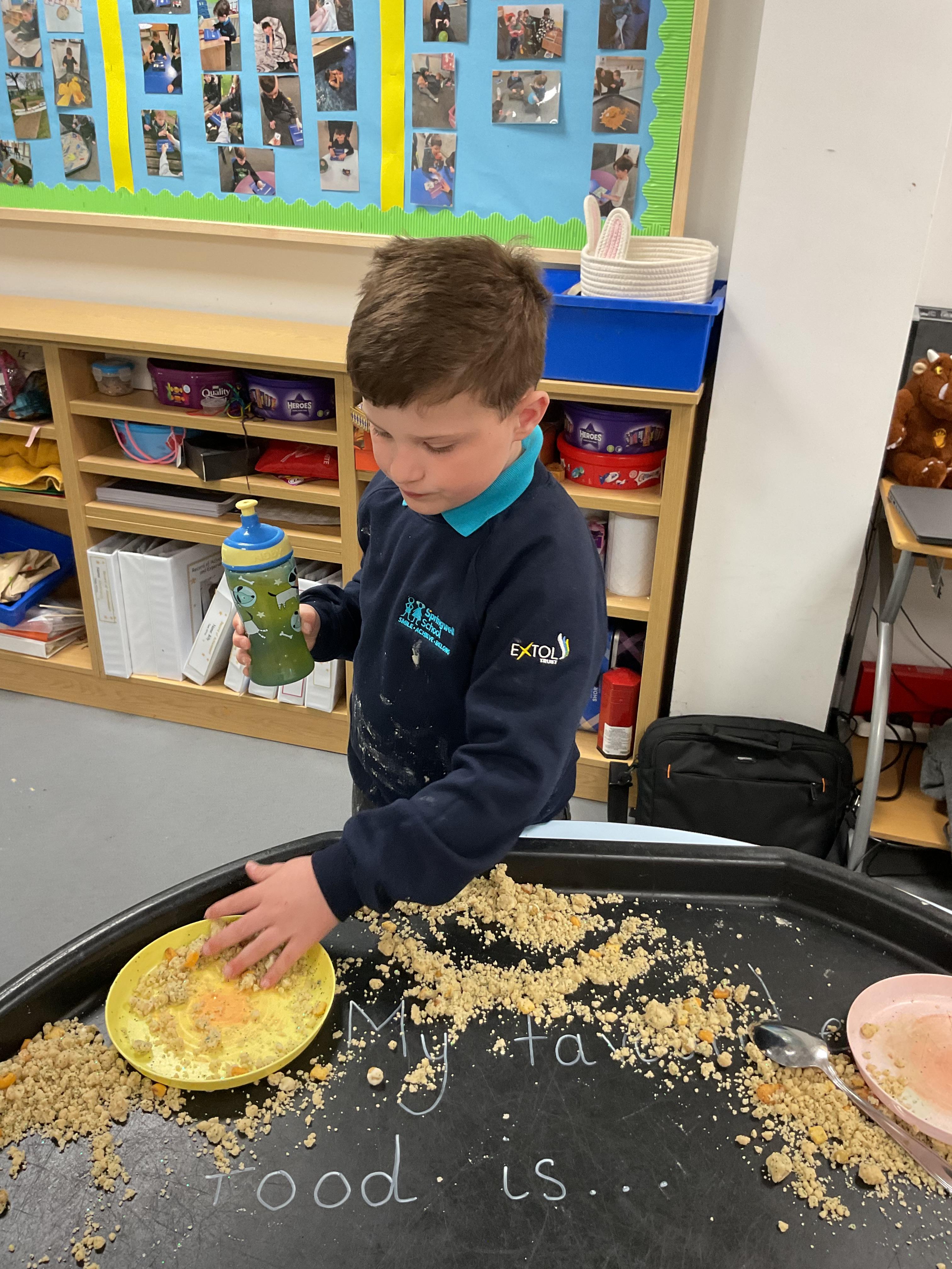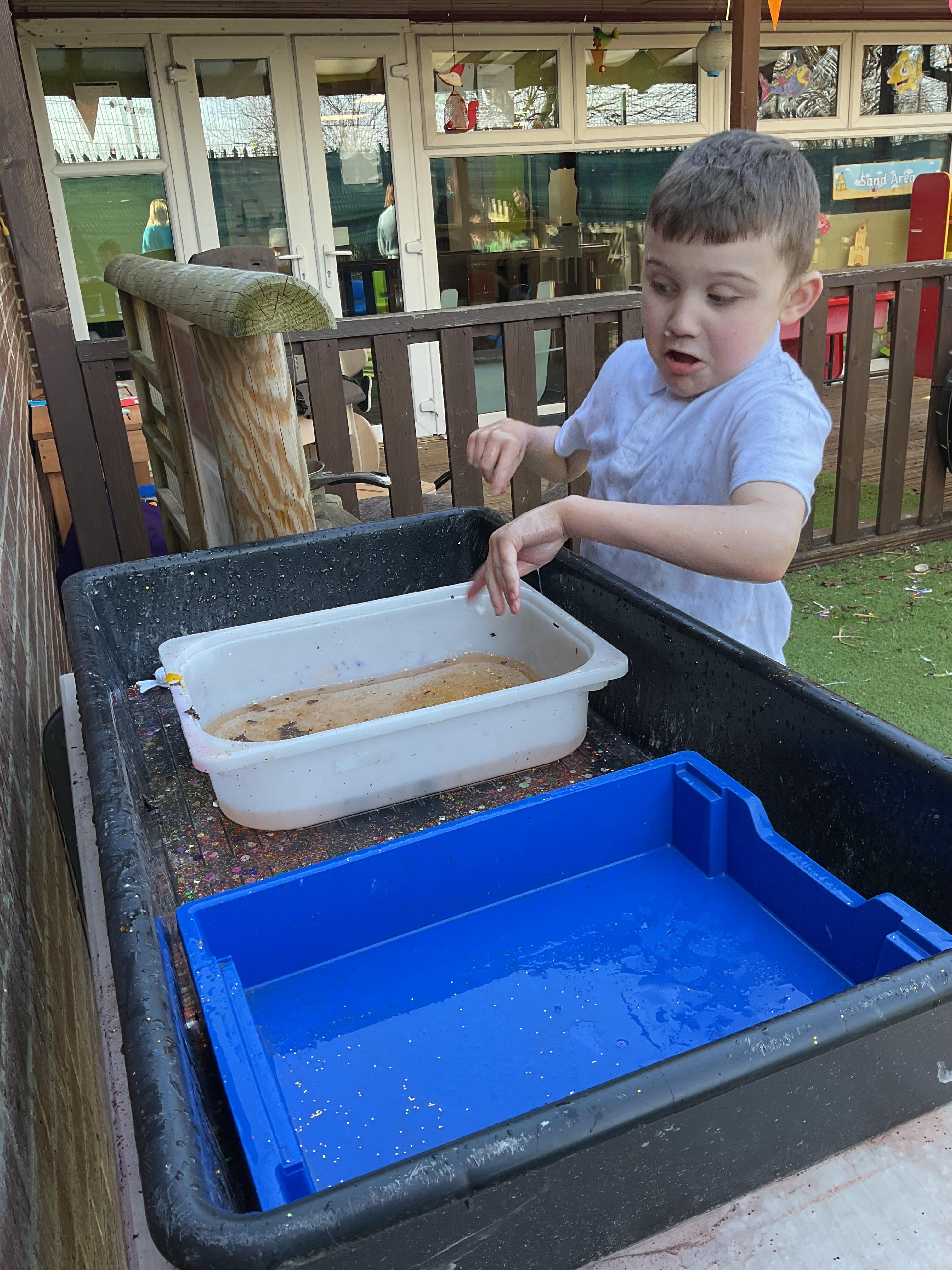 Over the last two weeks of term we enjoyed exploring our story of the week in an interactive way. All of the children enjoyed using their senses as they explored the 'Gruffalo Crumble' alongside a variety of textures objects and food sources.
