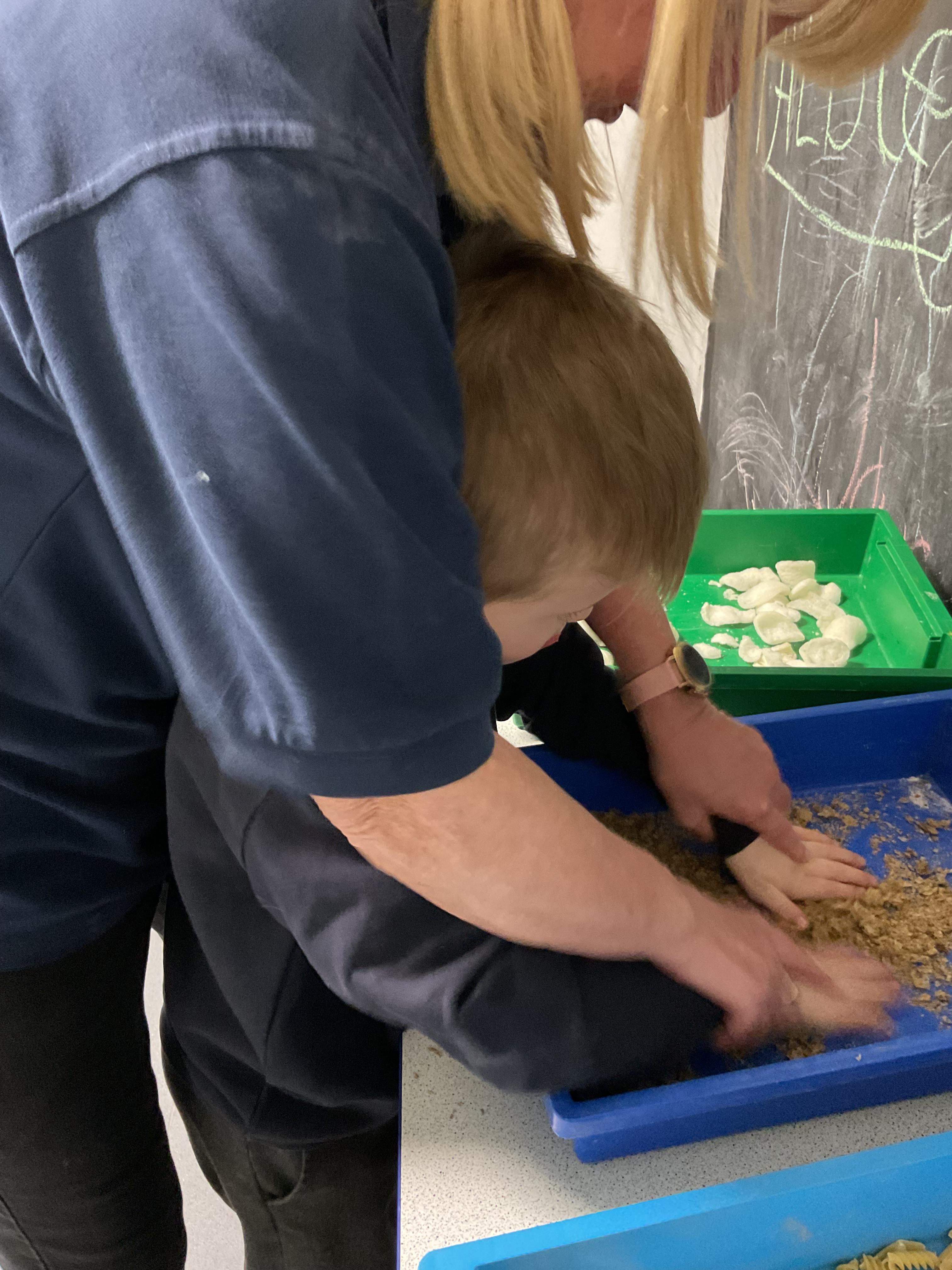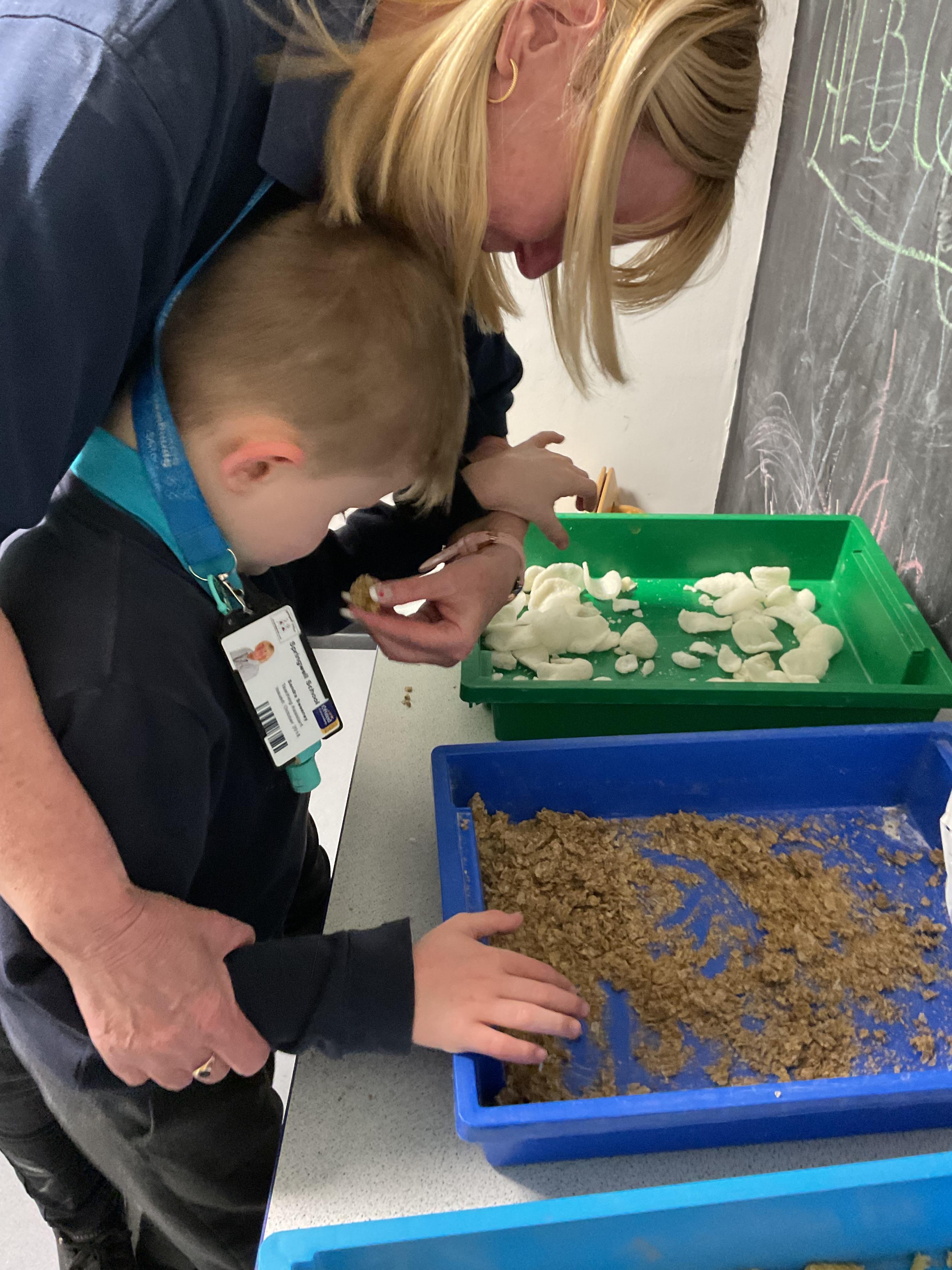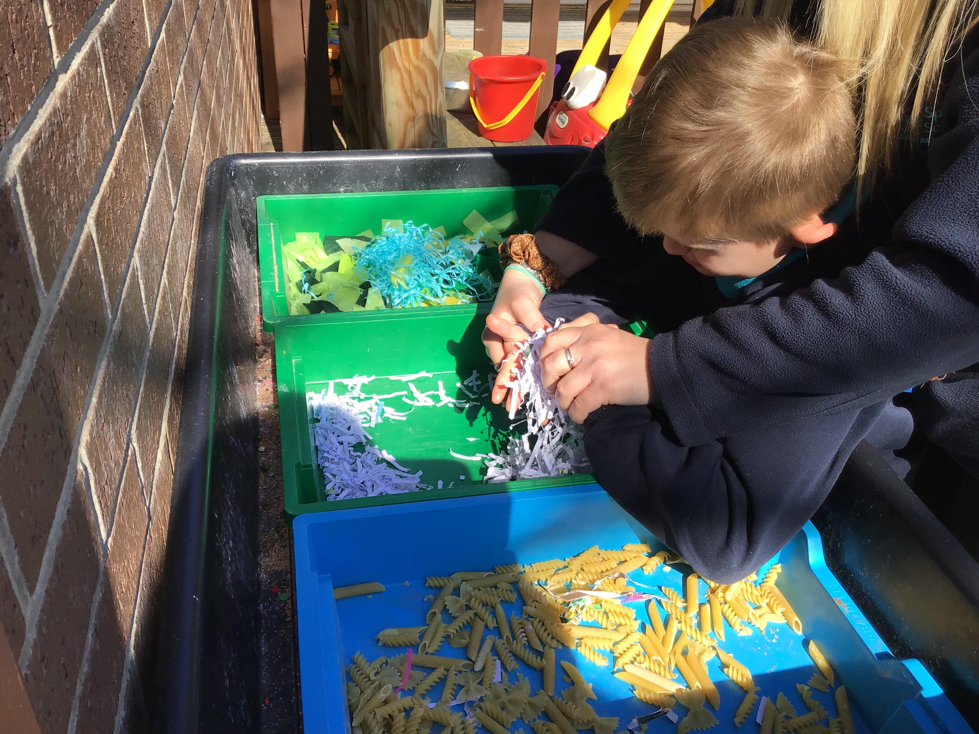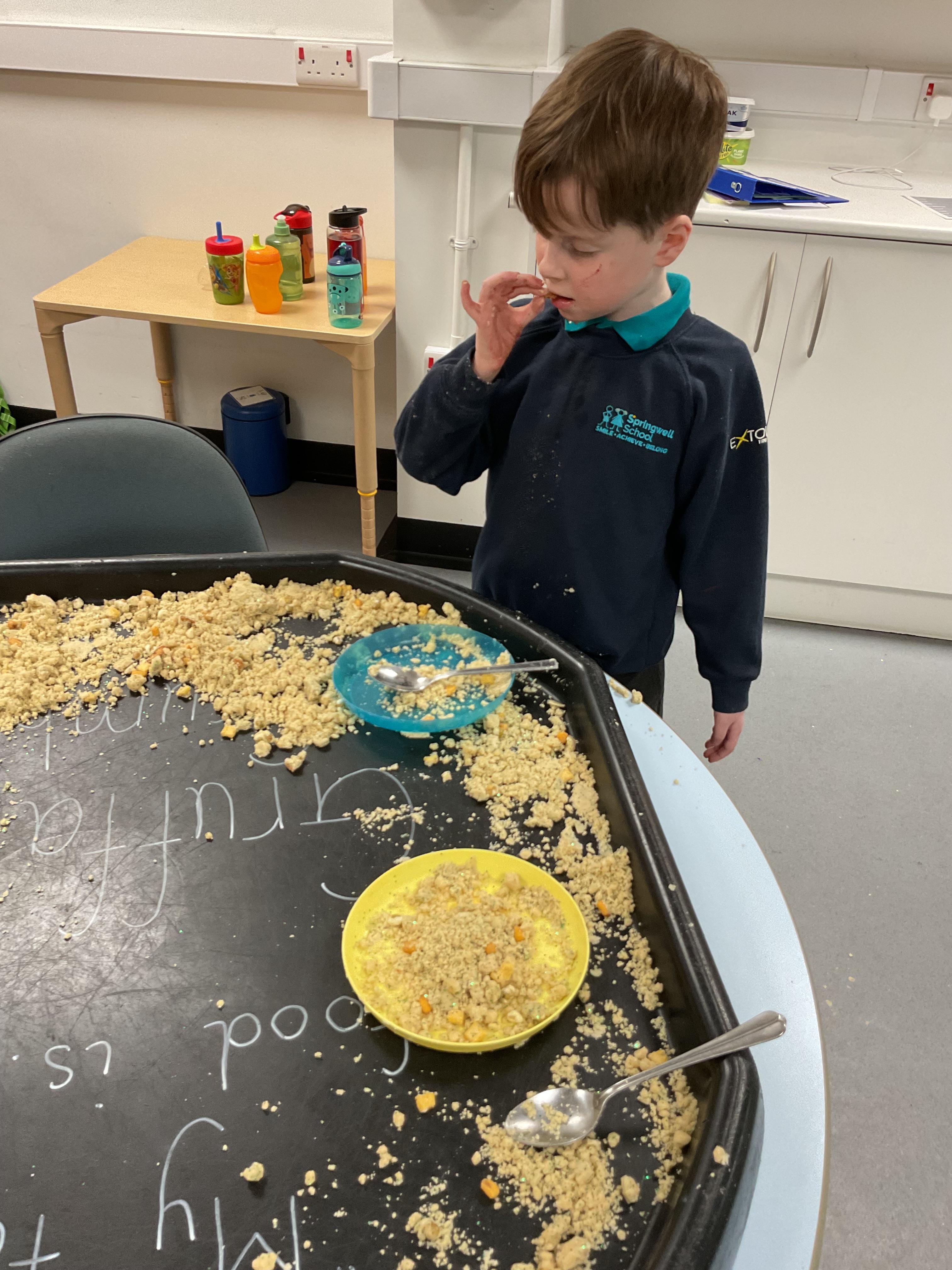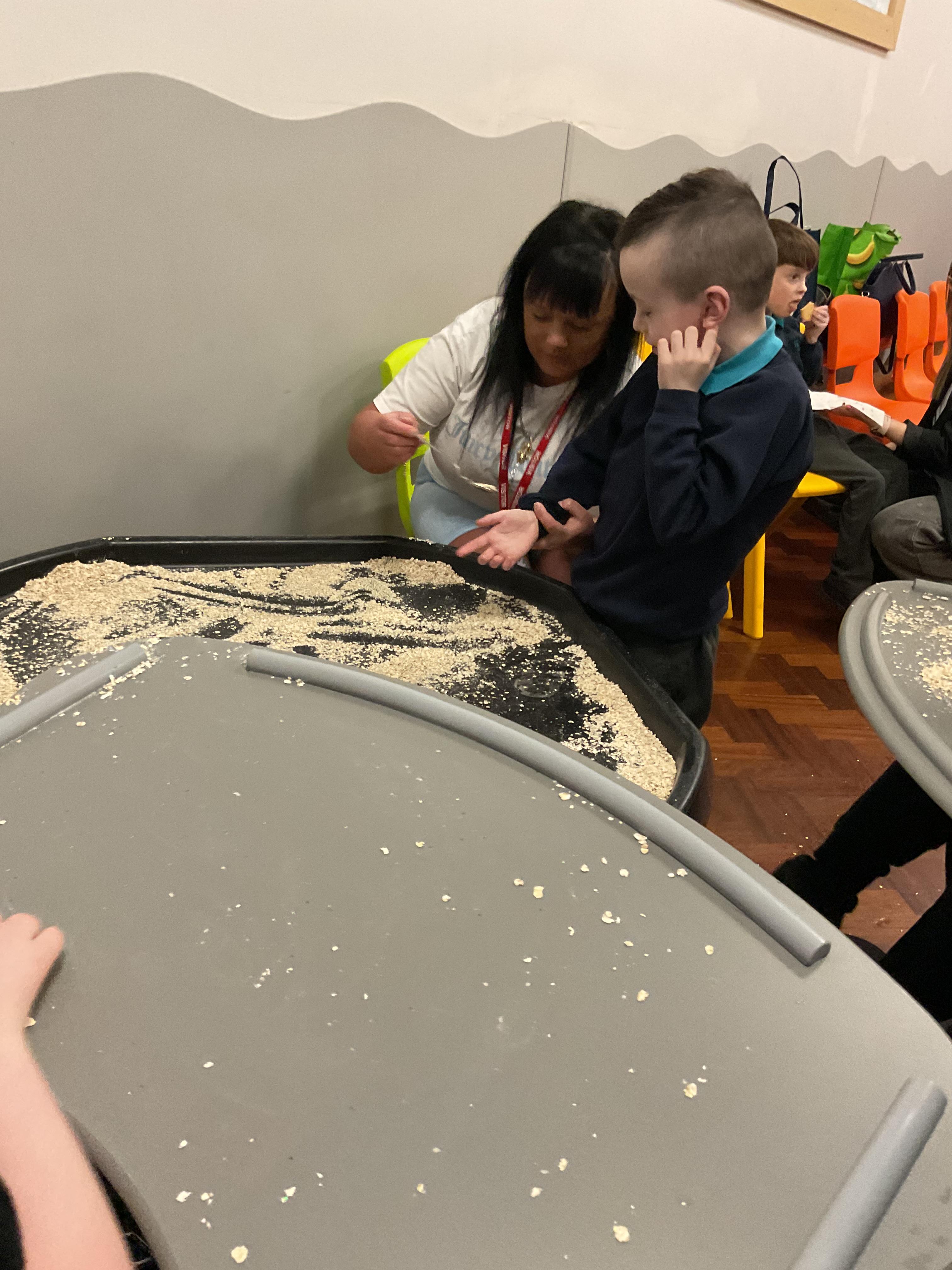 Over the last two weeks of term we enjoyed exploring our story of the week in an interactive way. All of the children enjoyed using their senses as they explored the 'Gruffalo Crumble' alongside a variety of textures objects and food sources.