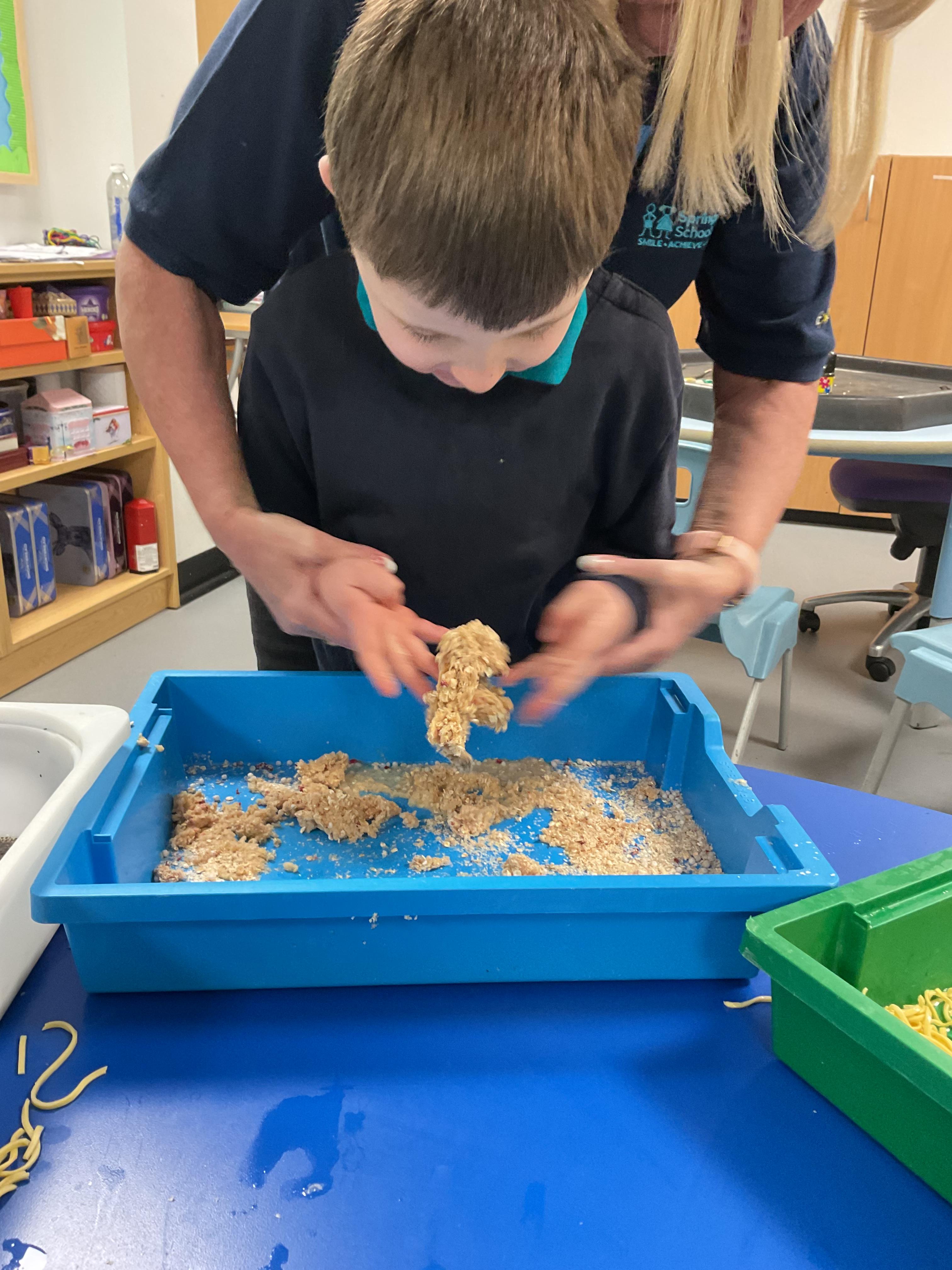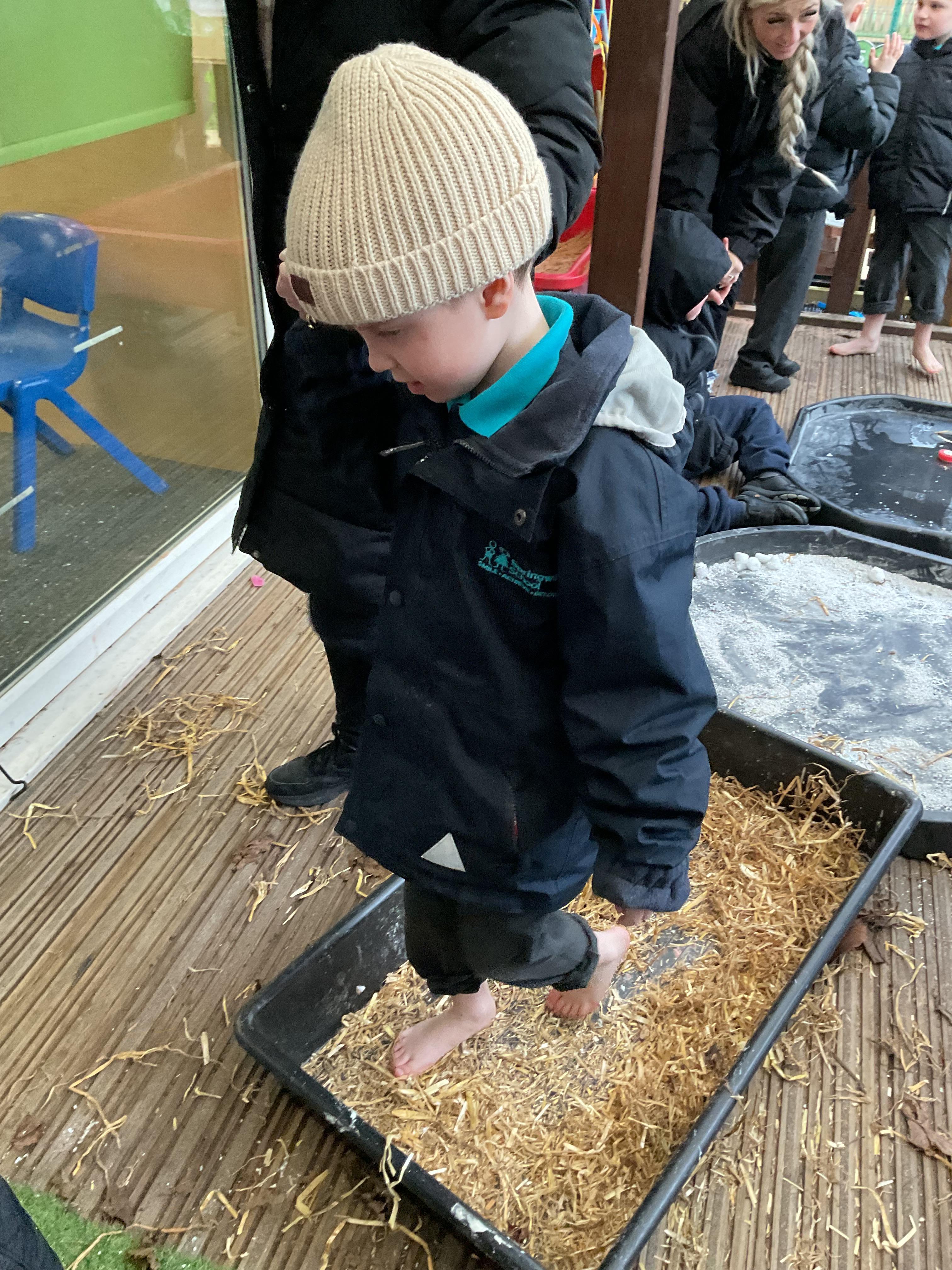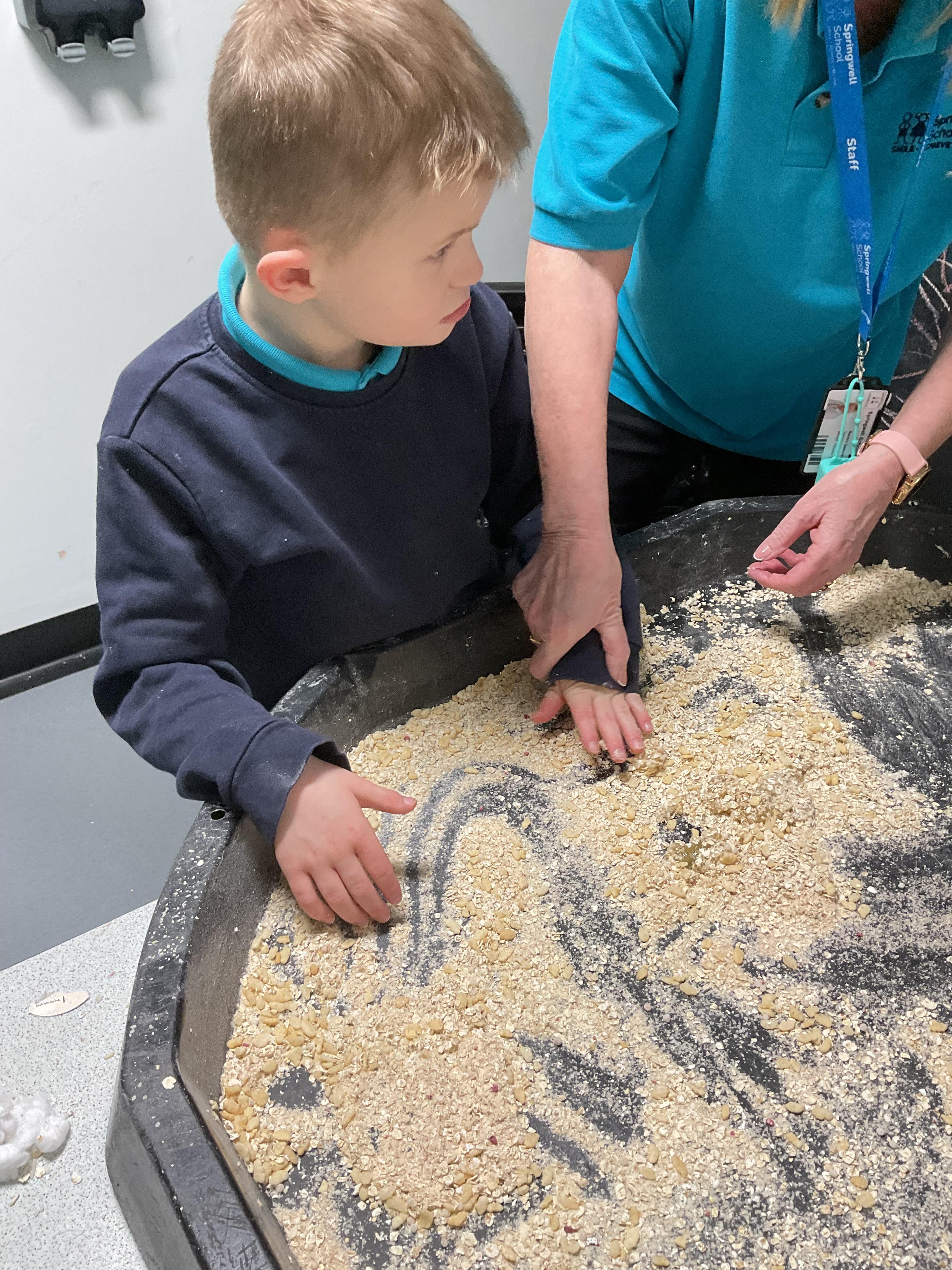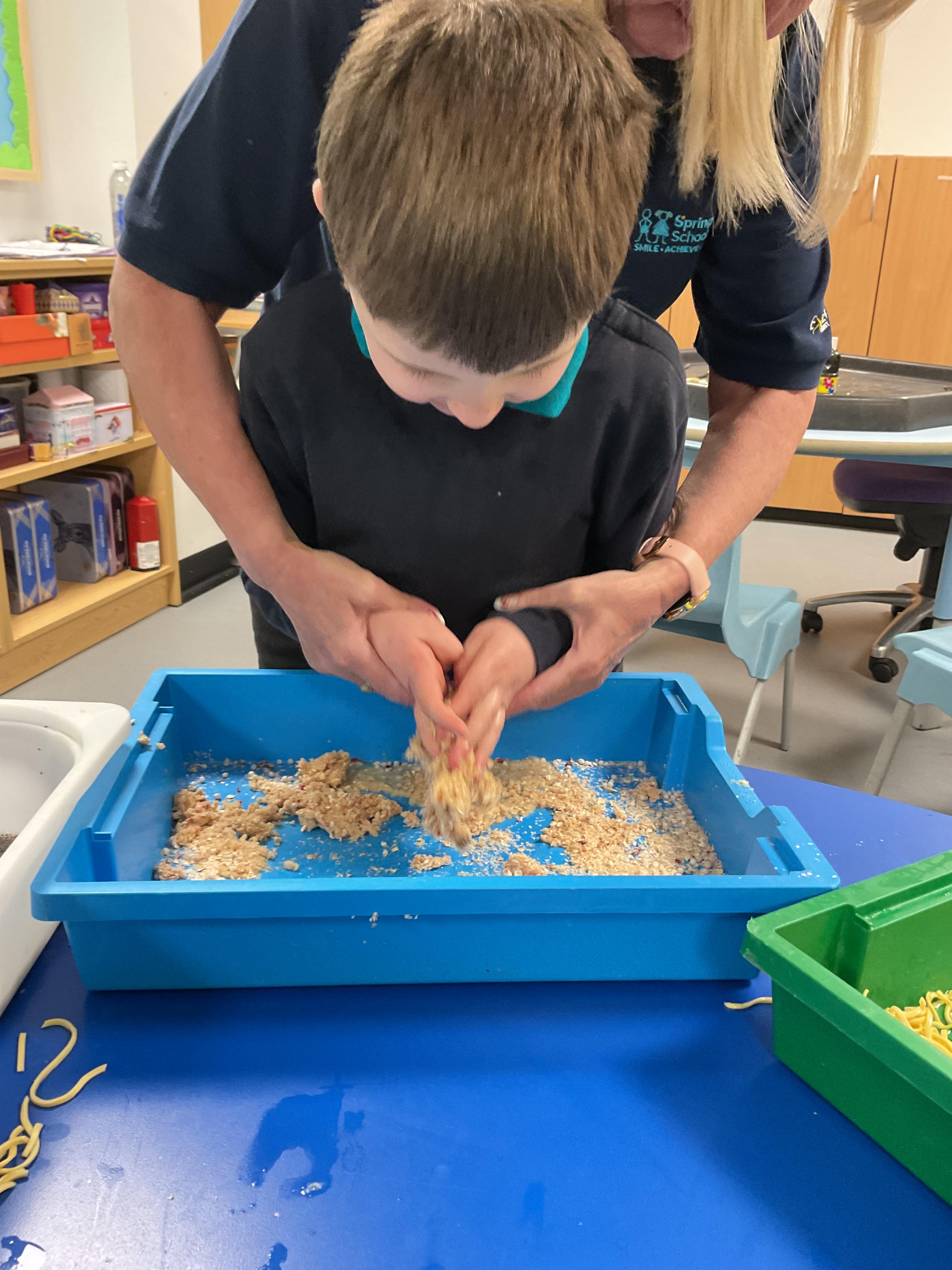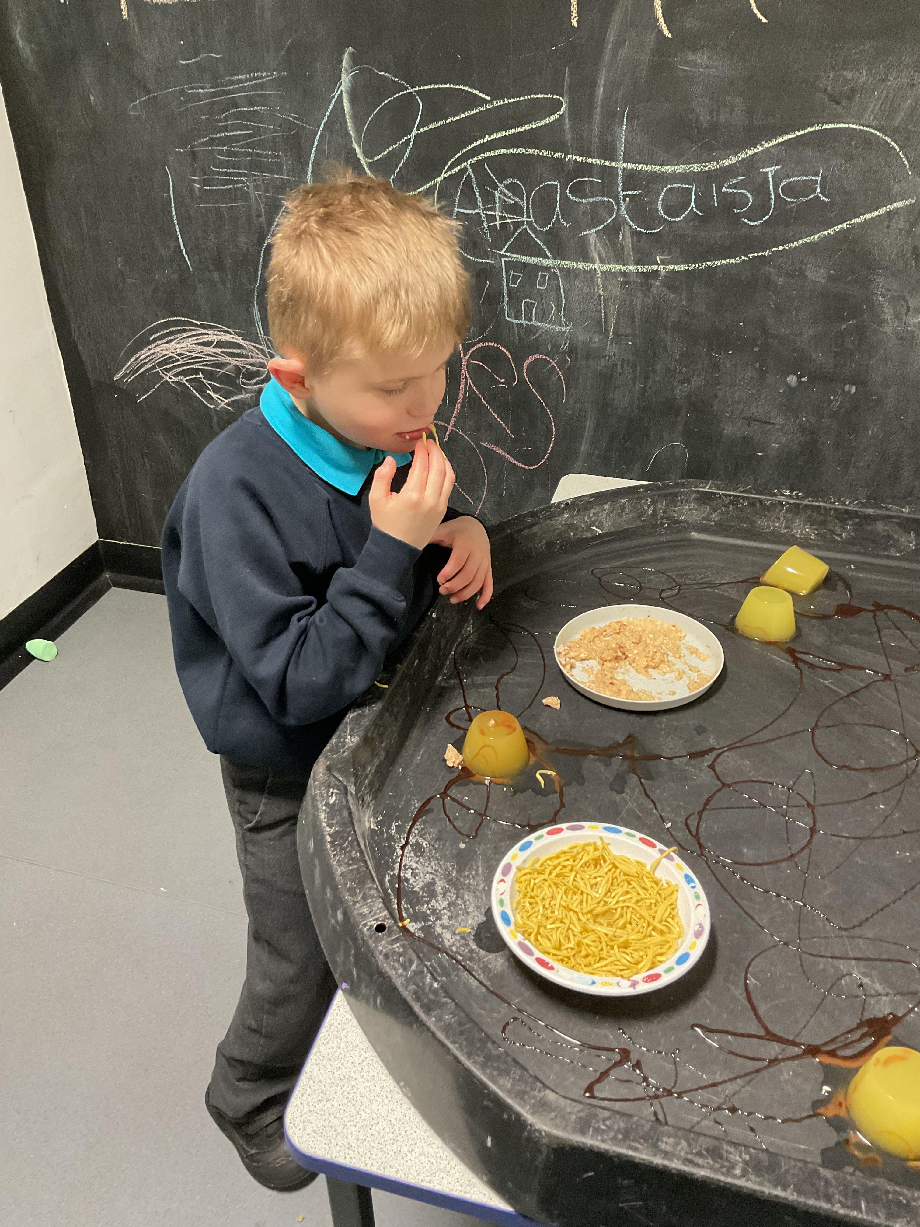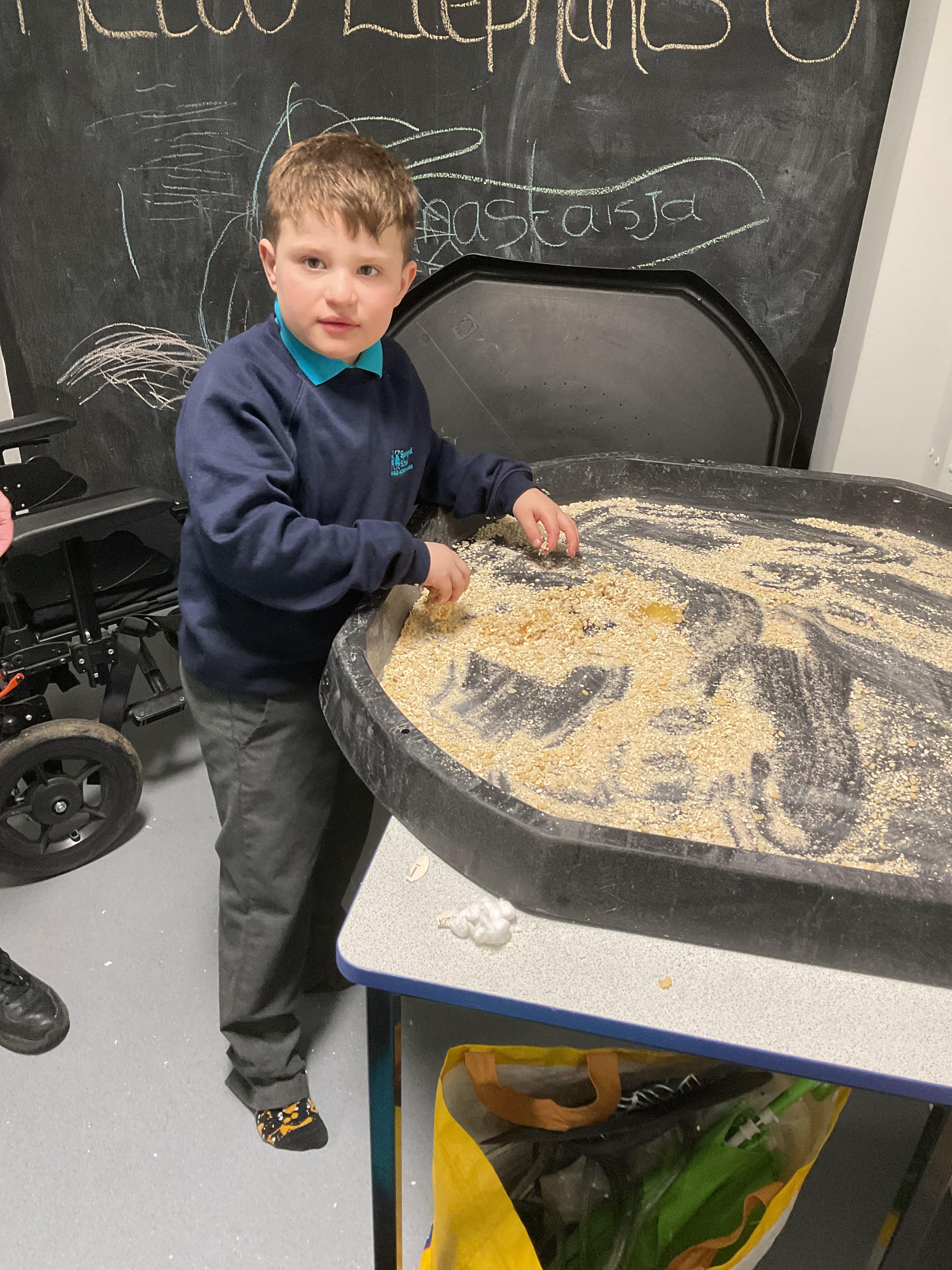 Over the last two weeks of term we enjoyed exploring our story of the week in an interactive way. All of the children enjoyed using their senses as they explored the 'Gruffalo Crumble' alongside a variety of textures objects and food sources.
