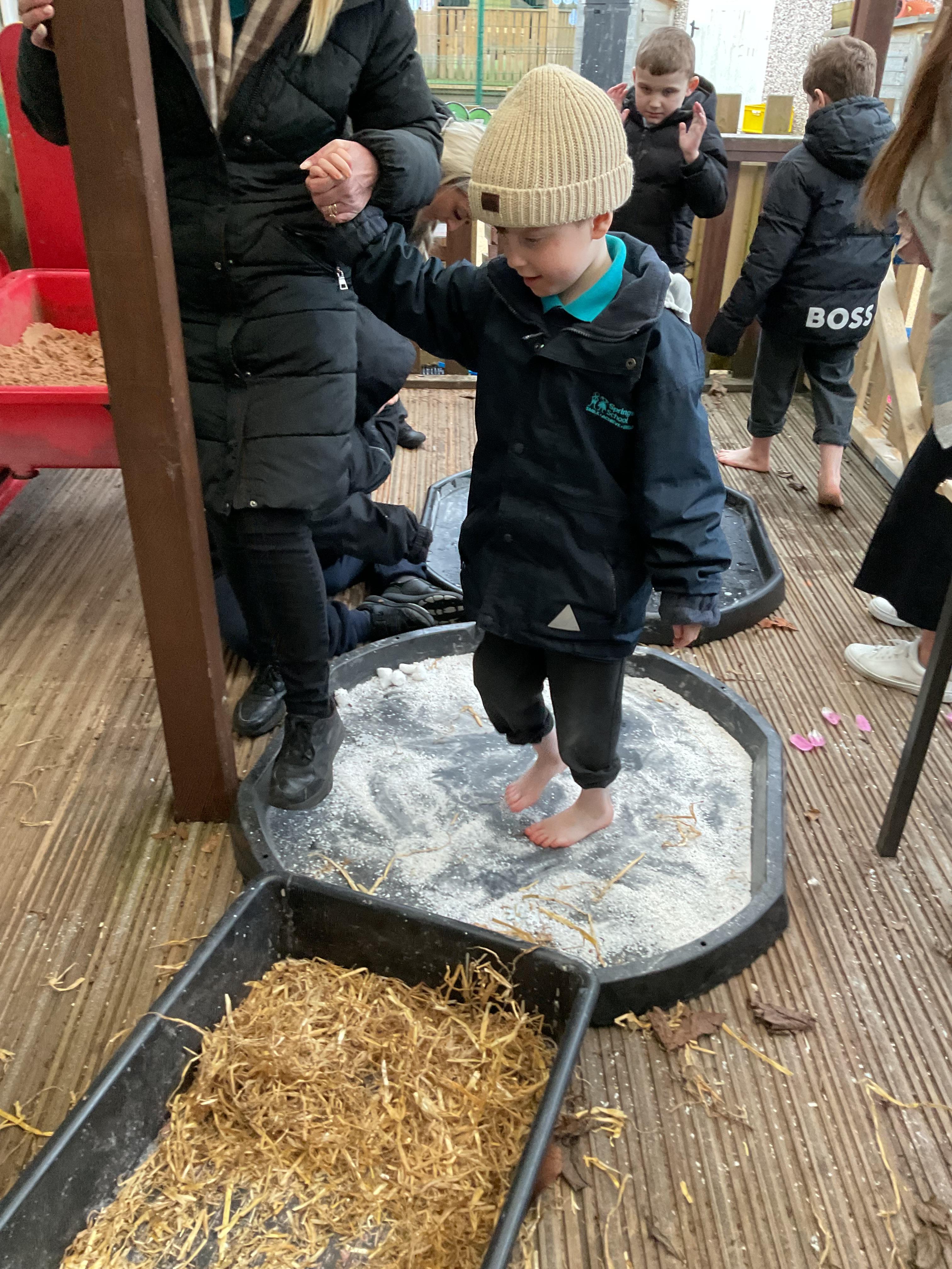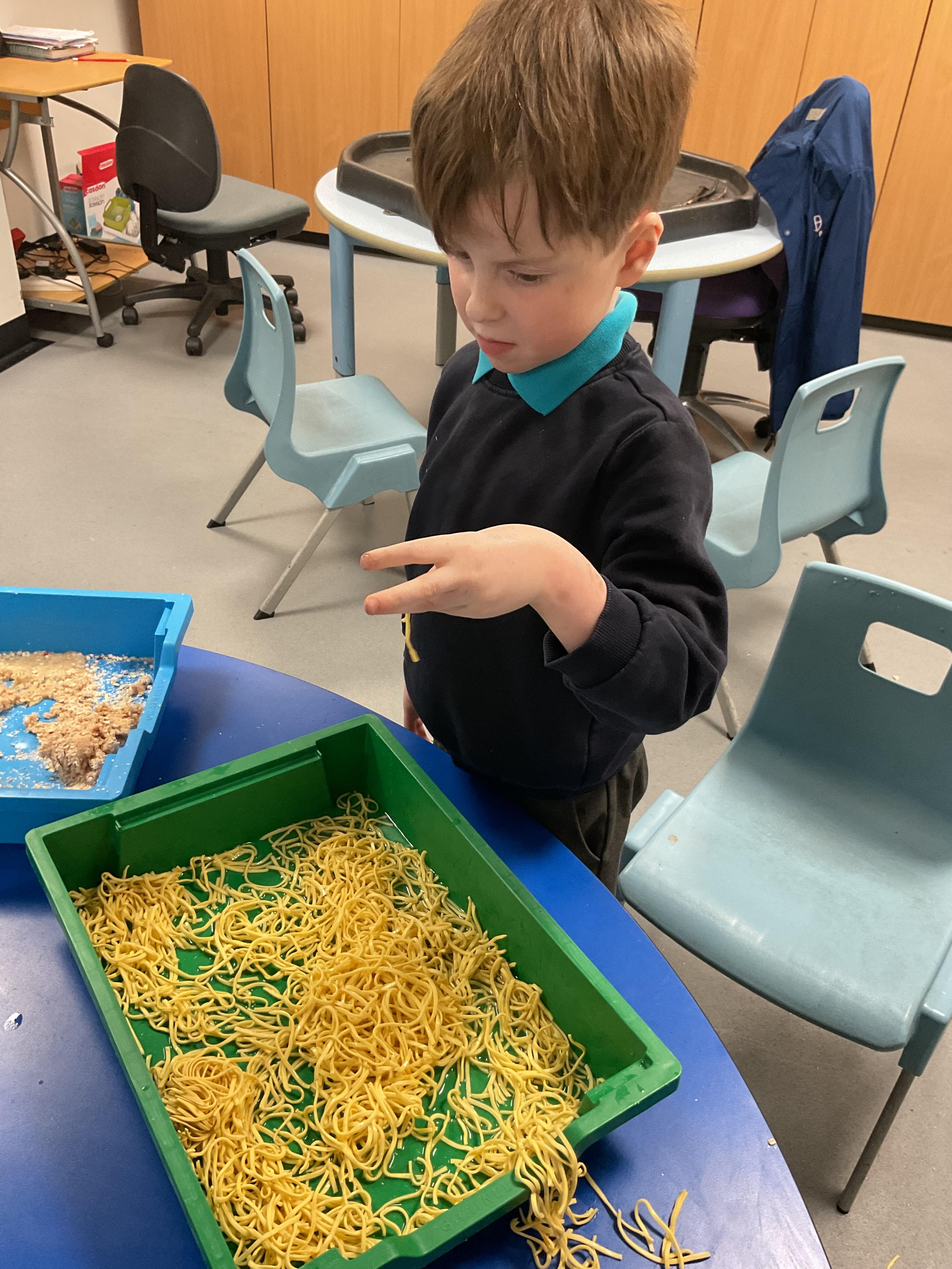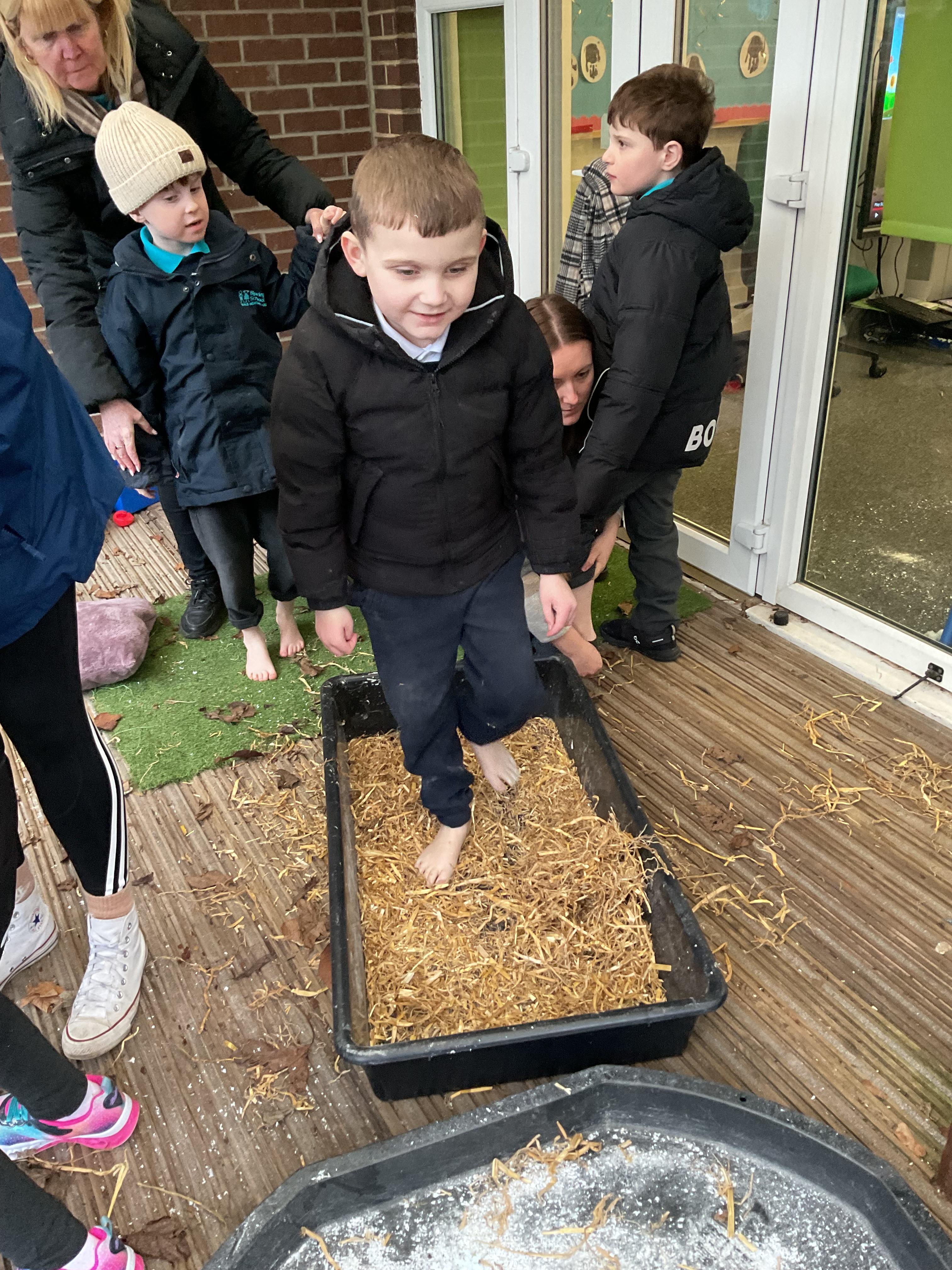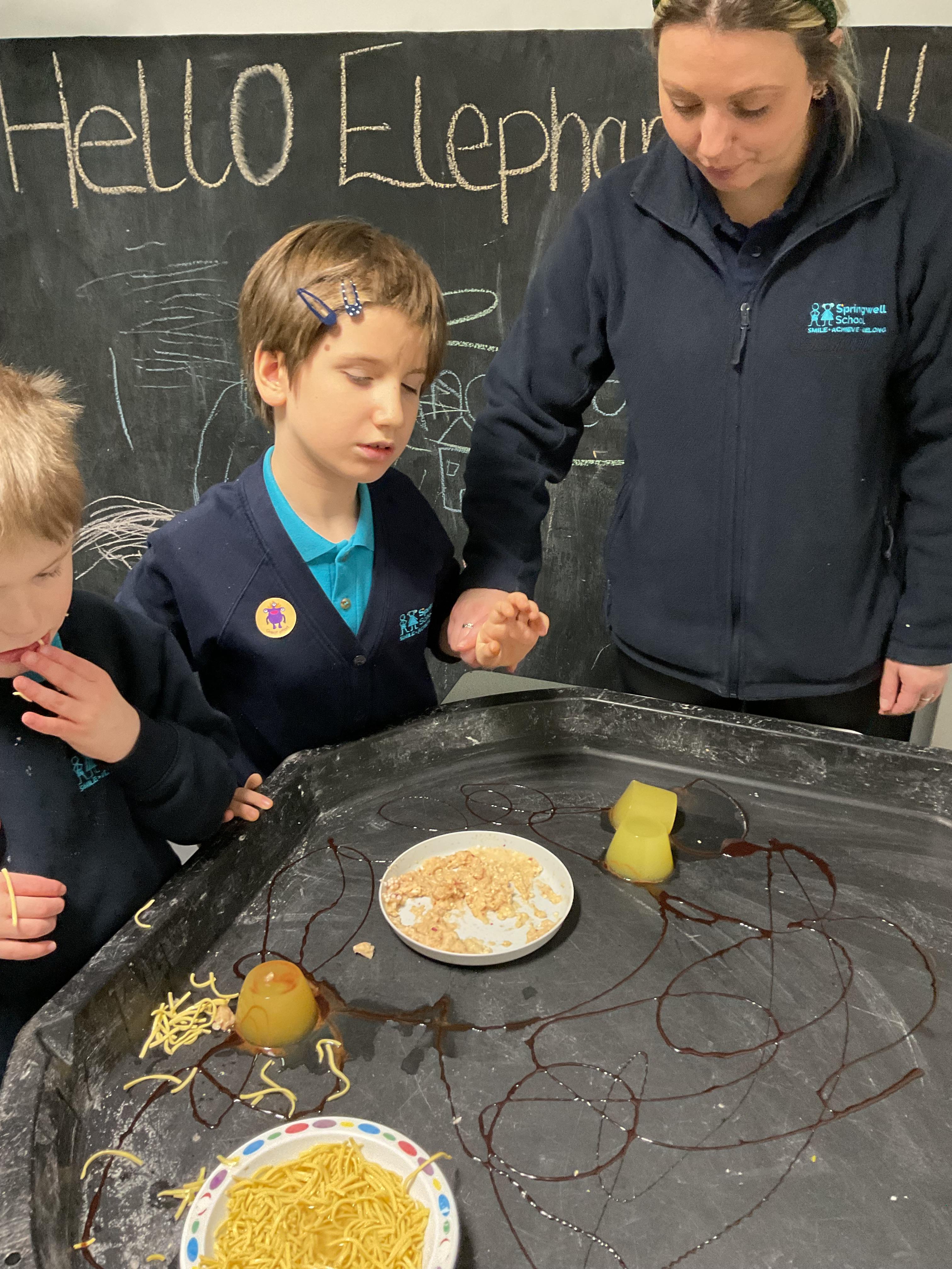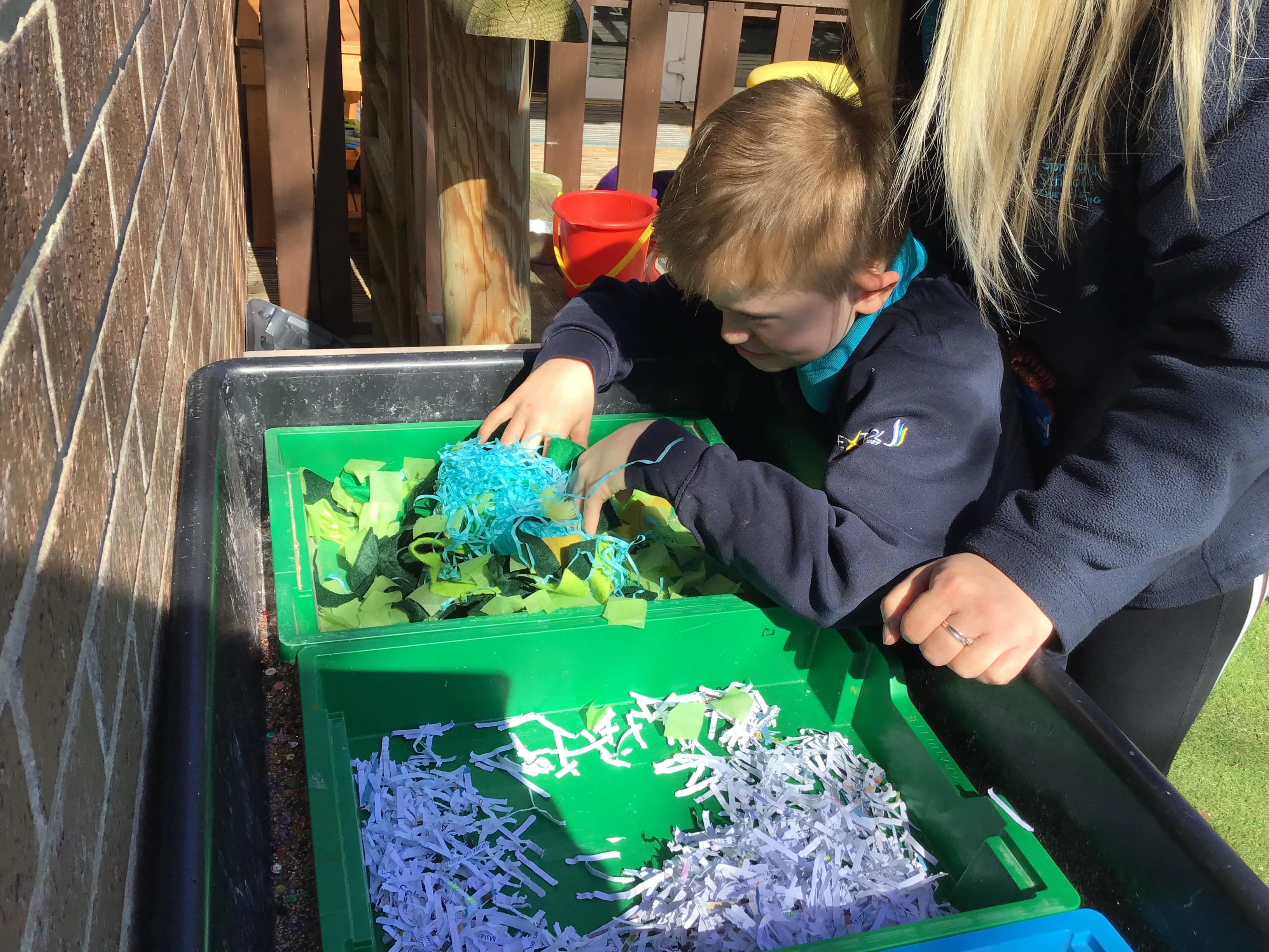 Over the last two weeks of term we enjoyed exploring our story of the week in an interactive way. All of the children enjoyed using their senses as they explored the 'Gruffalo Crumble' alongside a variety of textures objects and food sources.