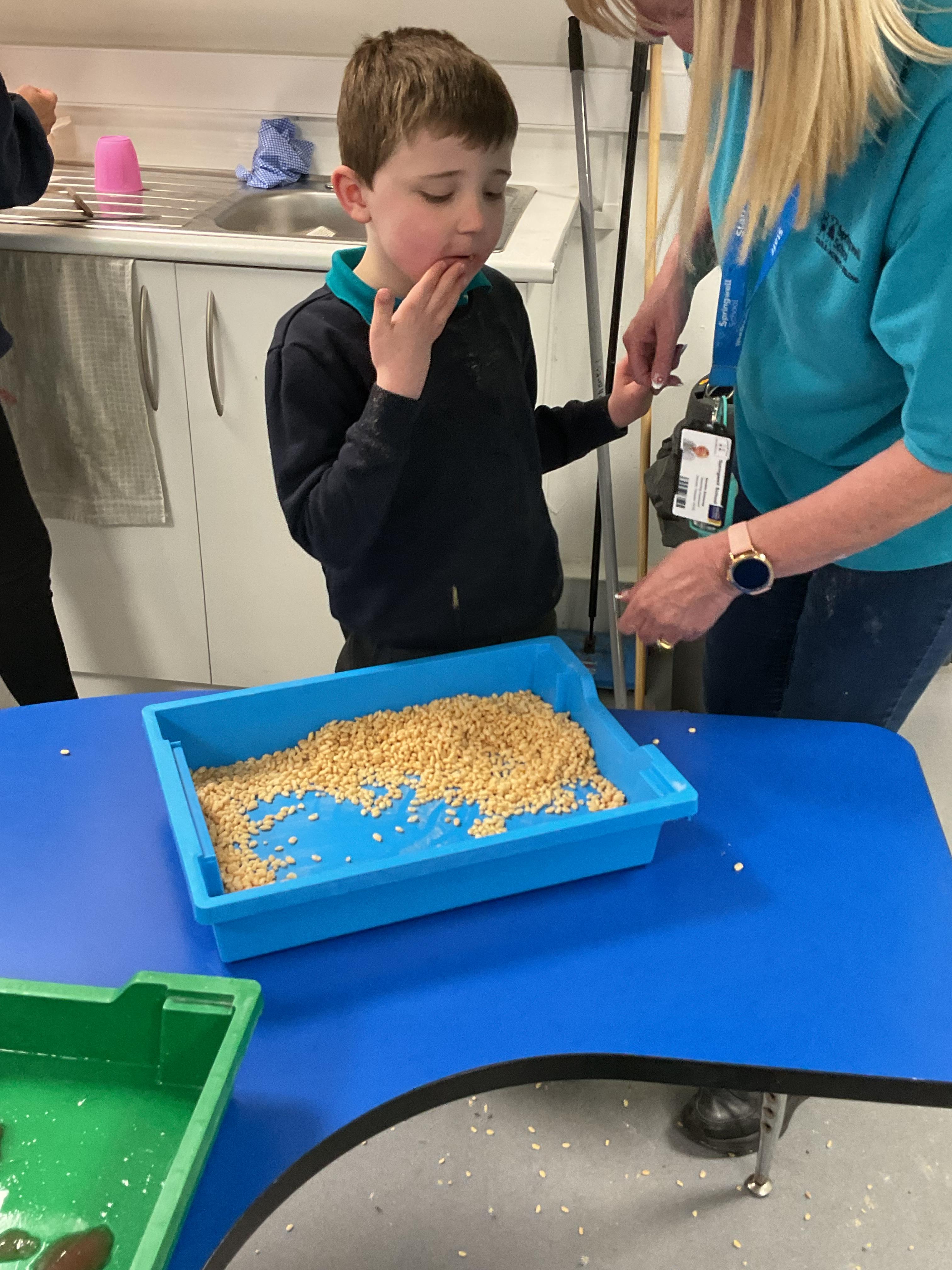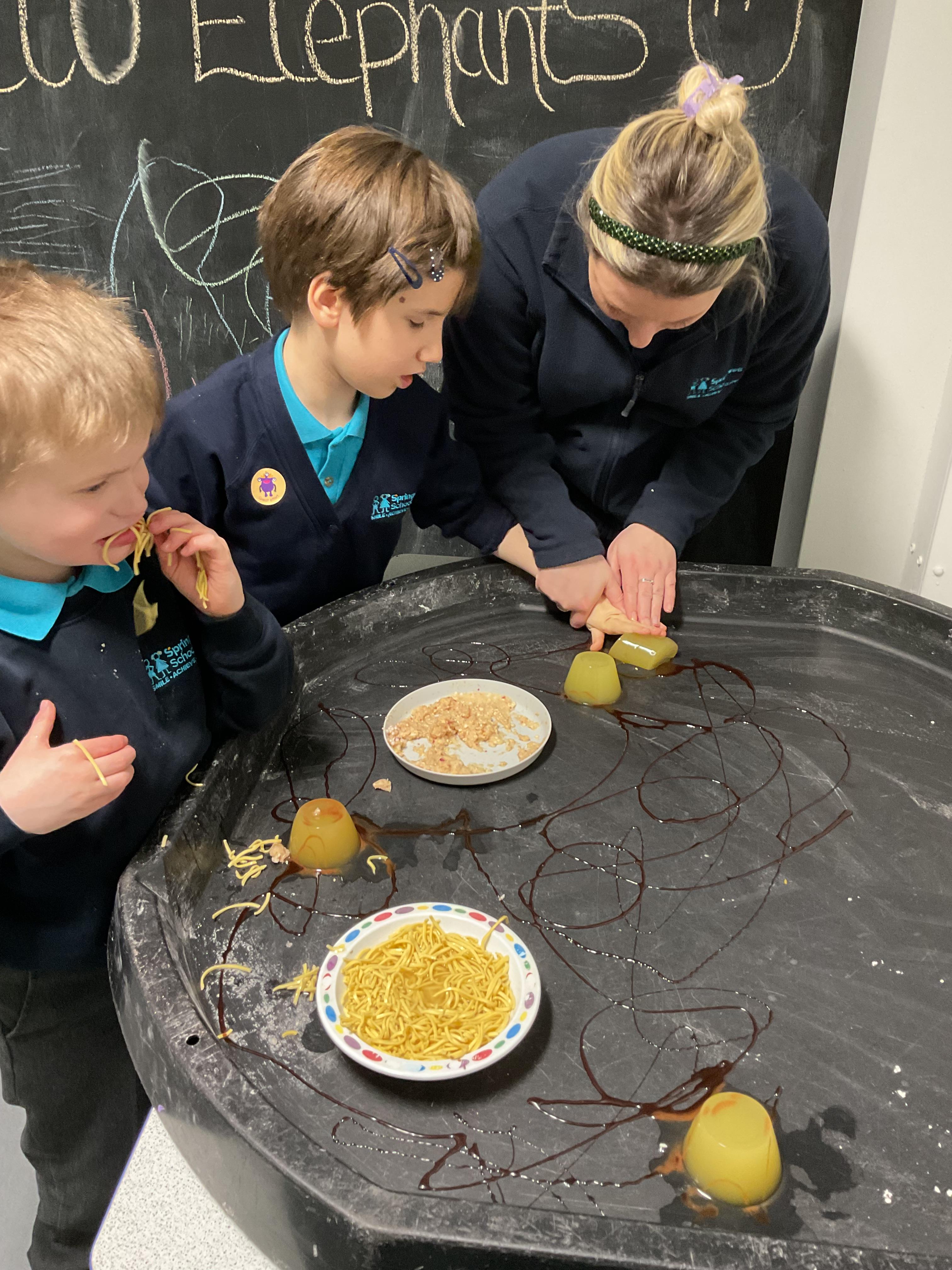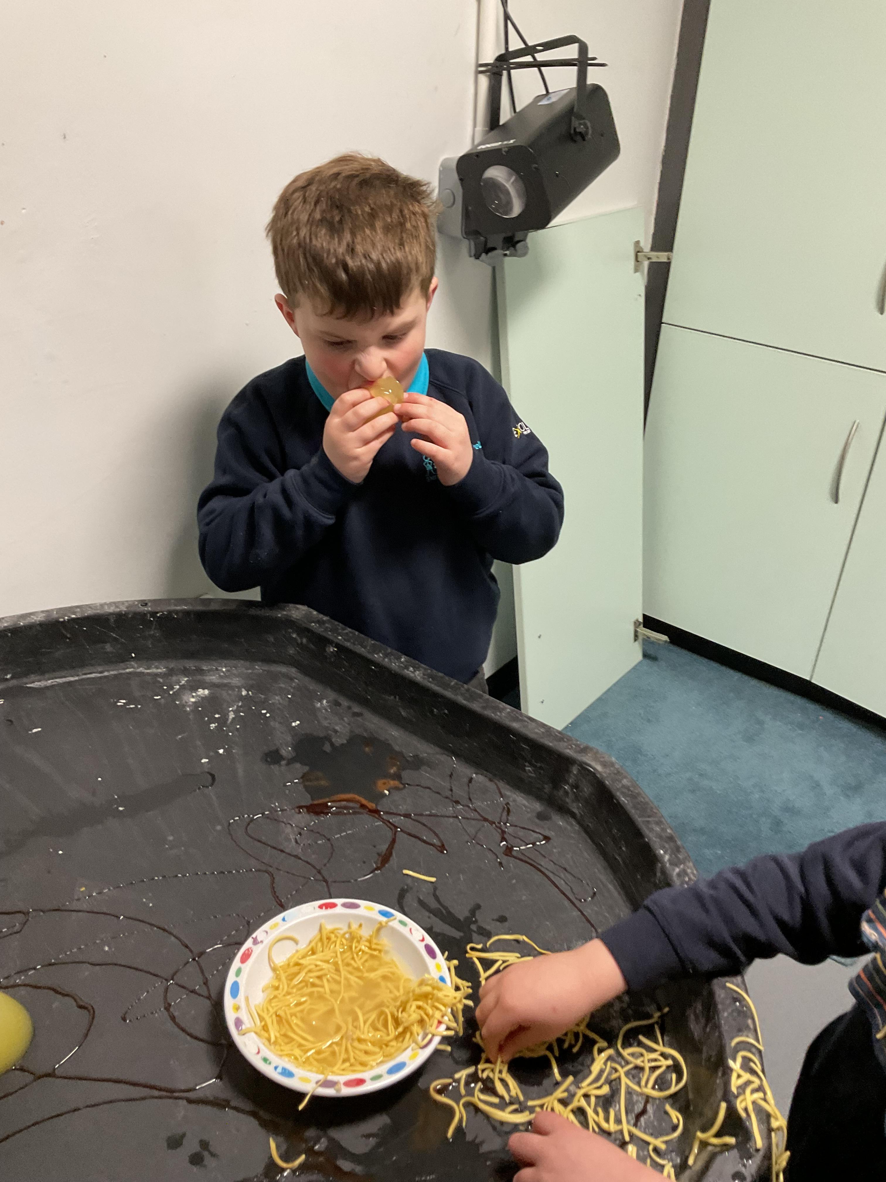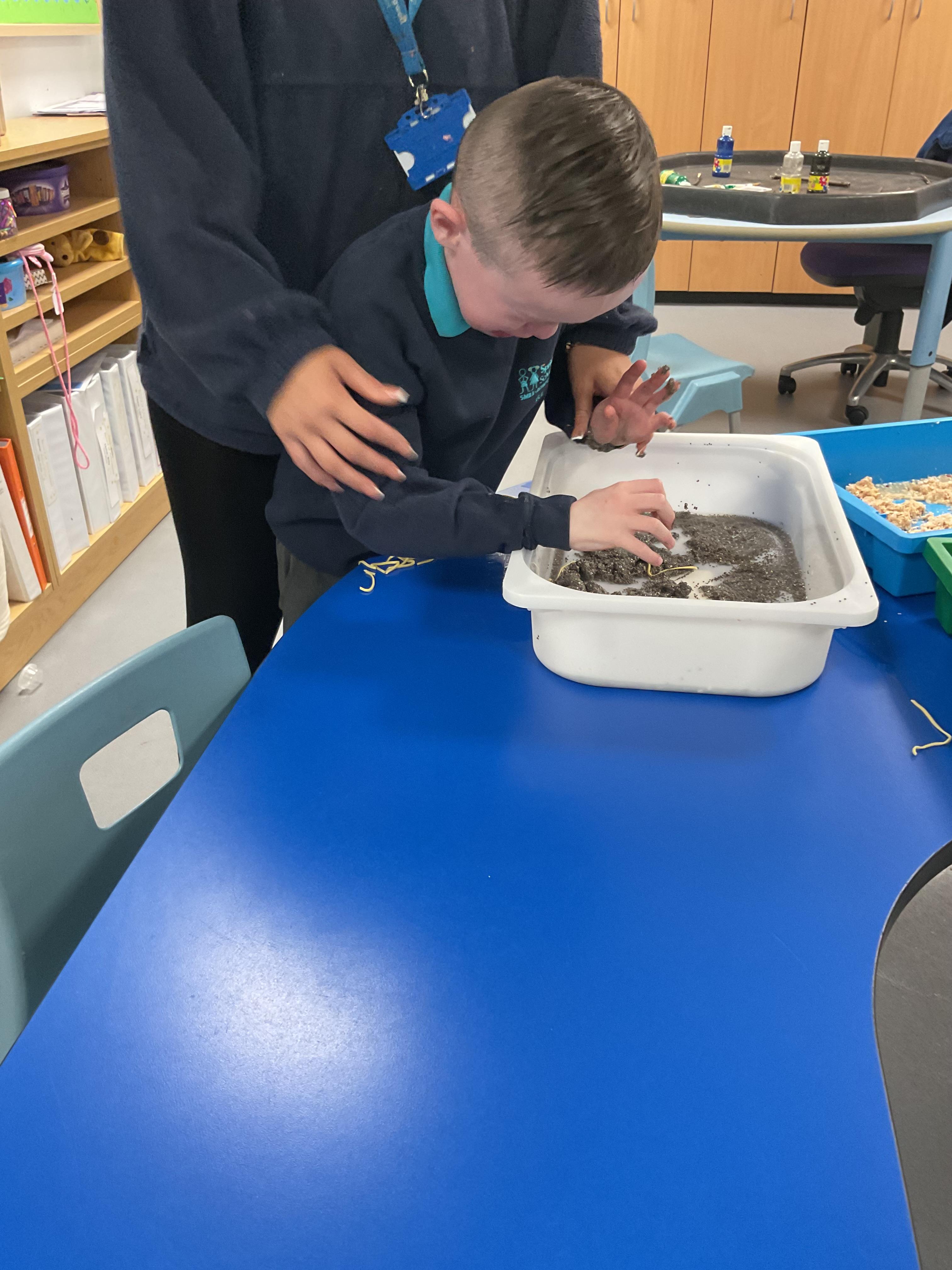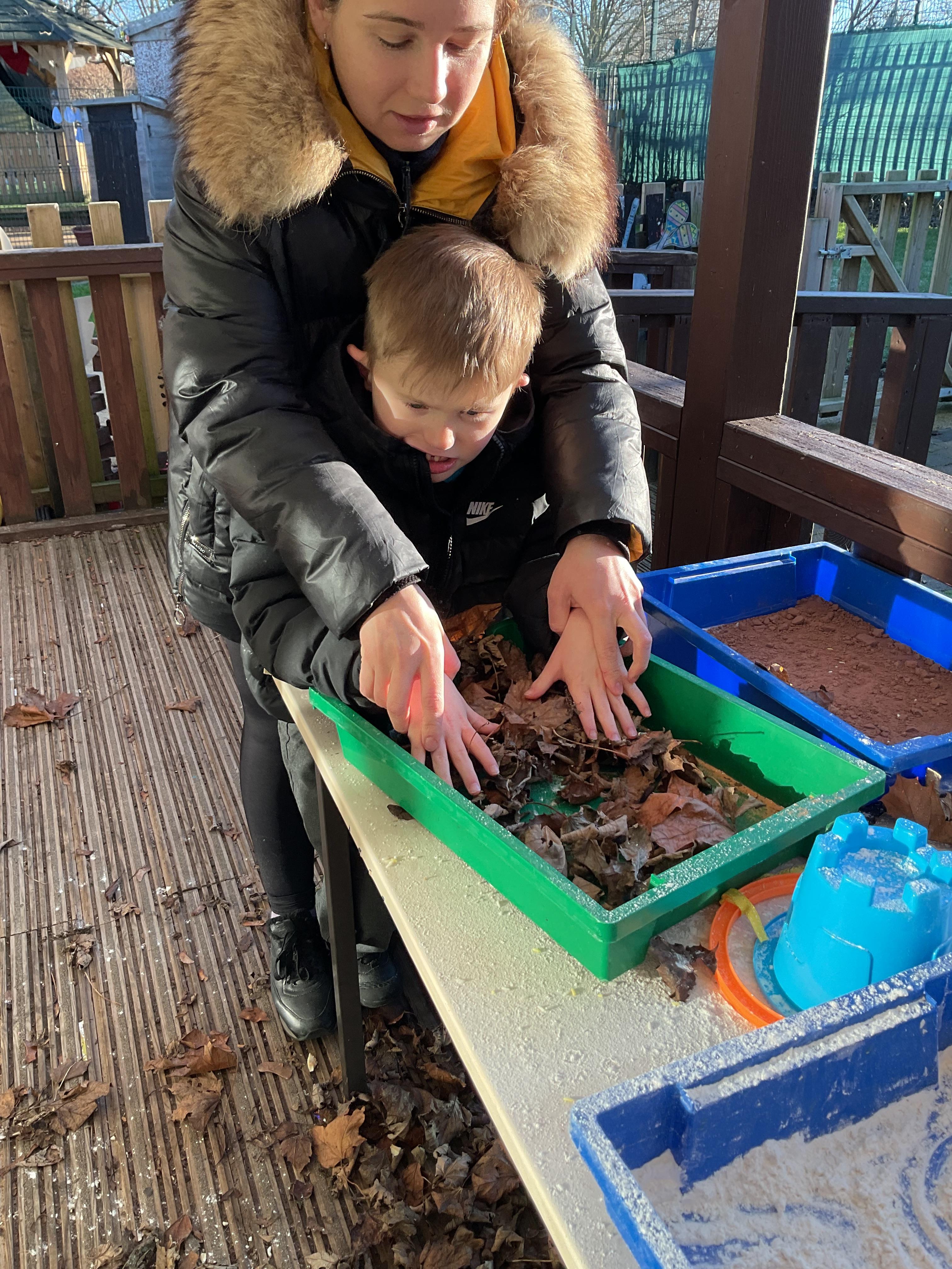 Over the last two weeks of term we enjoyed exploring our story of the week in an interactive way. All of the children enjoyed using their senses as they explored the 'Gruffalo Crumble' alongside a variety of textures objects and food sources.