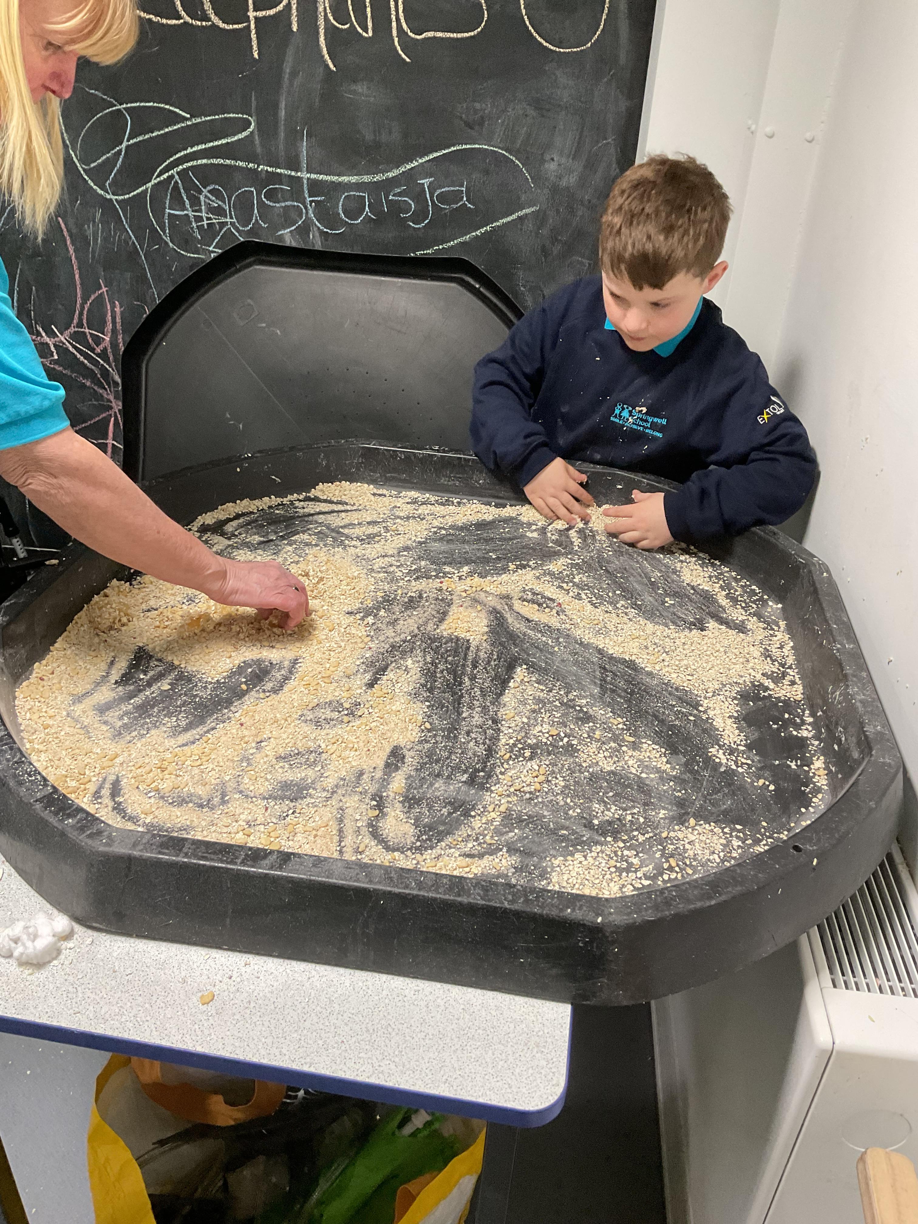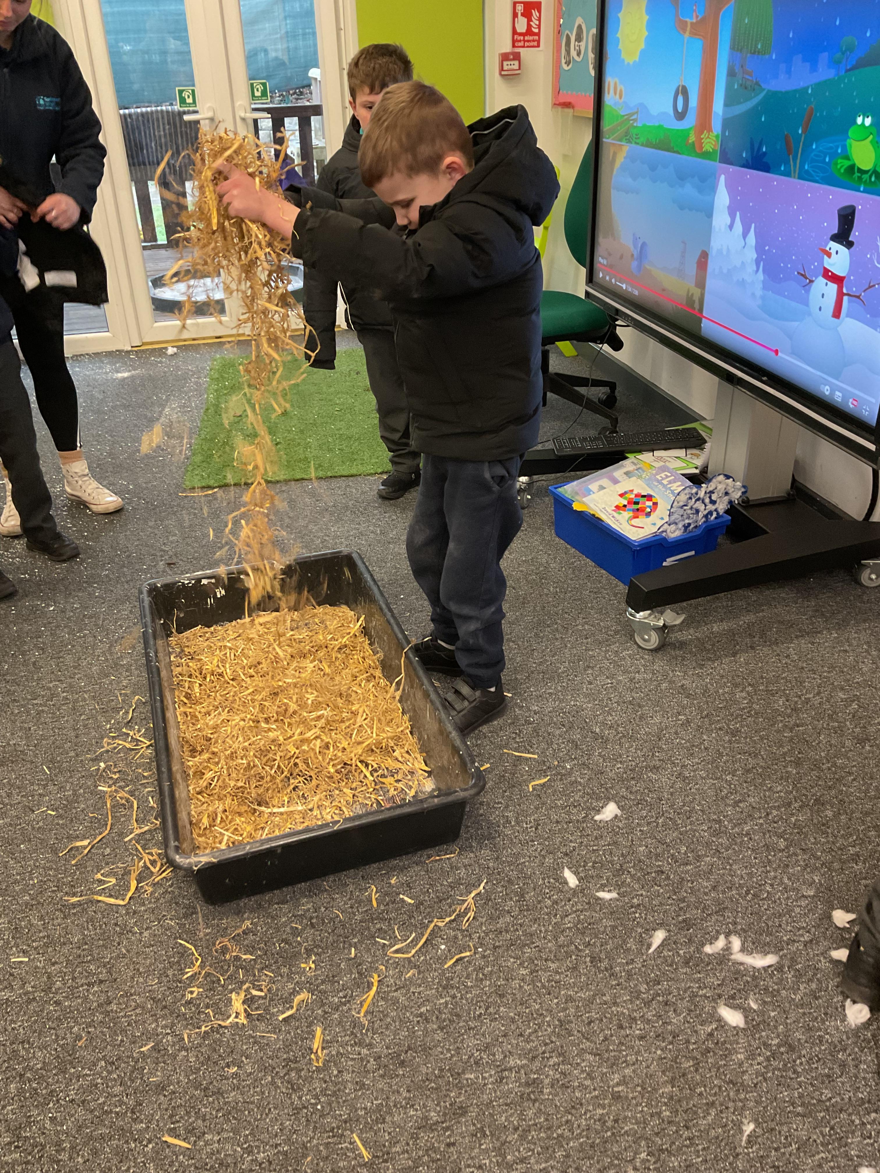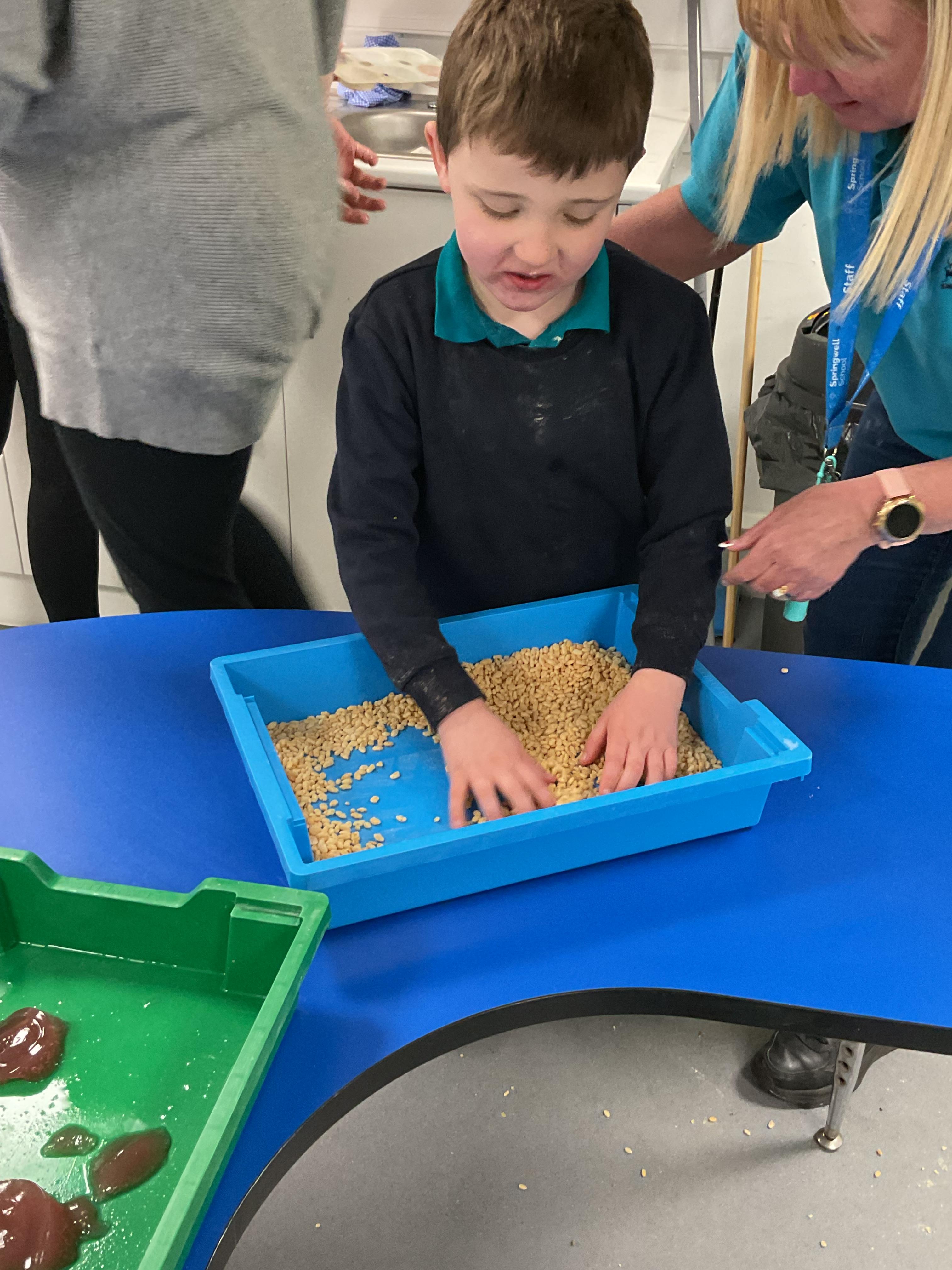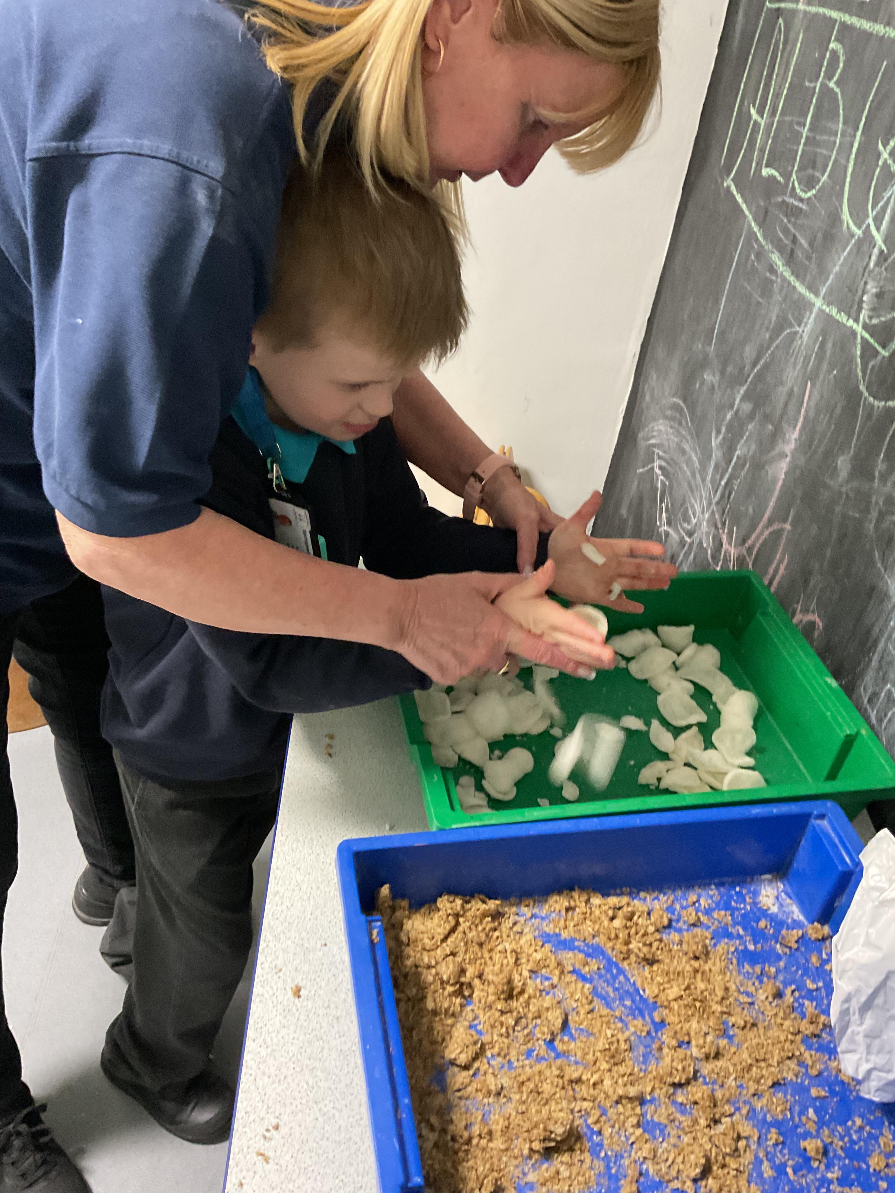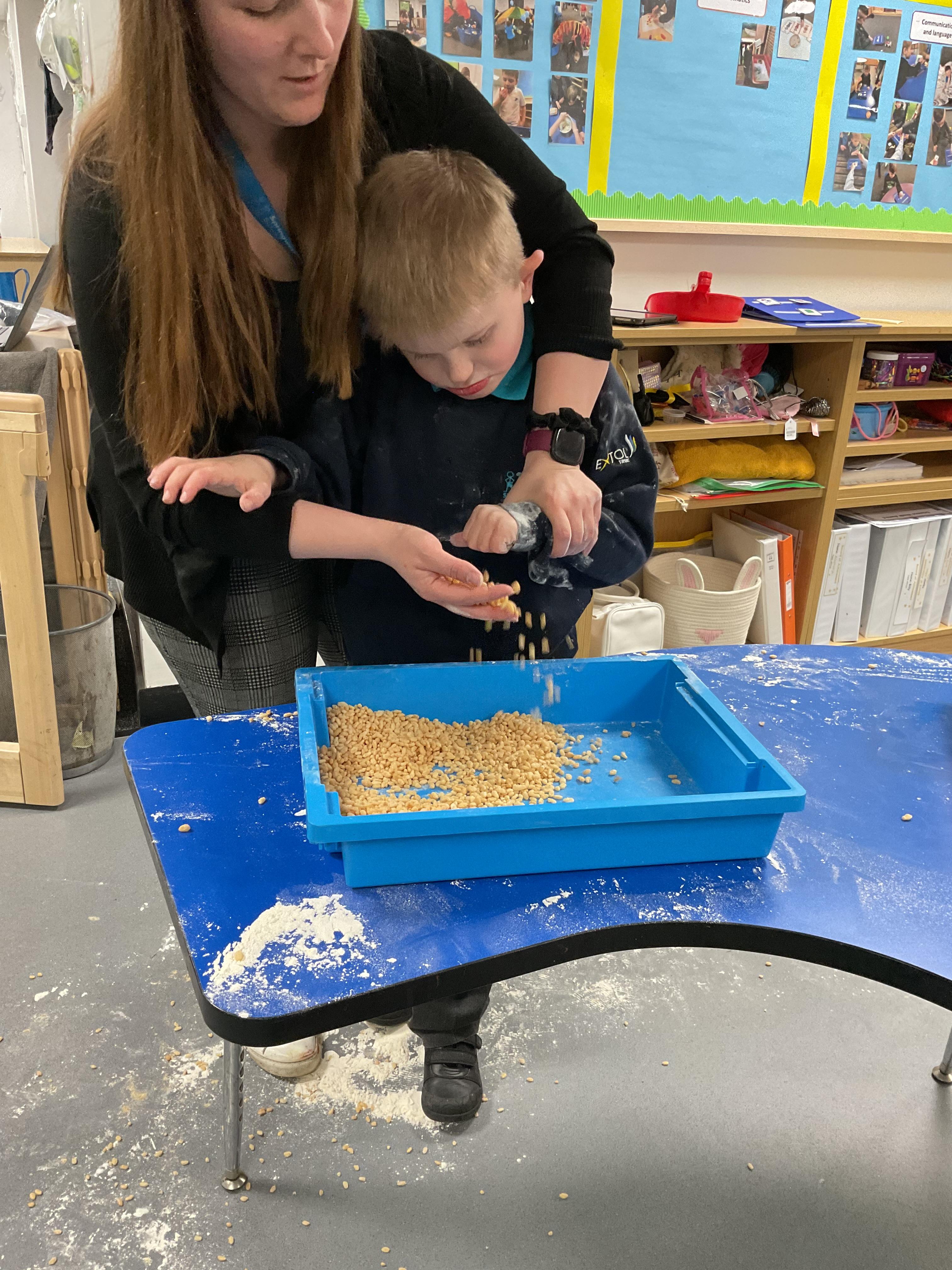 Over the last two weeks of term we enjoyed exploring our story of the week in an interactive way. All of the children enjoyed using their senses as they explored the 'Gruffalo Crumble' alongside a variety of textures objects and food sources.