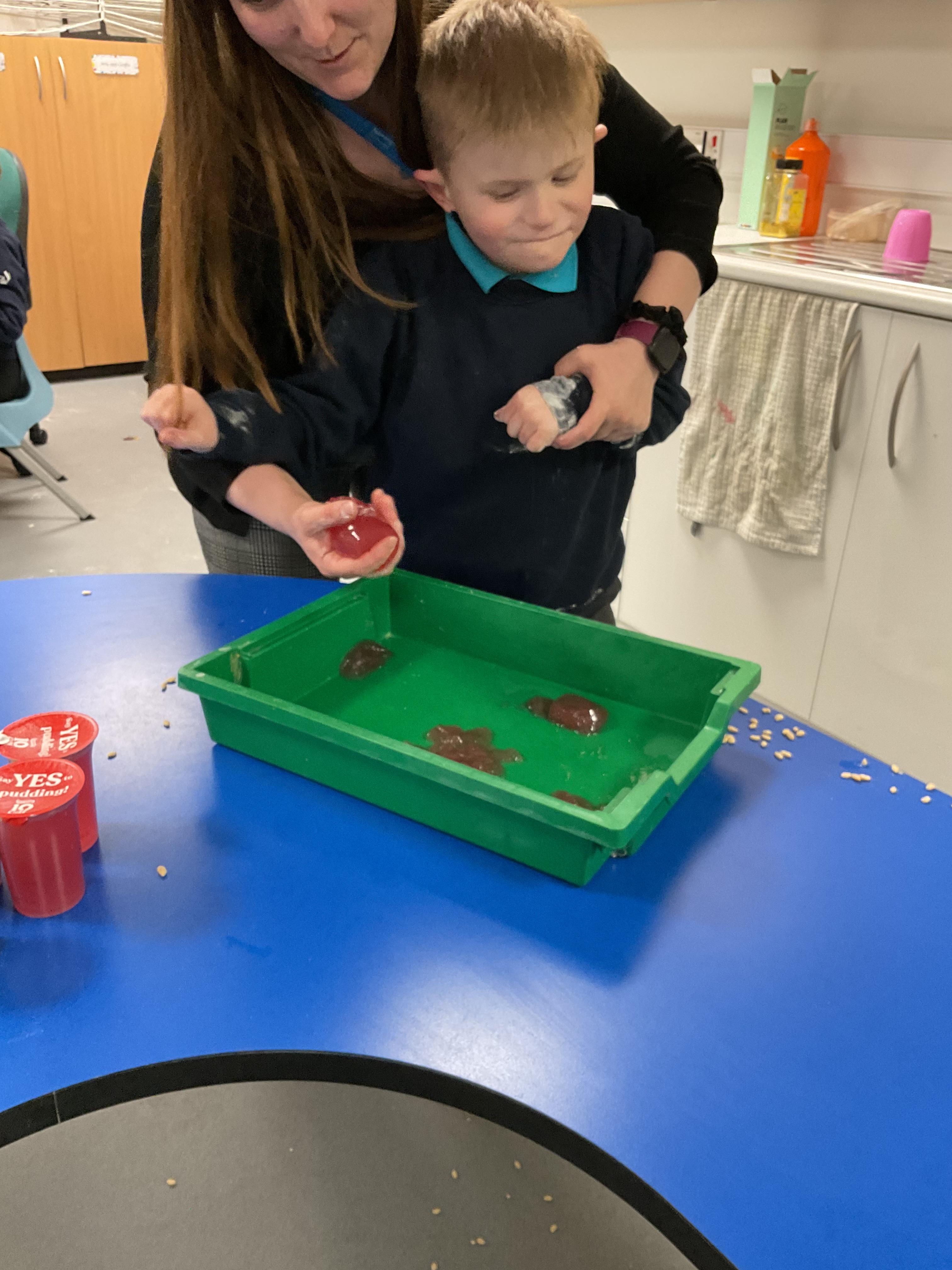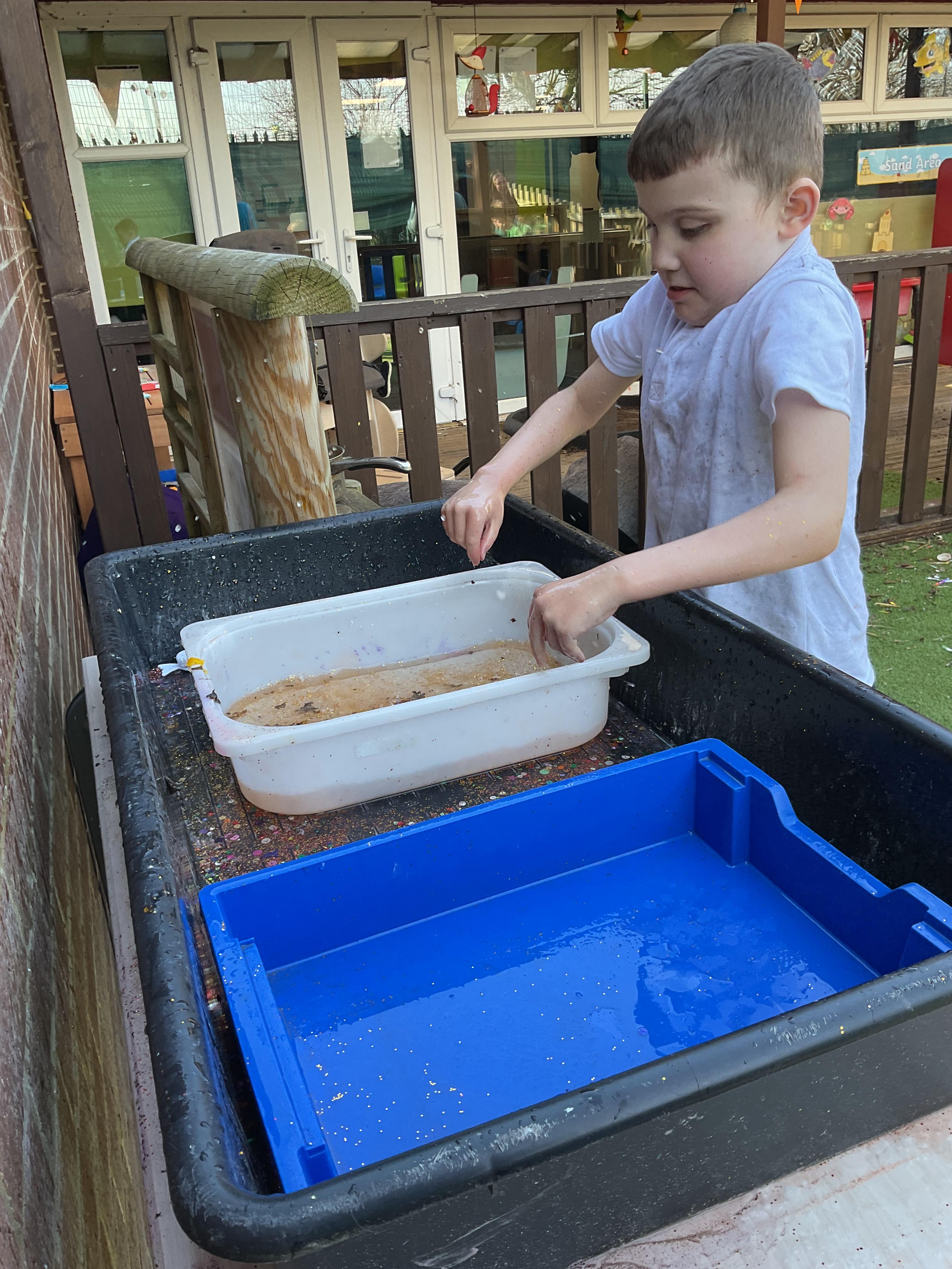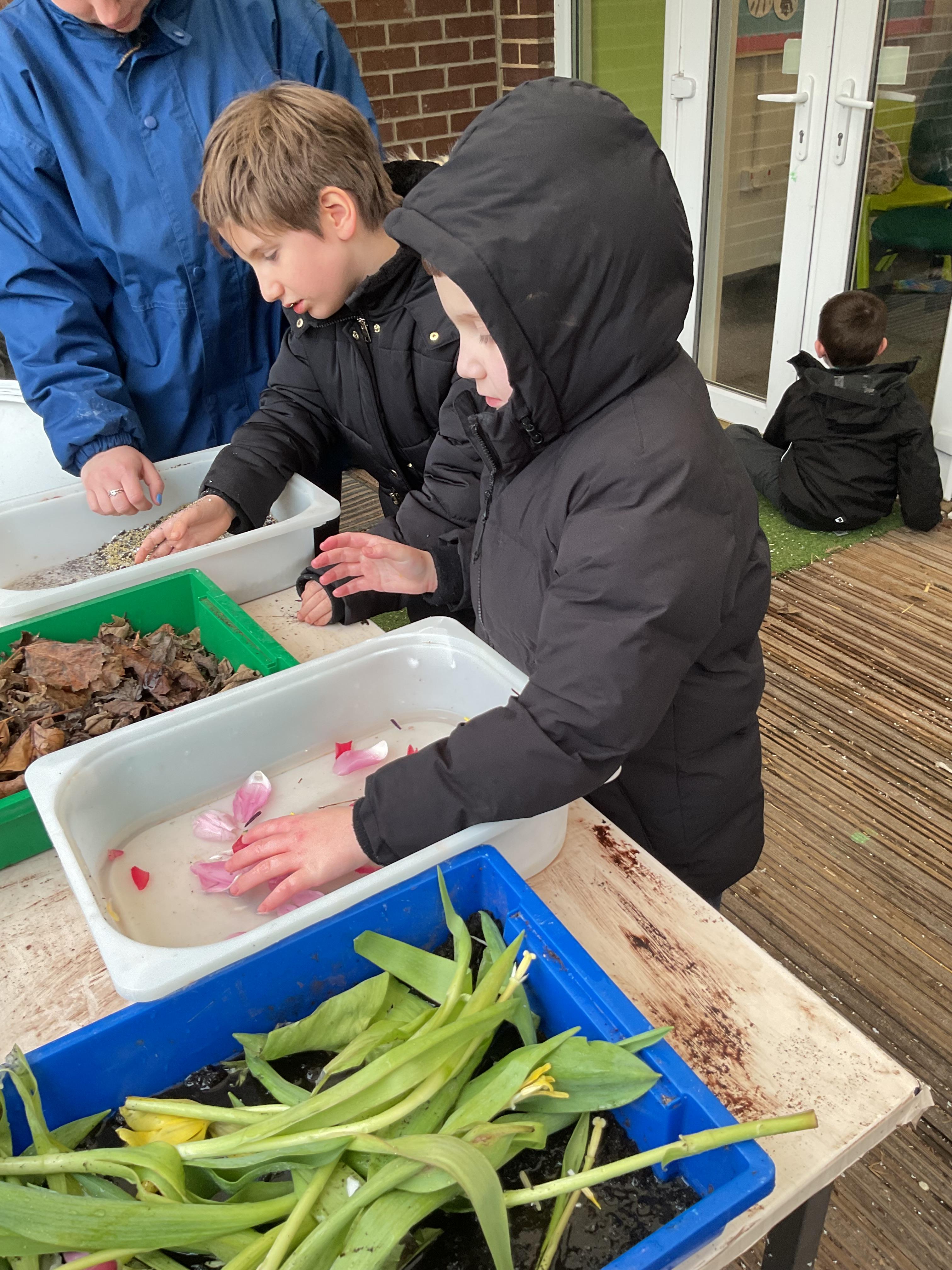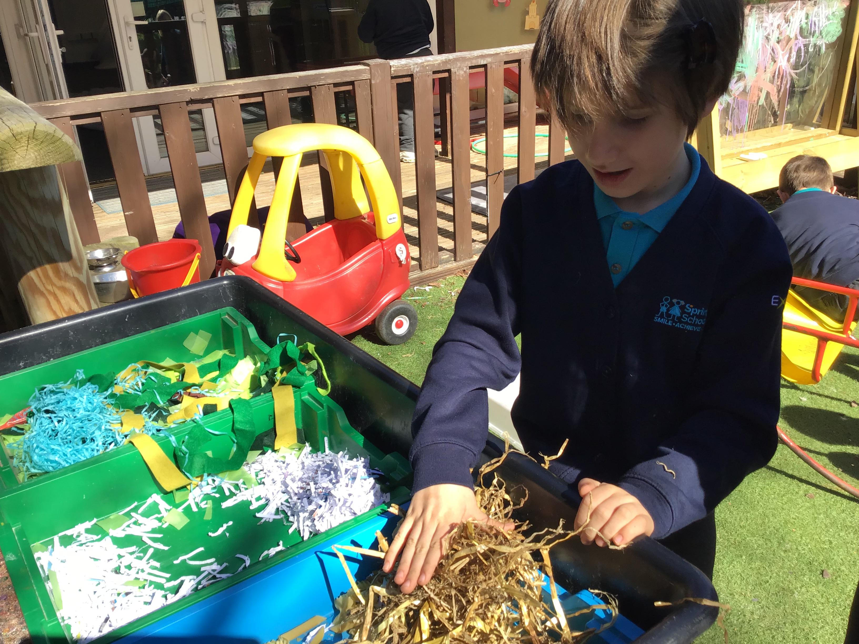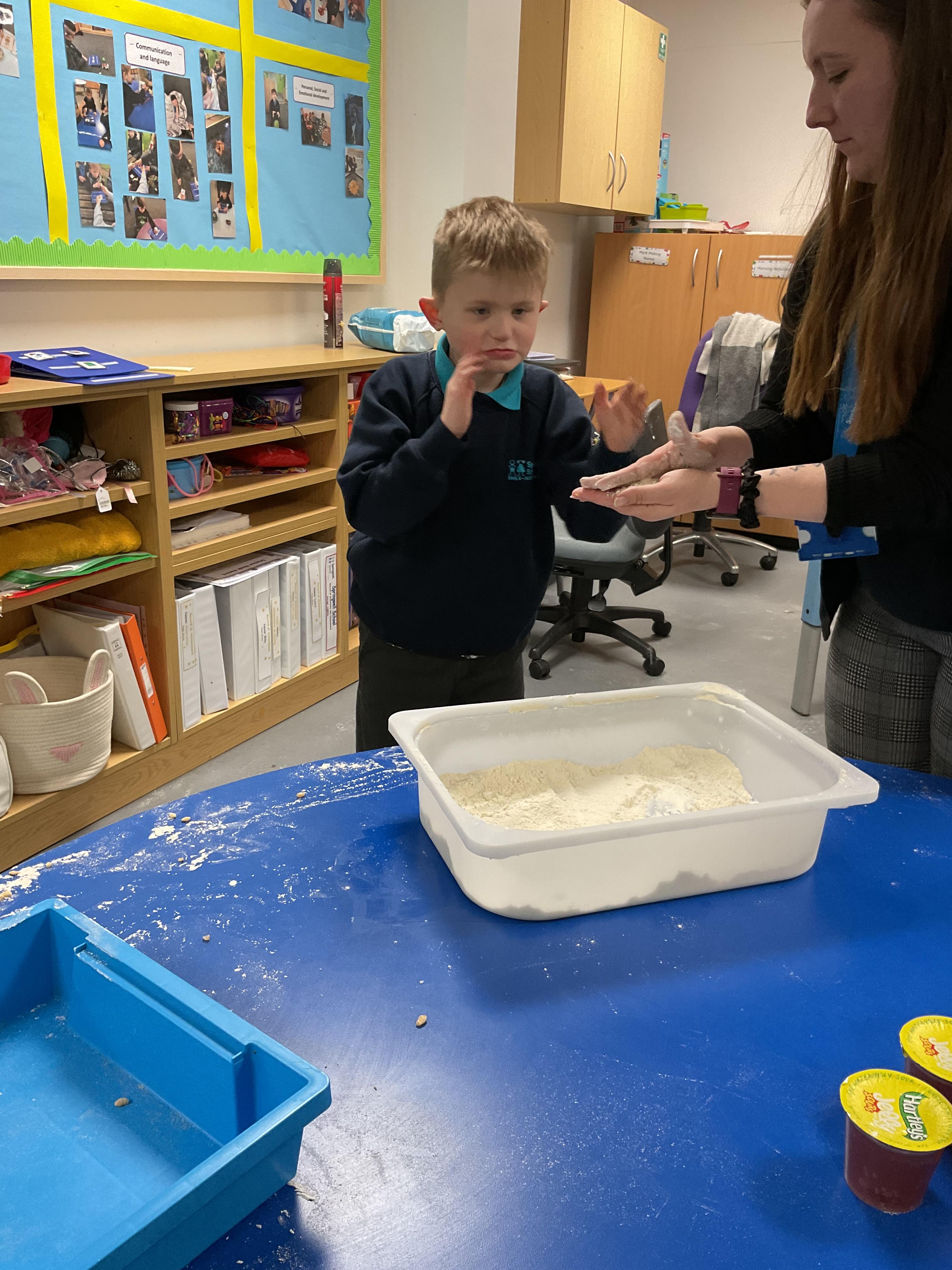 Over the last two weeks of term we enjoyed exploring our story of the week in an interactive way. All of the children enjoyed using their senses as they explored the 'Gruffalo Crumble' alongside a variety of textures objects and food sources.