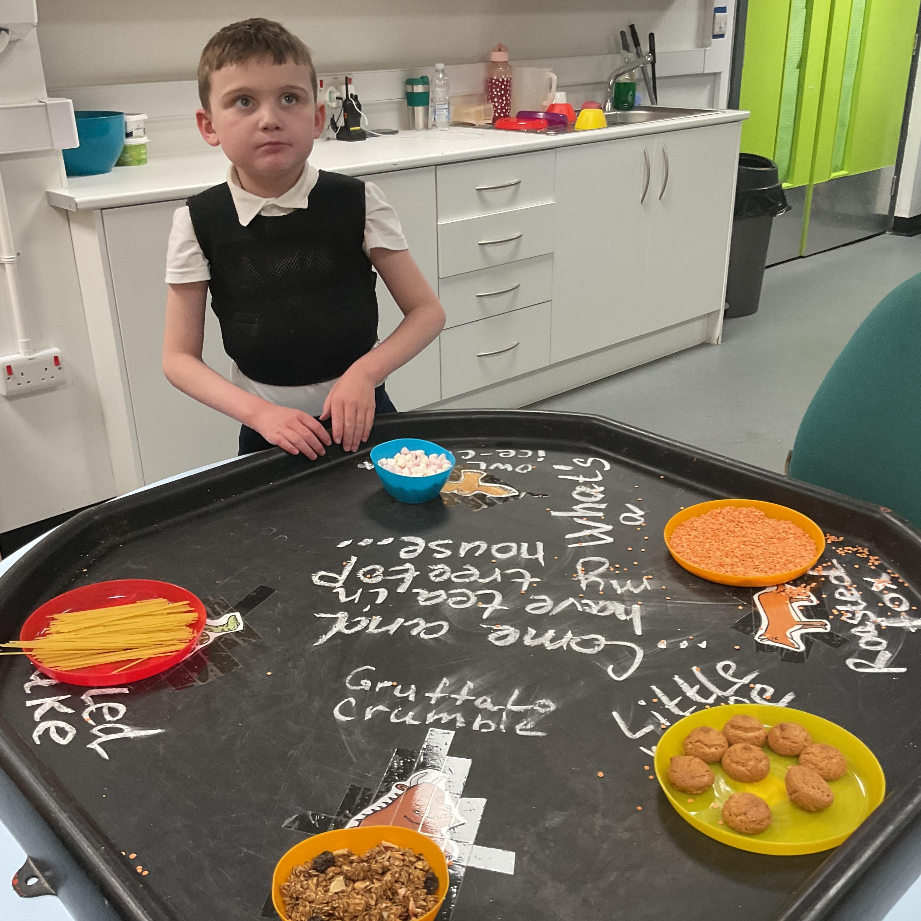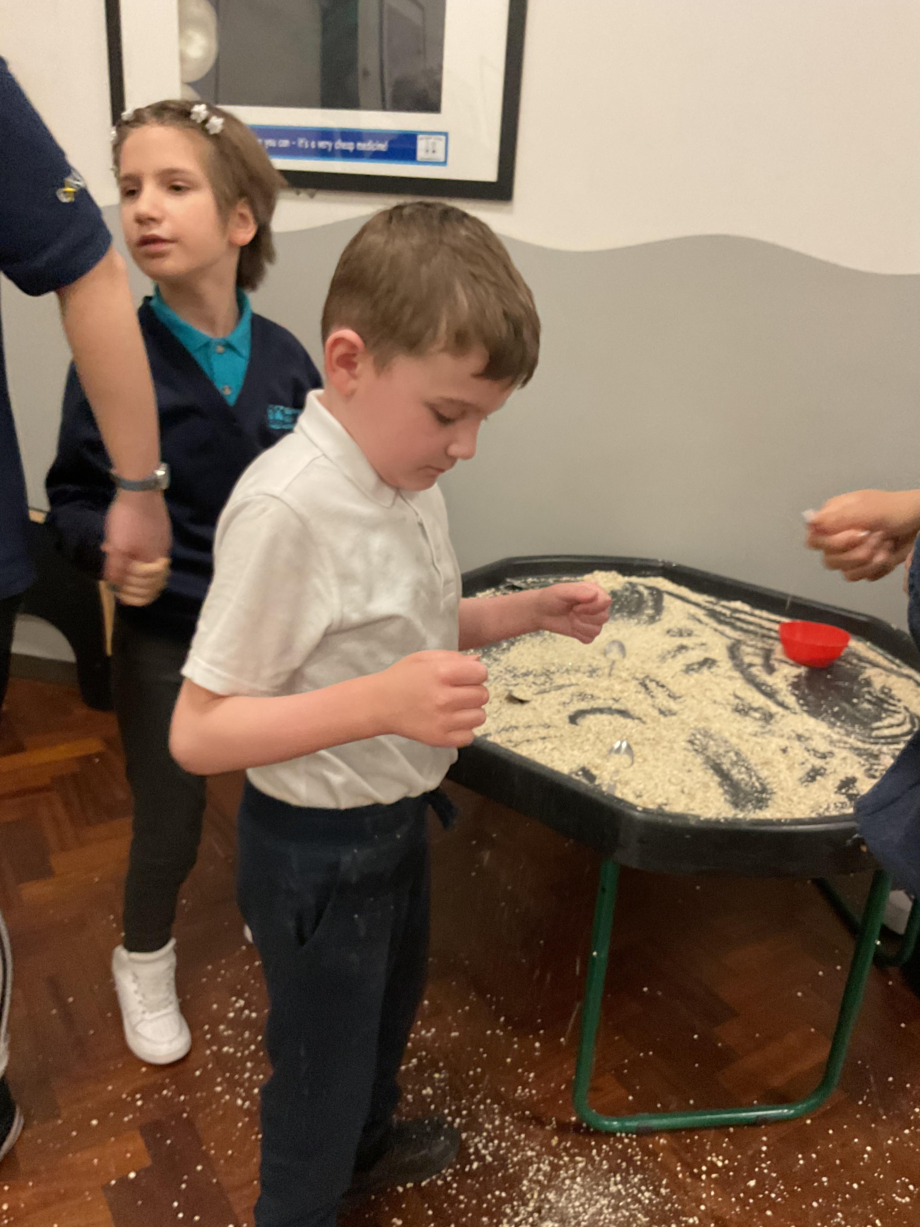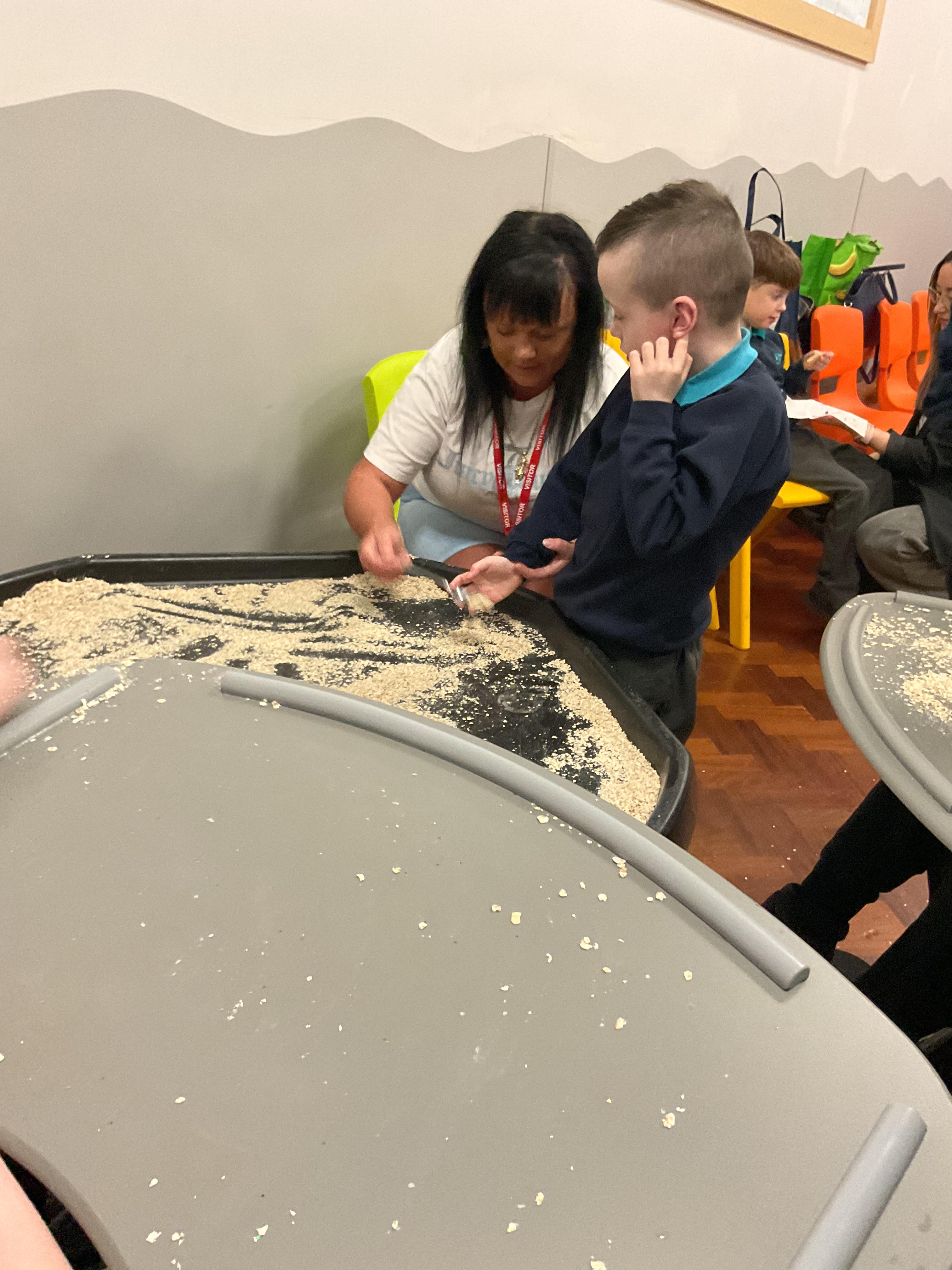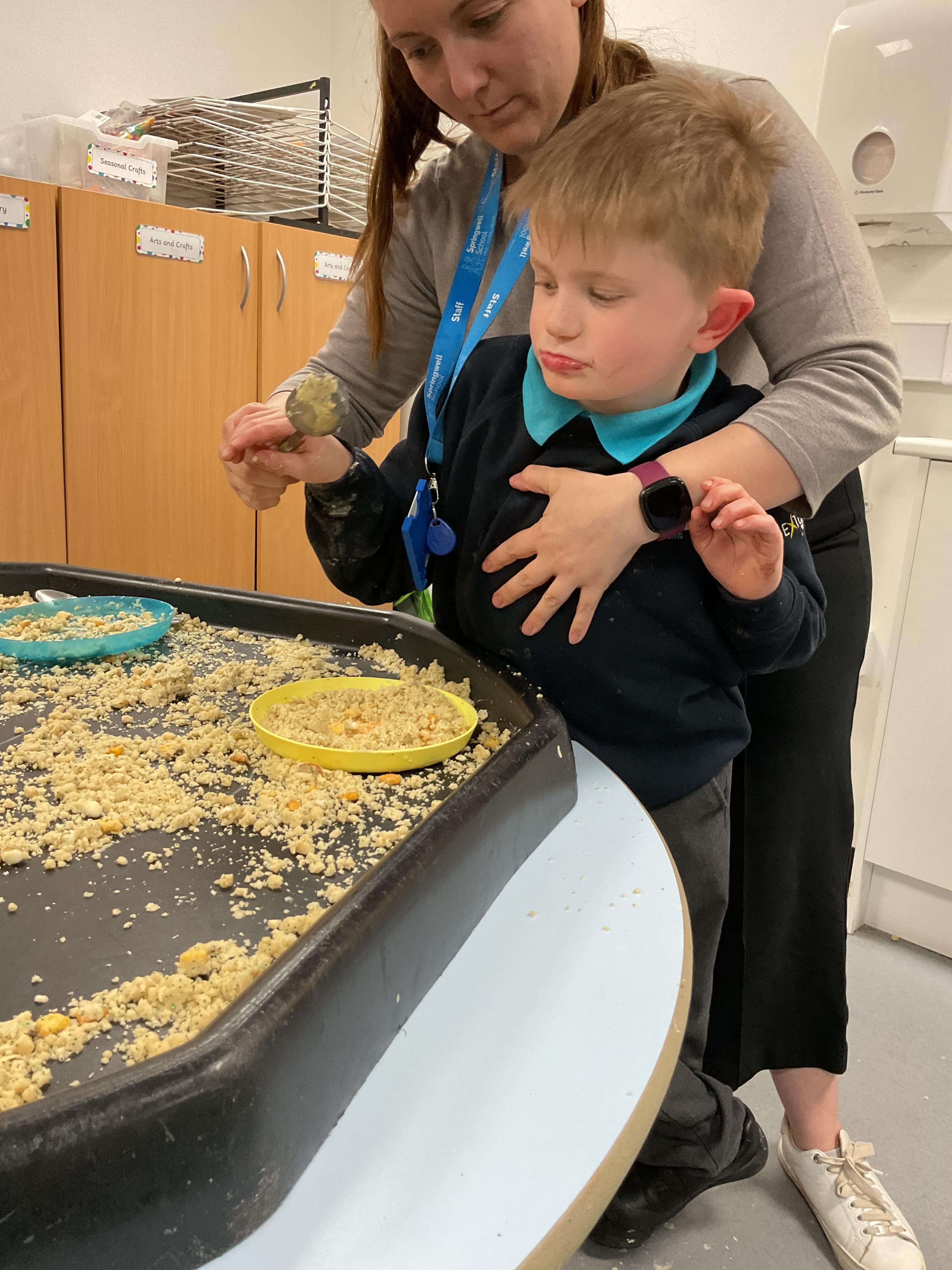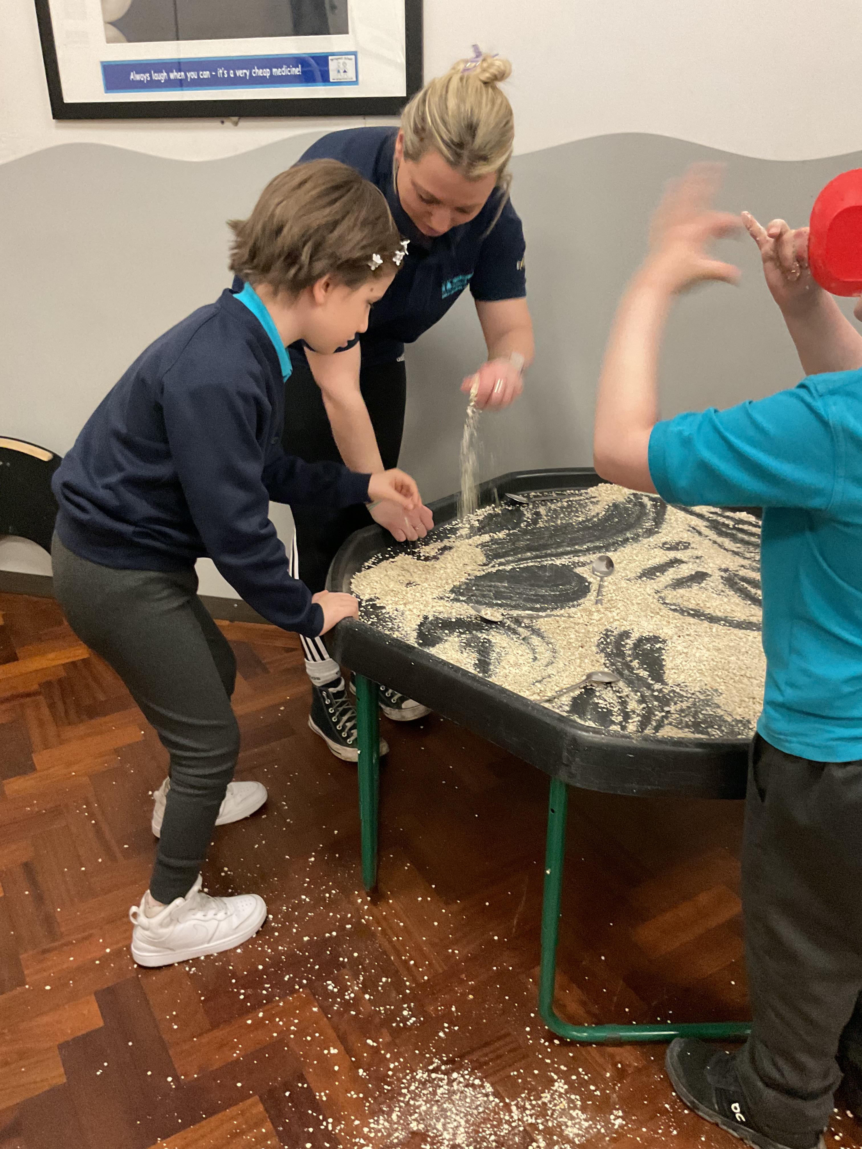 Over the last two weeks of term we enjoyed exploring our story of the week in an interactive way. All of the children enjoyed using their senses as they explored the 'Gruffalo Crumble' alongside a variety of textures objects and food sources.