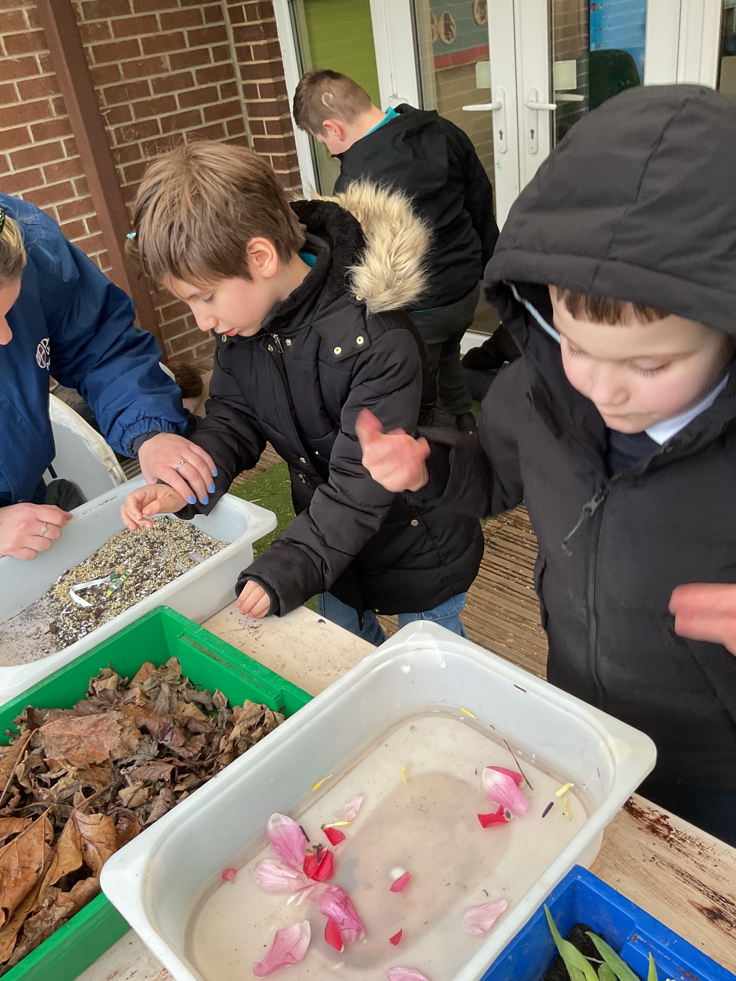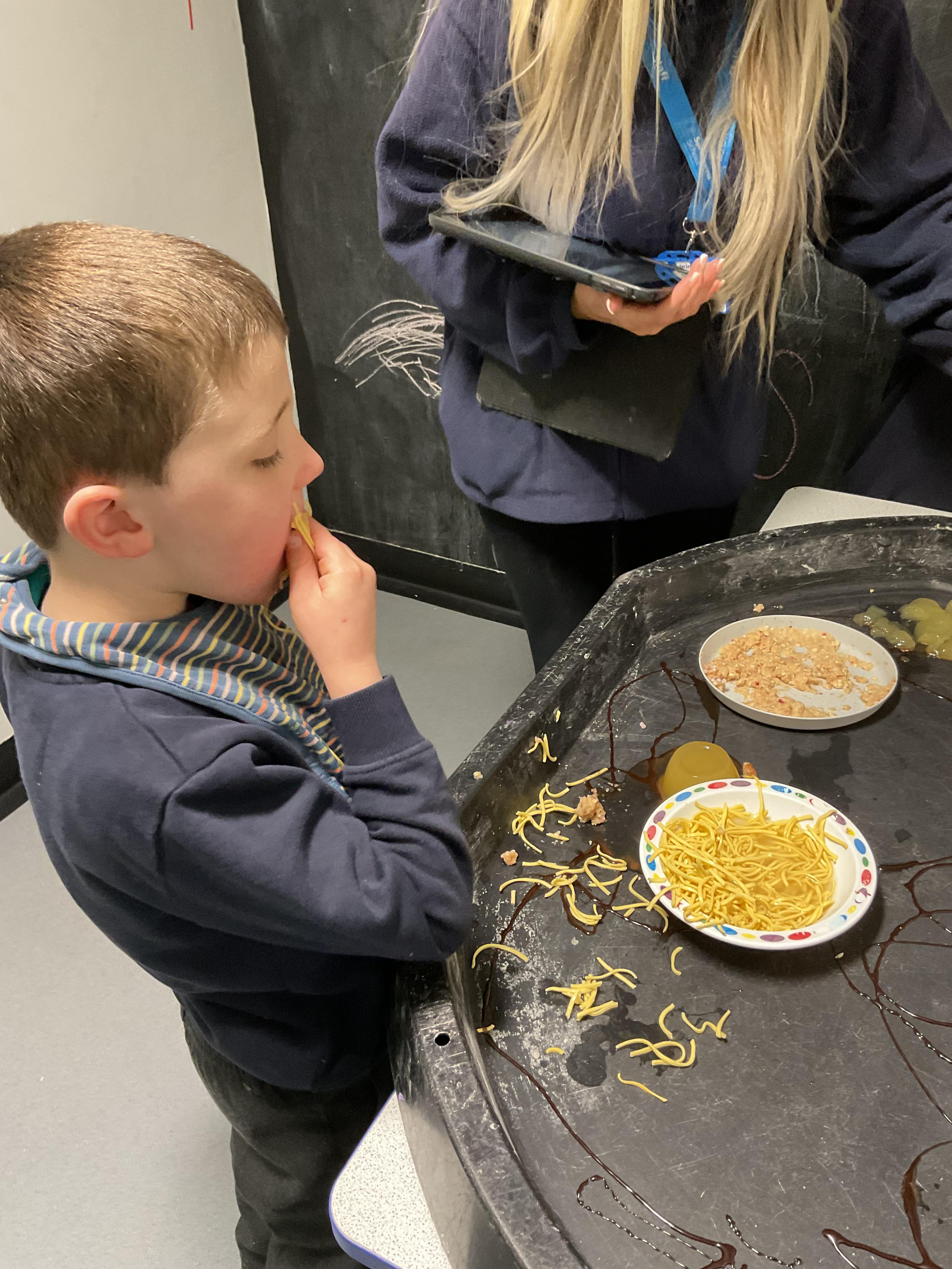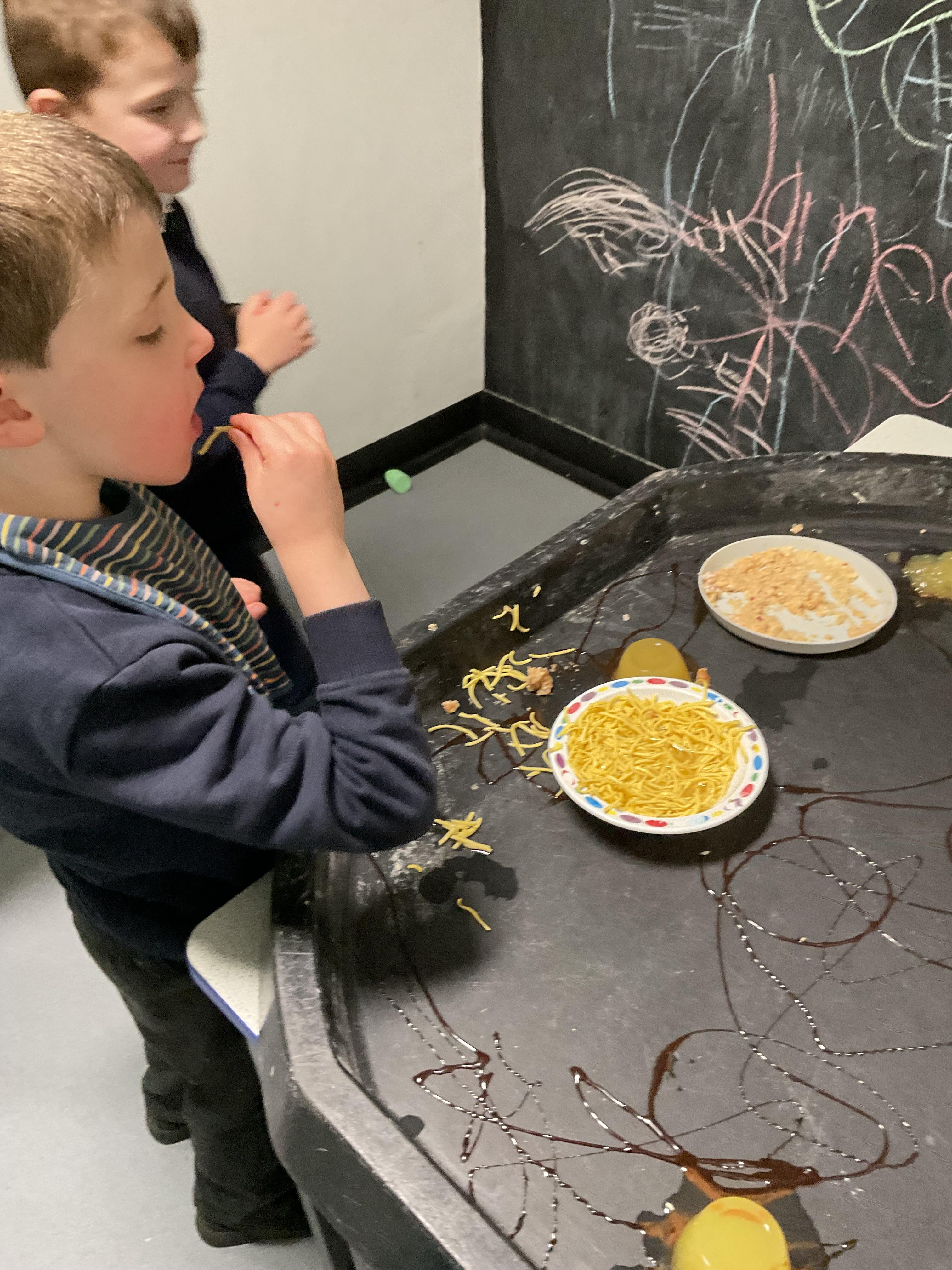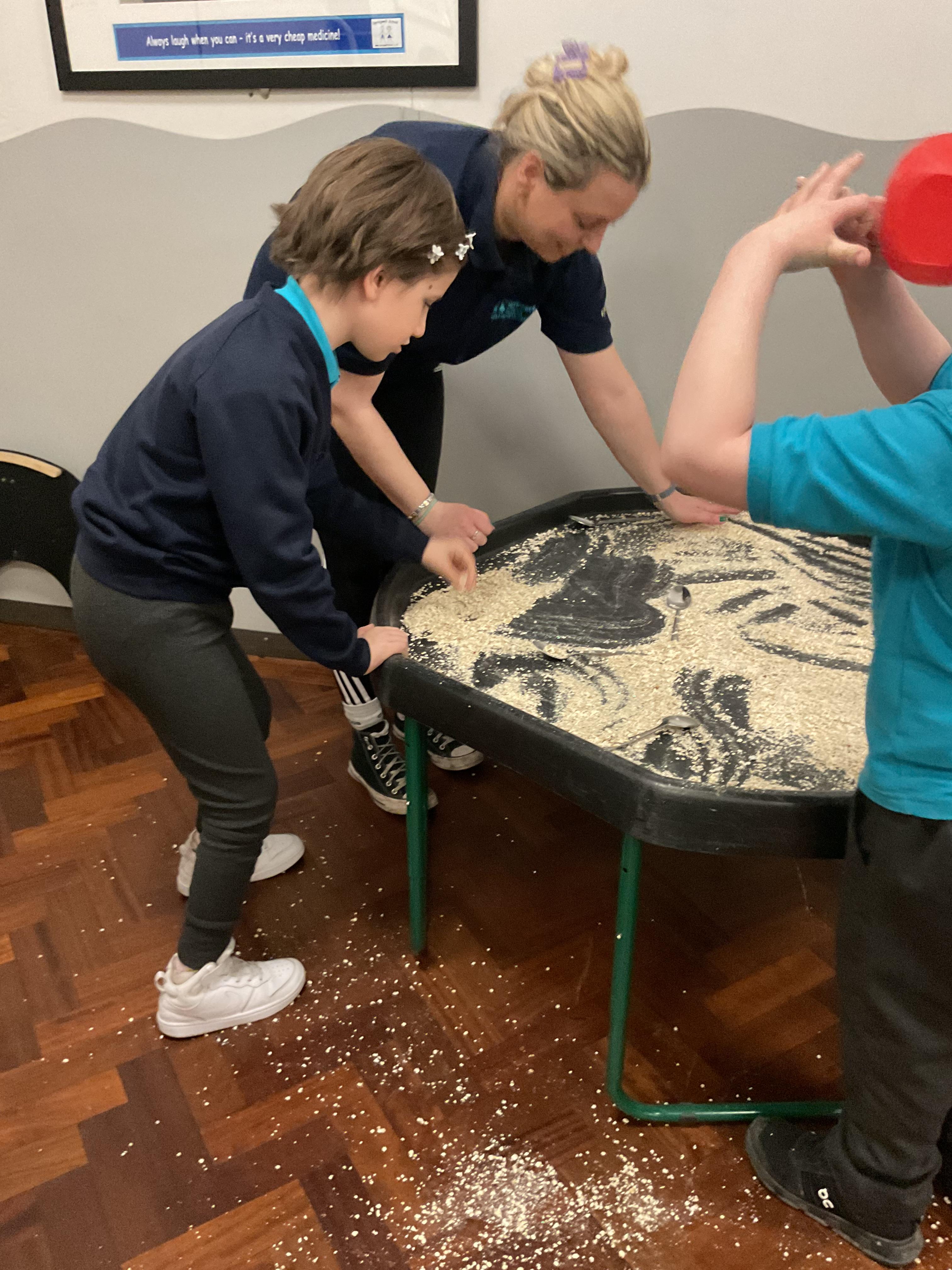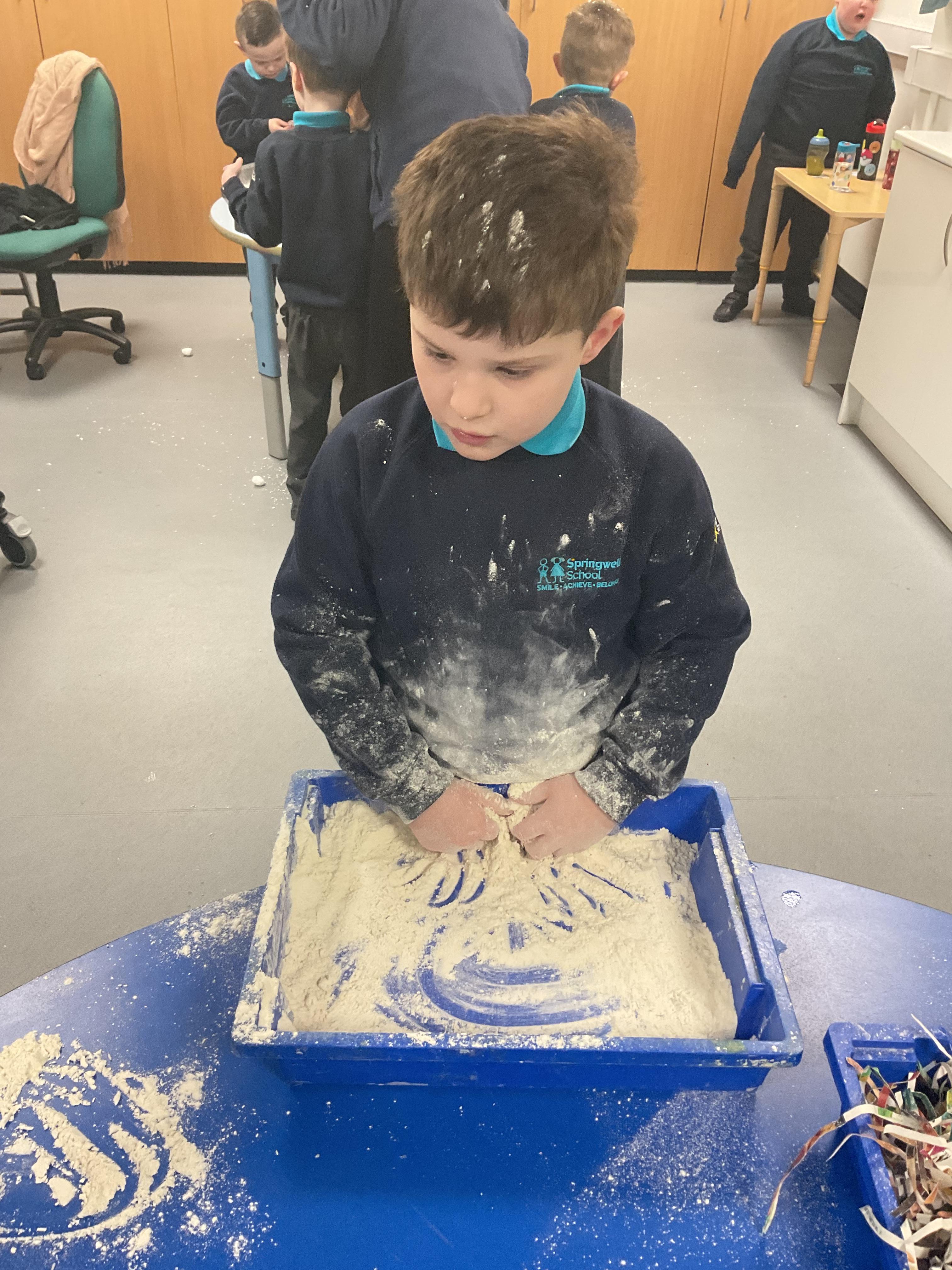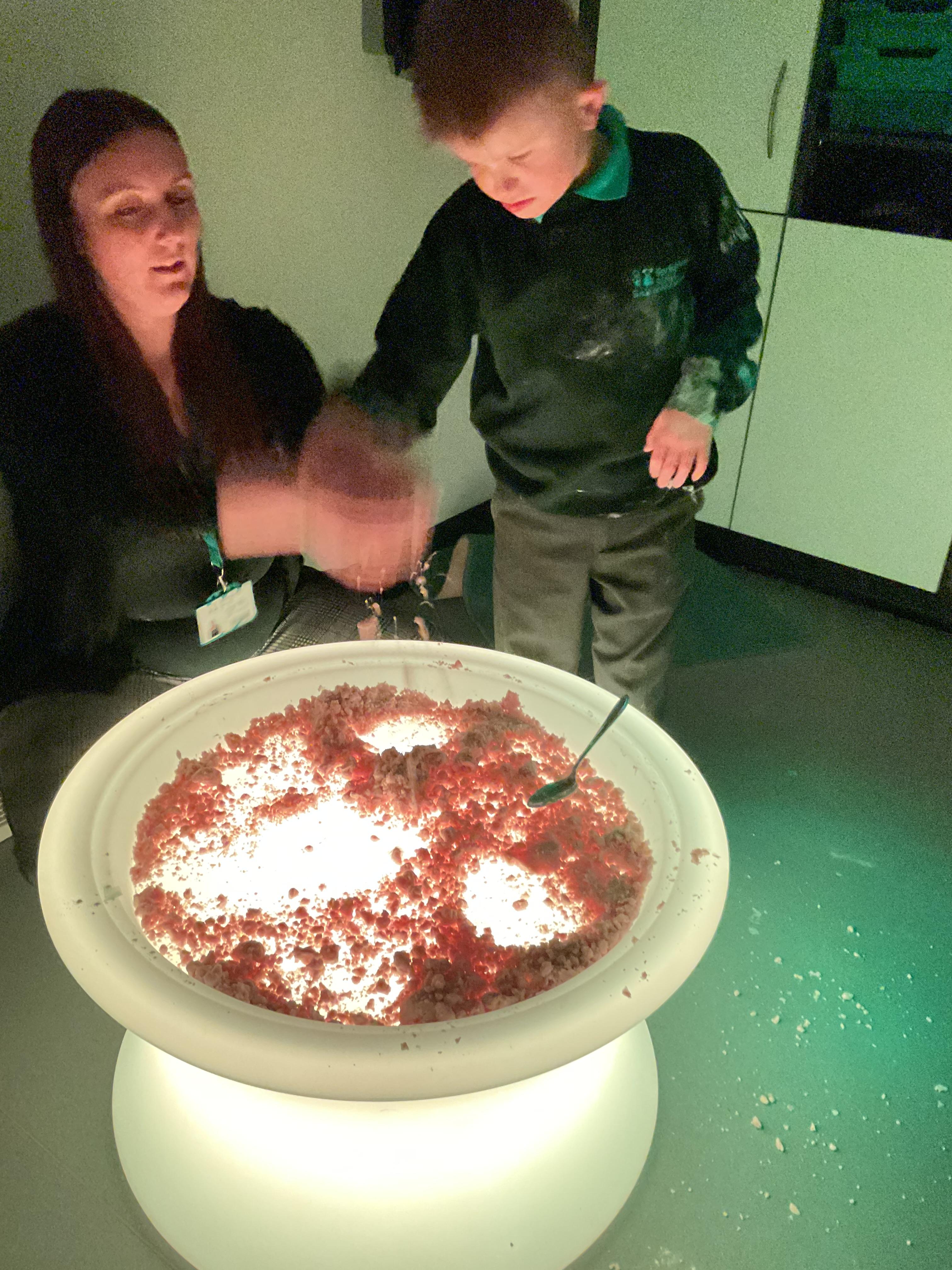 Over the last two weeks of term we enjoyed exploring our story of the week in an interactive way. All of the children enjoyed using their senses as they explored the 'Gruffalo Crumble' alongside a variety of textures objects and food sources.