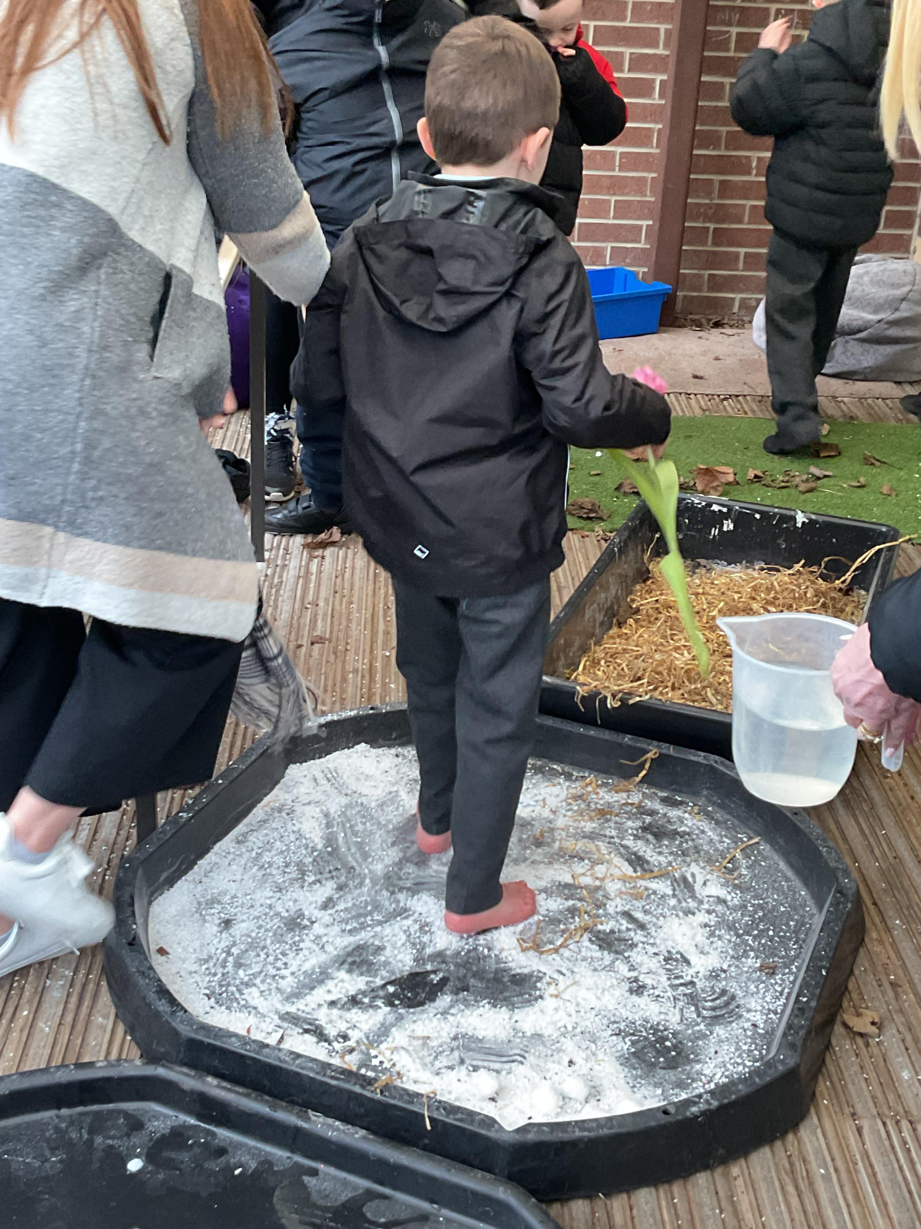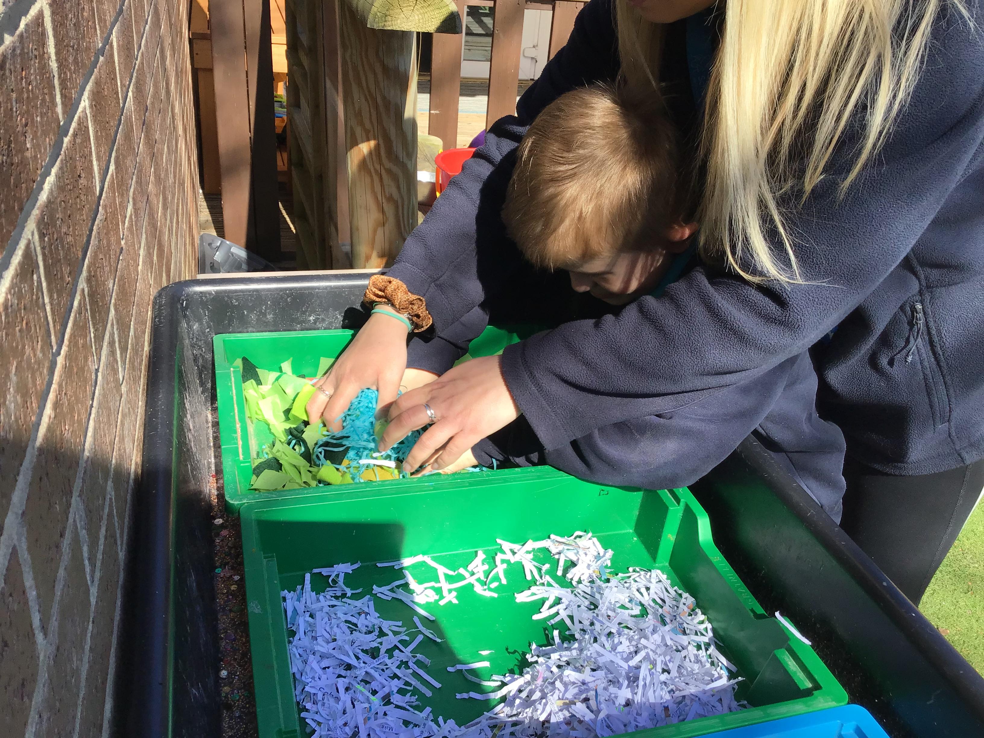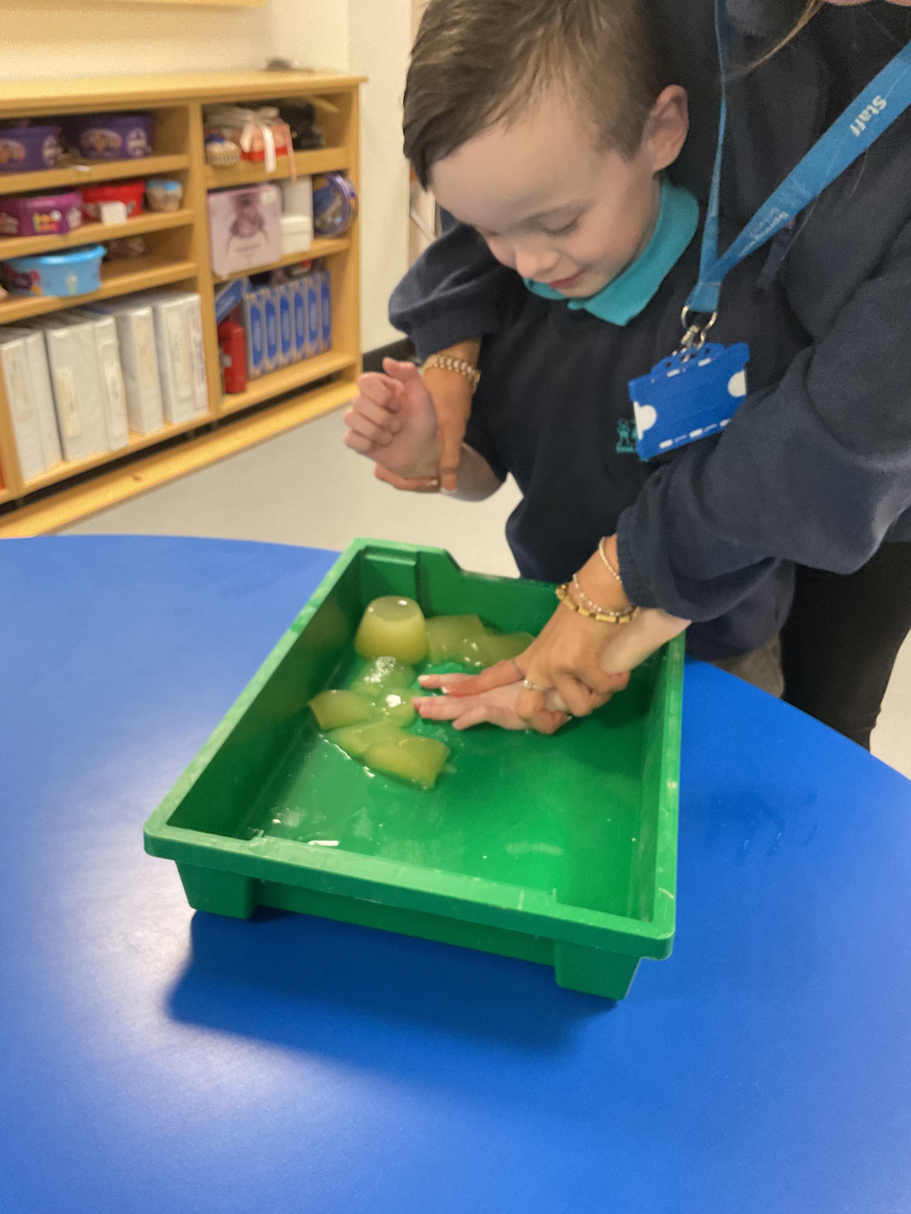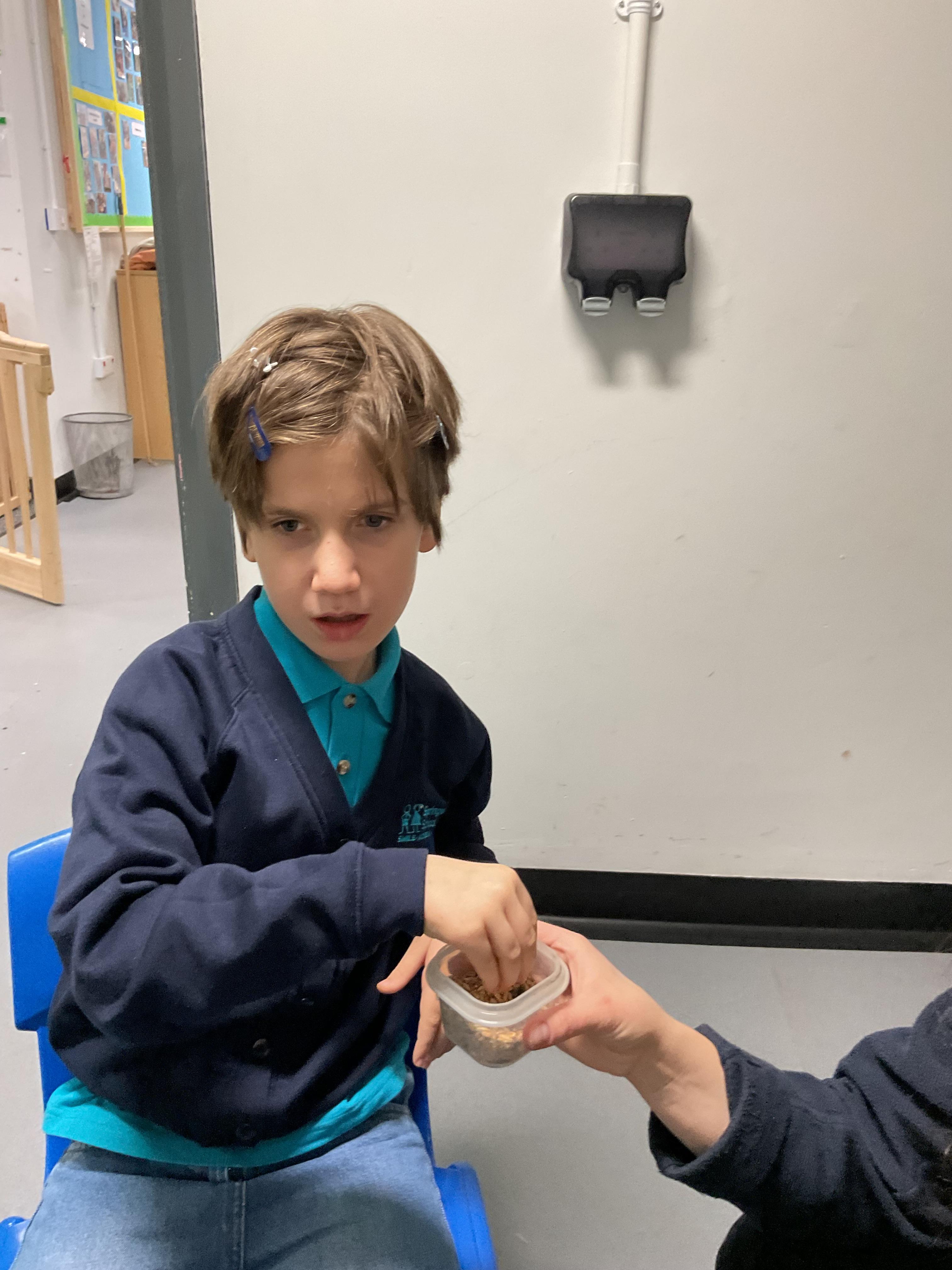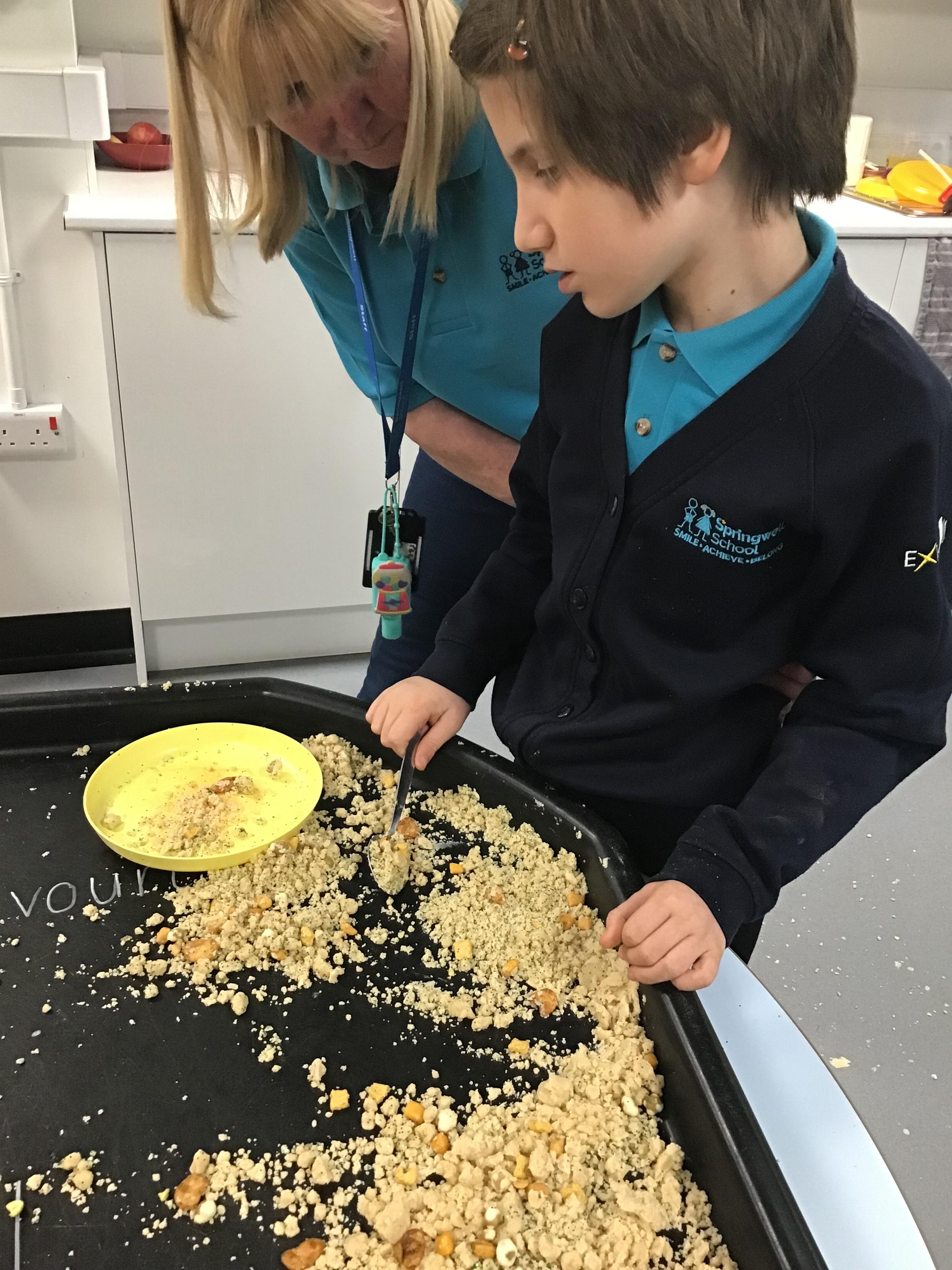 Over the last two weeks of term we enjoyed exploring our story of the week in an interactive way. All of the children enjoyed using their senses as they explored the 'Gruffalo Crumble' alongside a variety of textures objects and food sources.