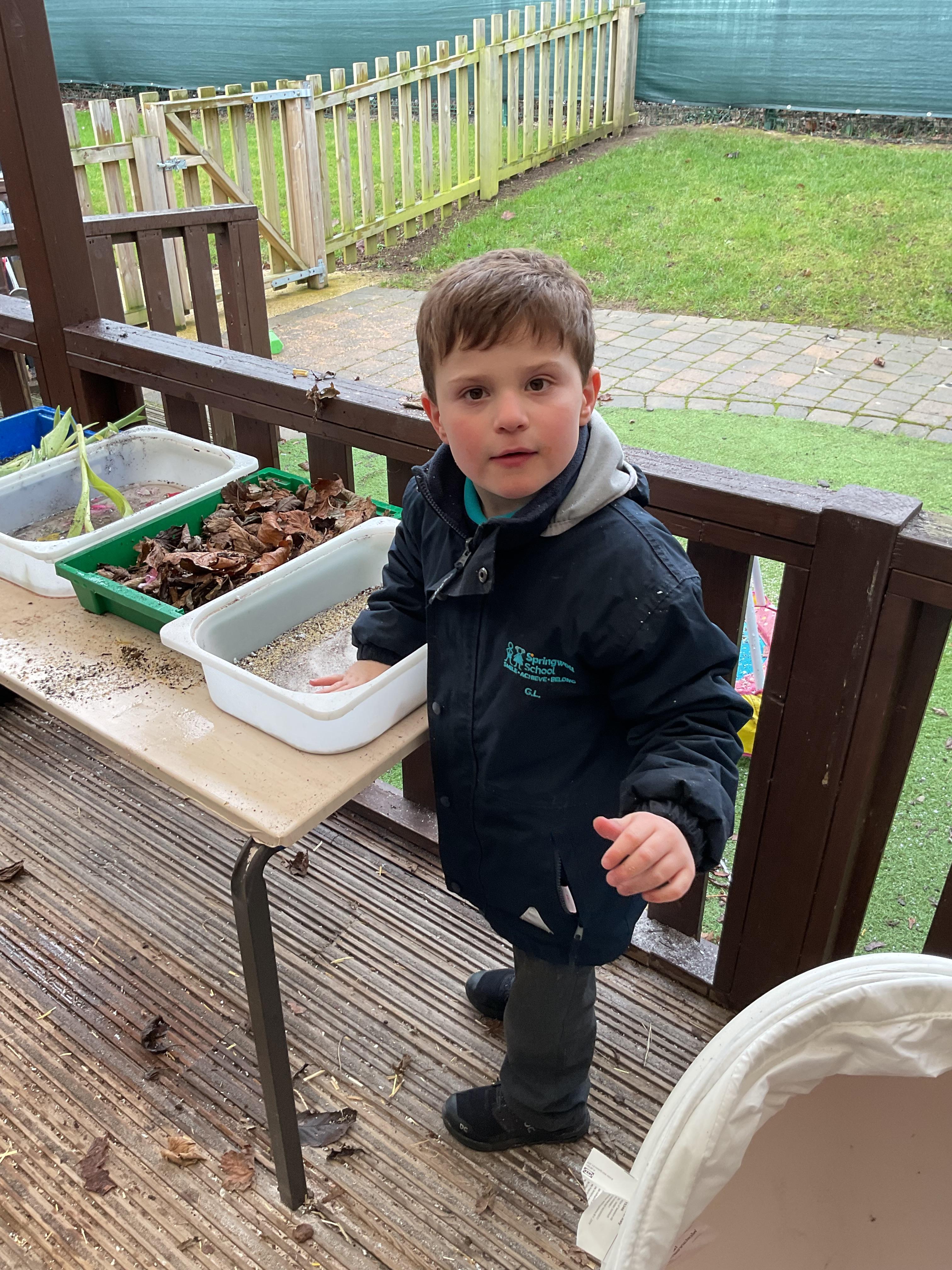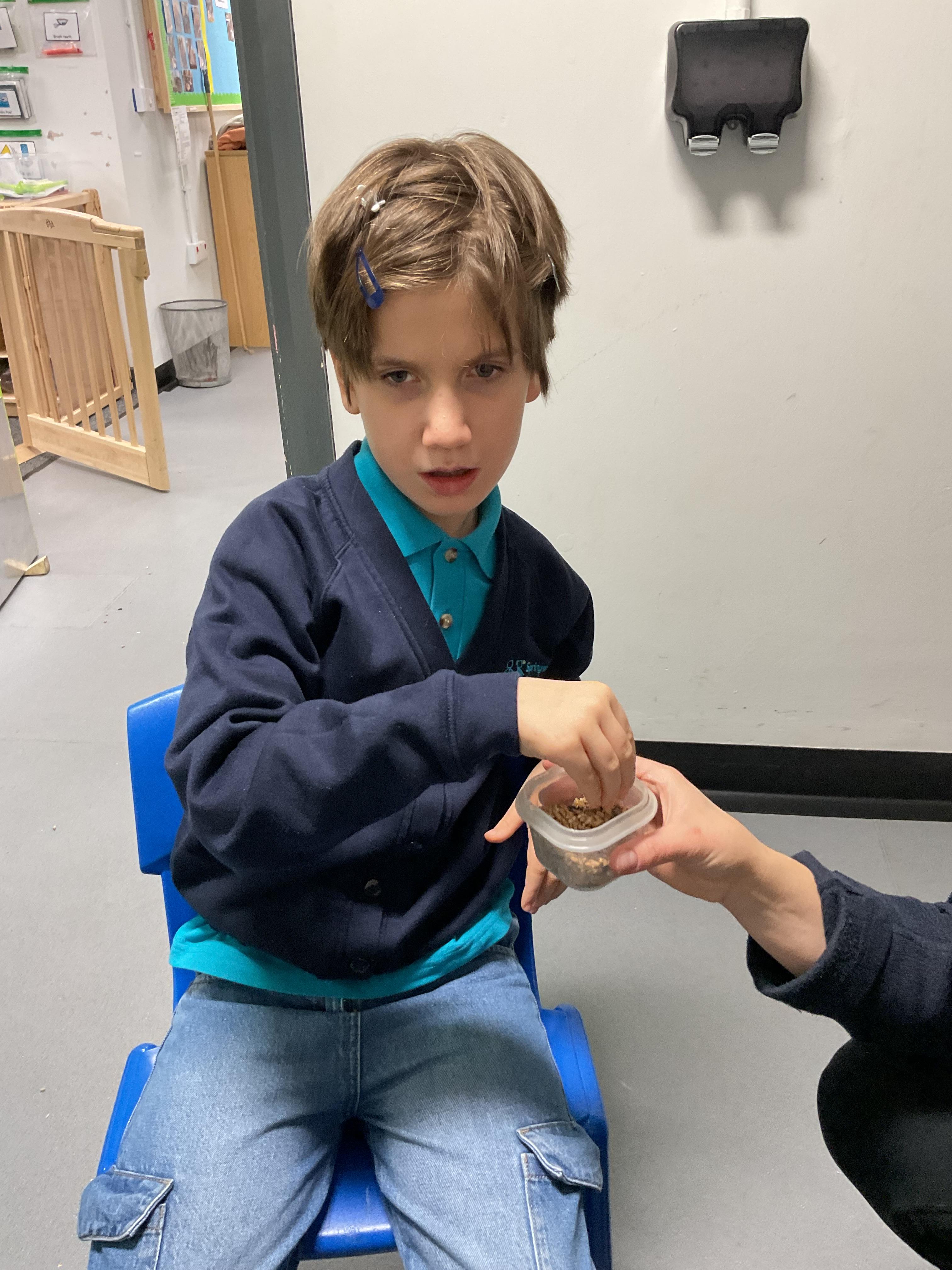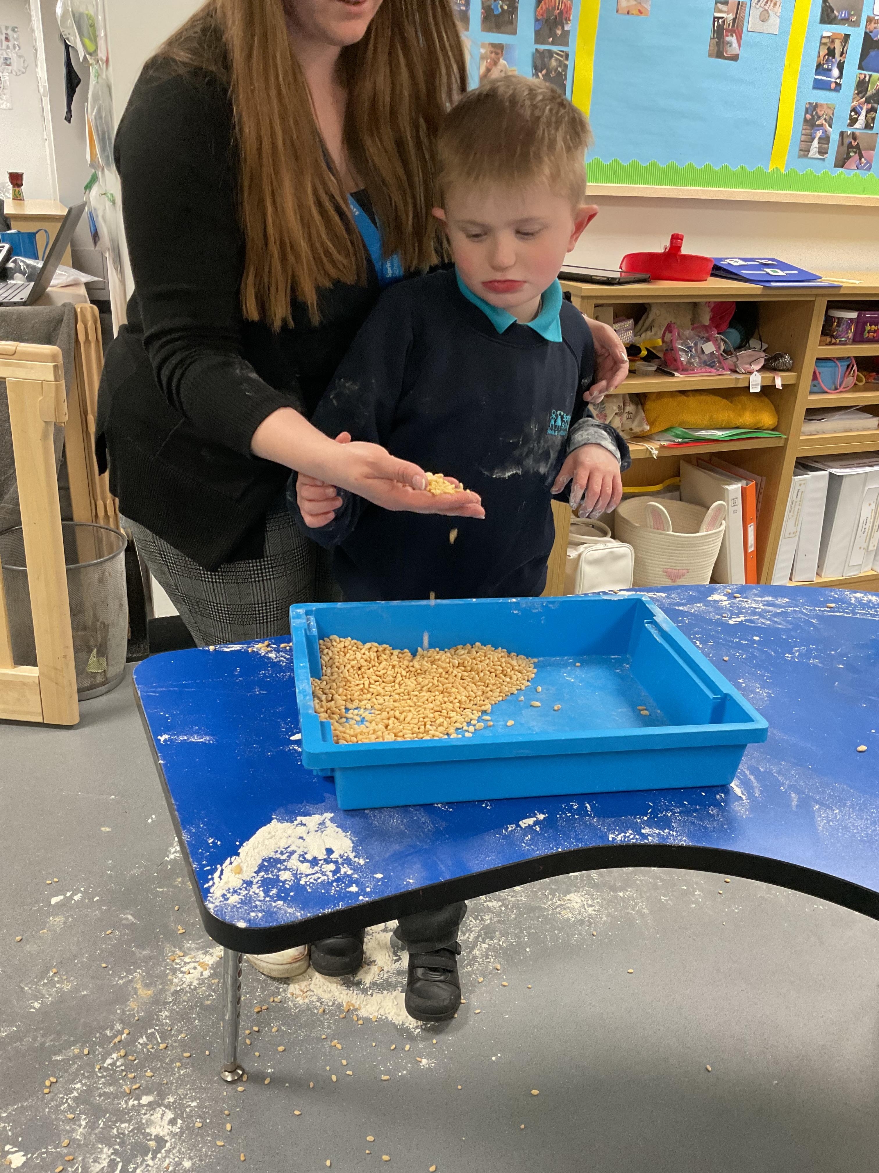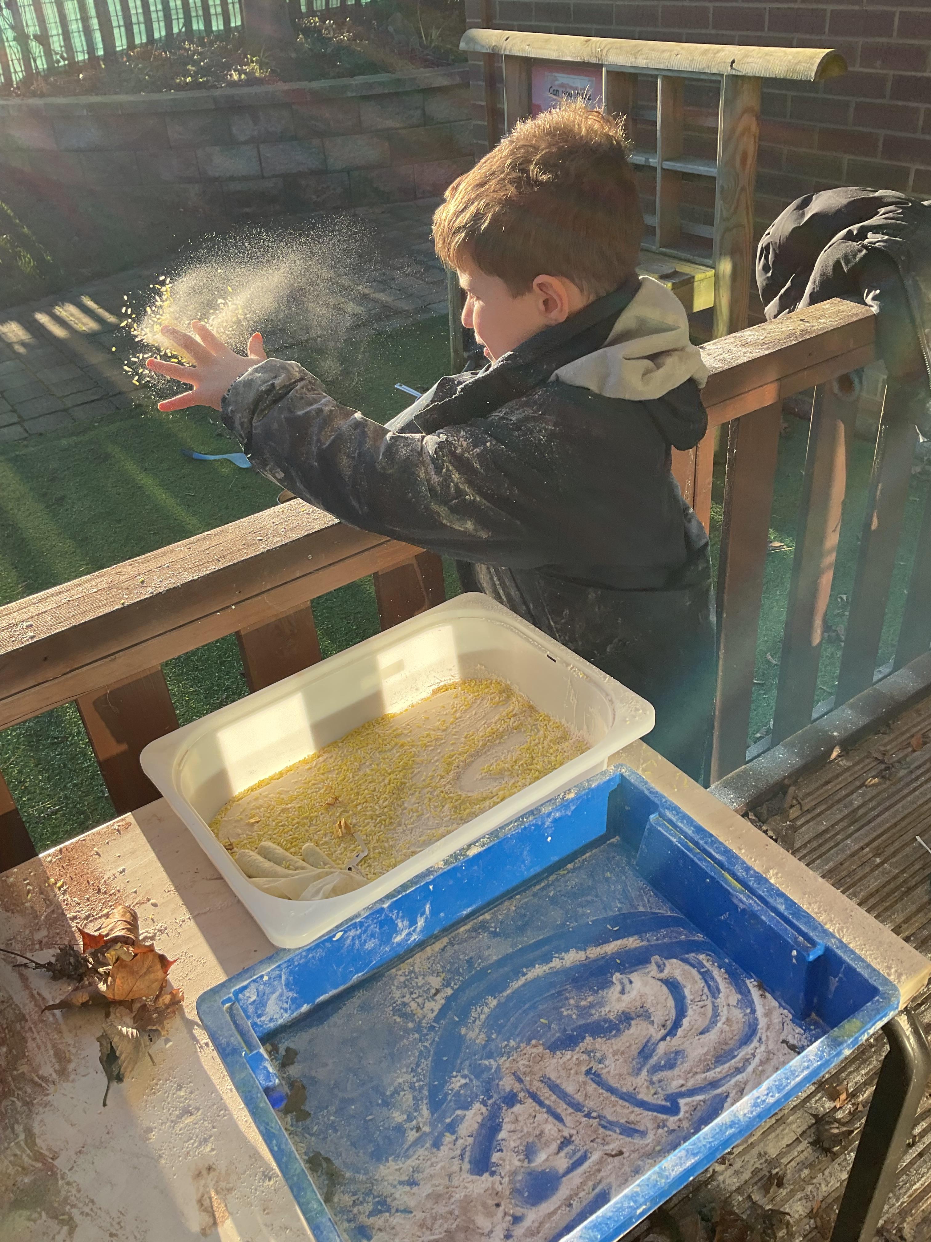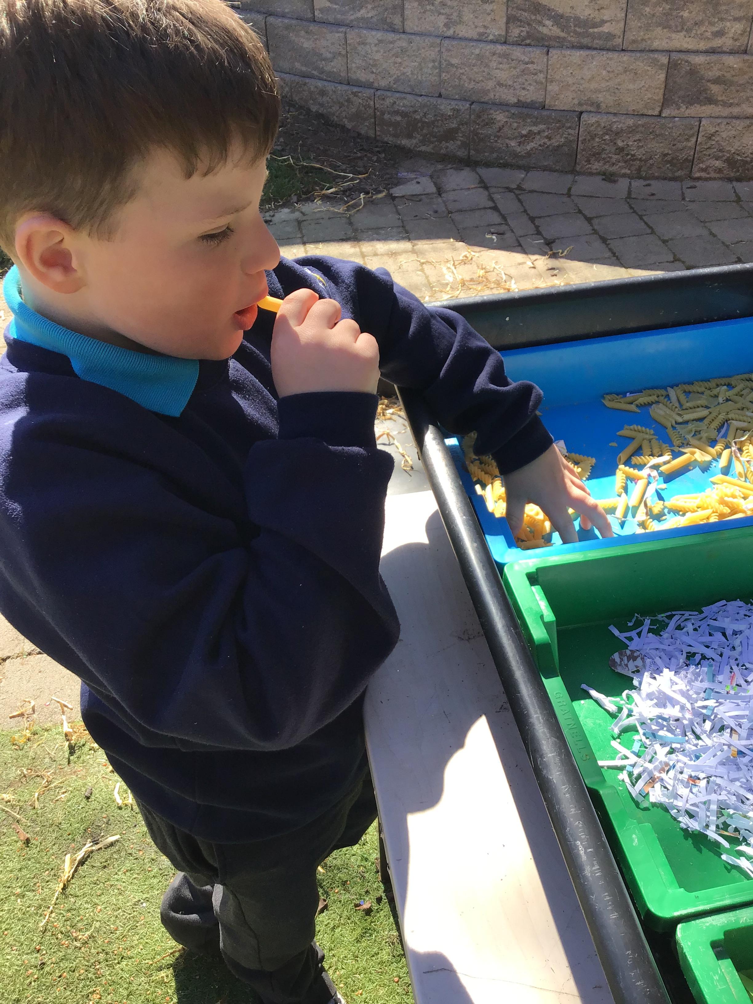 Over the last two weeks of term we enjoyed exploring our story of the week in an interactive way. All of the children enjoyed using their senses as they explored the 'Gruffalo Crumble' alongside a variety of textures objects and food sources.